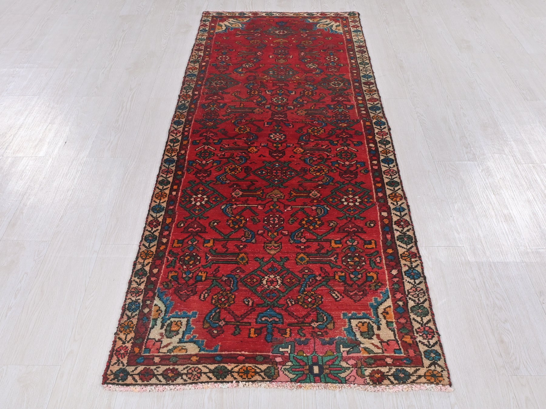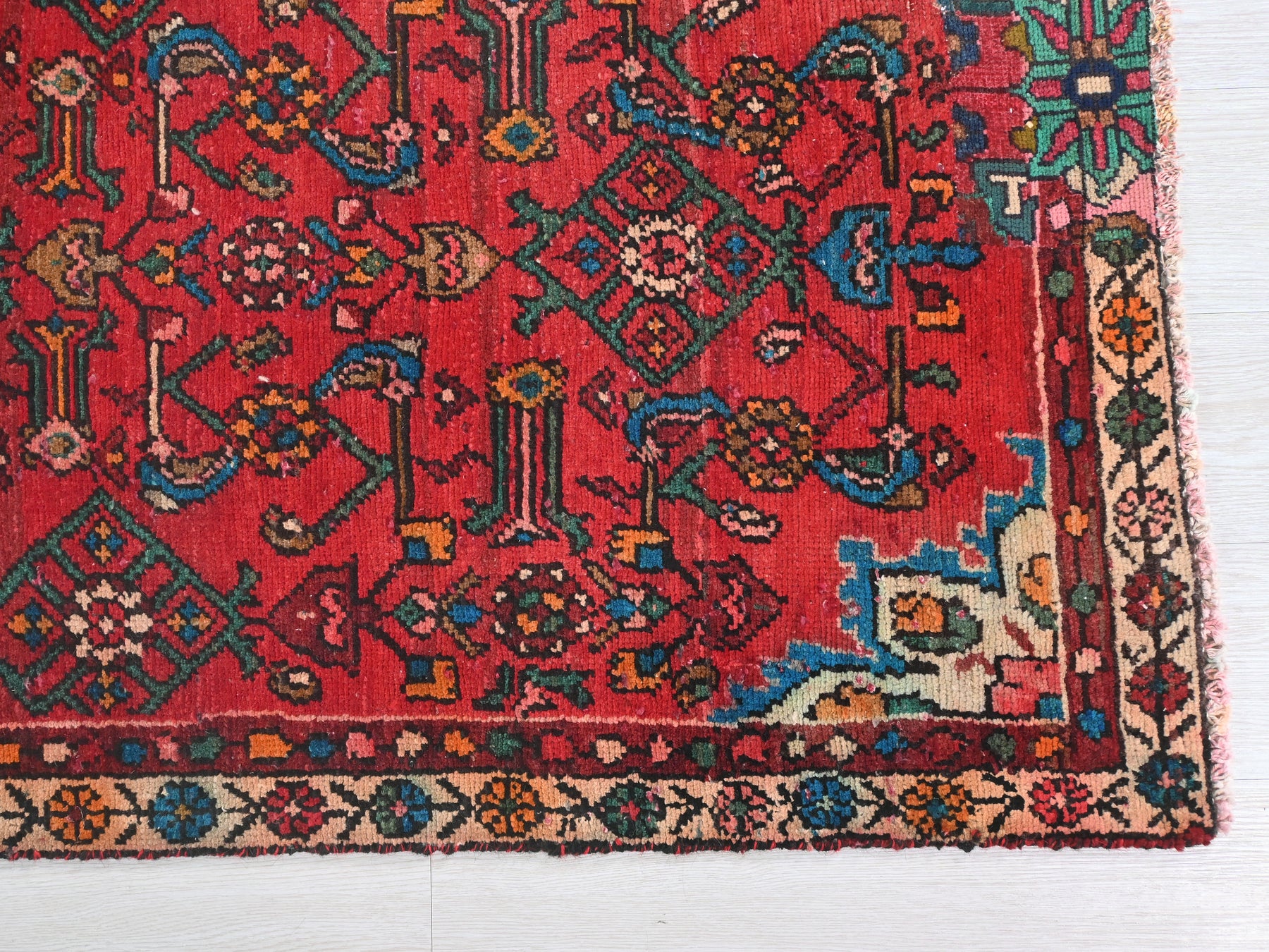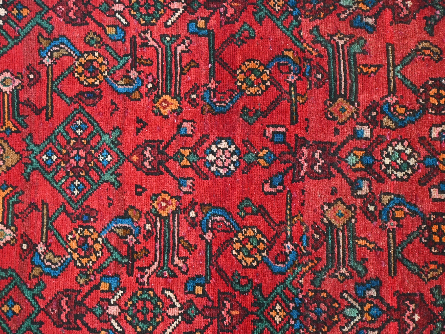 This is a hand-knotted, one-of-a-kind vintage rug. Due to the nature of this piece, there may be slight imperfections in its wear, shape, dimensions, and color. All of our rugs are professionally cleaned and repaired.