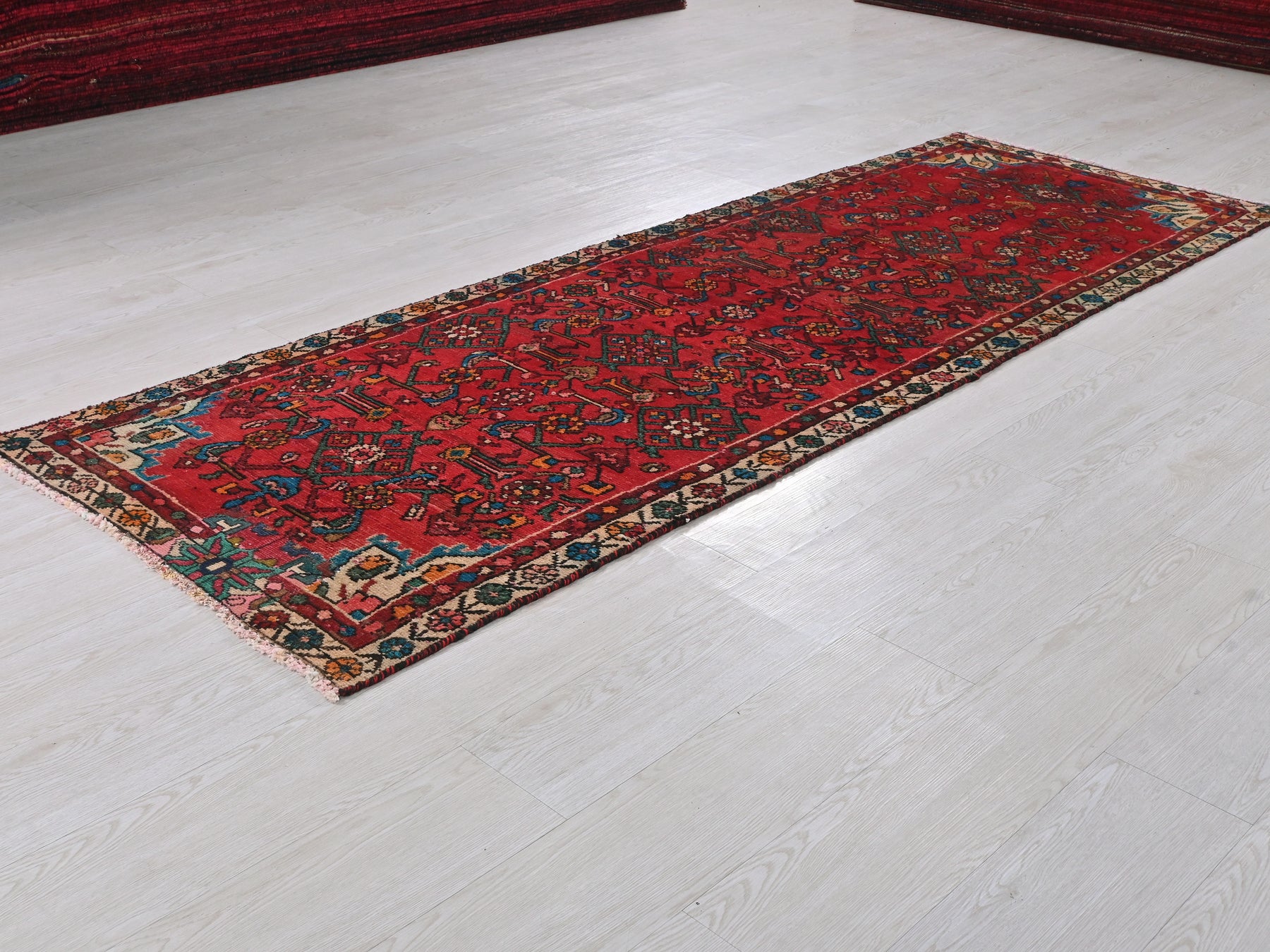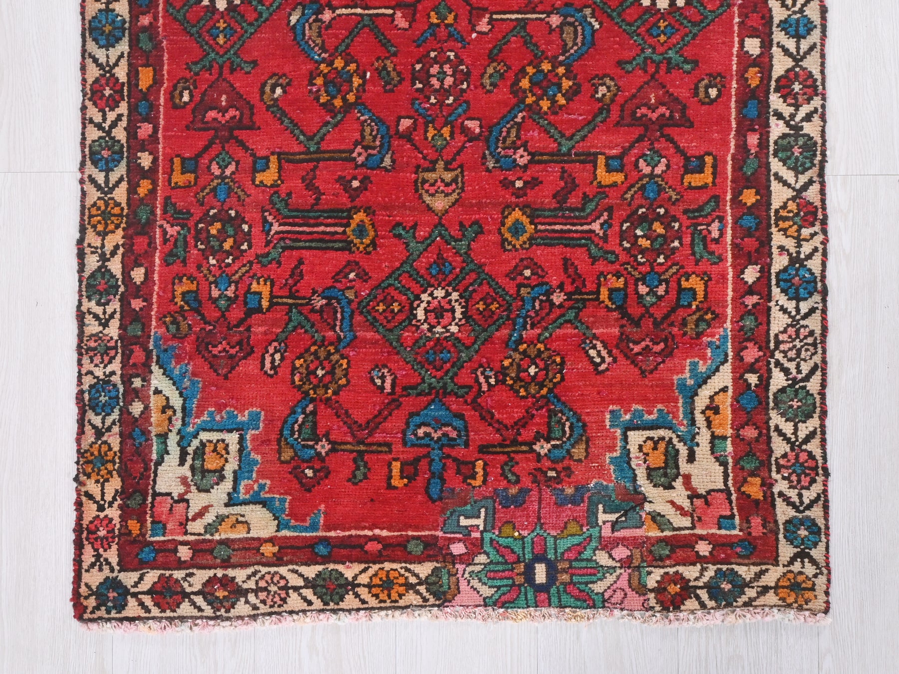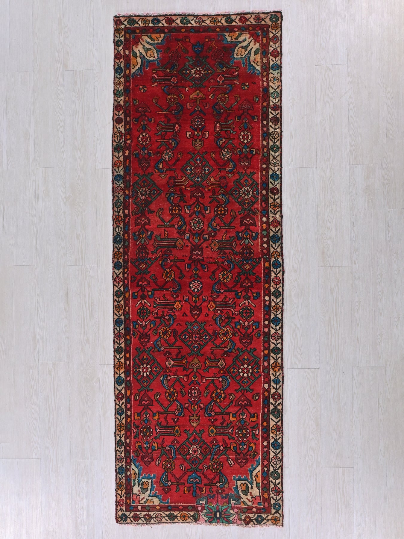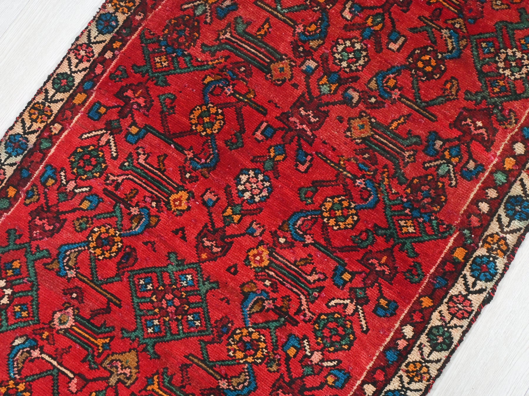 This is a hand-knotted, one-of-a-kind vintage rug. Due to the nature of this piece, there may be slight imperfections in its wear, shape, dimensions, and color. All of our rugs are professionally cleaned and repaired.