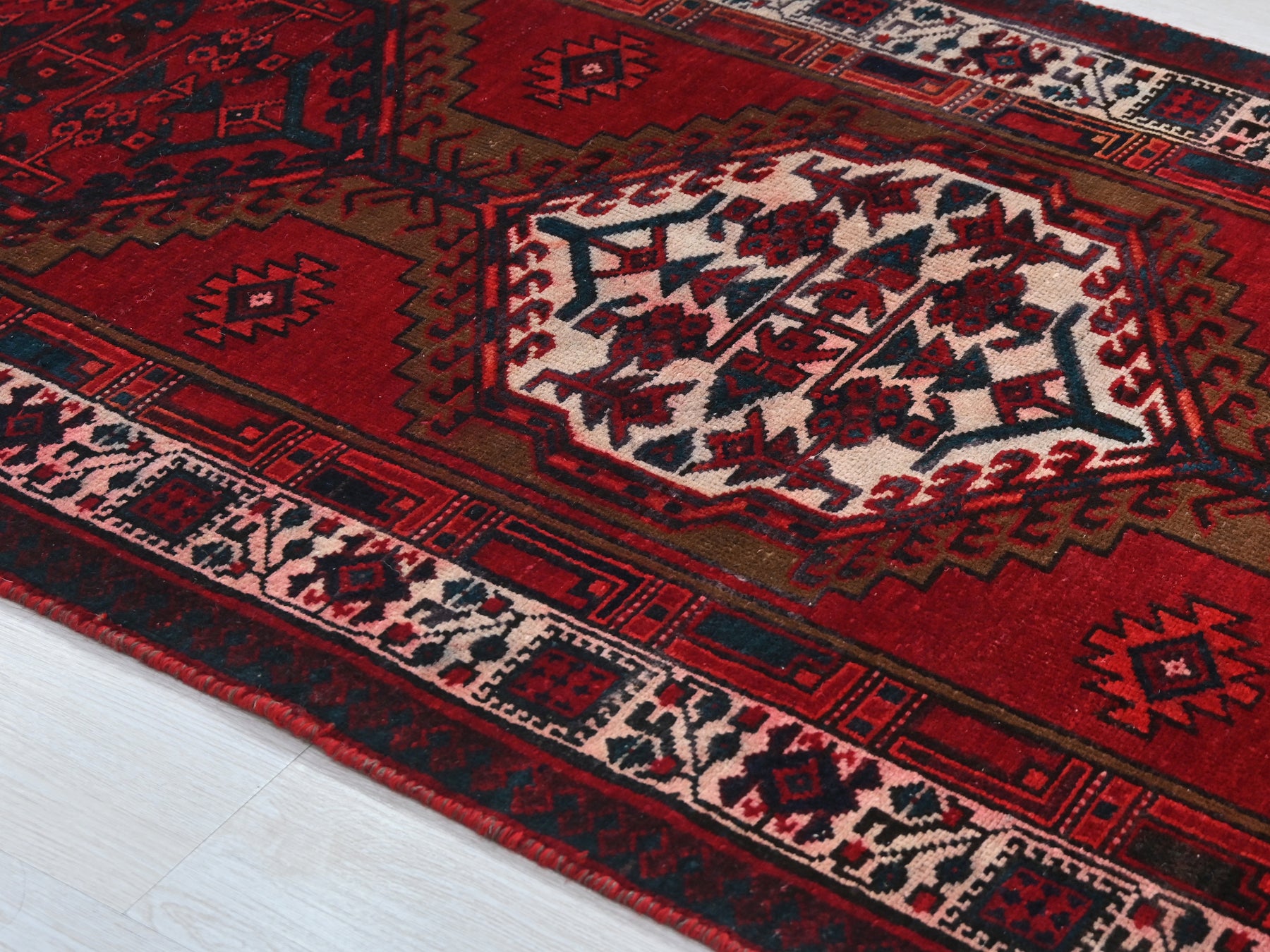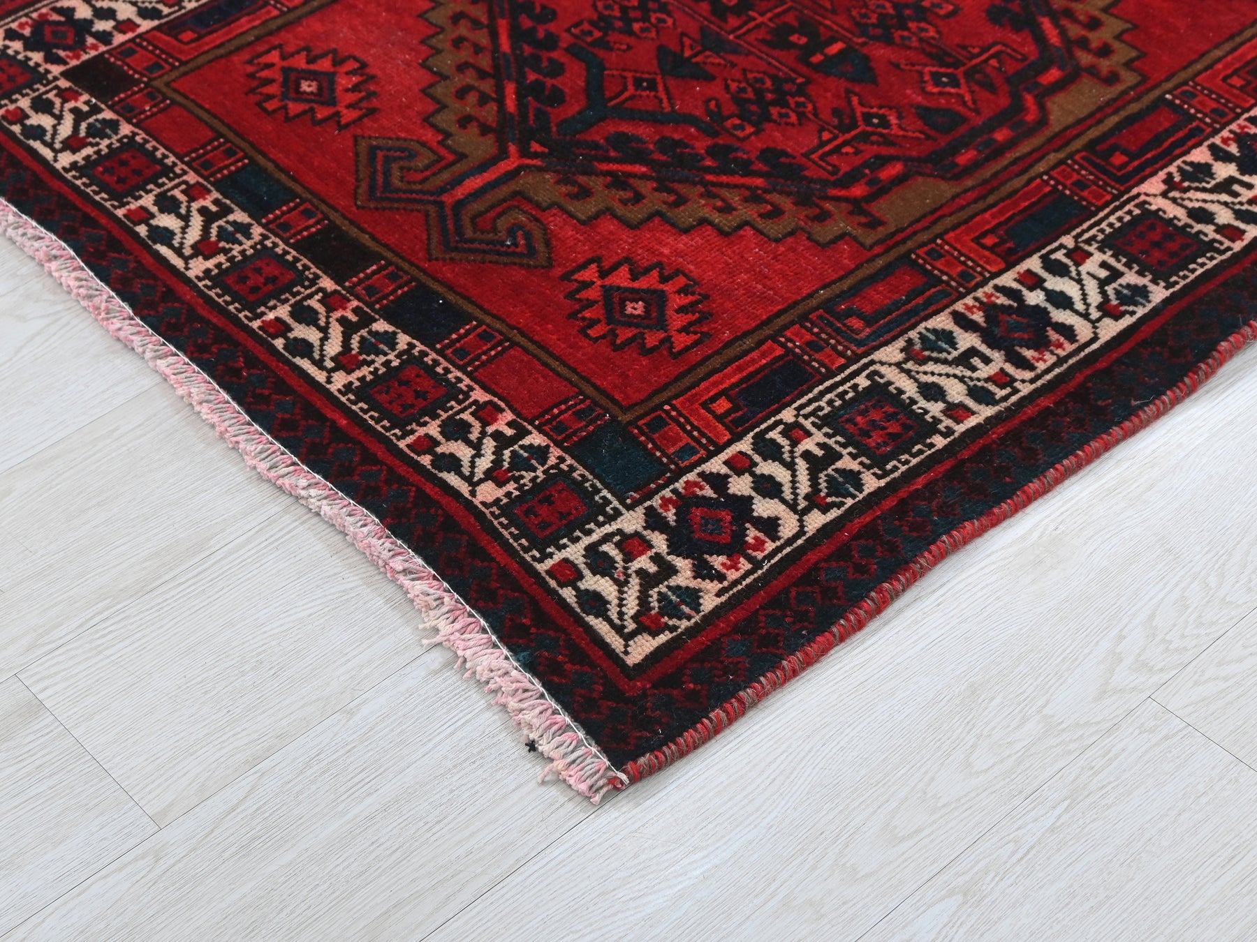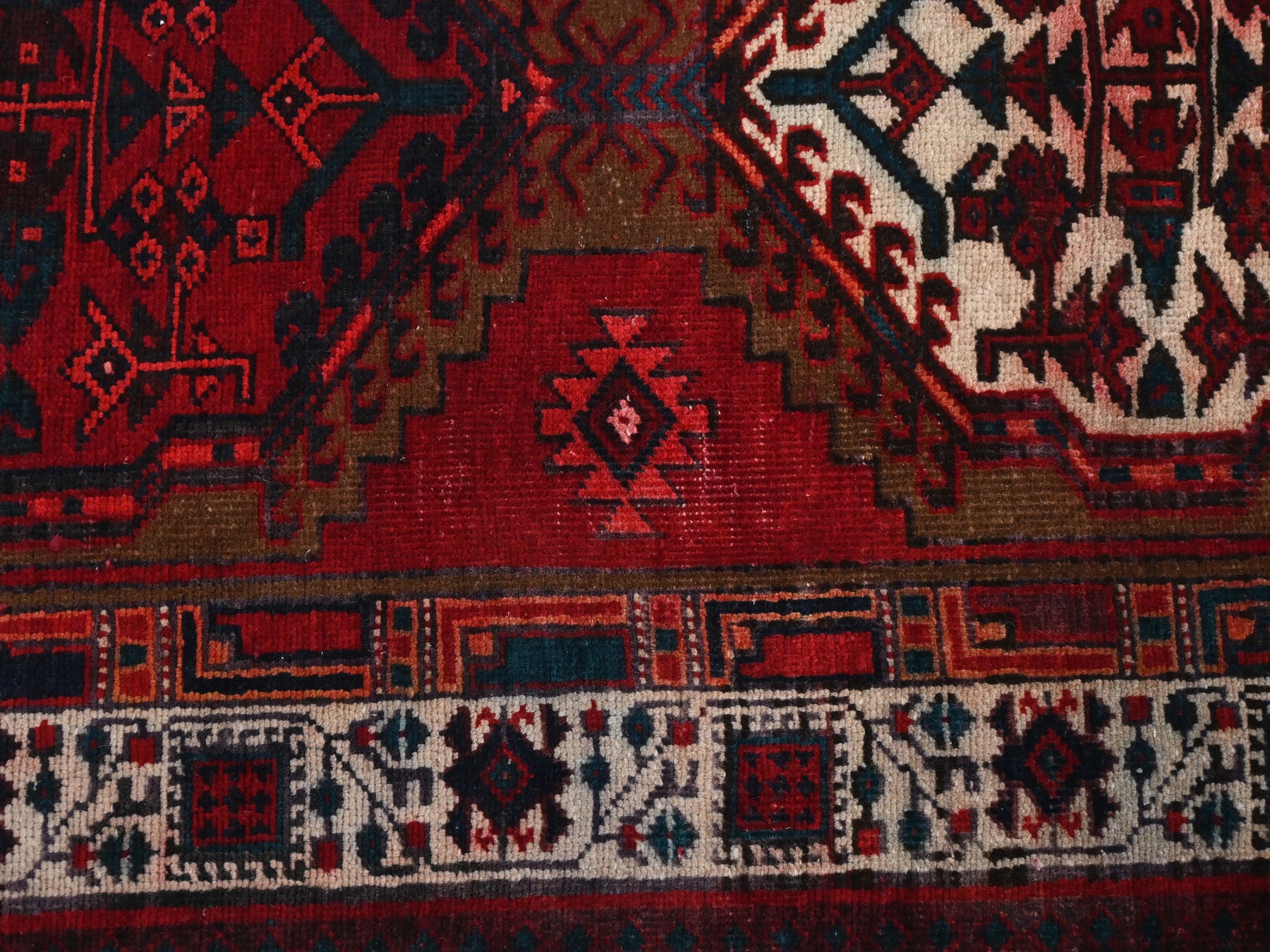 This is a hand-knotted, one-of-a-kind vintage rug. Due to the nature of this piece, there may be slight imperfections in its wear, shape, dimensions, and color. All of our rugs are professionally cleaned and repaired.