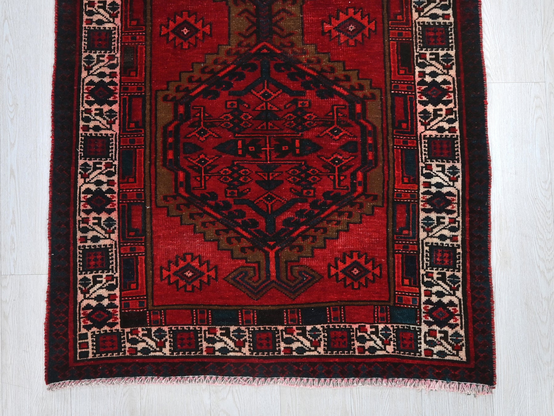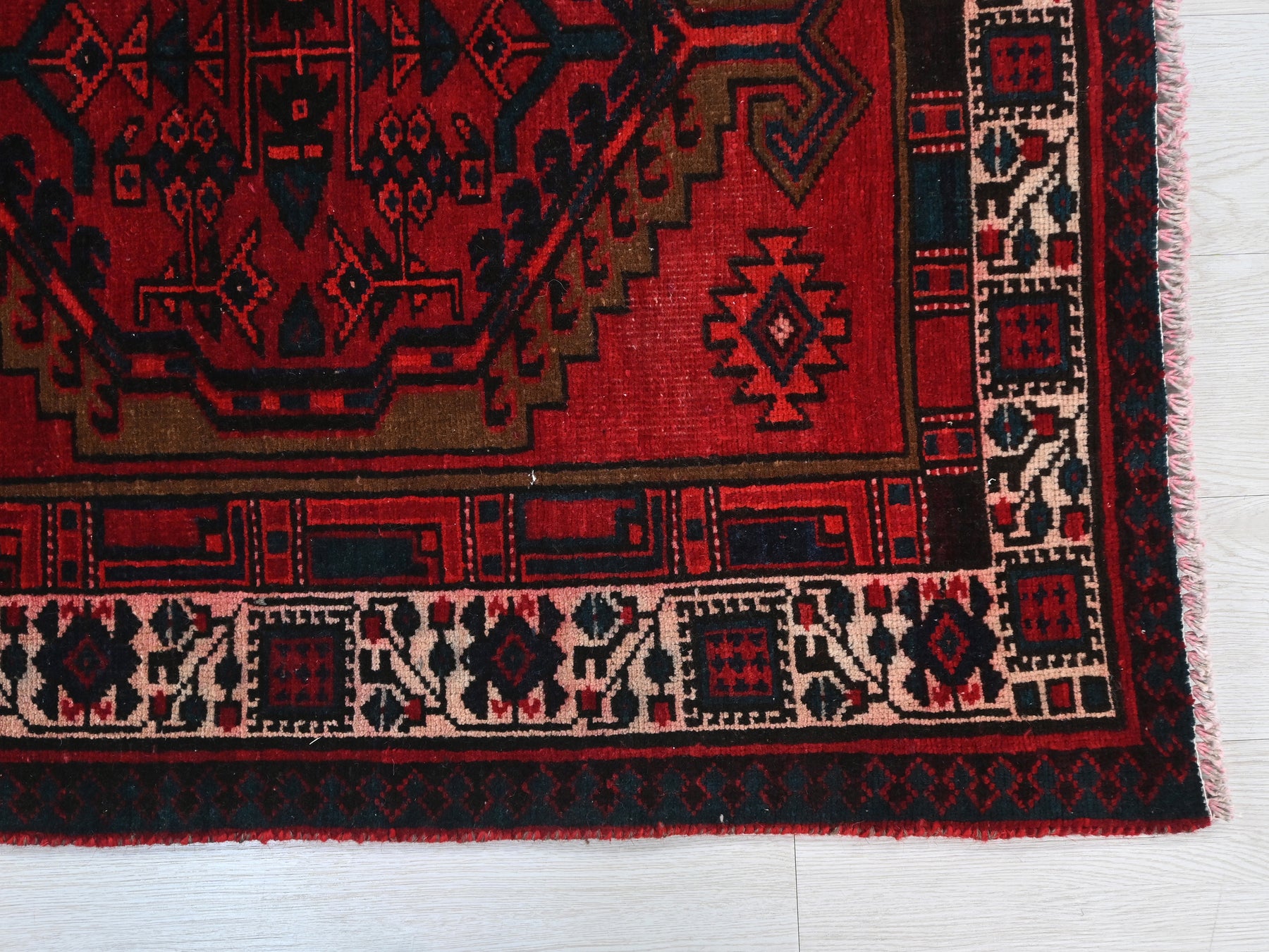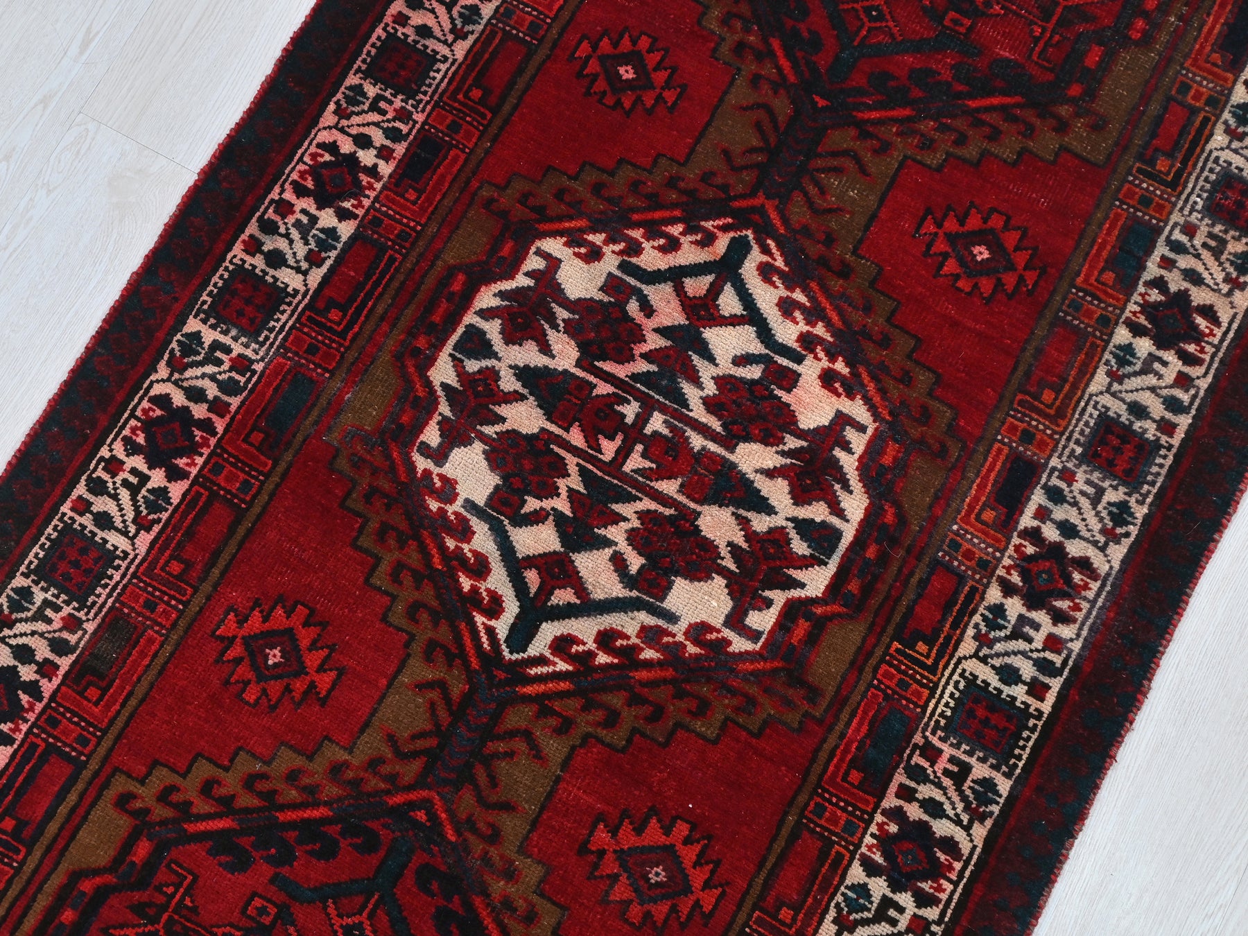 This is a hand-knotted, one-of-a-kind vintage rug. Due to the nature of this piece, there may be slight imperfections in its wear, shape, dimensions, and color. All of our rugs are professionally cleaned and repaired.