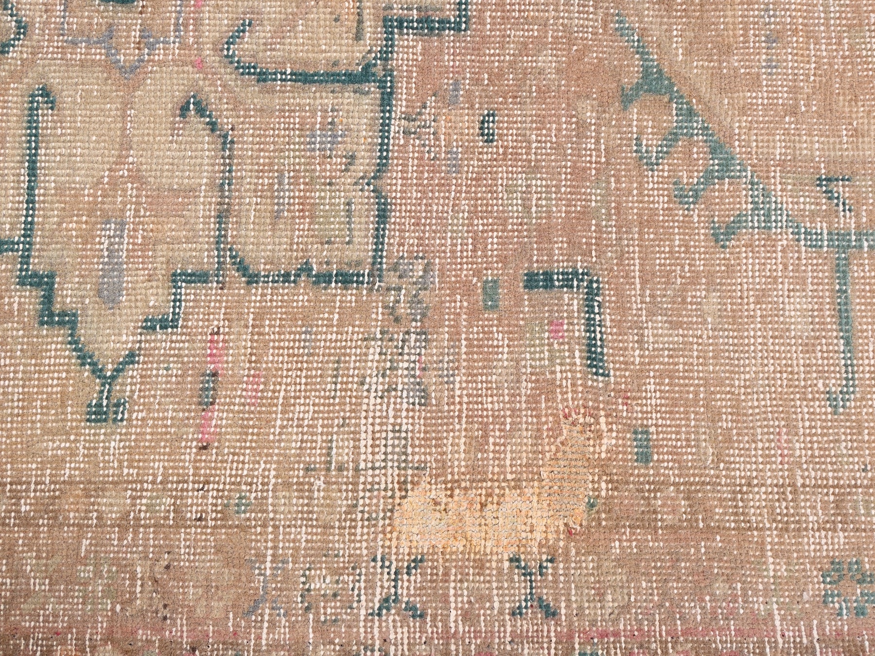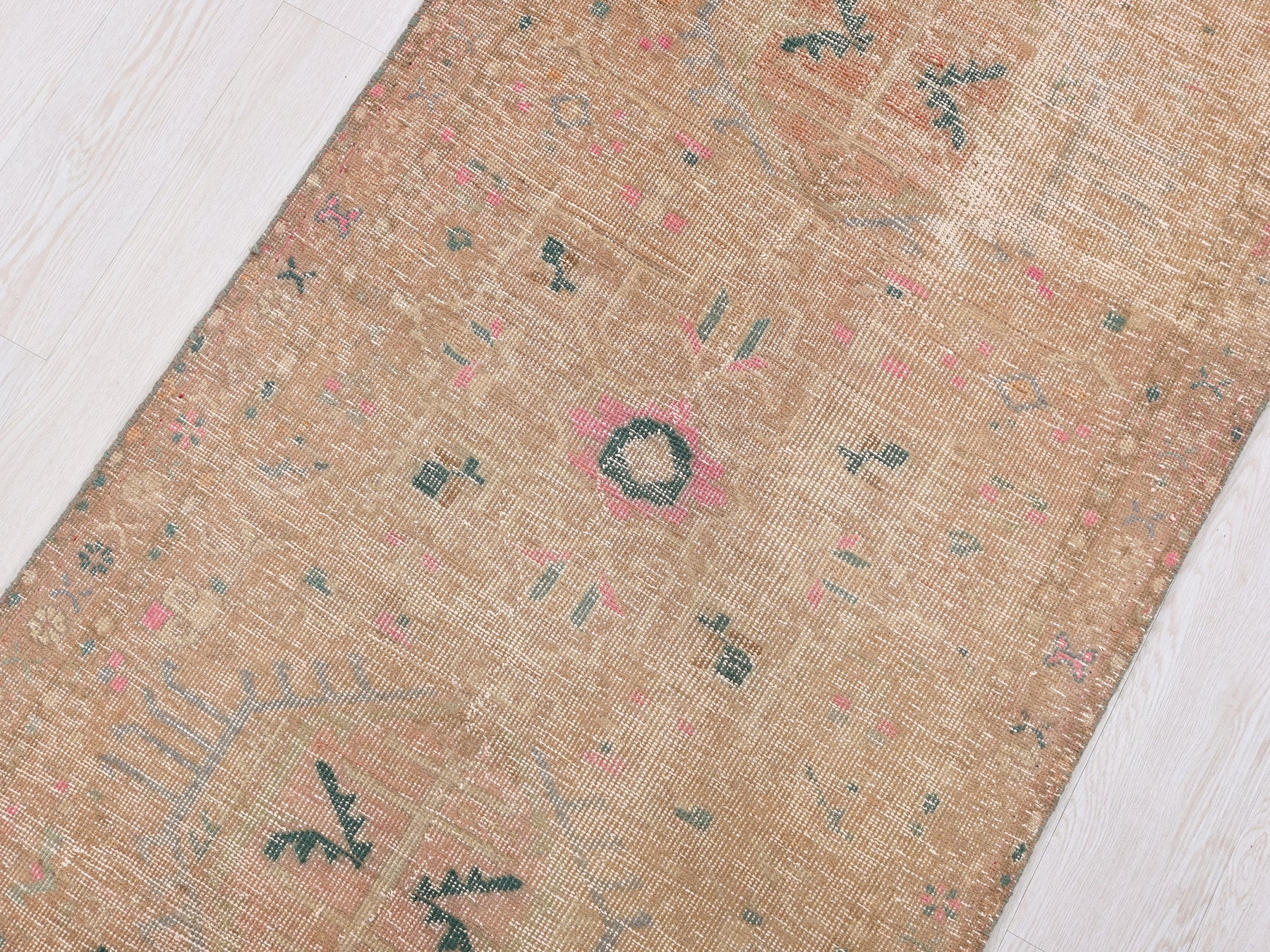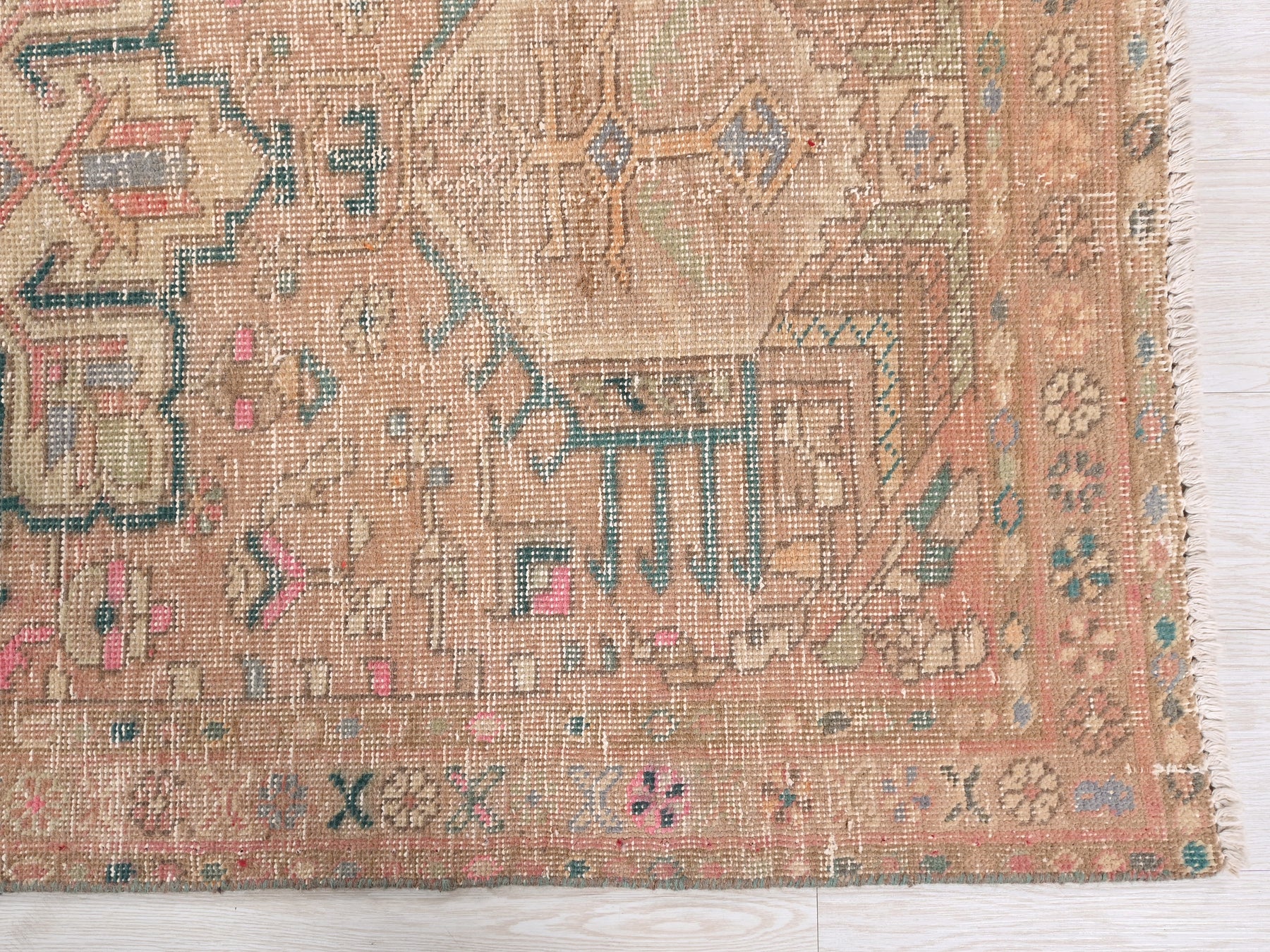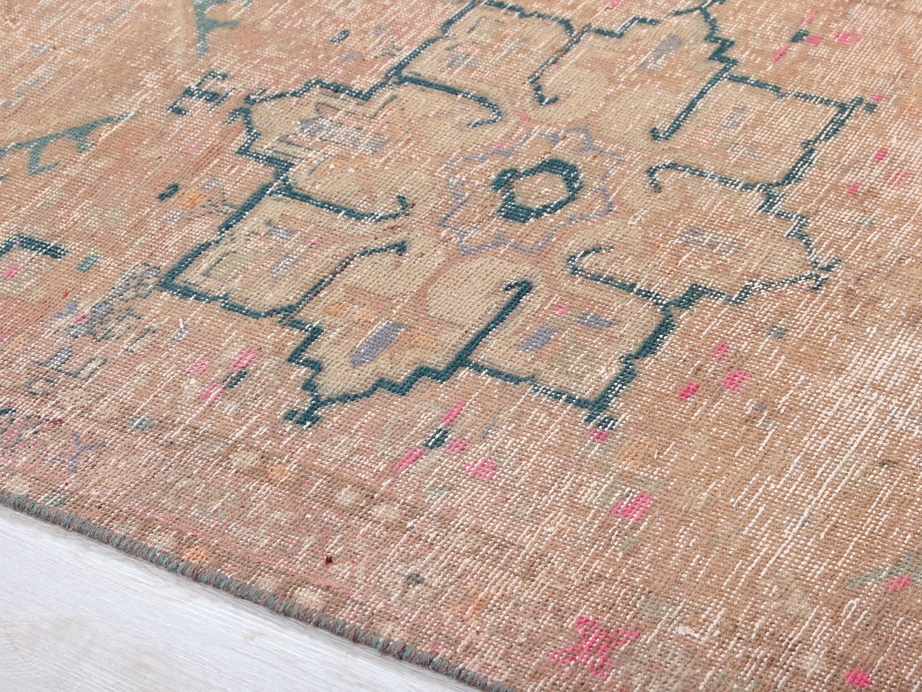 This is a hand-knotted, one-of-a-kind vintage rug. Due to the nature of this piece, there may be slight imperfections in its wear, shape, dimensions, and color. All of our rugs are professionally cleaned and repaired.