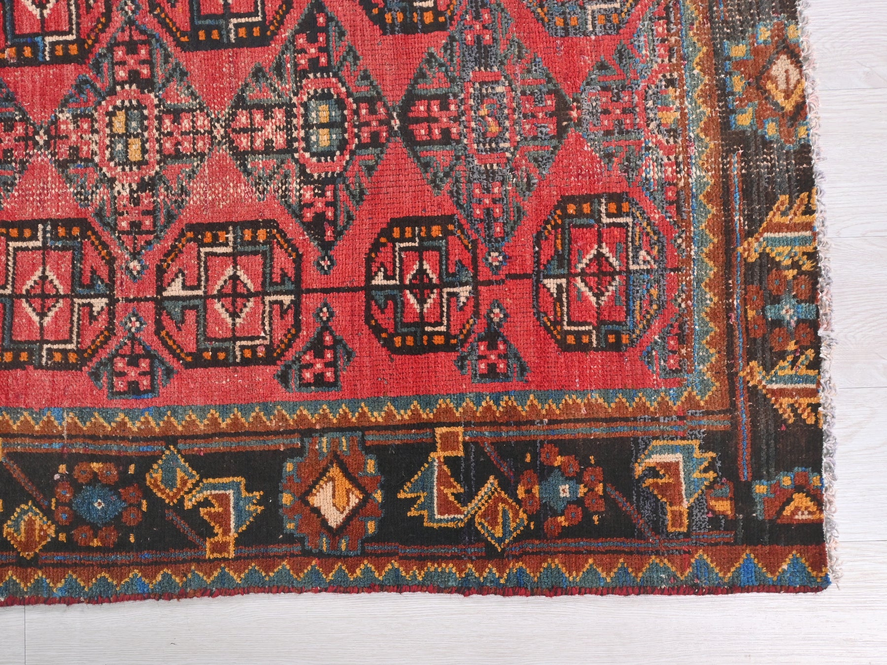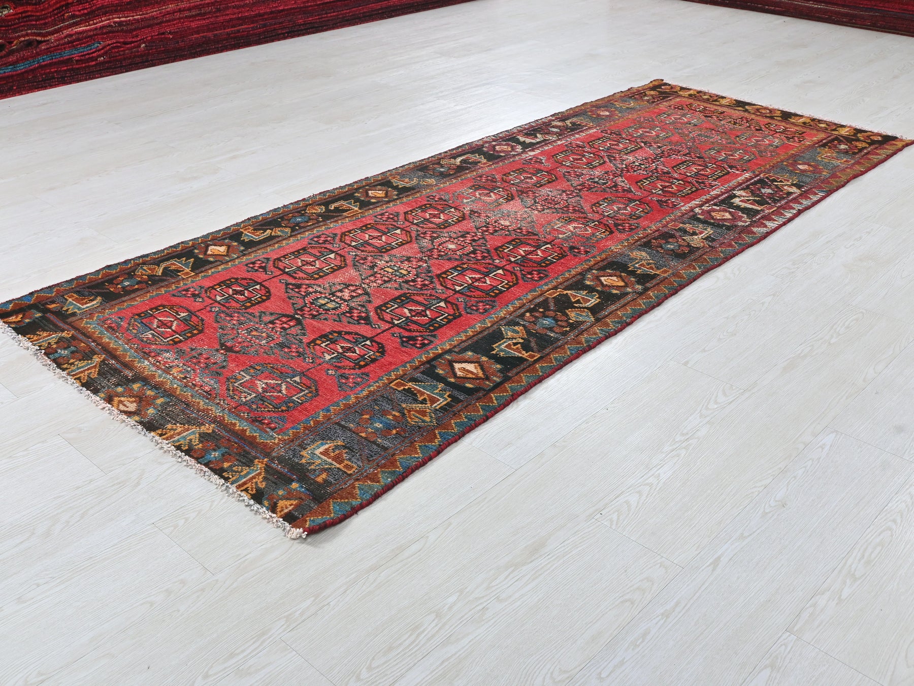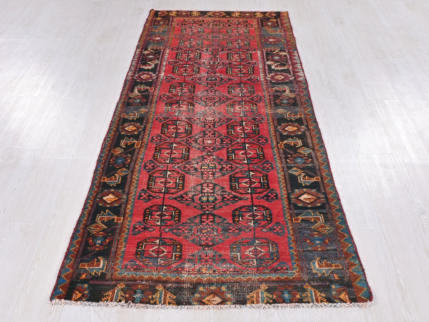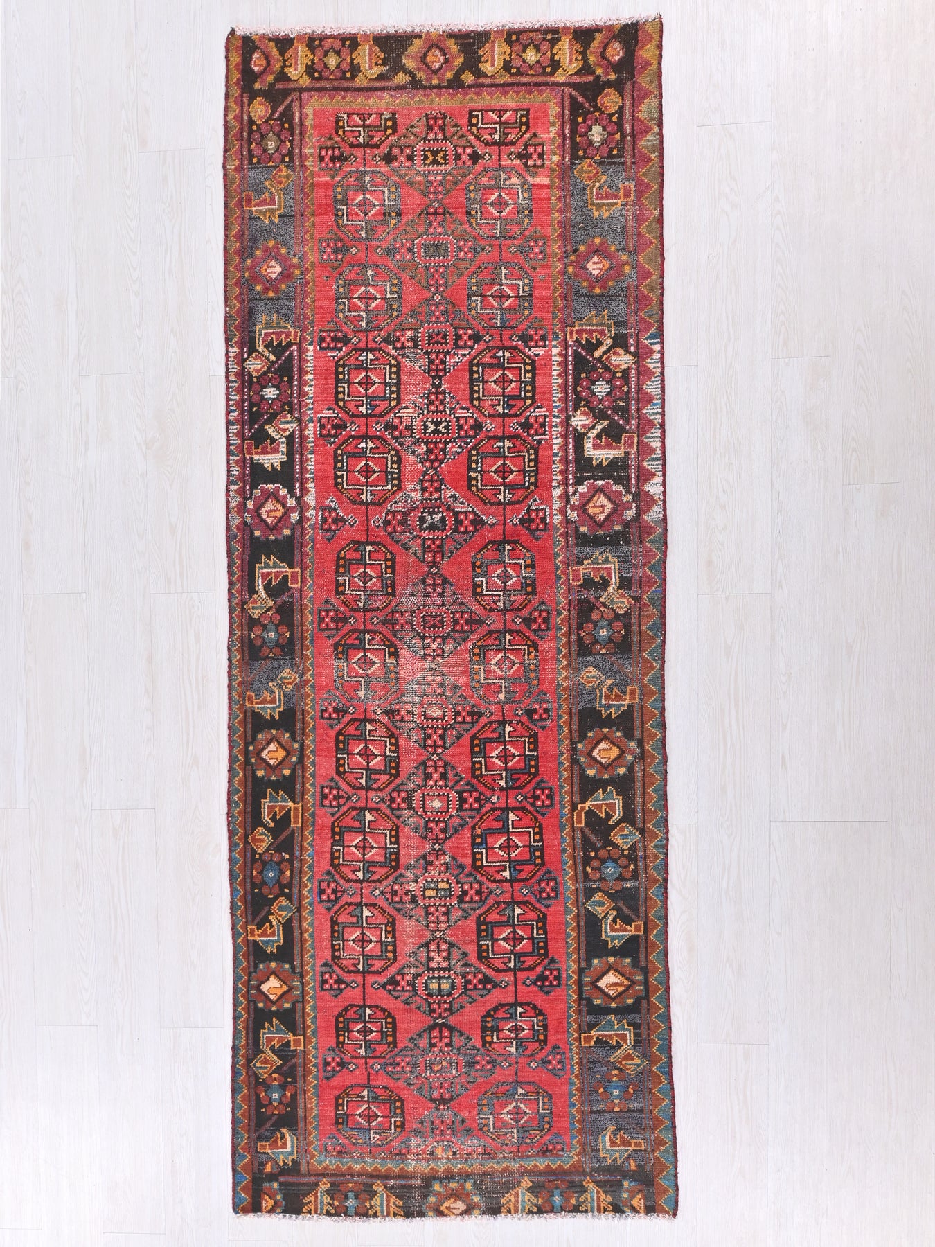 This is a hand-knotted, one-of-a-kind vintage rug. Due to the nature of this piece, there may be slight imperfections in its wear, shape, dimensions, and color. All of our rugs are professionally cleaned and repaired.