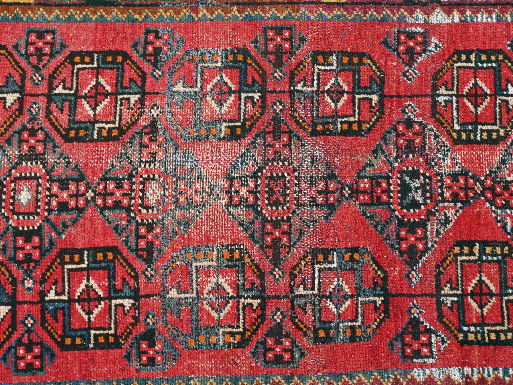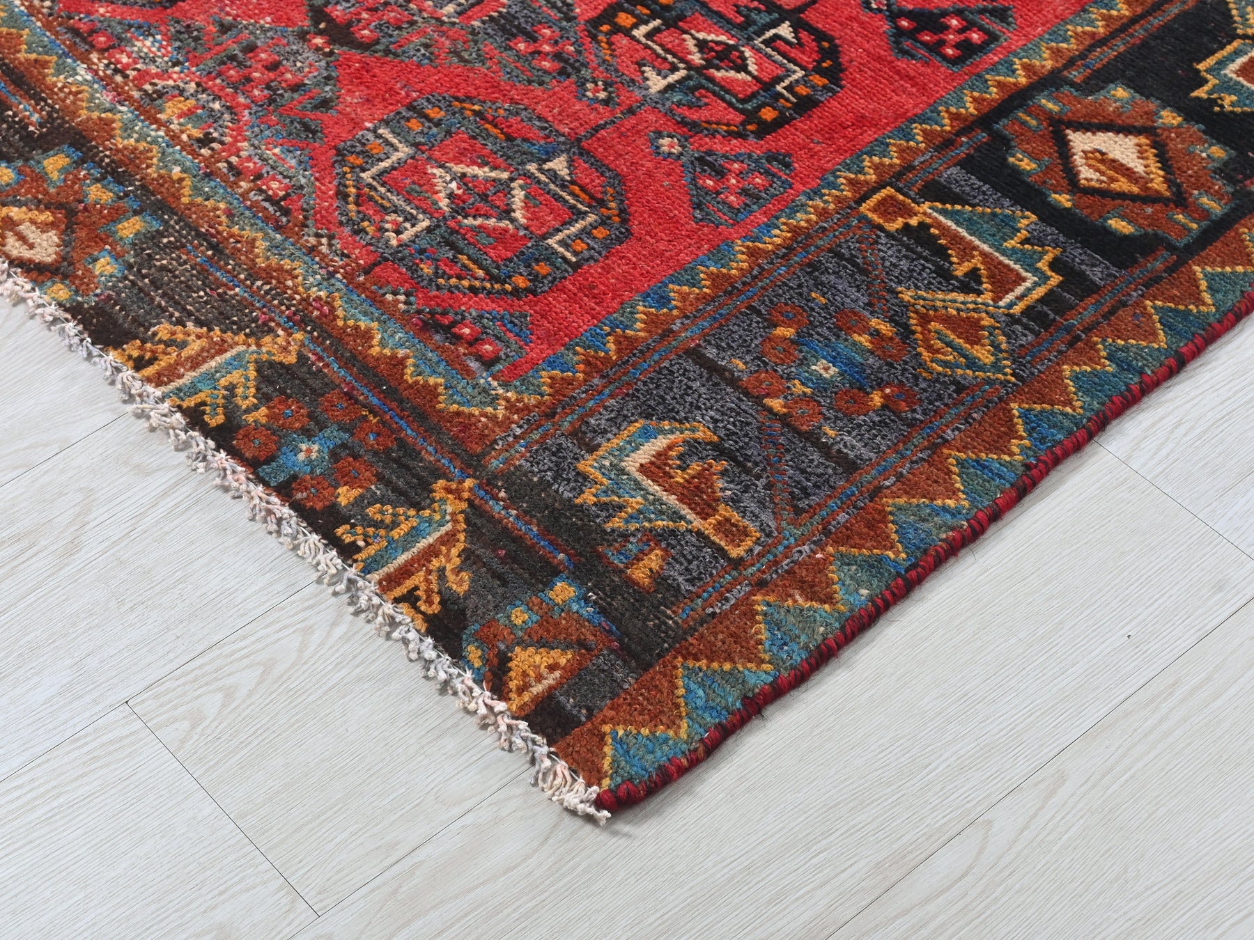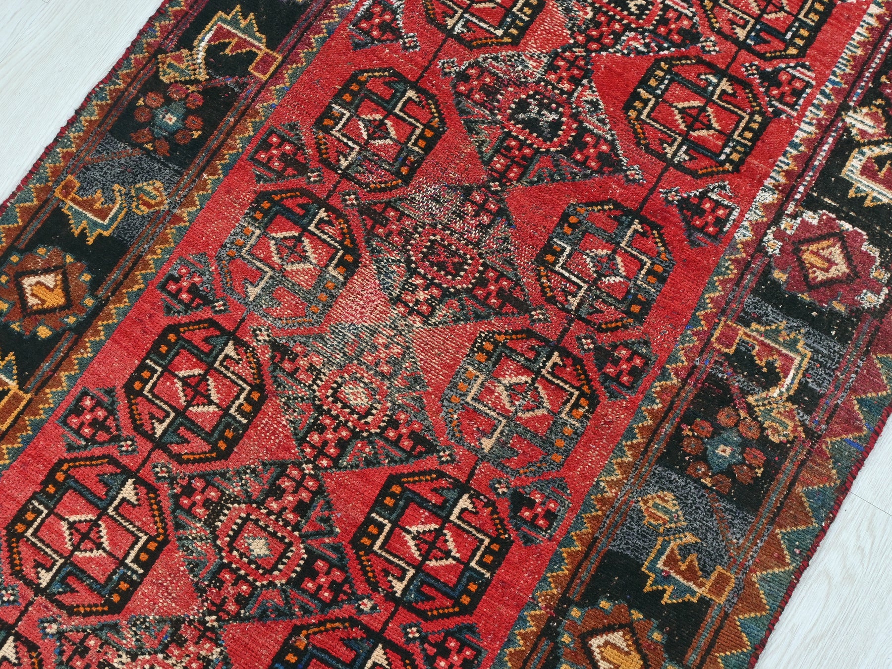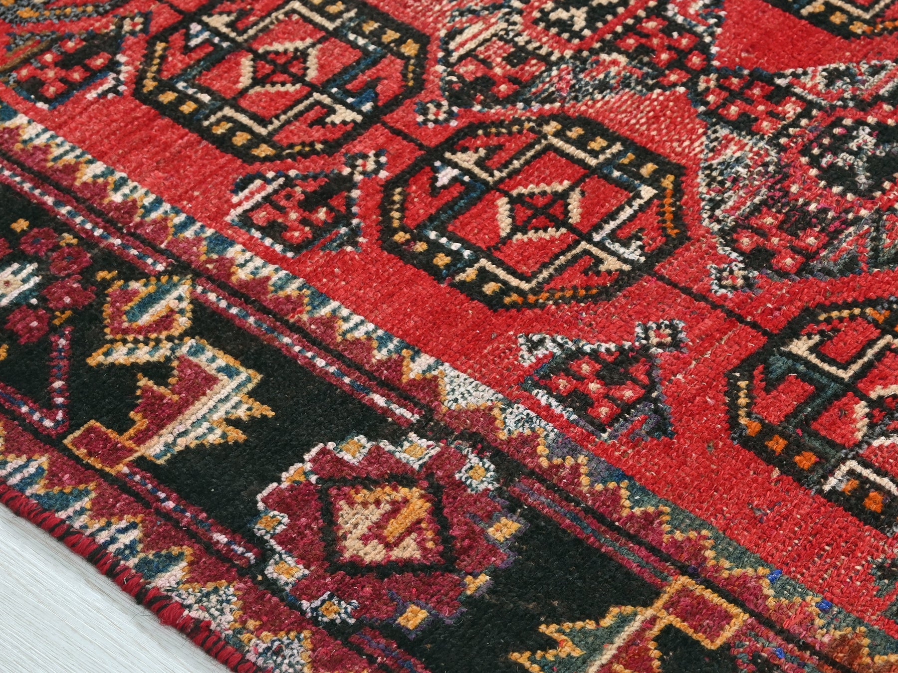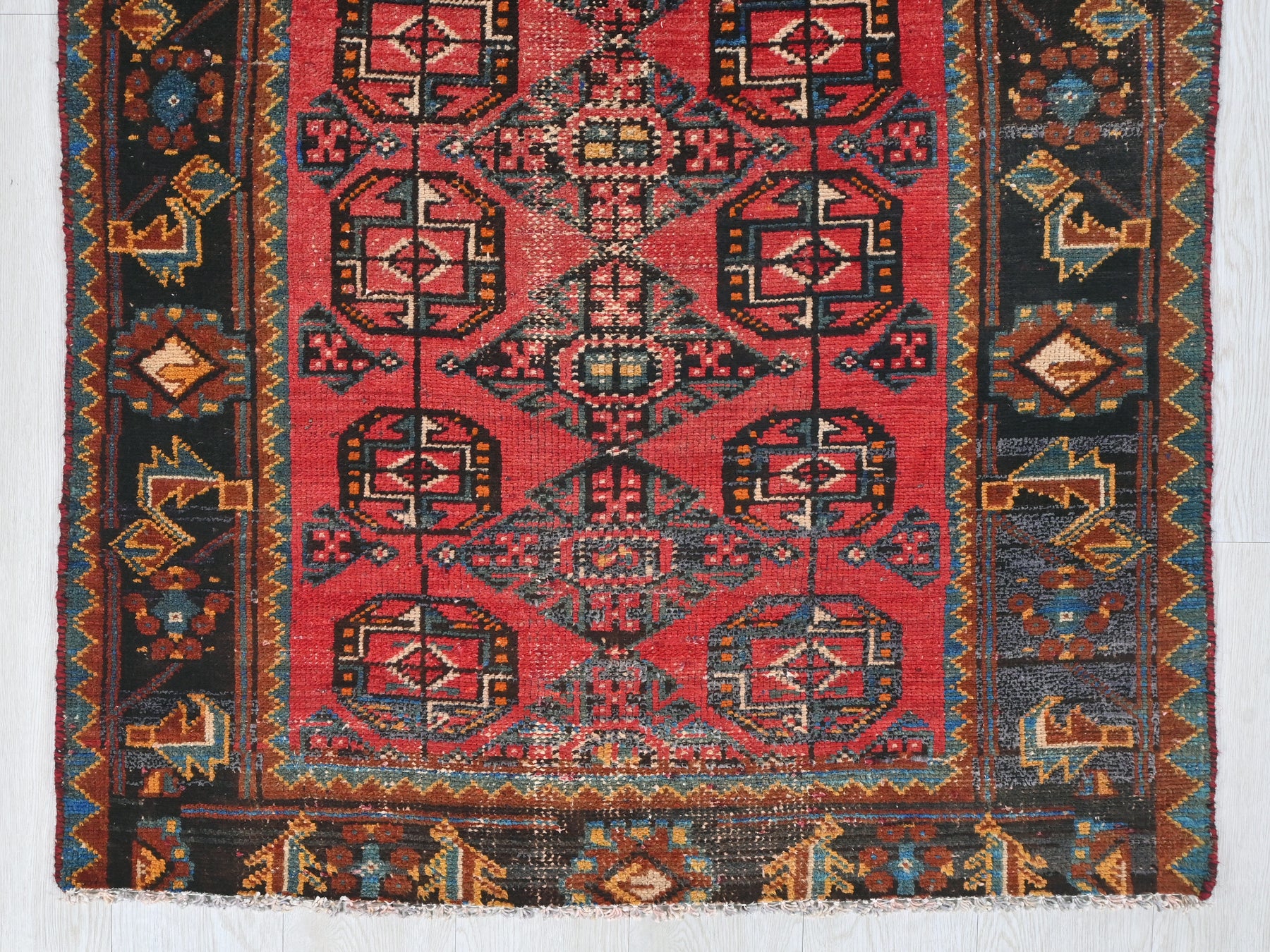 This is a hand-knotted, one-of-a-kind vintage rug. Due to the nature of this piece, there may be slight imperfections in its wear, shape, dimensions, and color. All of our rugs are professionally cleaned and repaired.
