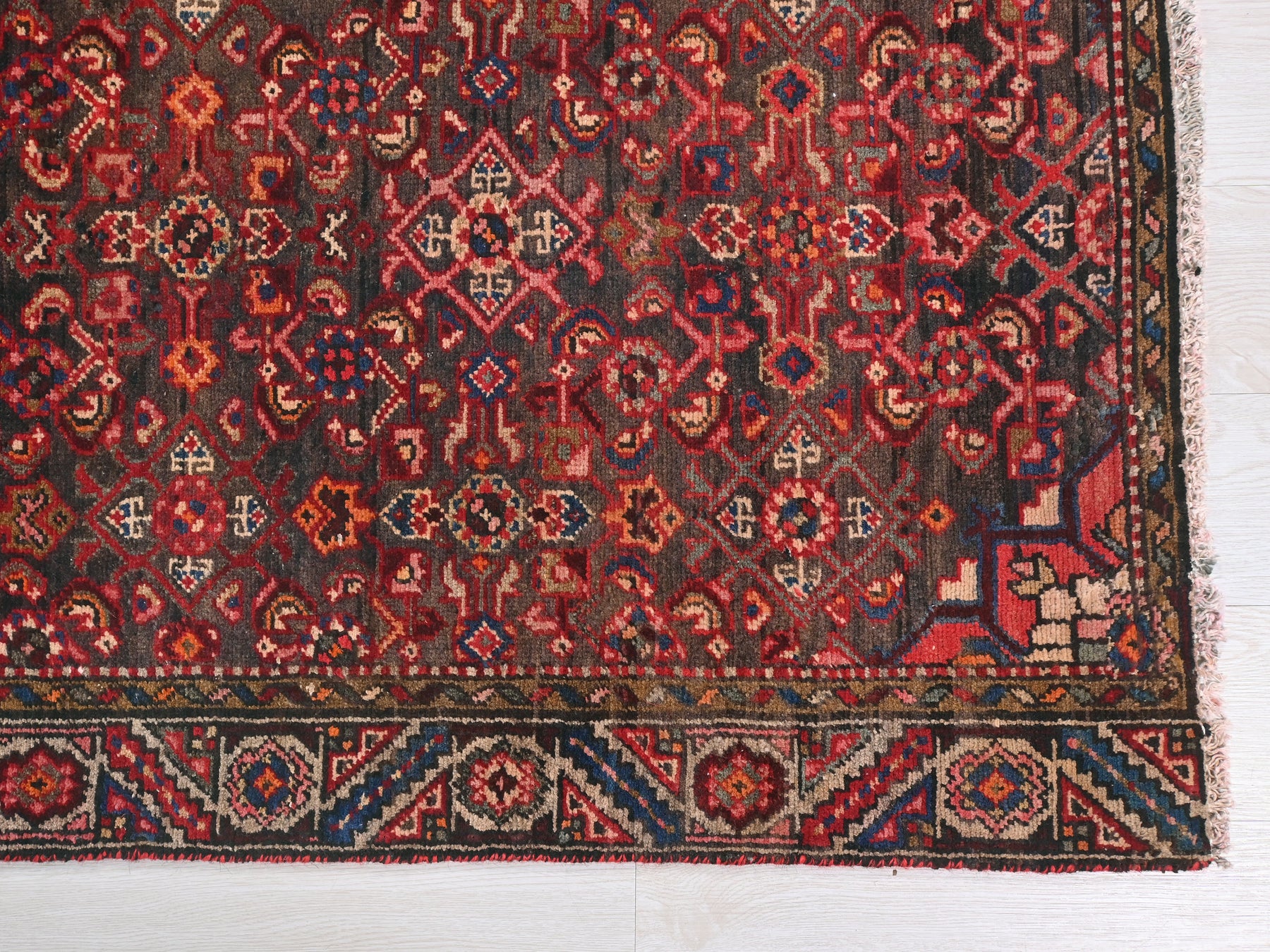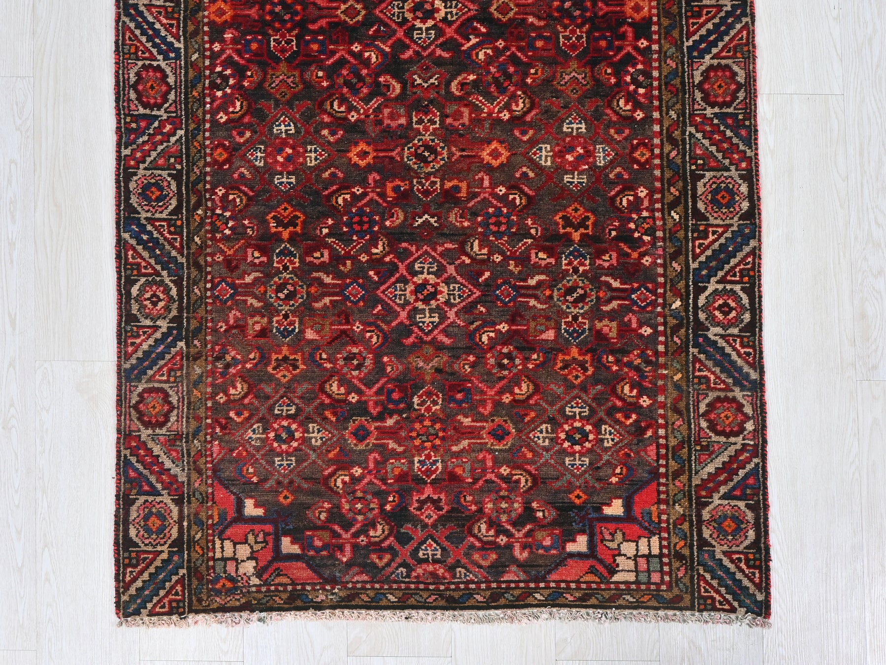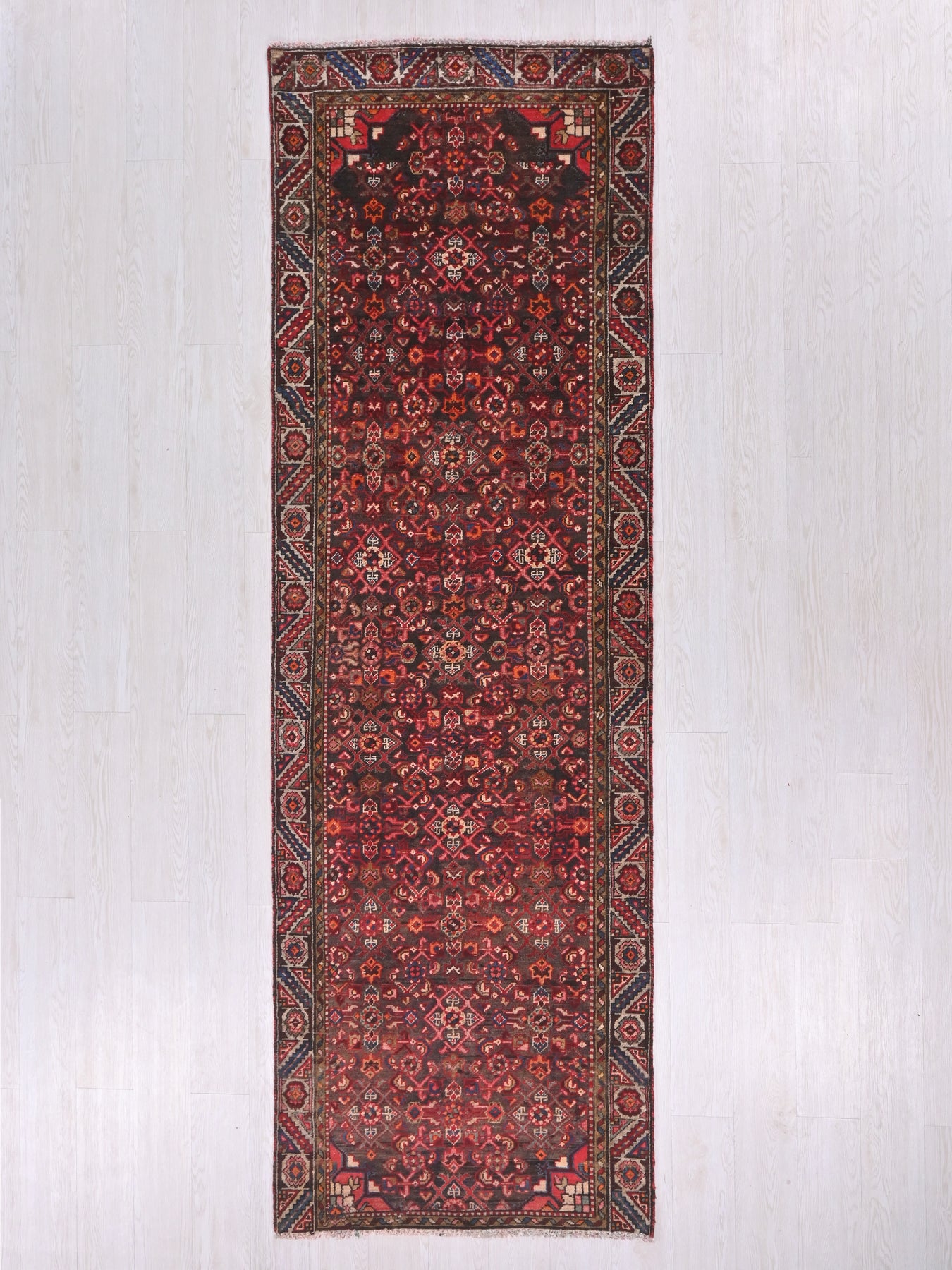 This is a hand-knotted, one-of-a-kind vintage rug. Due to the nature of this piece, there may be slight imperfections in its wear, shape, dimensions, and color. All of our rugs are professionally cleaned and repaired.