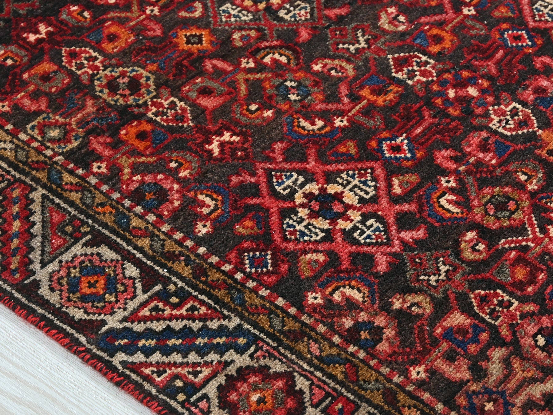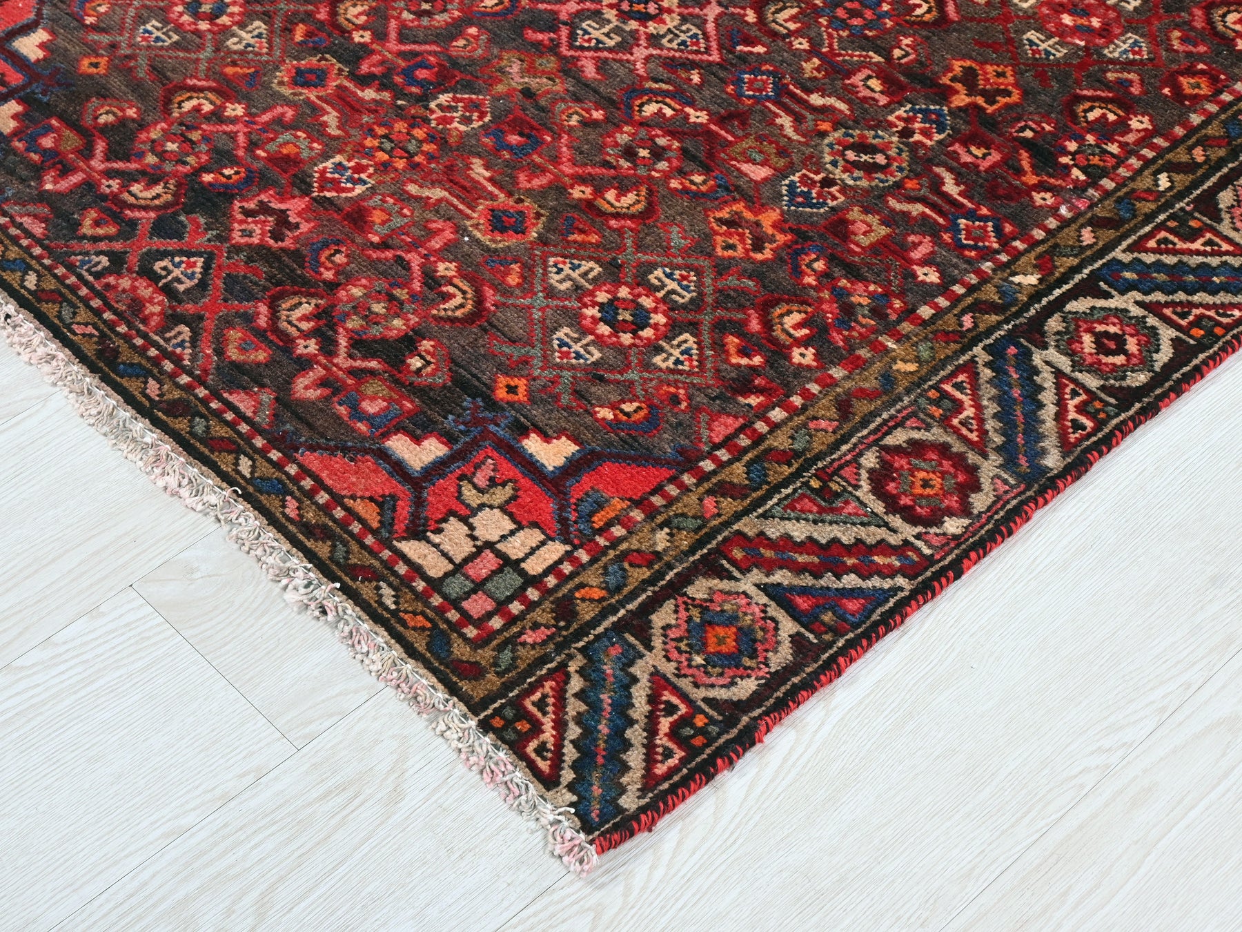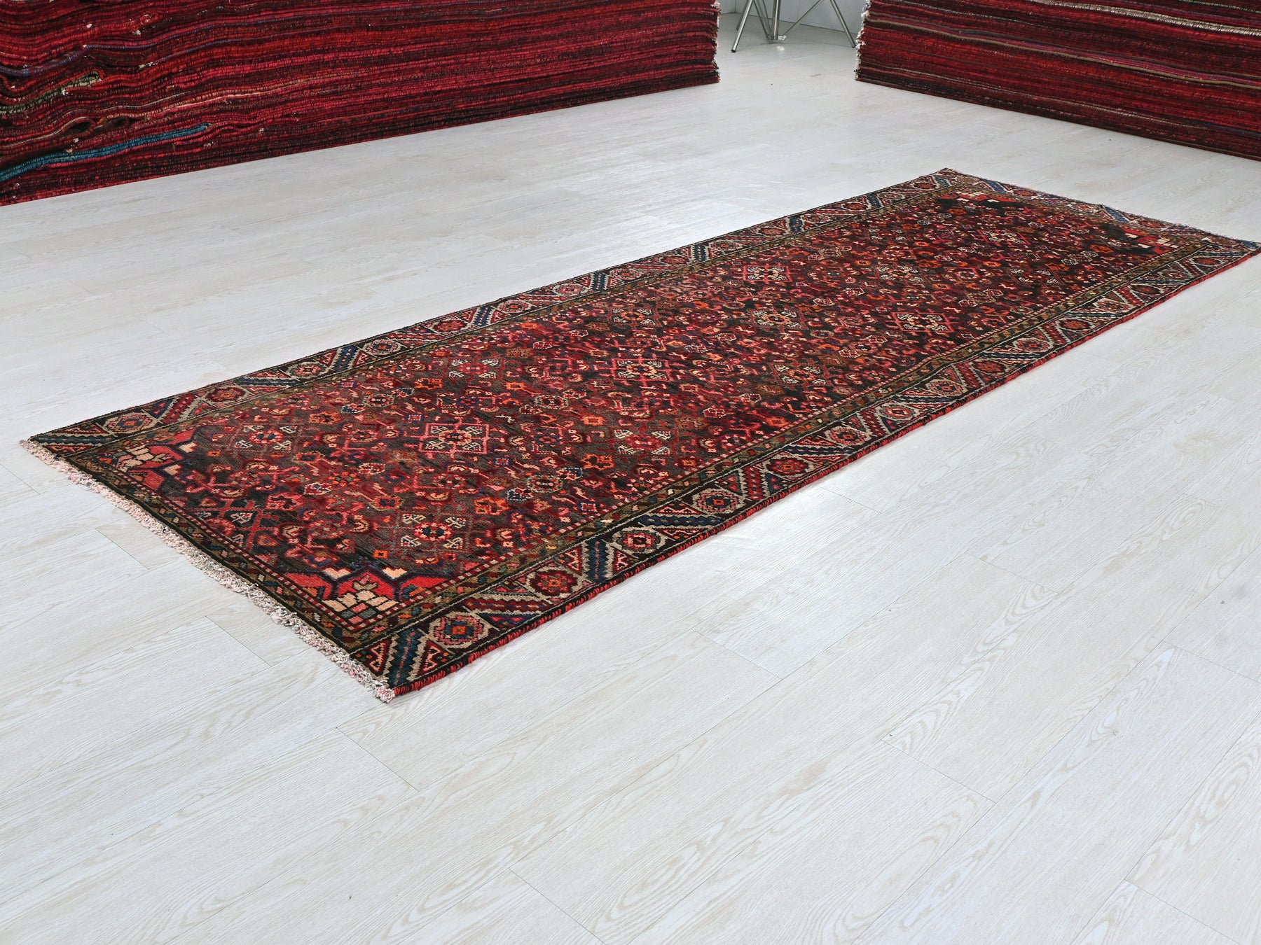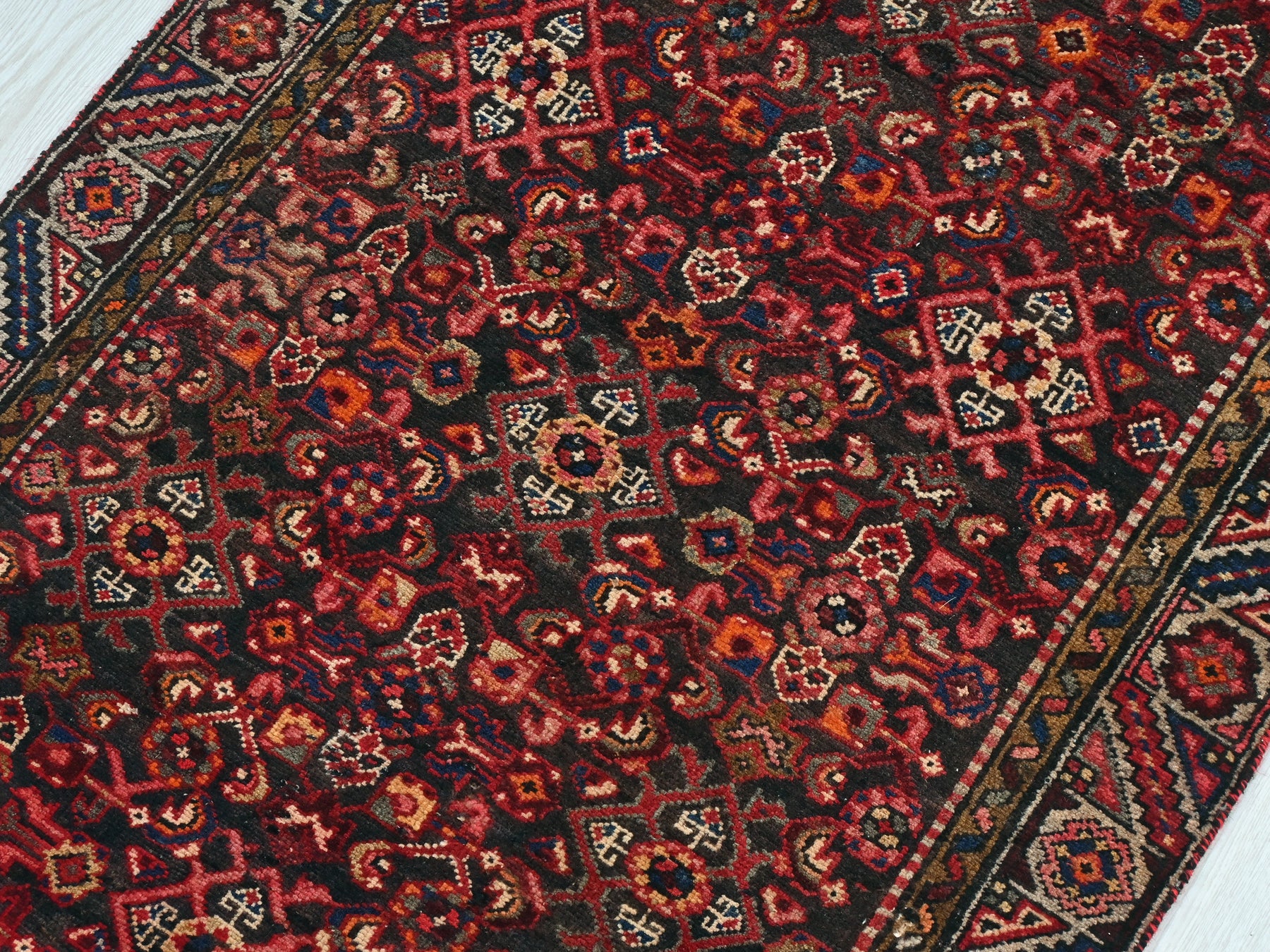 This is a hand-knotted, one-of-a-kind vintage rug. Due to the nature of this piece, there may be slight imperfections in its wear, shape, dimensions, and color. All of our rugs are professionally cleaned and repaired.