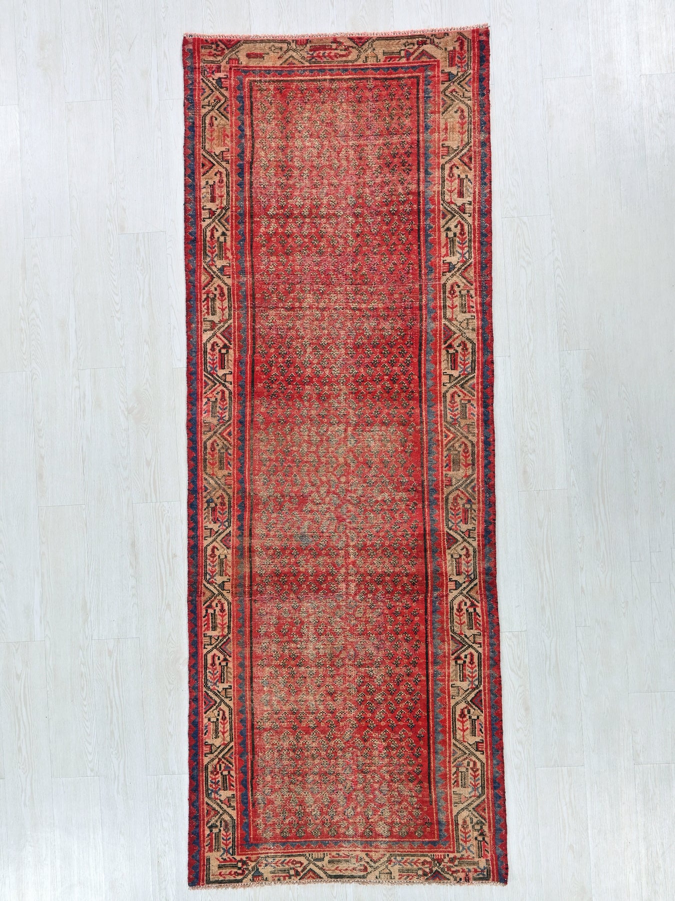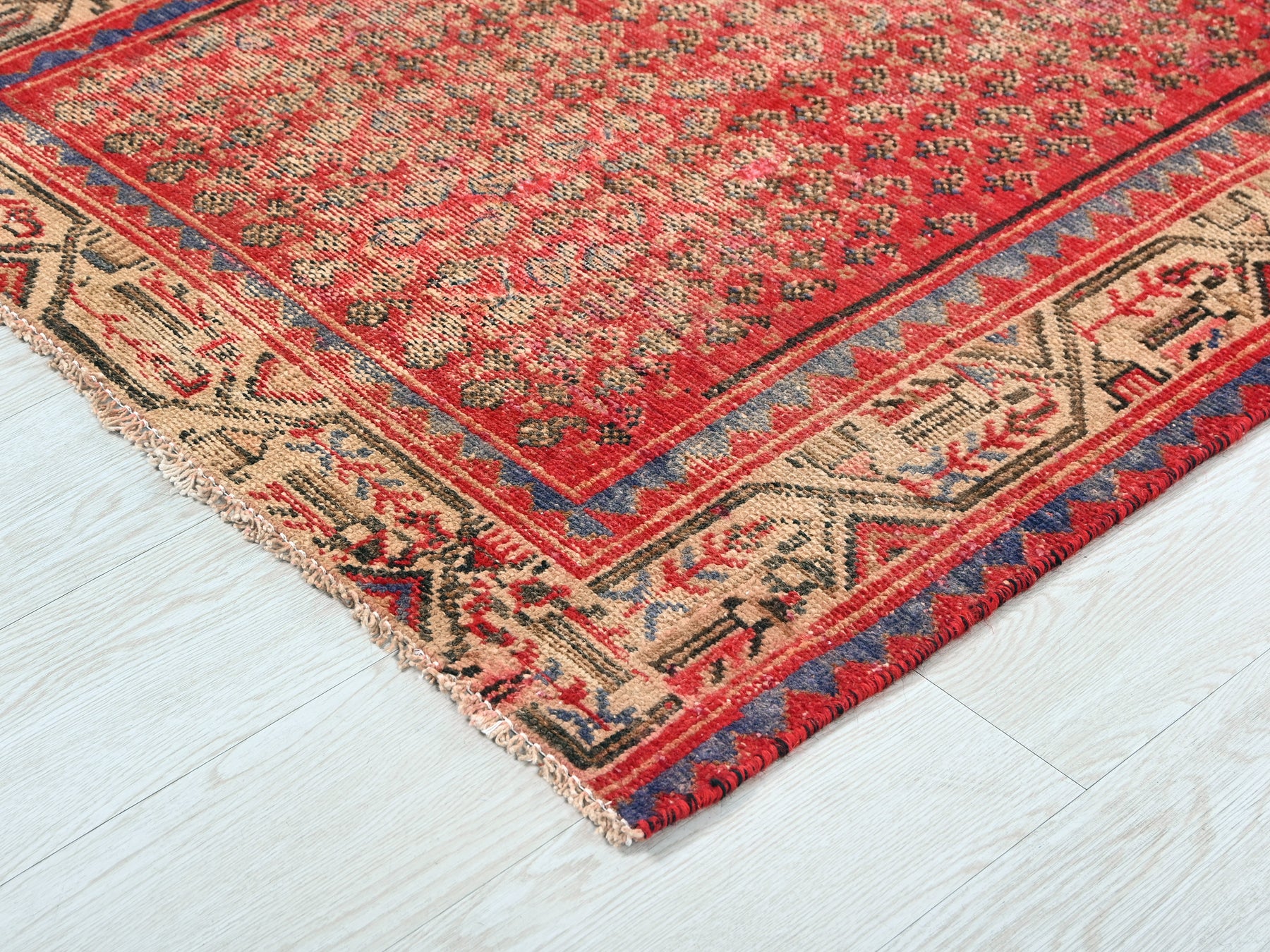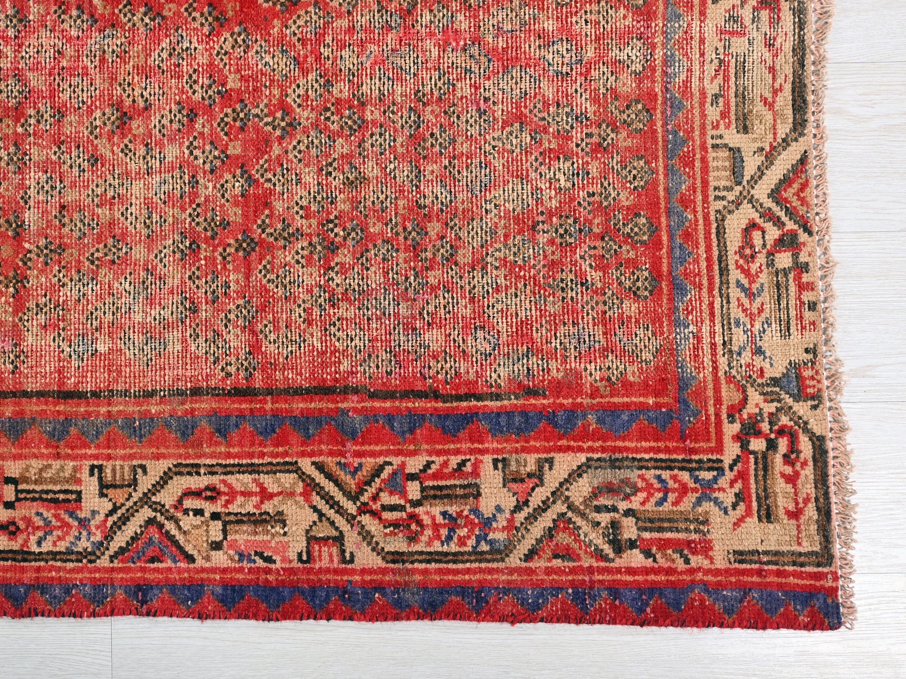 This is a hand-knotted, one-of-a-kind vintage rug. Due to the nature of this piece, there may be slight imperfections in its wear, shape, dimensions, and color. All of our rugs are professionally cleaned and repaired.