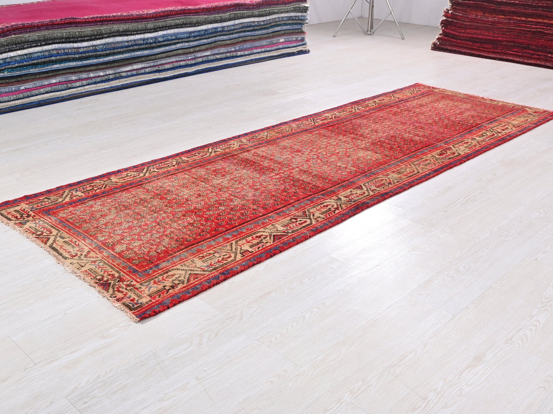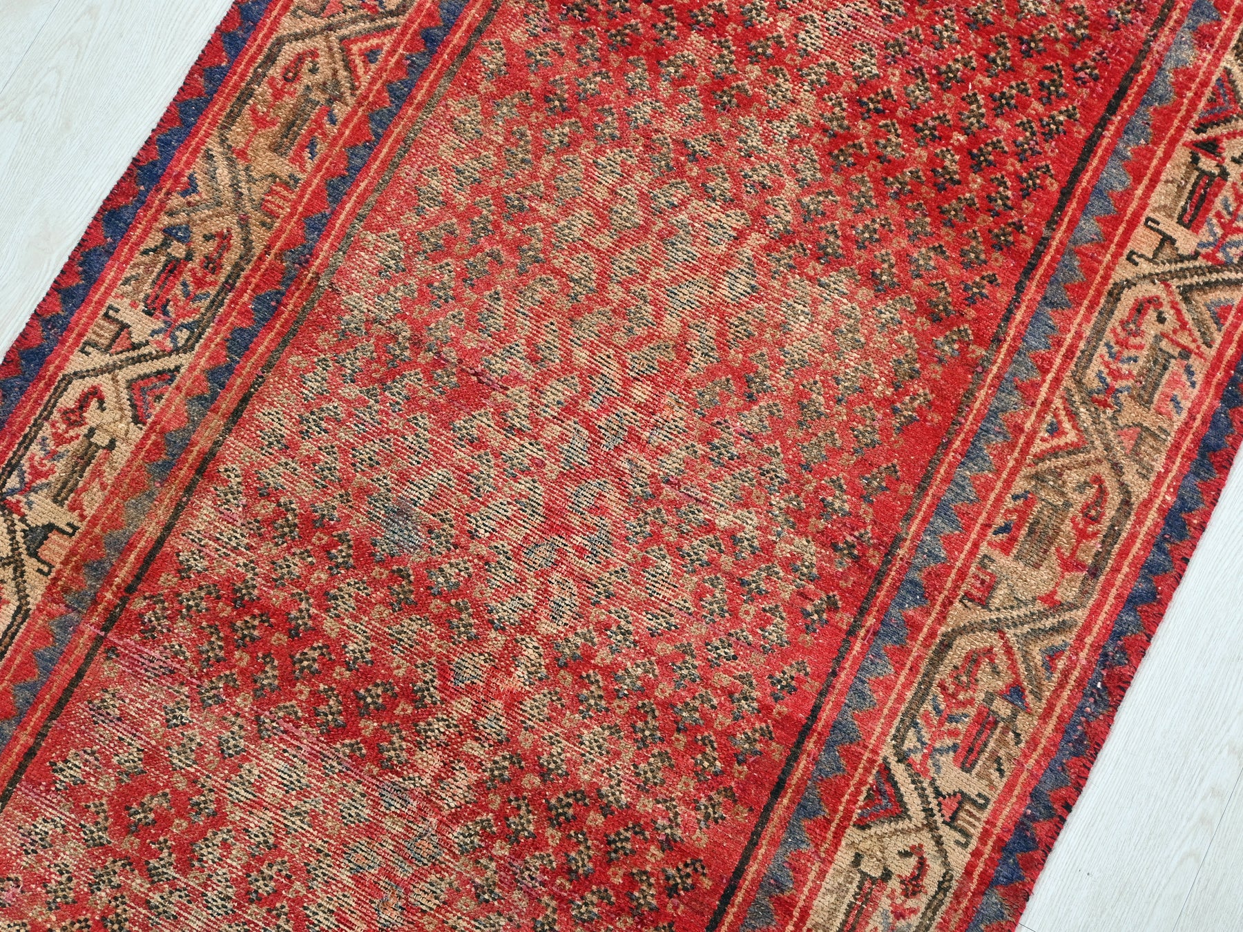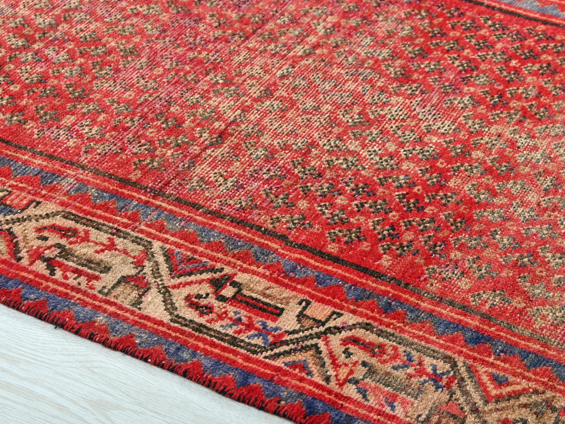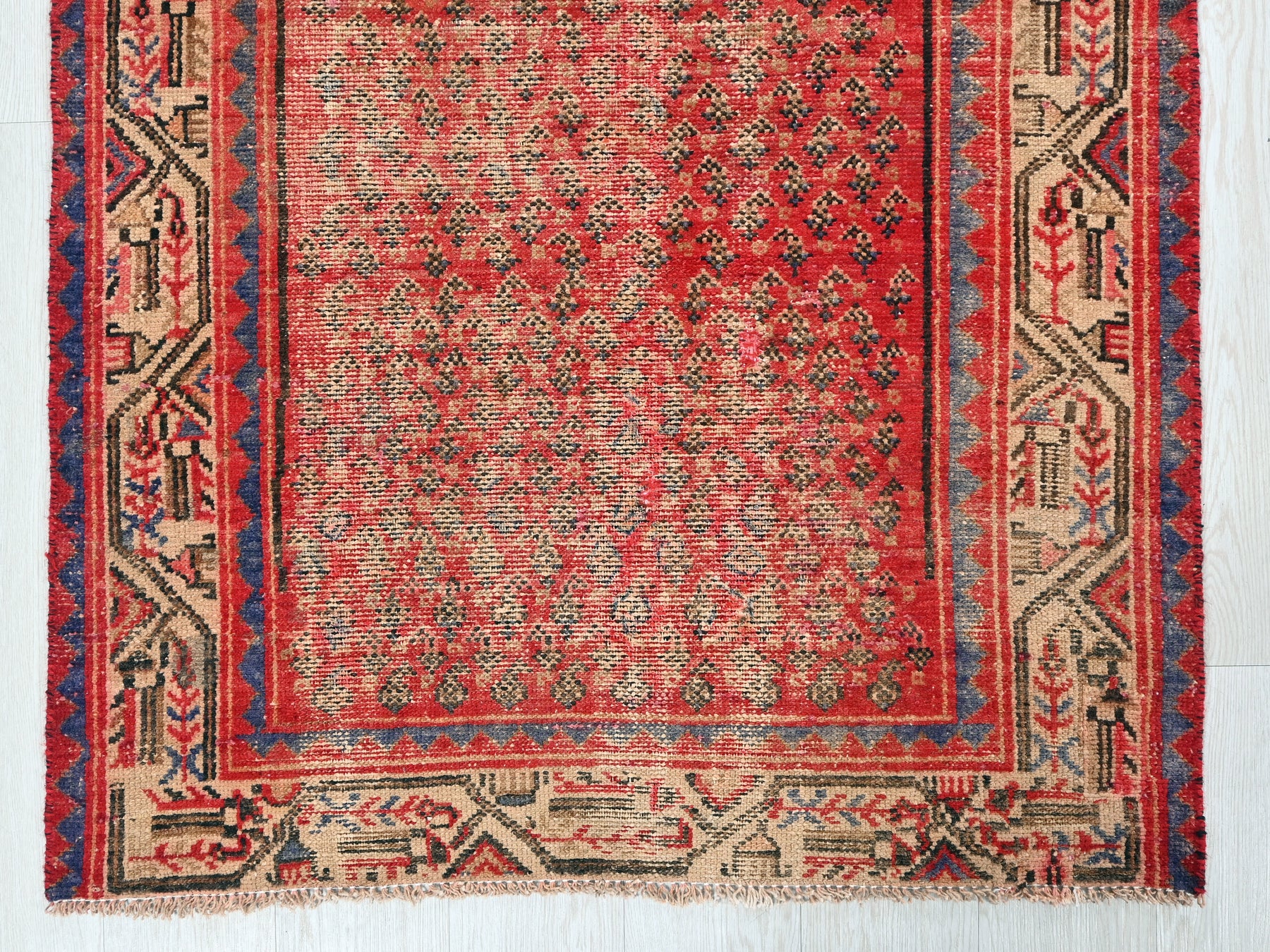 This is a hand-knotted, one-of-a-kind vintage rug. Due to the nature of this piece, there may be slight imperfections in its wear, shape, dimensions, and color. All of our rugs are professionally cleaned and repaired.