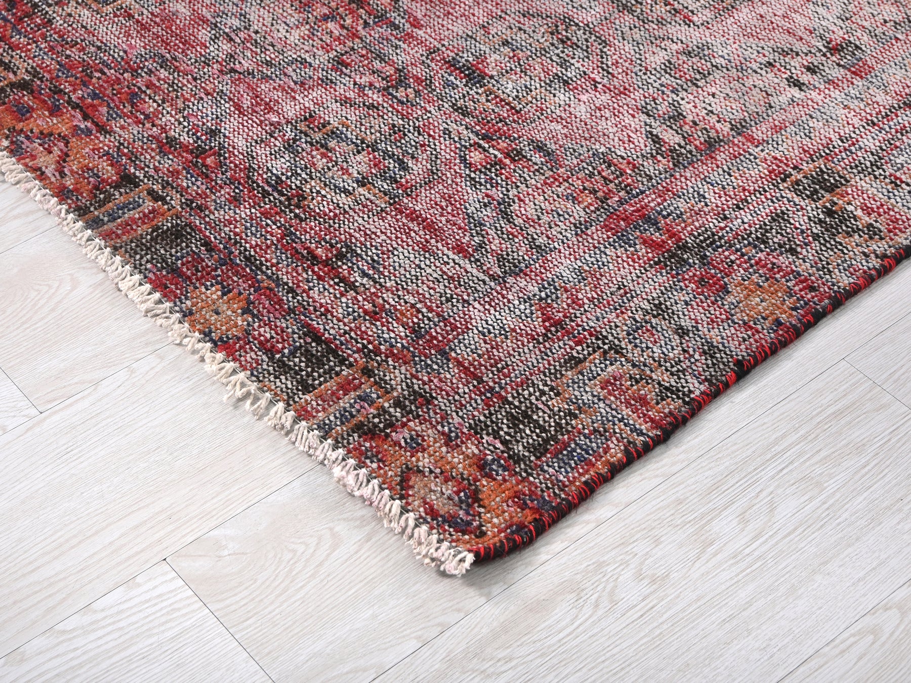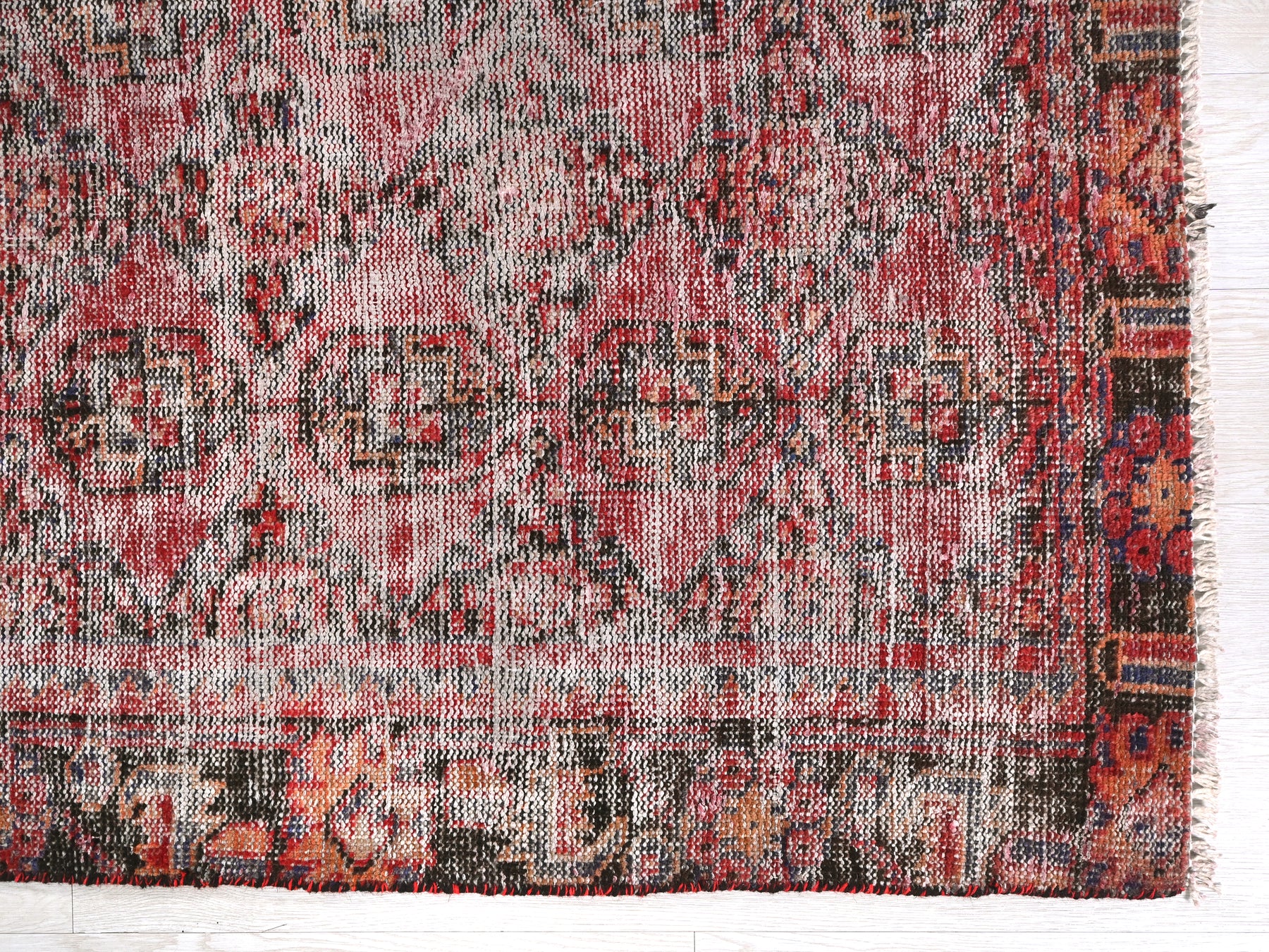 This is a hand-knotted, one-of-a-kind vintage rug. Due to the nature of this piece, there may be slight imperfections in its wear, shape, dimensions, and color. All of our rugs are professionally cleaned and repaired.