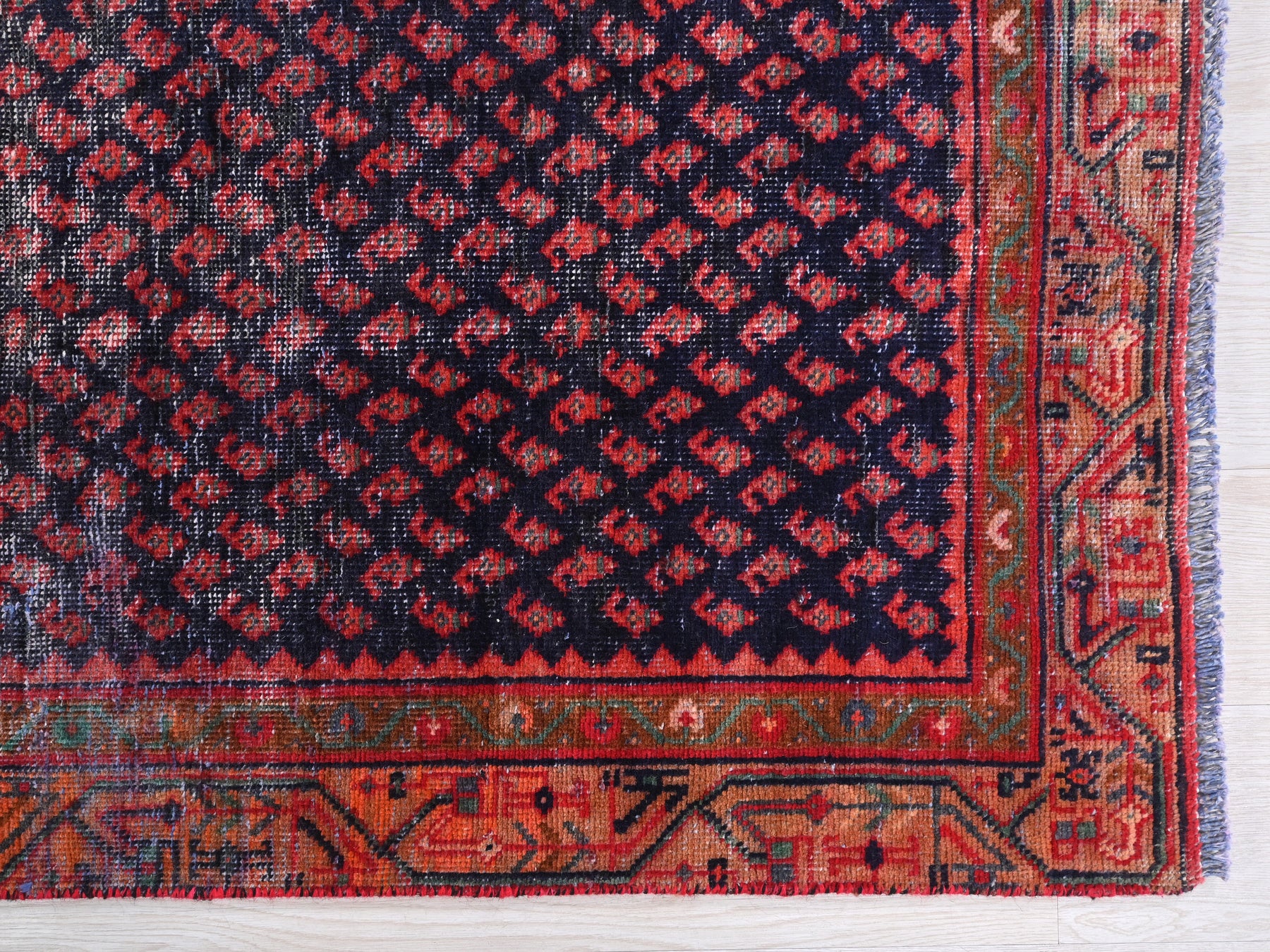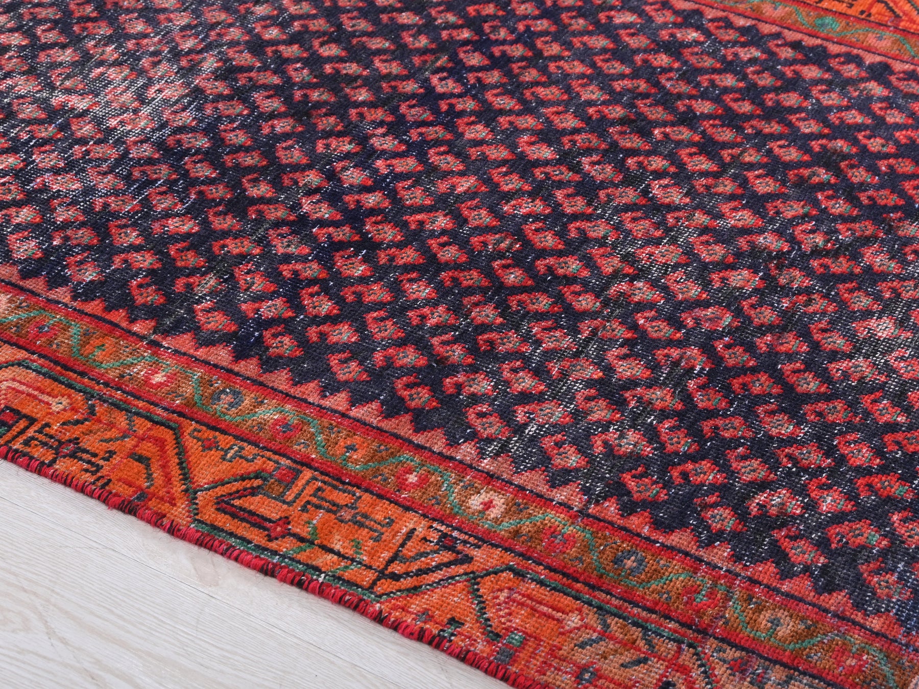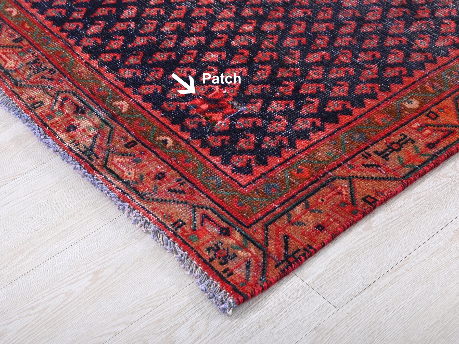 This is a hand-knotted, one-of-a-kind vintage rug. Due to the nature of this piece, there may be slight imperfections in its wear, shape, dimensions, and color. All of our rugs are professionally cleaned and repaired.