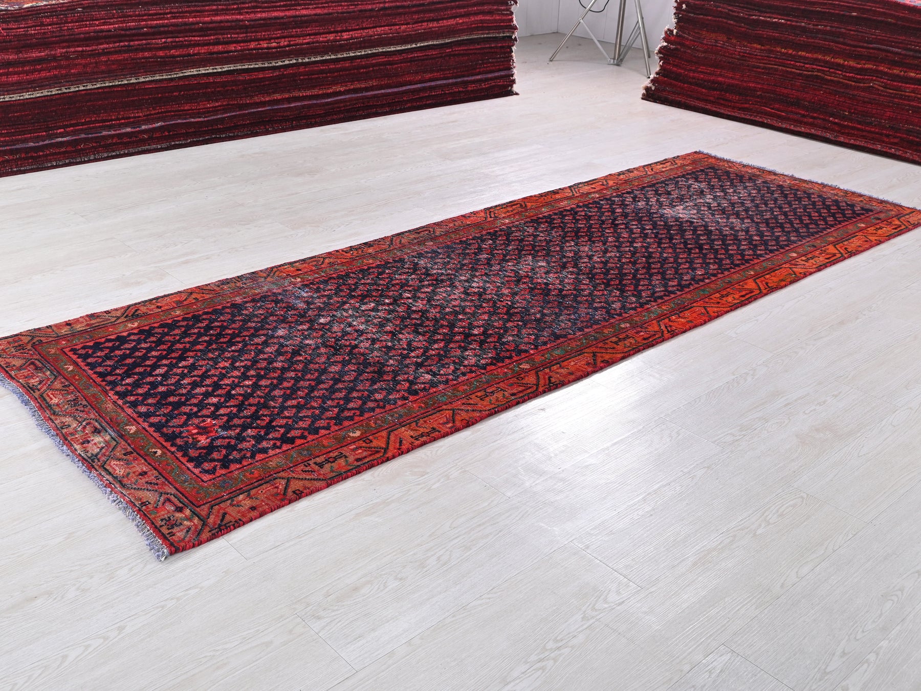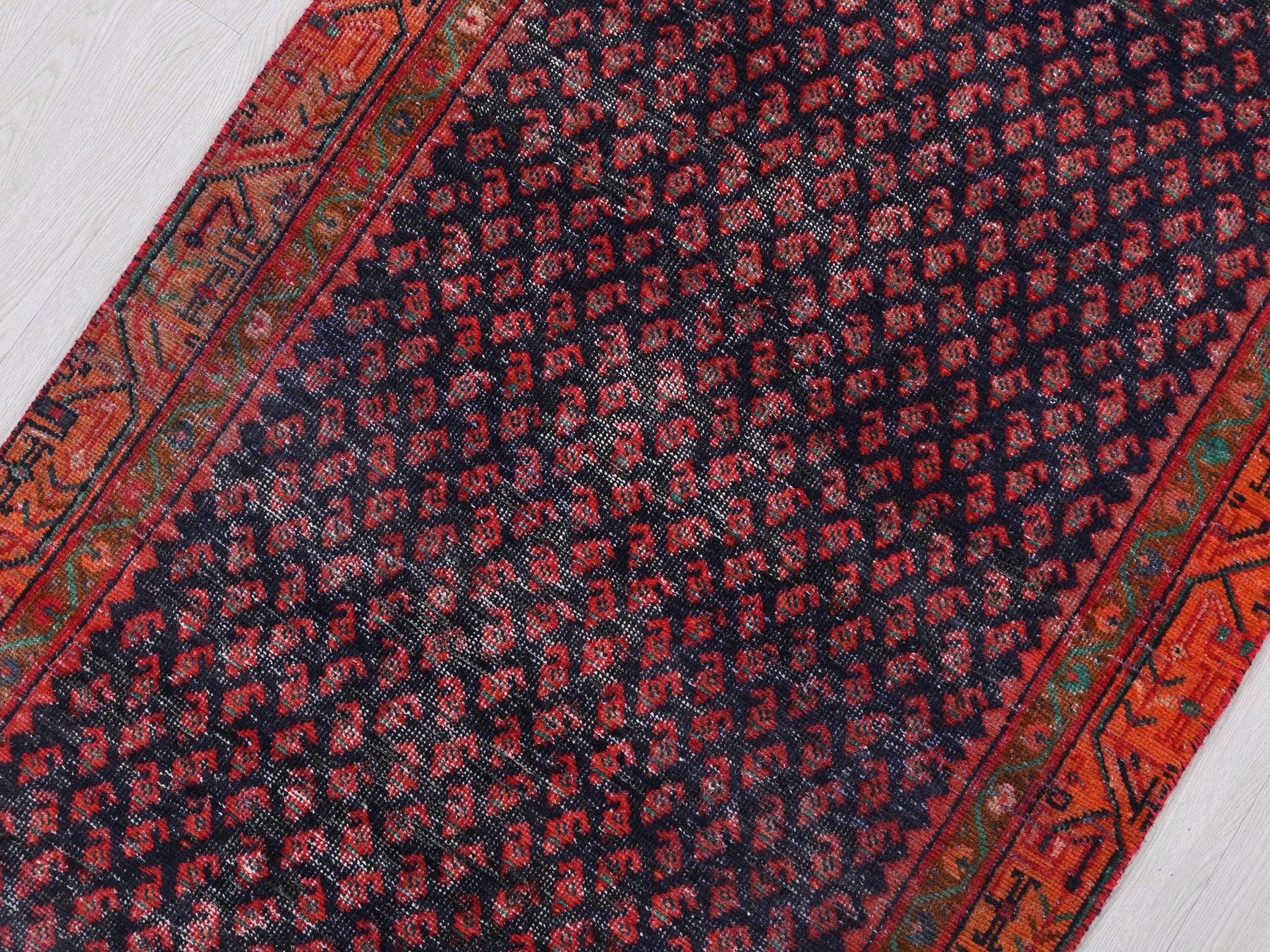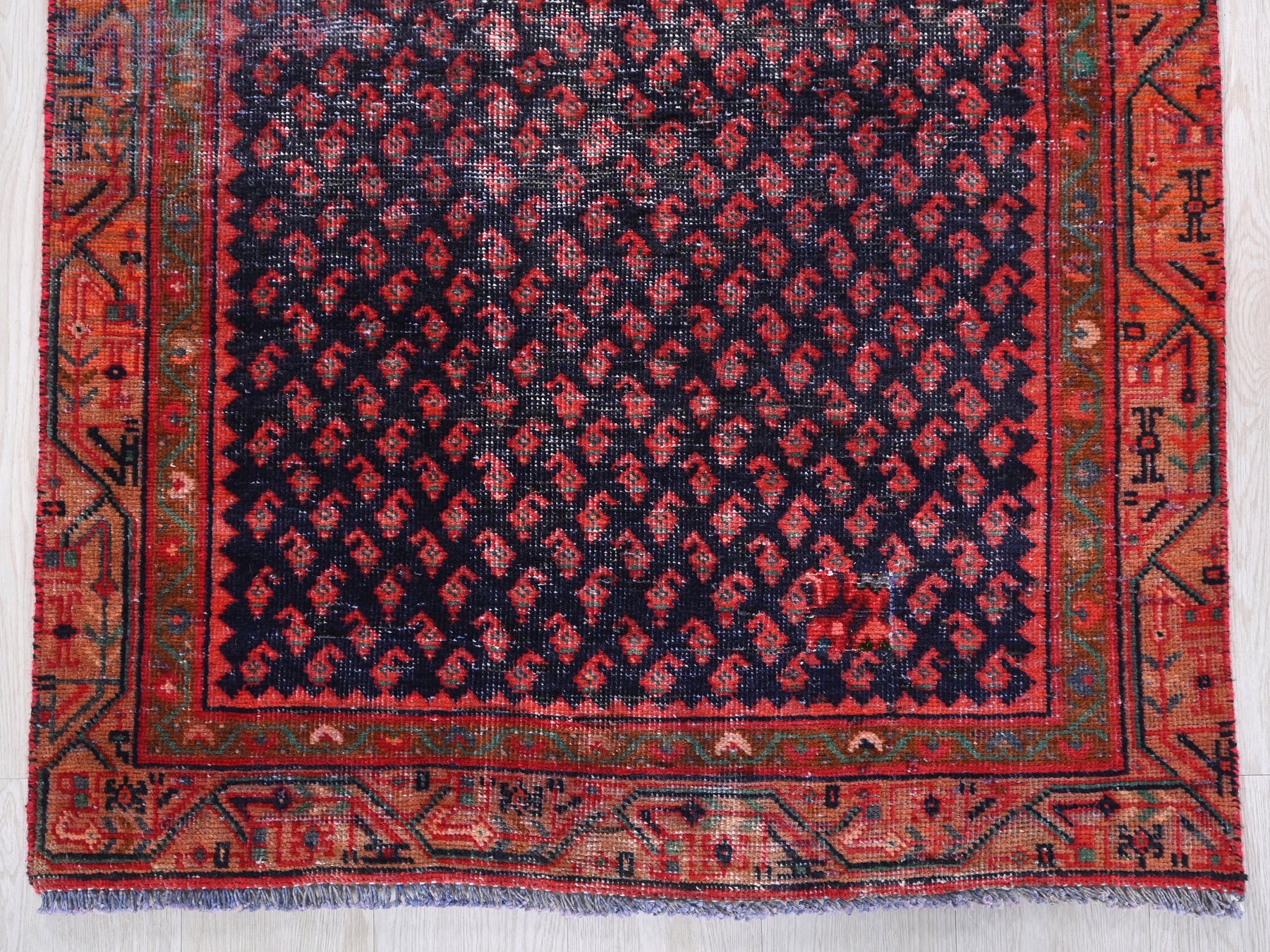 This is a hand-knotted, one-of-a-kind vintage rug. Due to the nature of this piece, there may be slight imperfections in its wear, shape, dimensions, and color. All of our rugs are professionally cleaned and repaired.