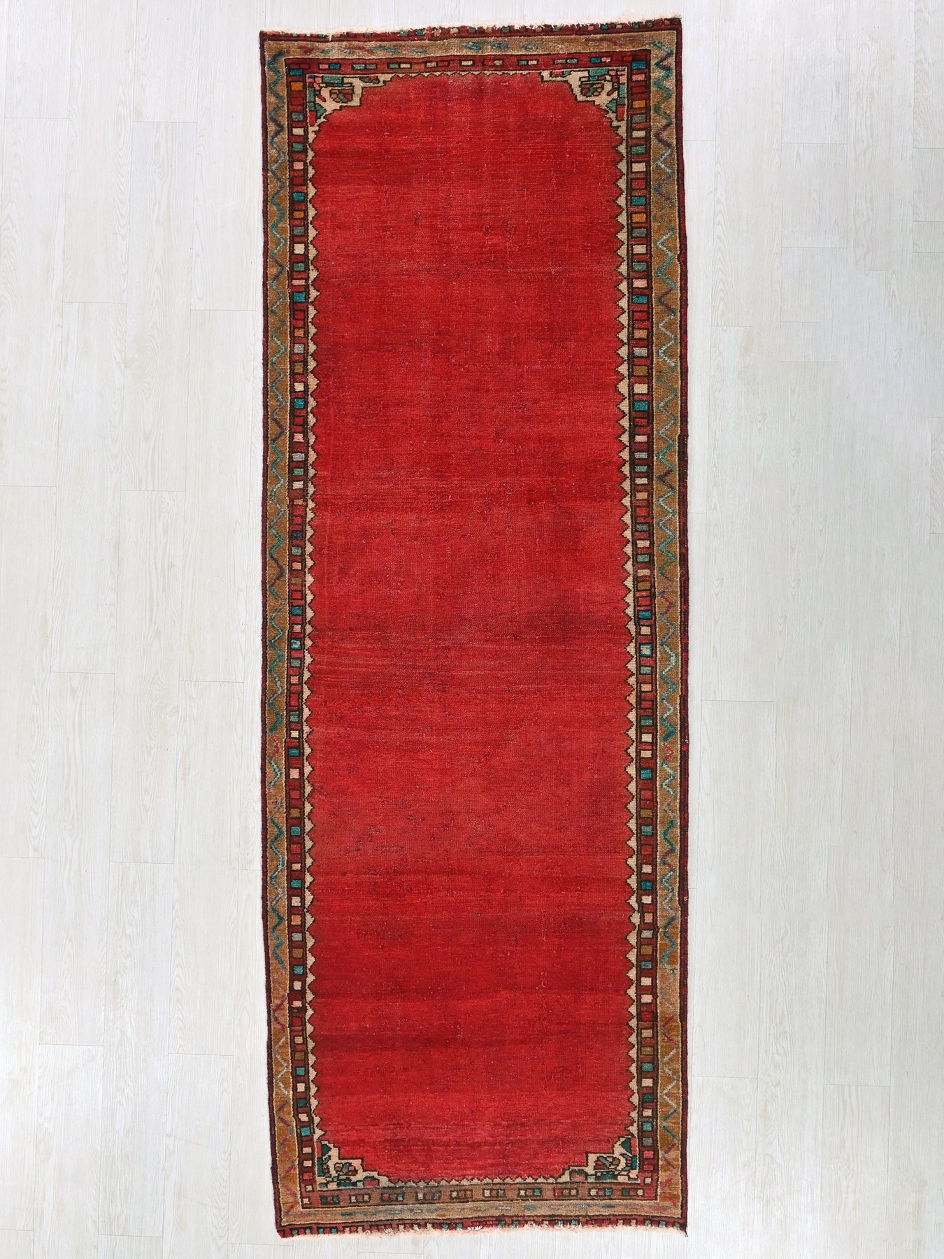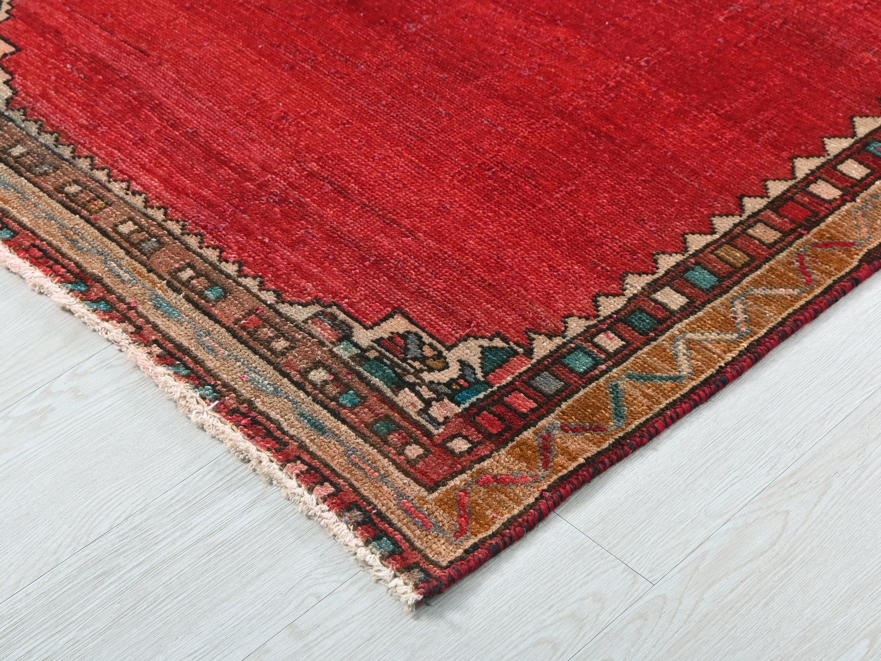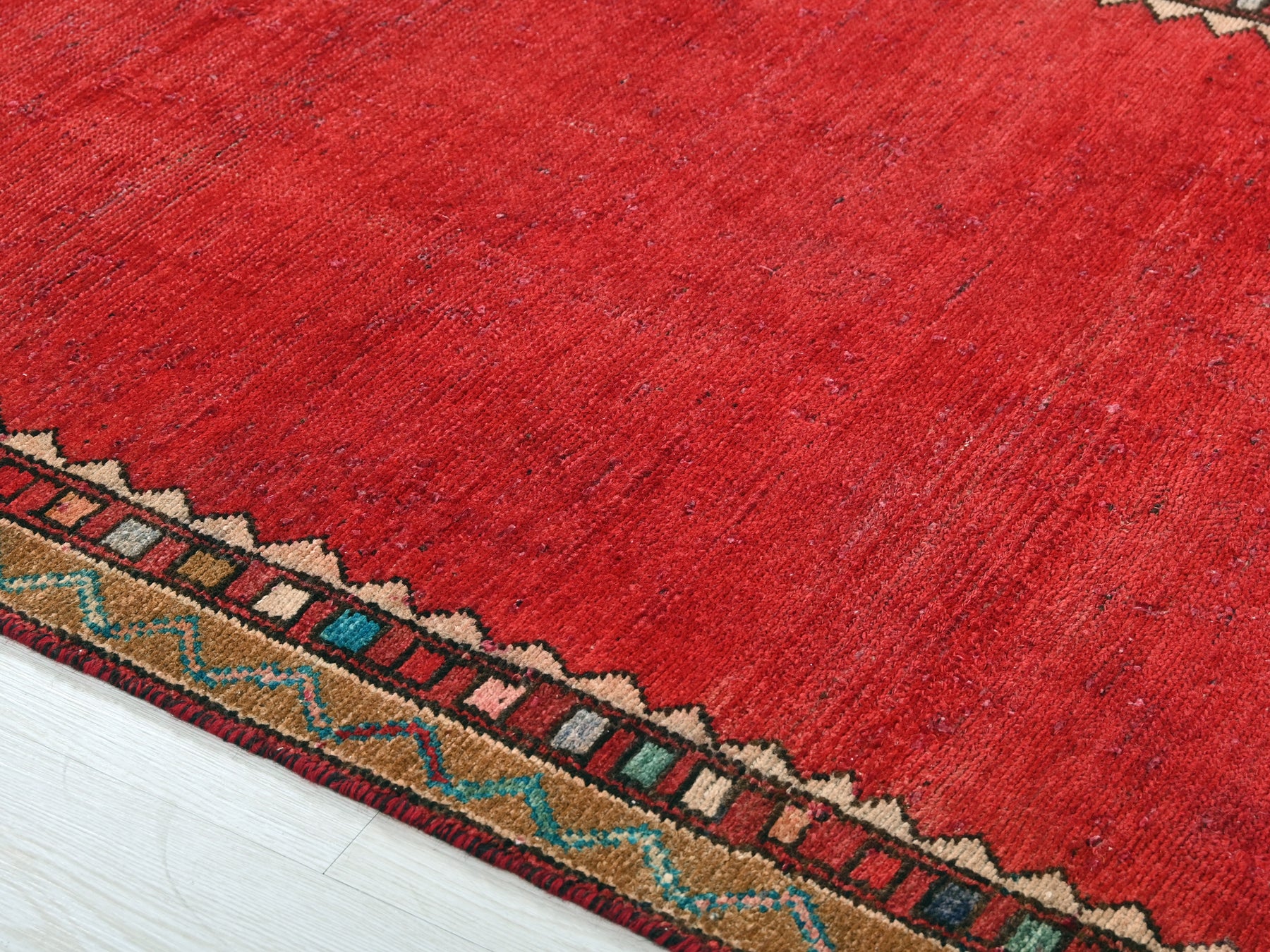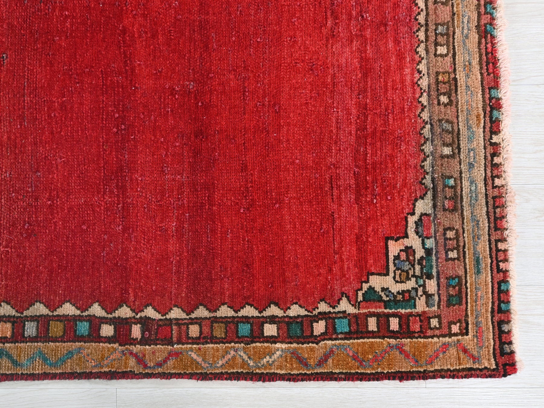 This is a hand-knotted, one-of-a-kind vintage rug. Due to the nature of this piece, there may be slight imperfections in its wear, shape, dimensions, and color. All of our rugs are professionally cleaned and repaired.