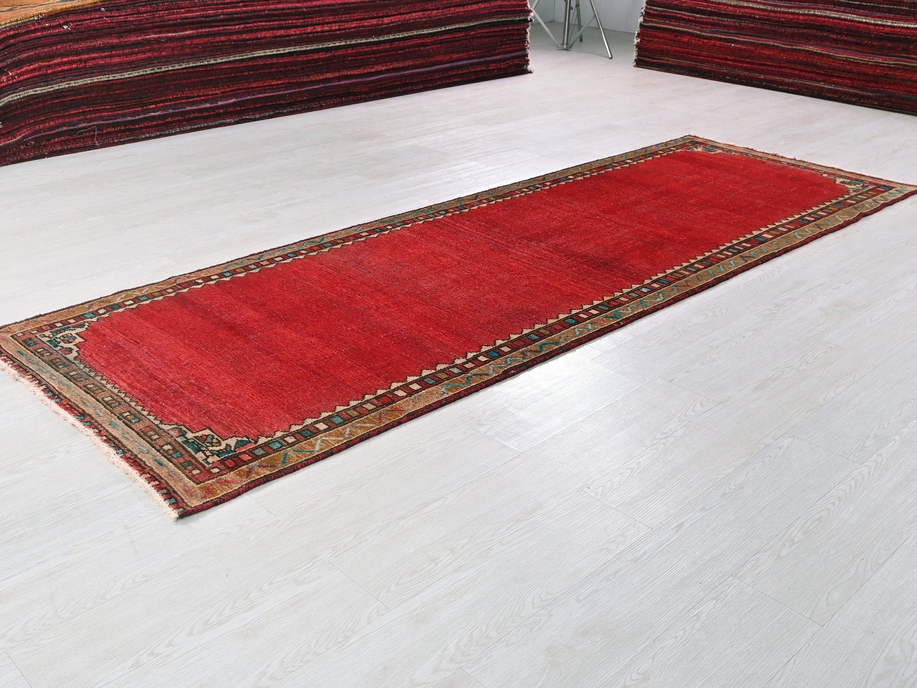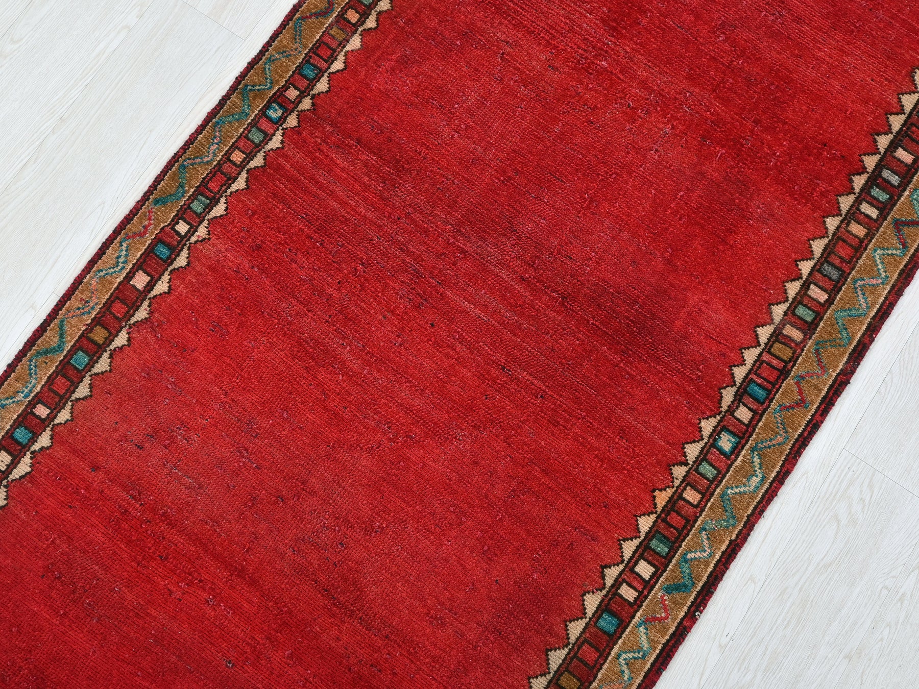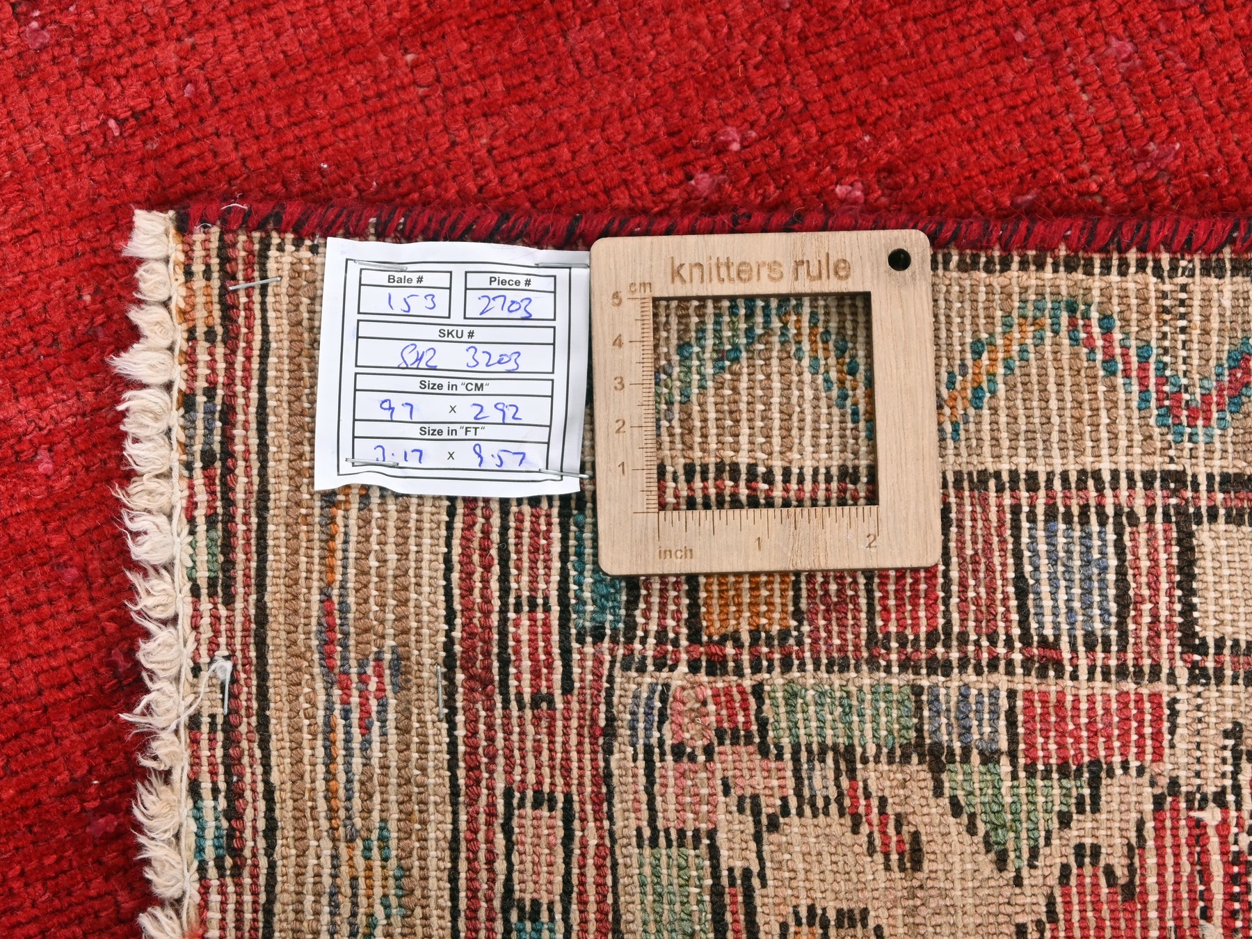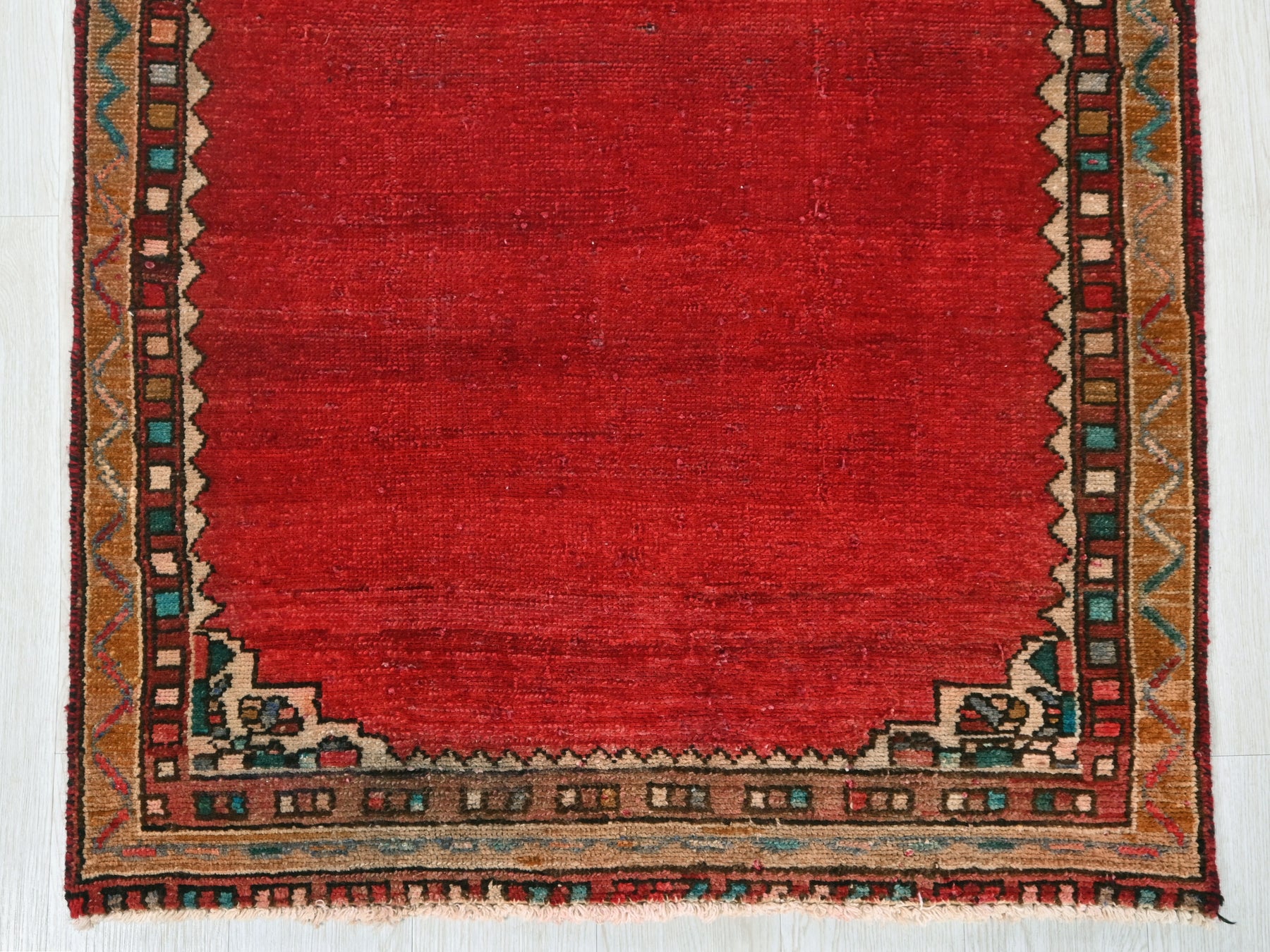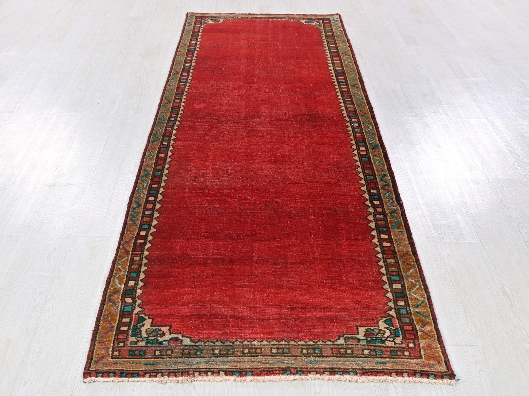 This is a hand-knotted, one-of-a-kind vintage rug. Due to the nature of this piece, there may be slight imperfections in its wear, shape, dimensions, and color. All of our rugs are professionally cleaned and repaired.