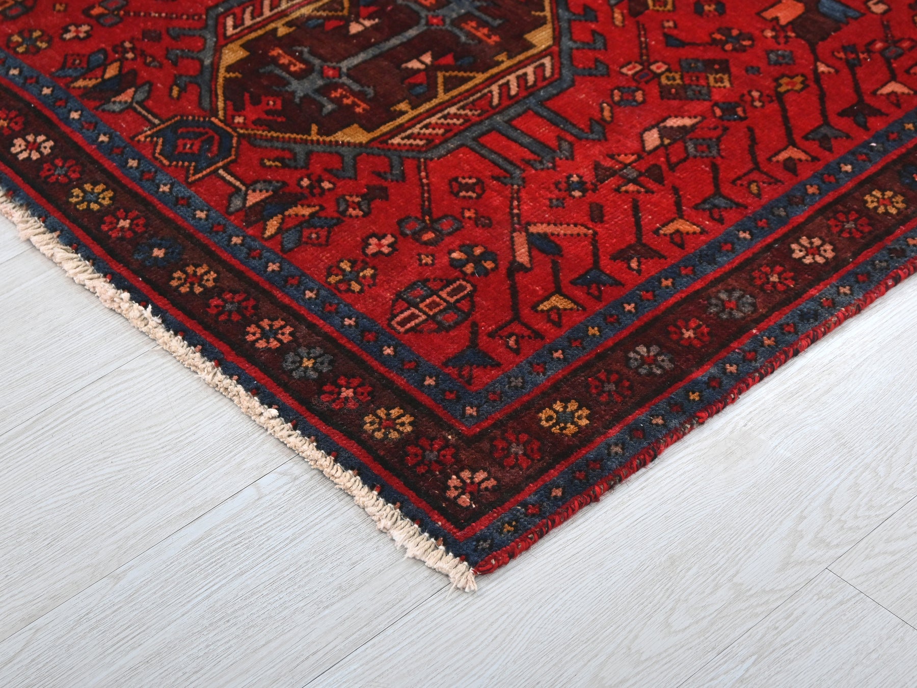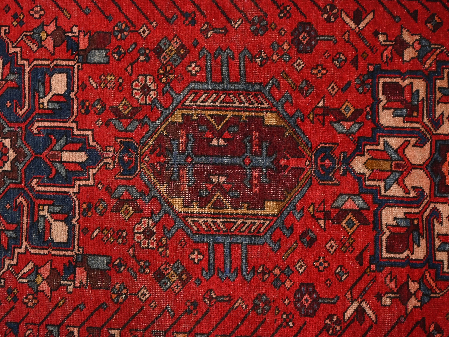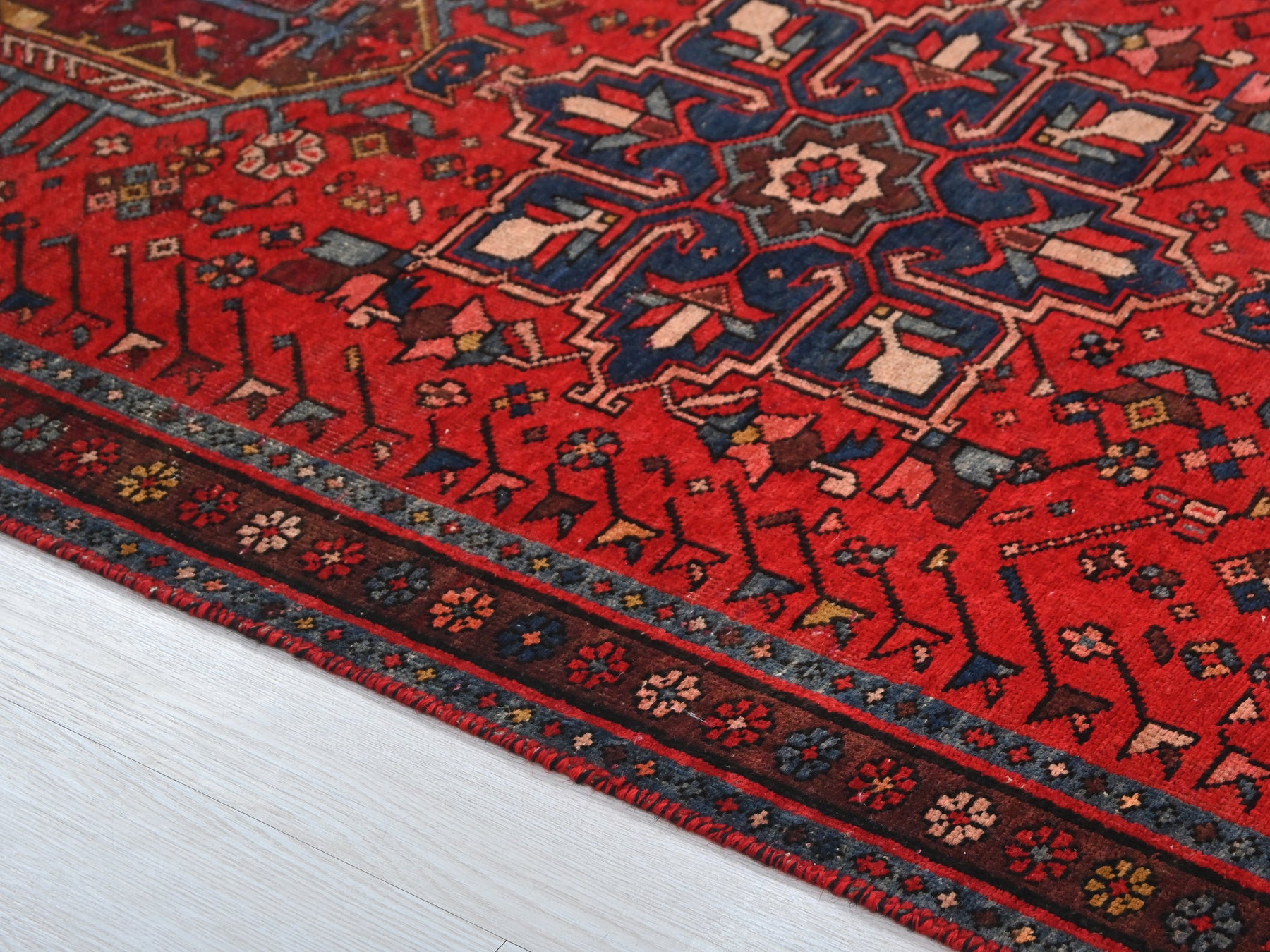 This is a hand-knotted, one-of-a-kind vintage rug. Due to the nature of this piece, there may be slight imperfections in its wear, shape, dimensions, and color. All of our rugs are professionally cleaned and repaired.