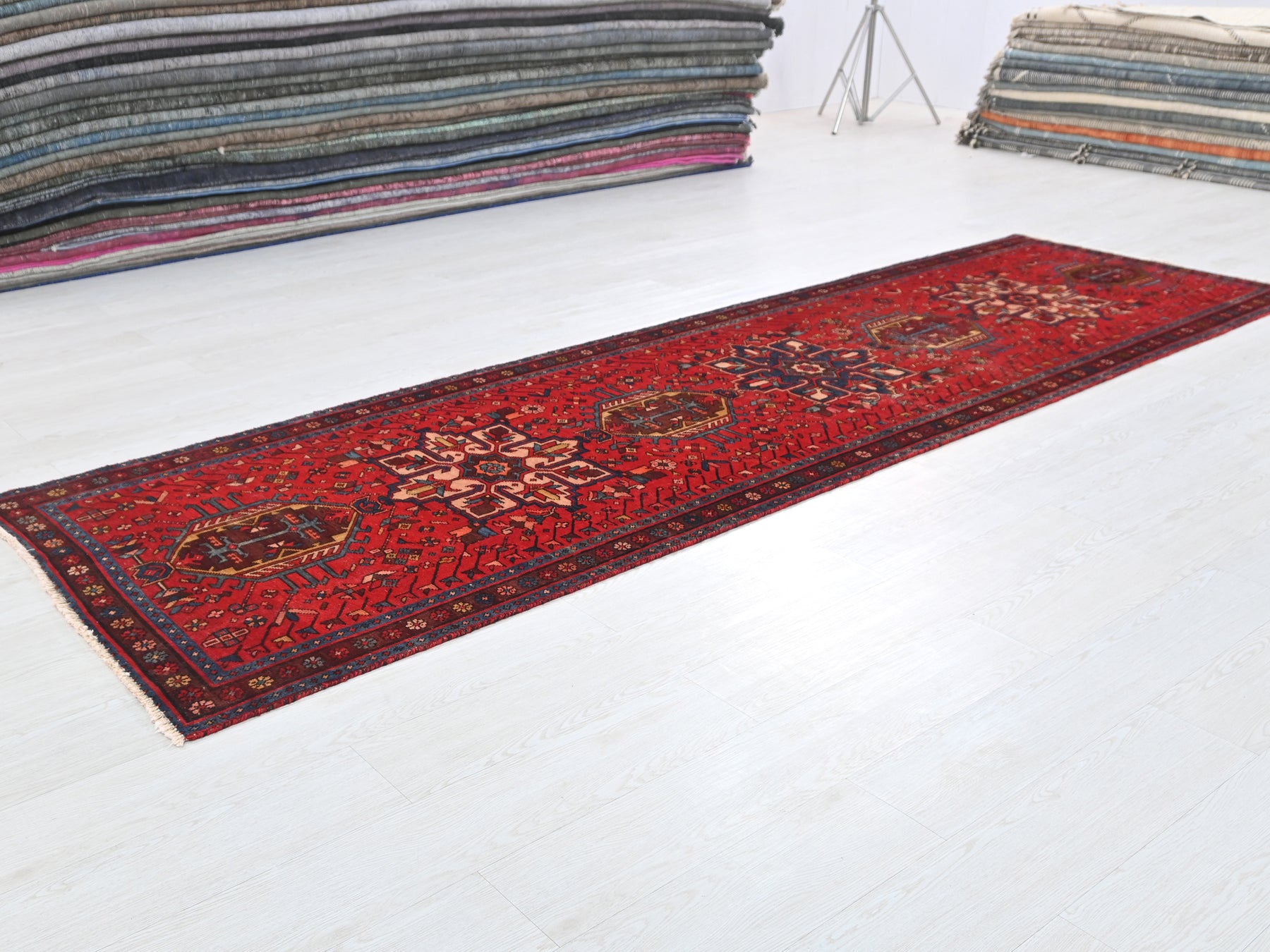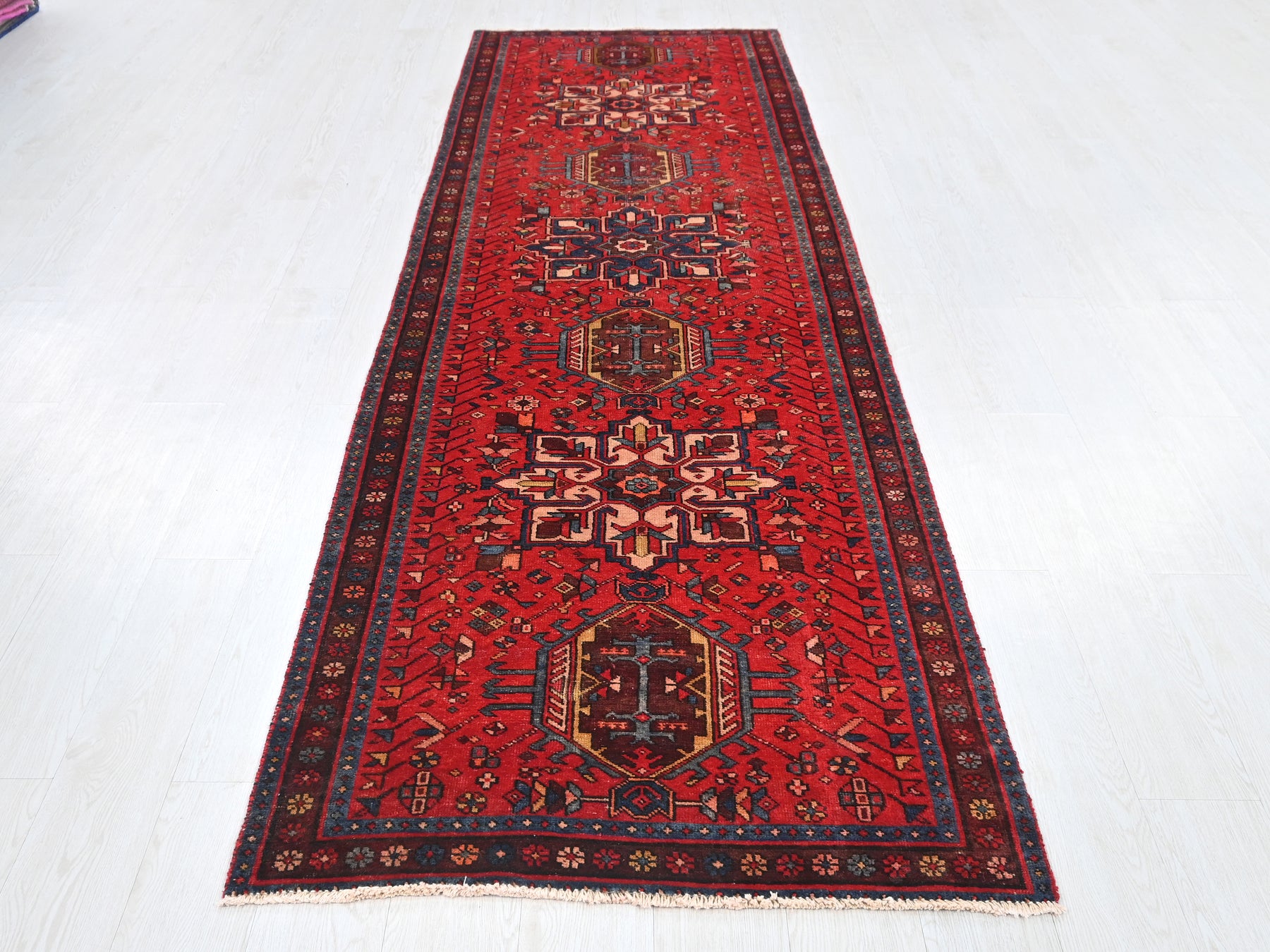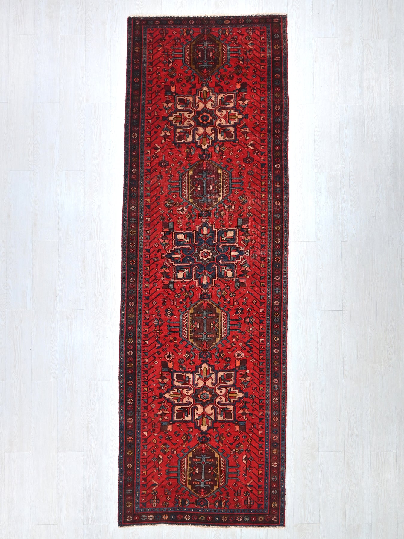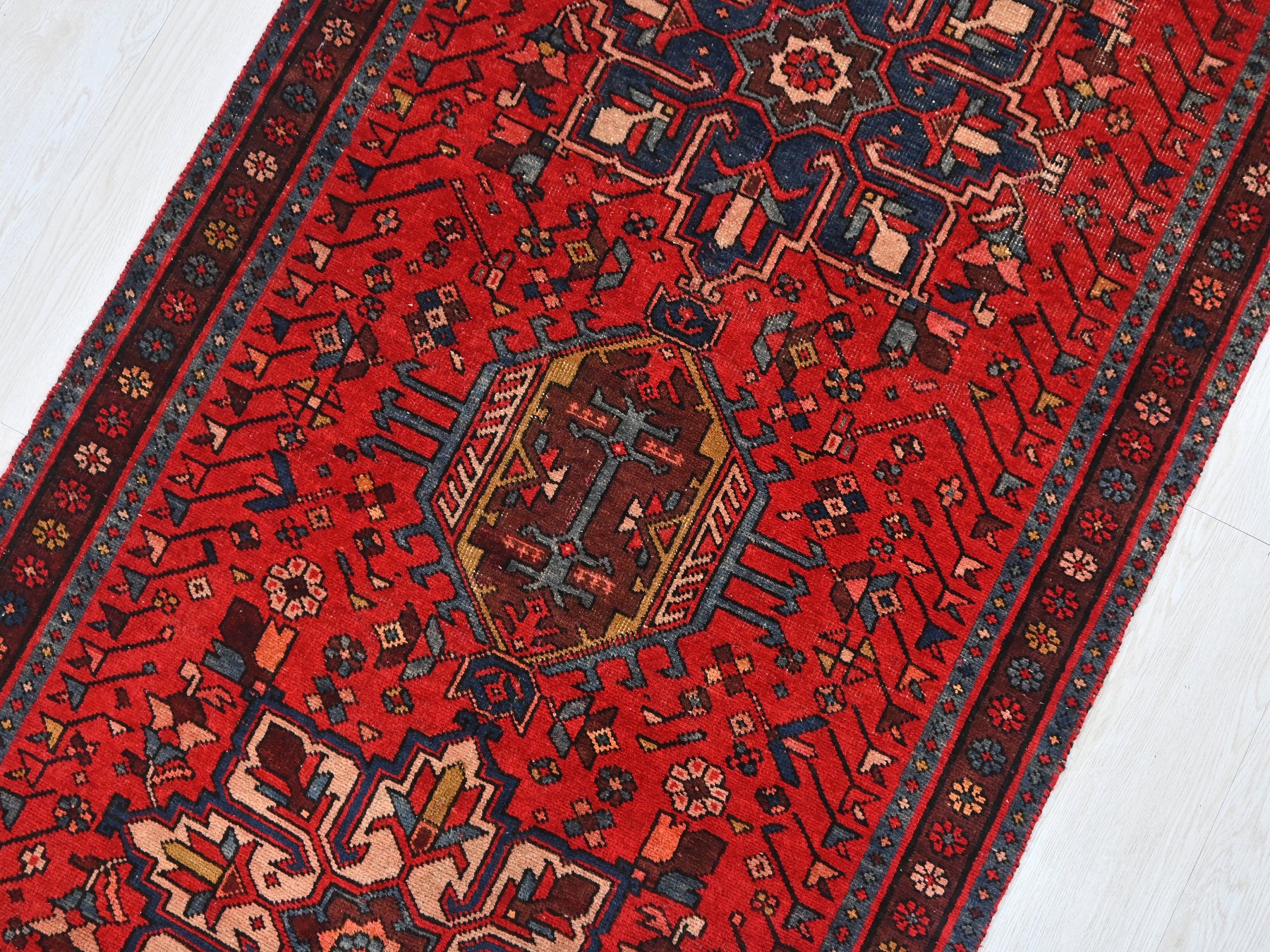 This is a hand-knotted, one-of-a-kind vintage rug. Due to the nature of this piece, there may be slight imperfections in its wear, shape, dimensions, and color. All of our rugs are professionally cleaned and repaired.