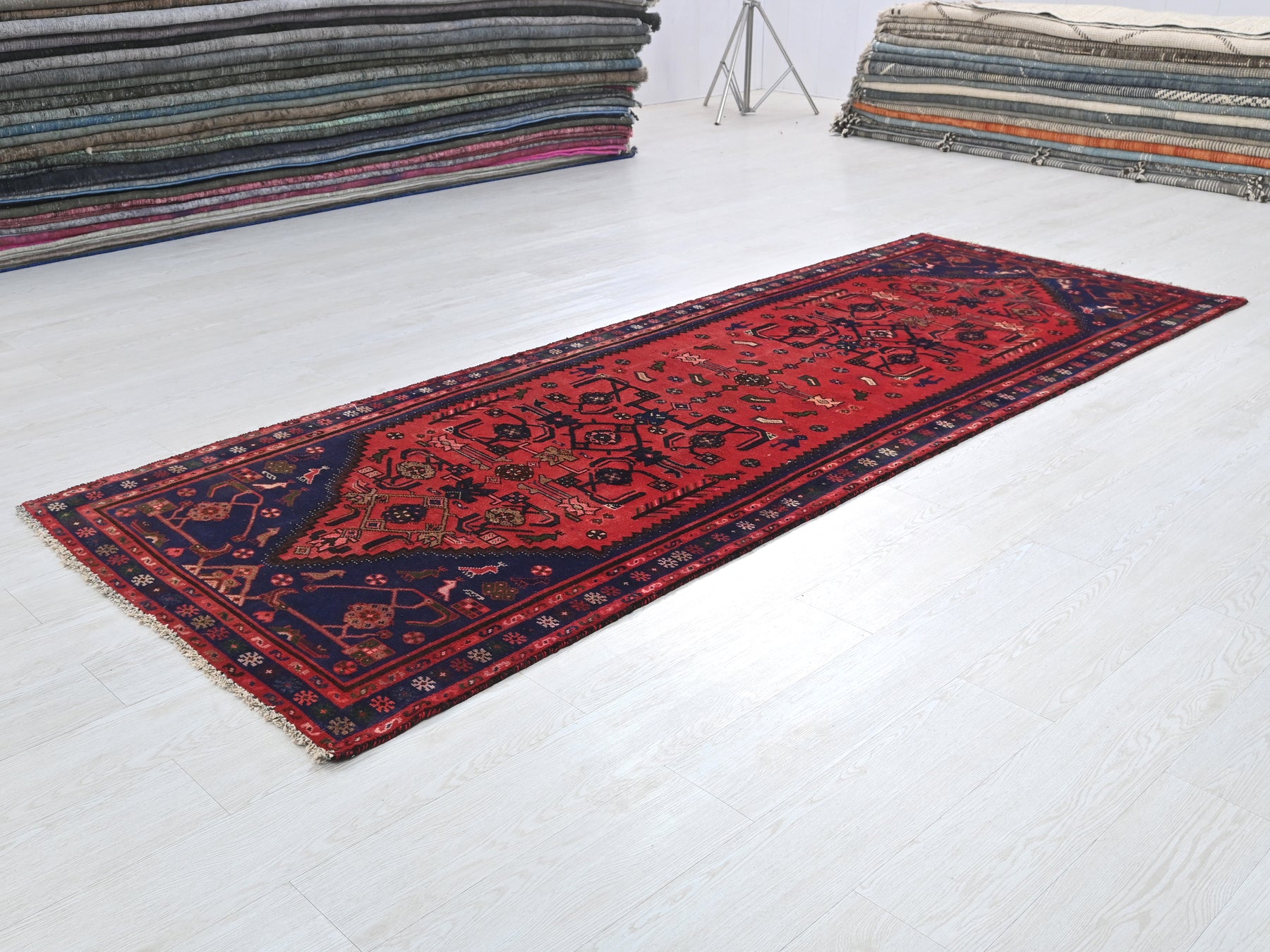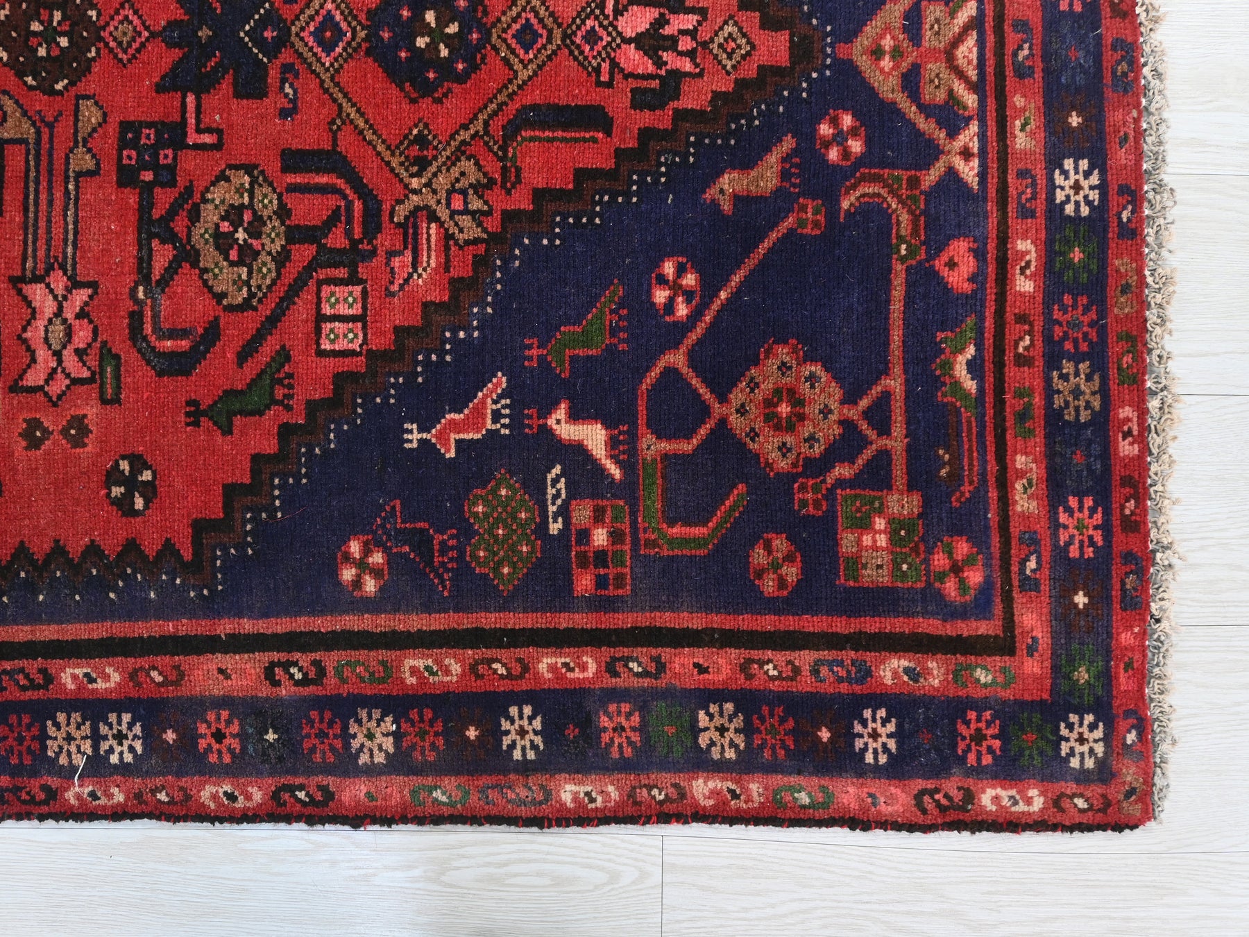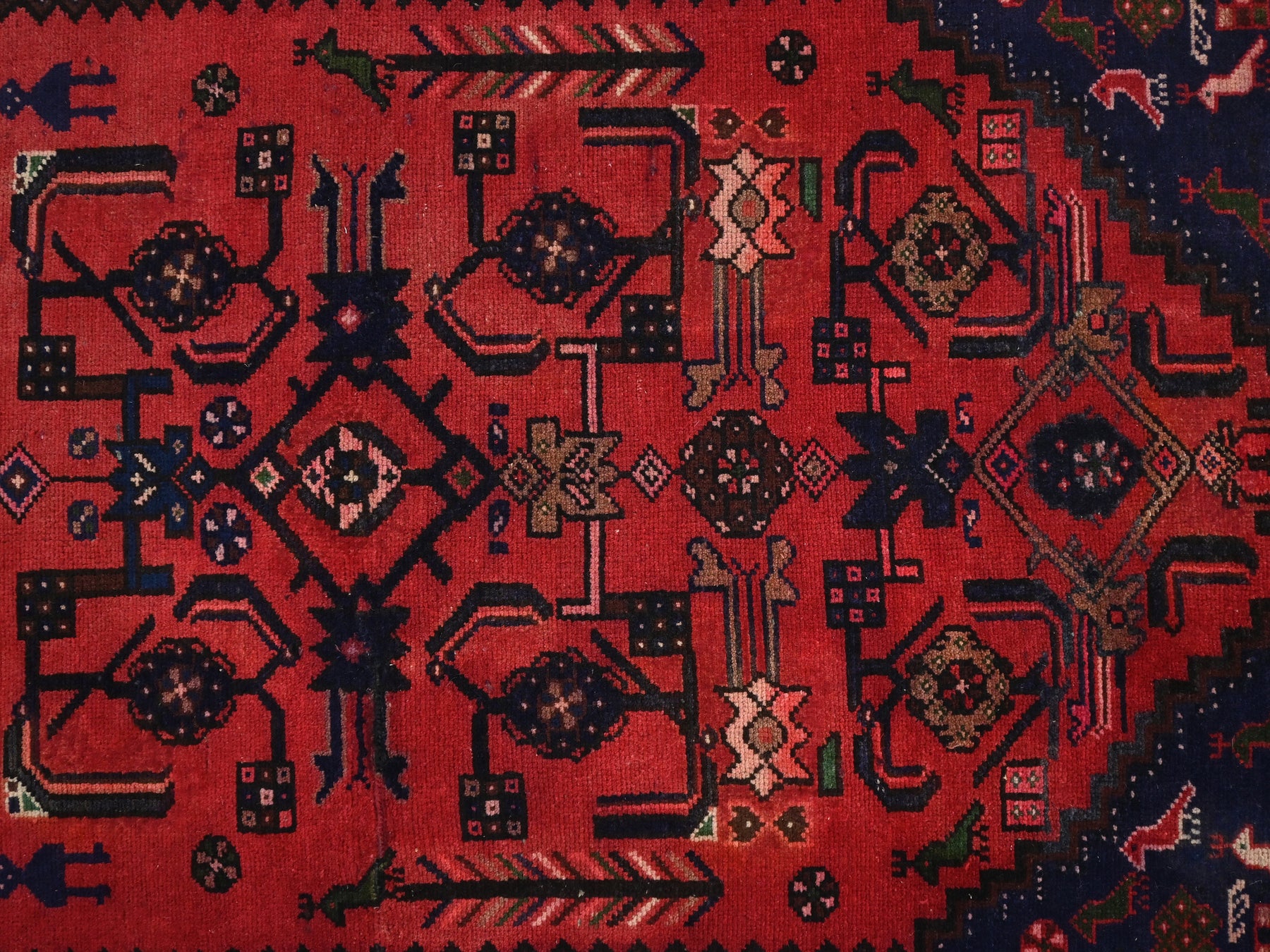 This is a hand-knotted, one-of-a-kind vintage rug. Due to the nature of this piece, there may be slight imperfections in its wear, shape, dimensions, and color. All of our rugs are professionally cleaned and repaired.