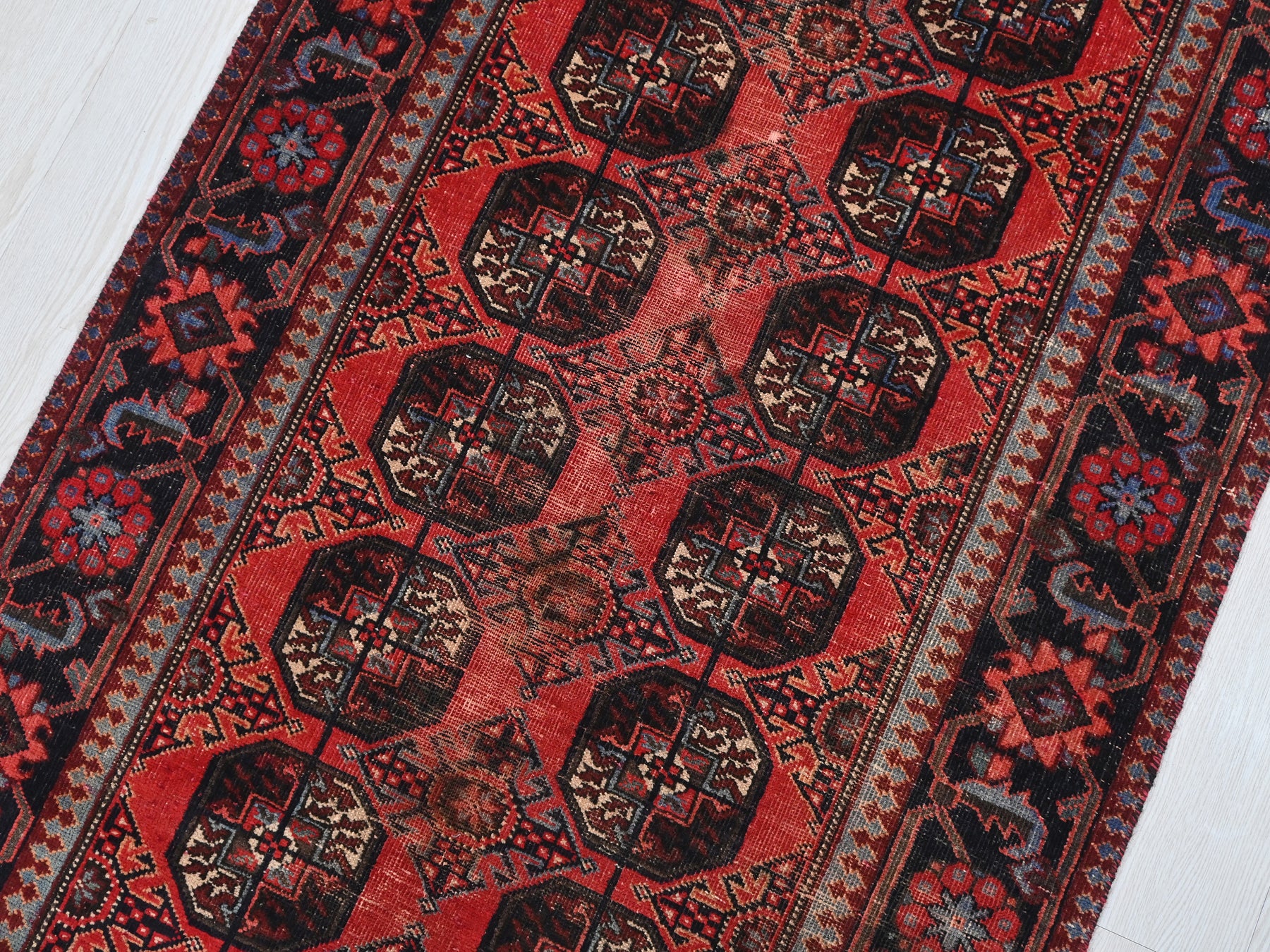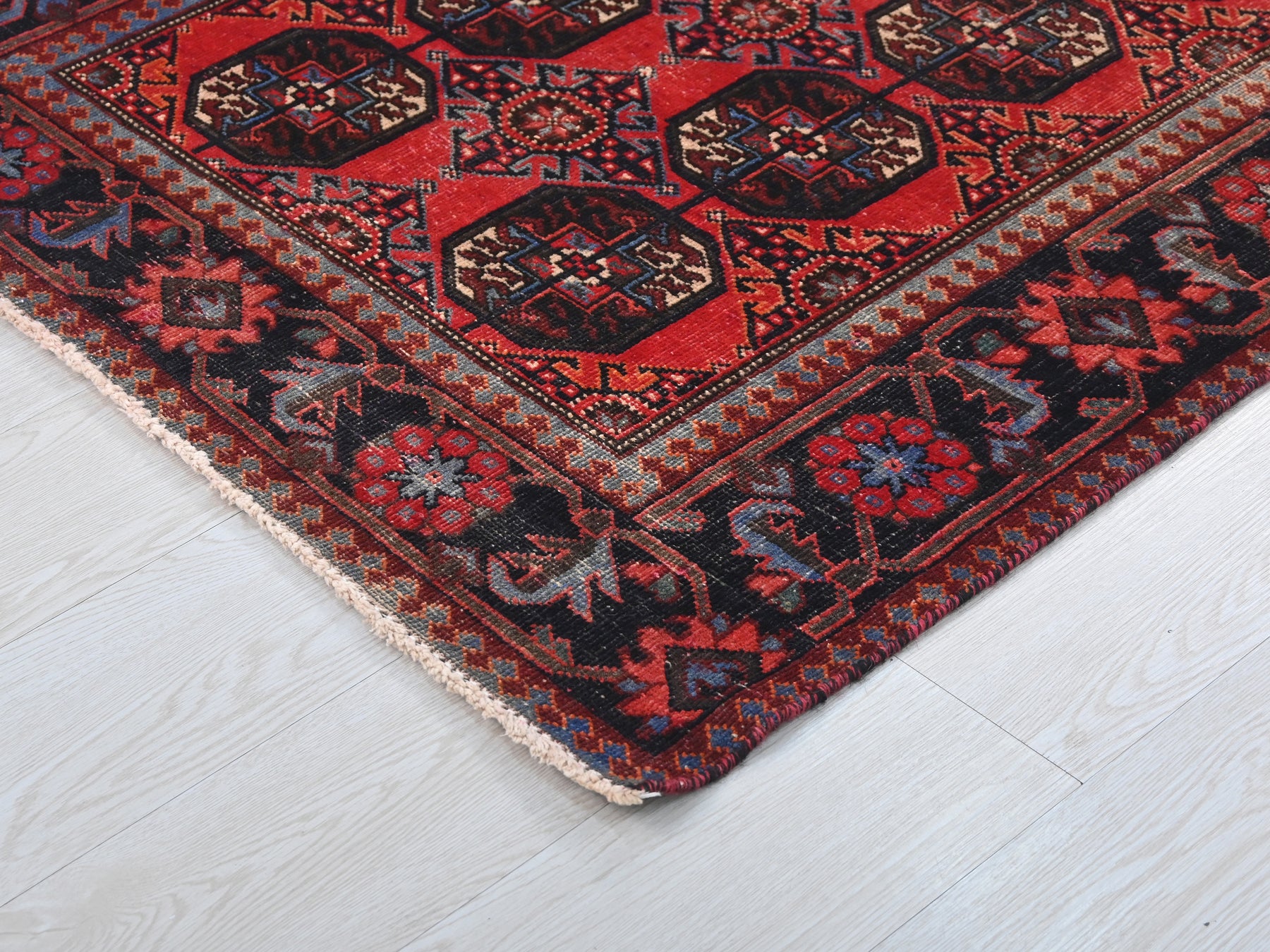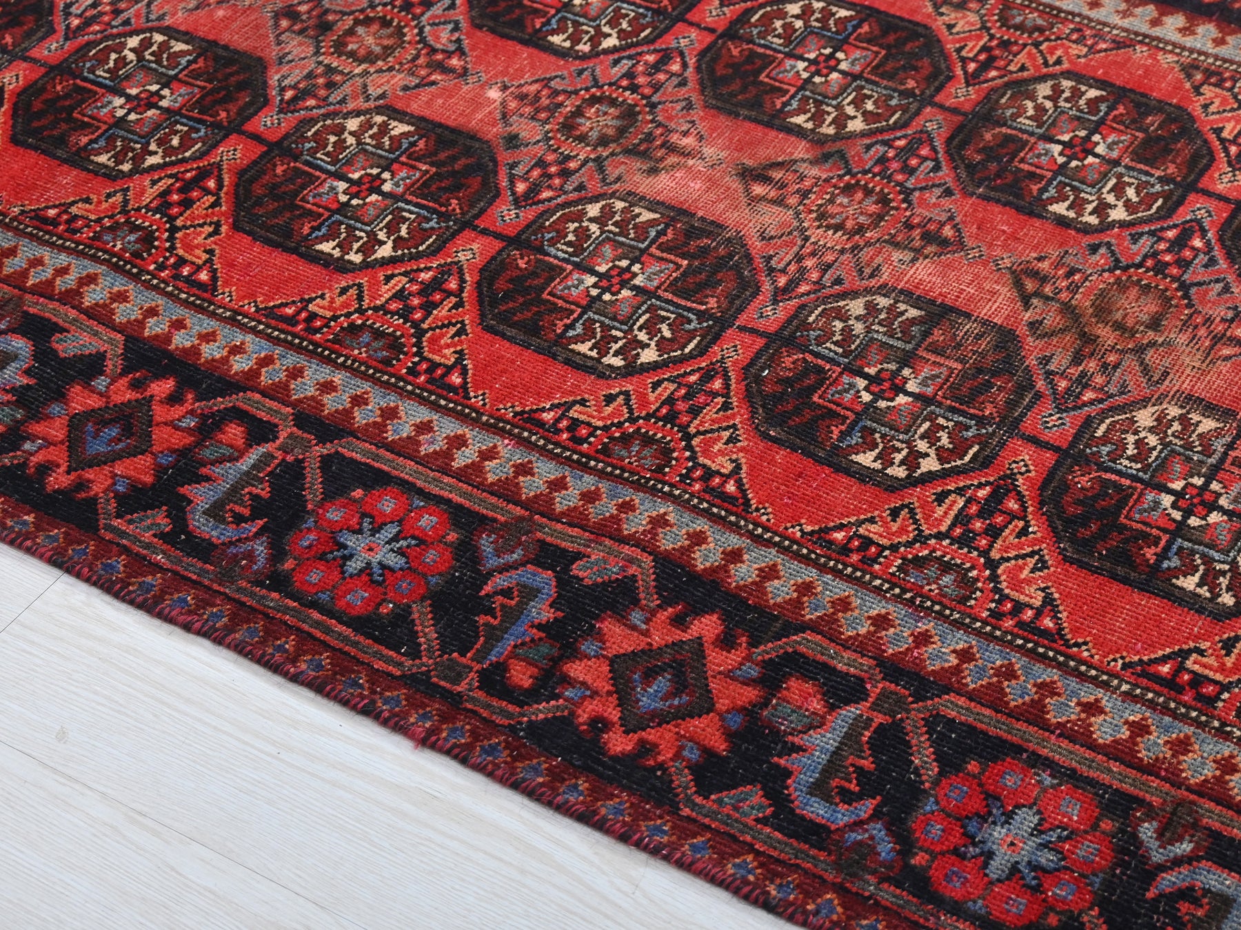 This is a hand-knotted, one-of-a-kind vintage rug. Due to the nature of this piece, there may be slight imperfections in its wear, shape, dimensions, and color. All of our rugs are professionally cleaned and repaired.