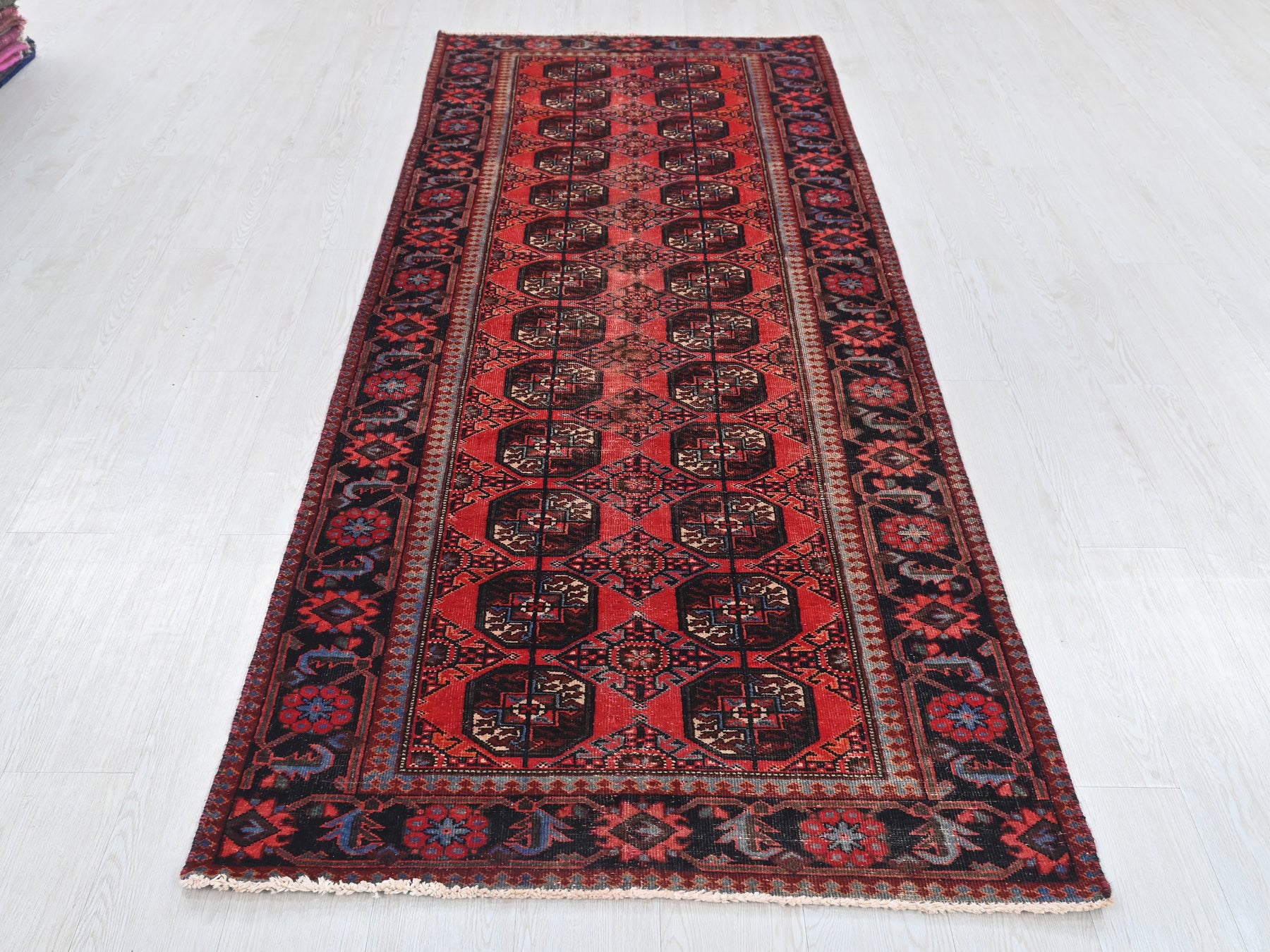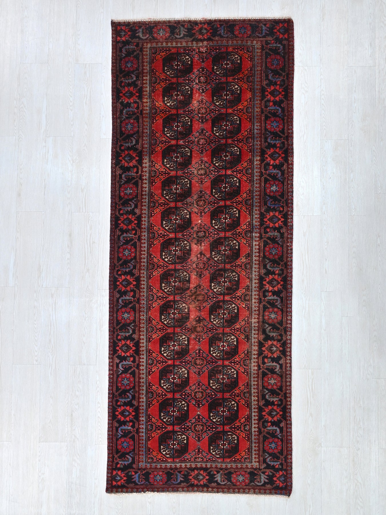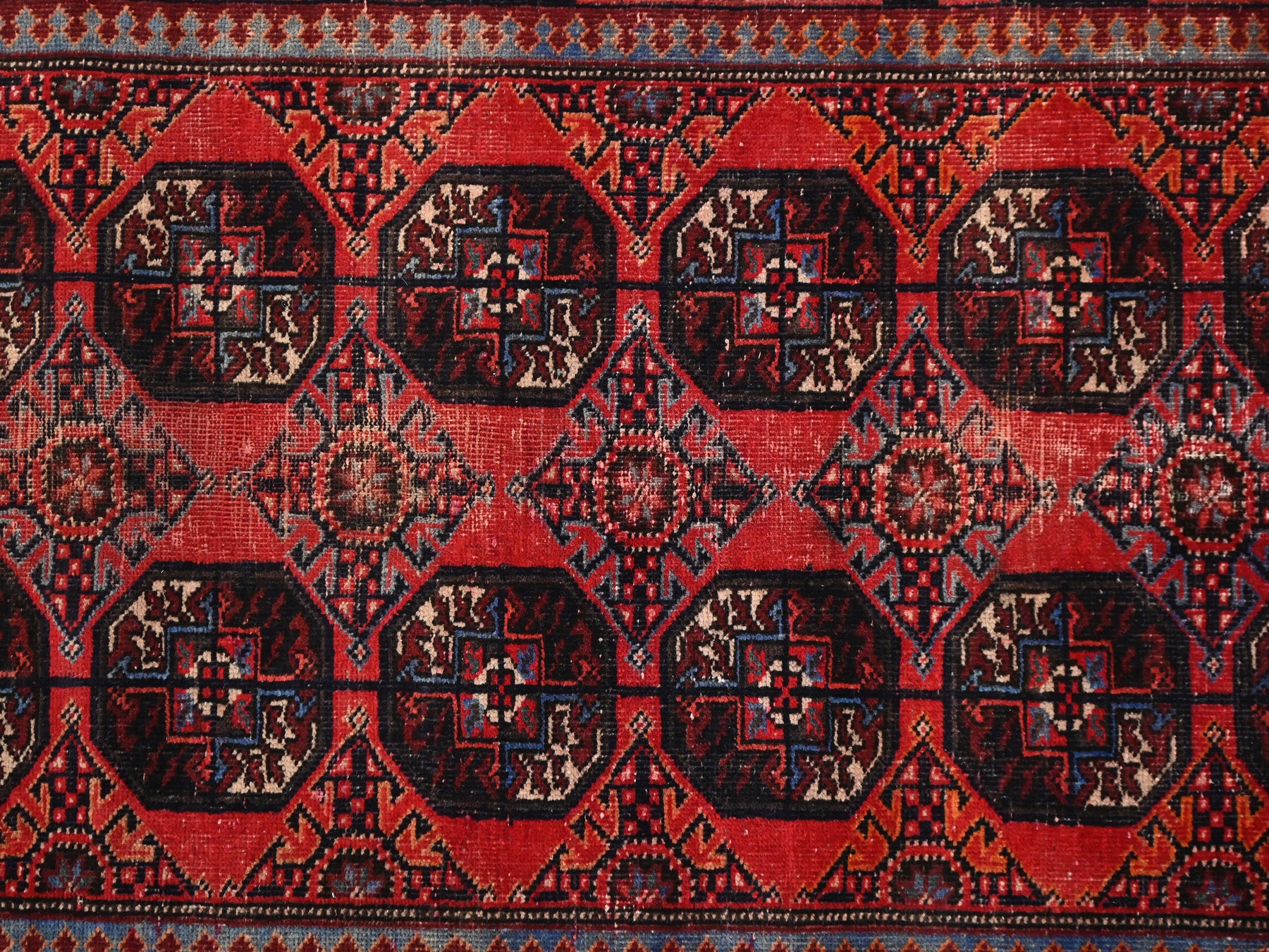 This is a hand-knotted, one-of-a-kind vintage rug. Due to the nature of this piece, there may be slight imperfections in its wear, shape, dimensions, and color. All of our rugs are professionally cleaned and repaired.