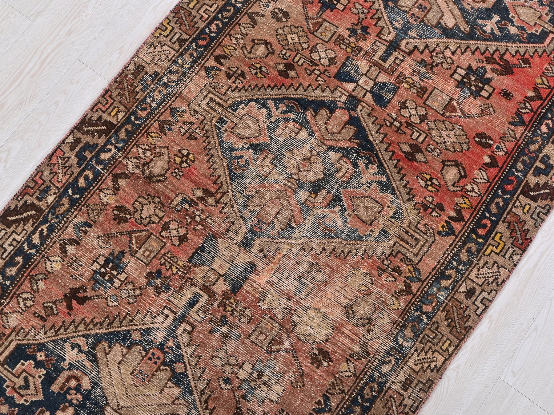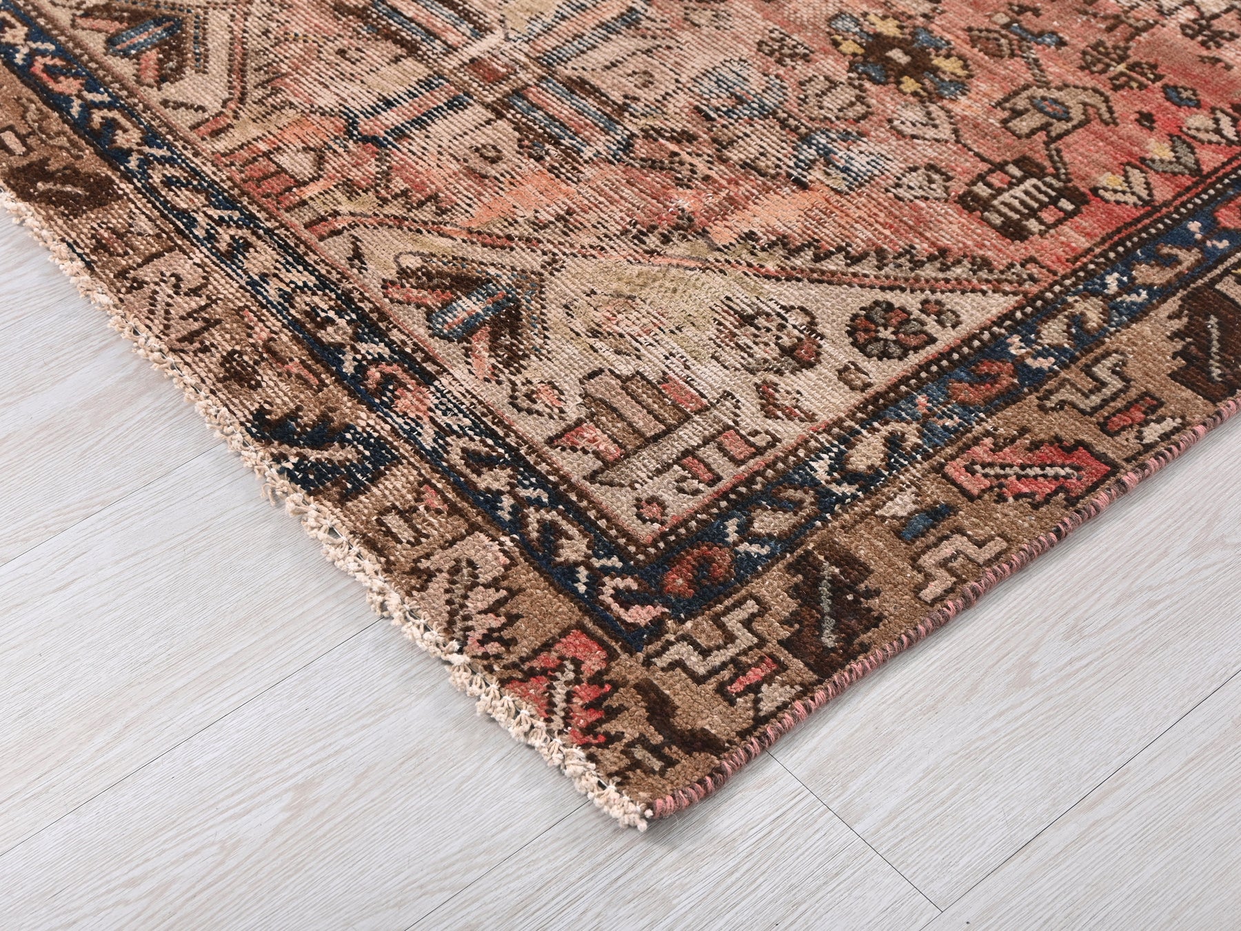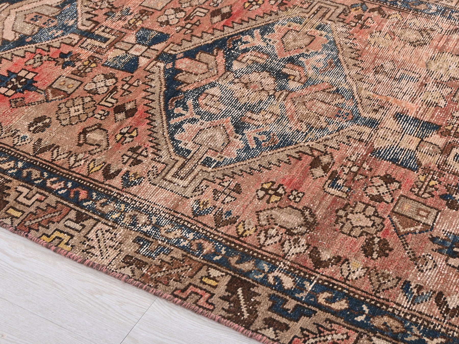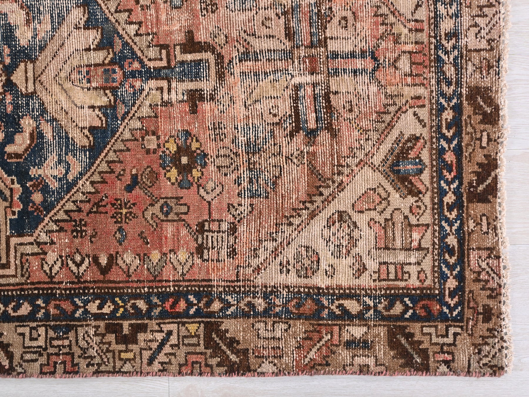 This is a hand-knotted, one-of-a-kind vintage rug. Due to the nature of this piece, there may be slight imperfections in its wear, shape, dimensions, and color. All of our rugs are professionally cleaned and repaired.
