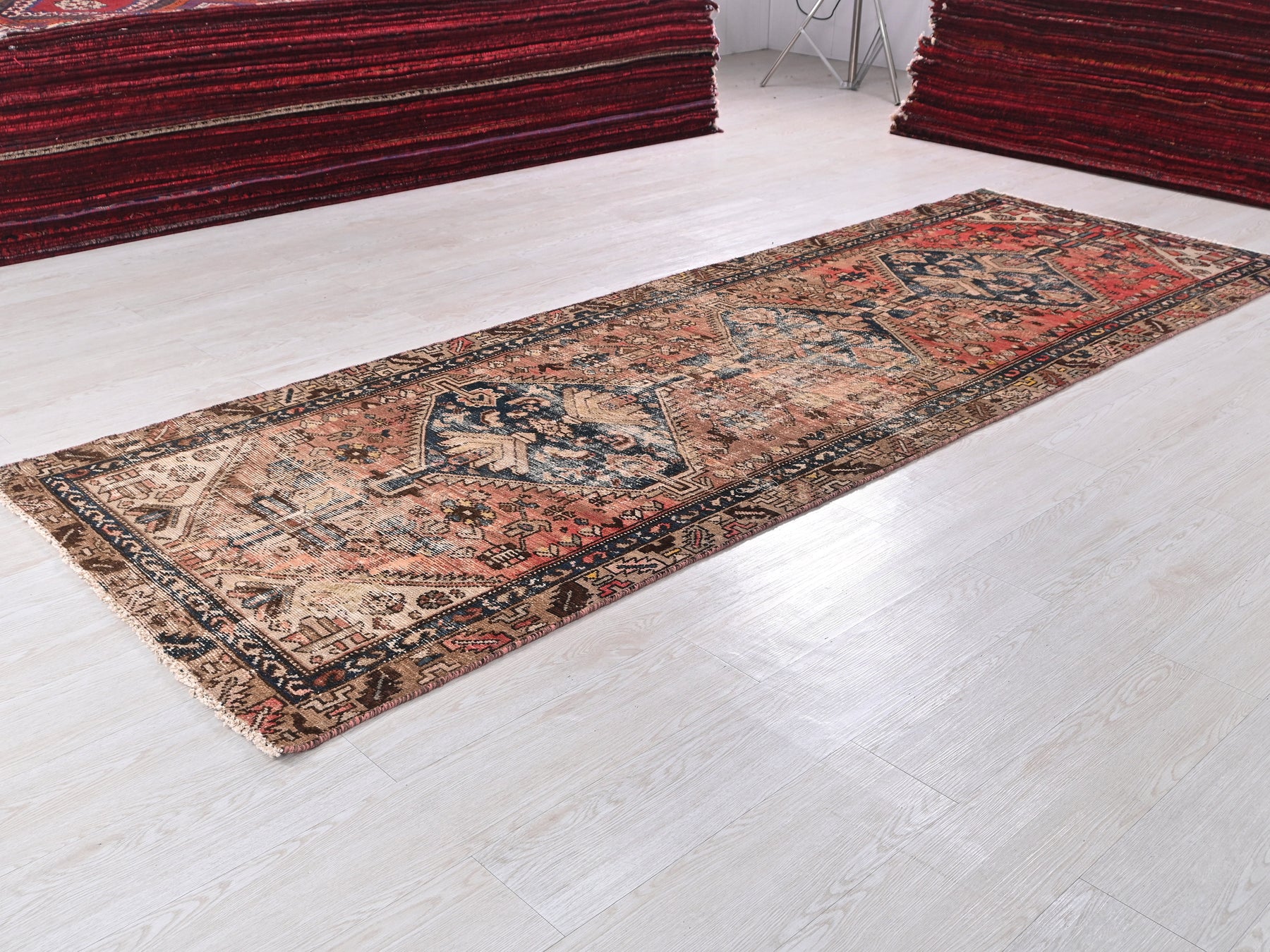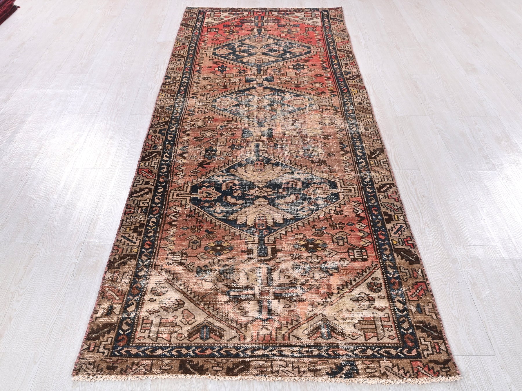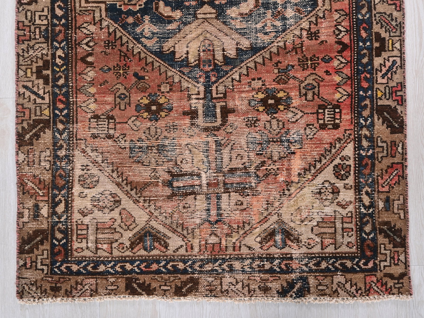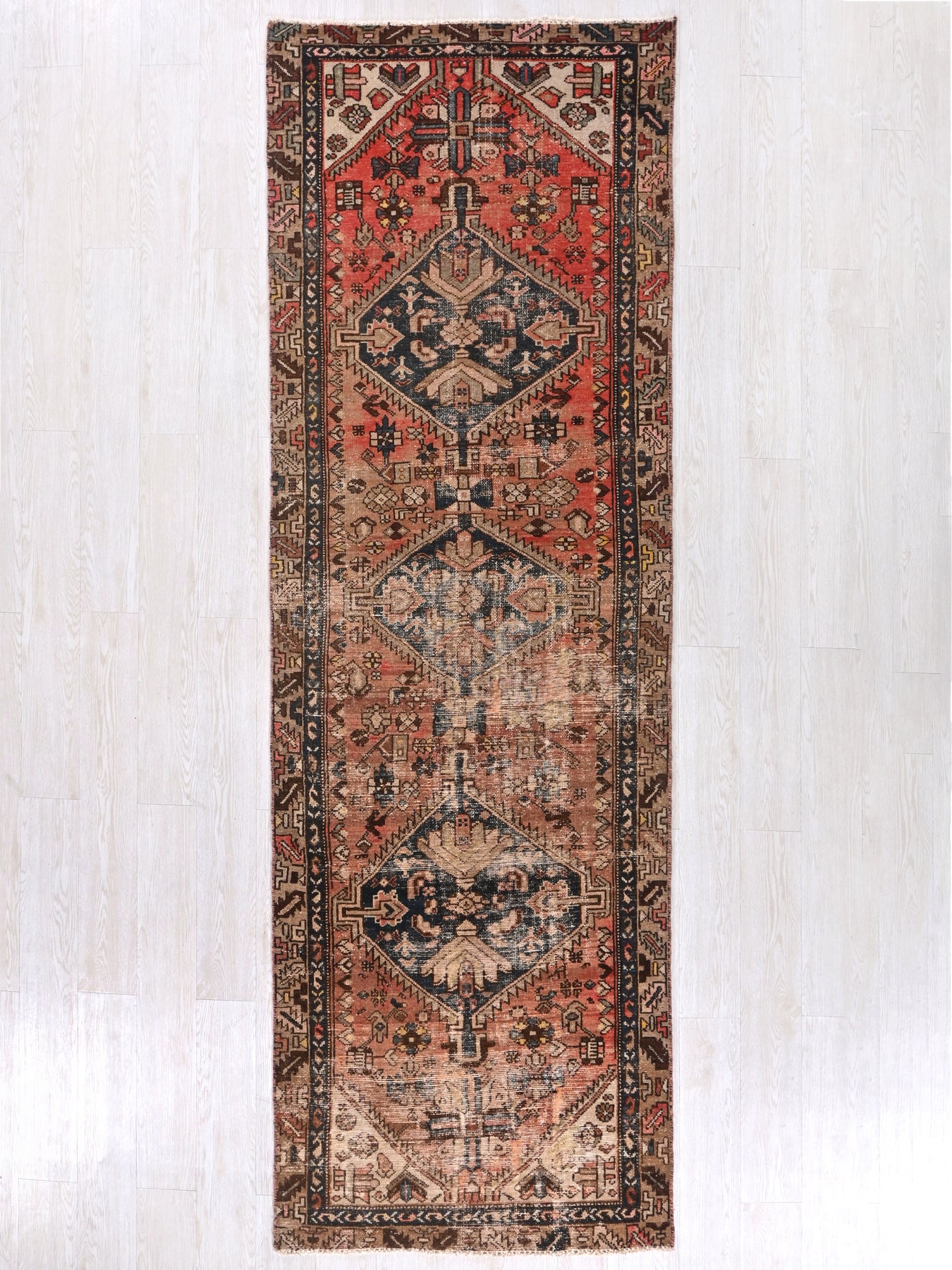 This is a hand-knotted, one-of-a-kind vintage rug. Due to the nature of this piece, there may be slight imperfections in its wear, shape, dimensions, and color. All of our rugs are professionally cleaned and repaired.