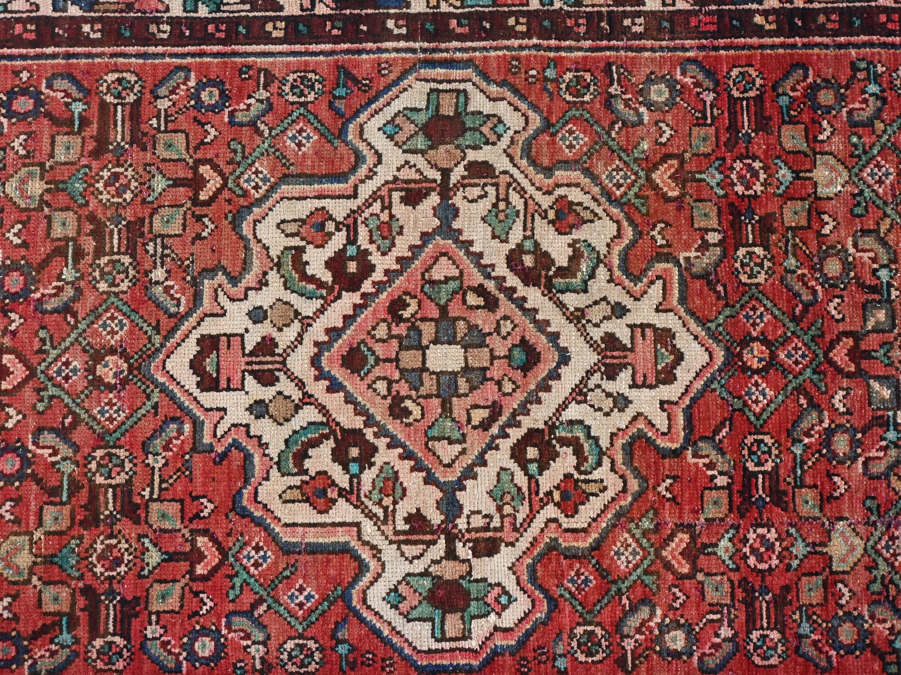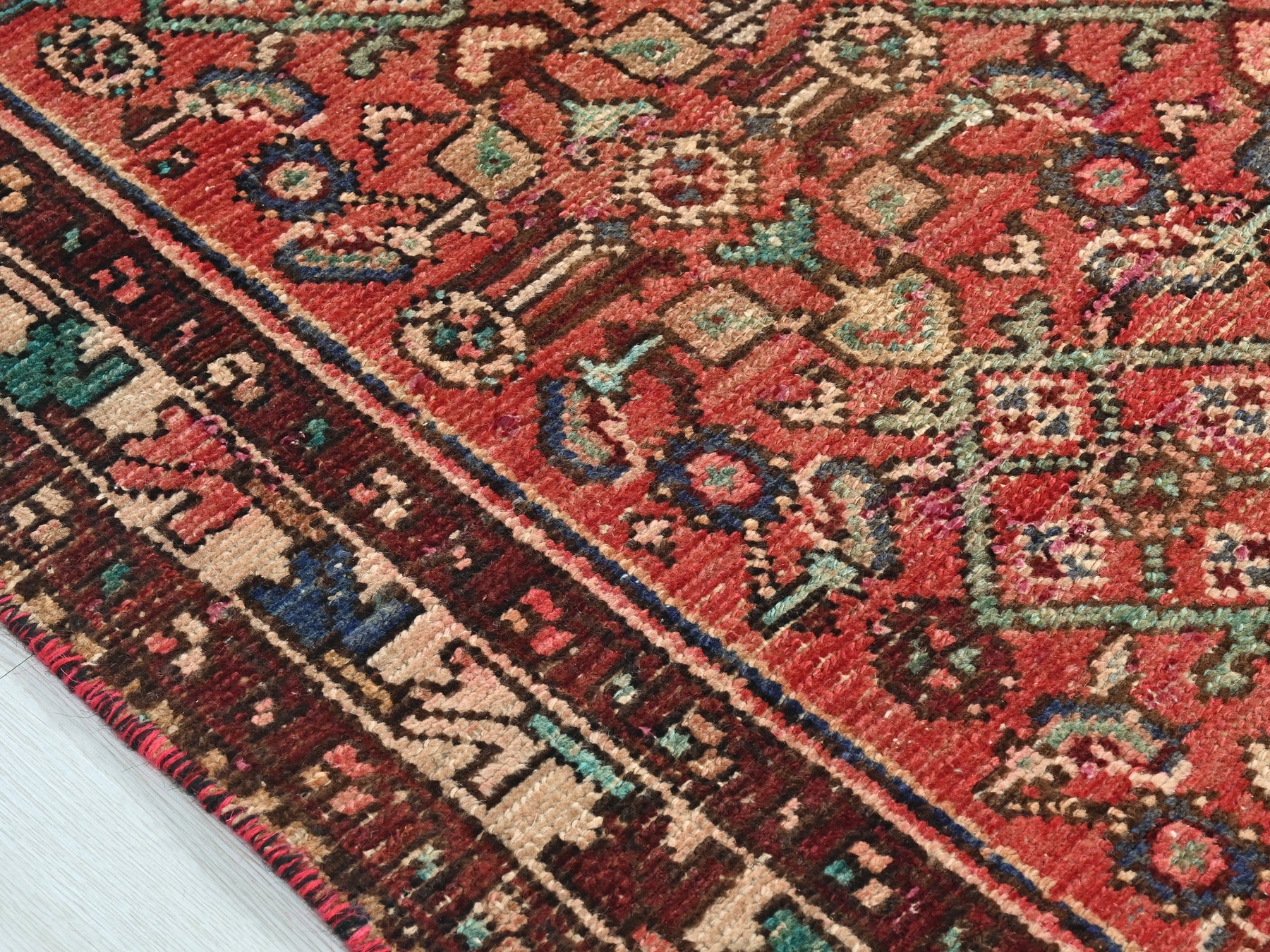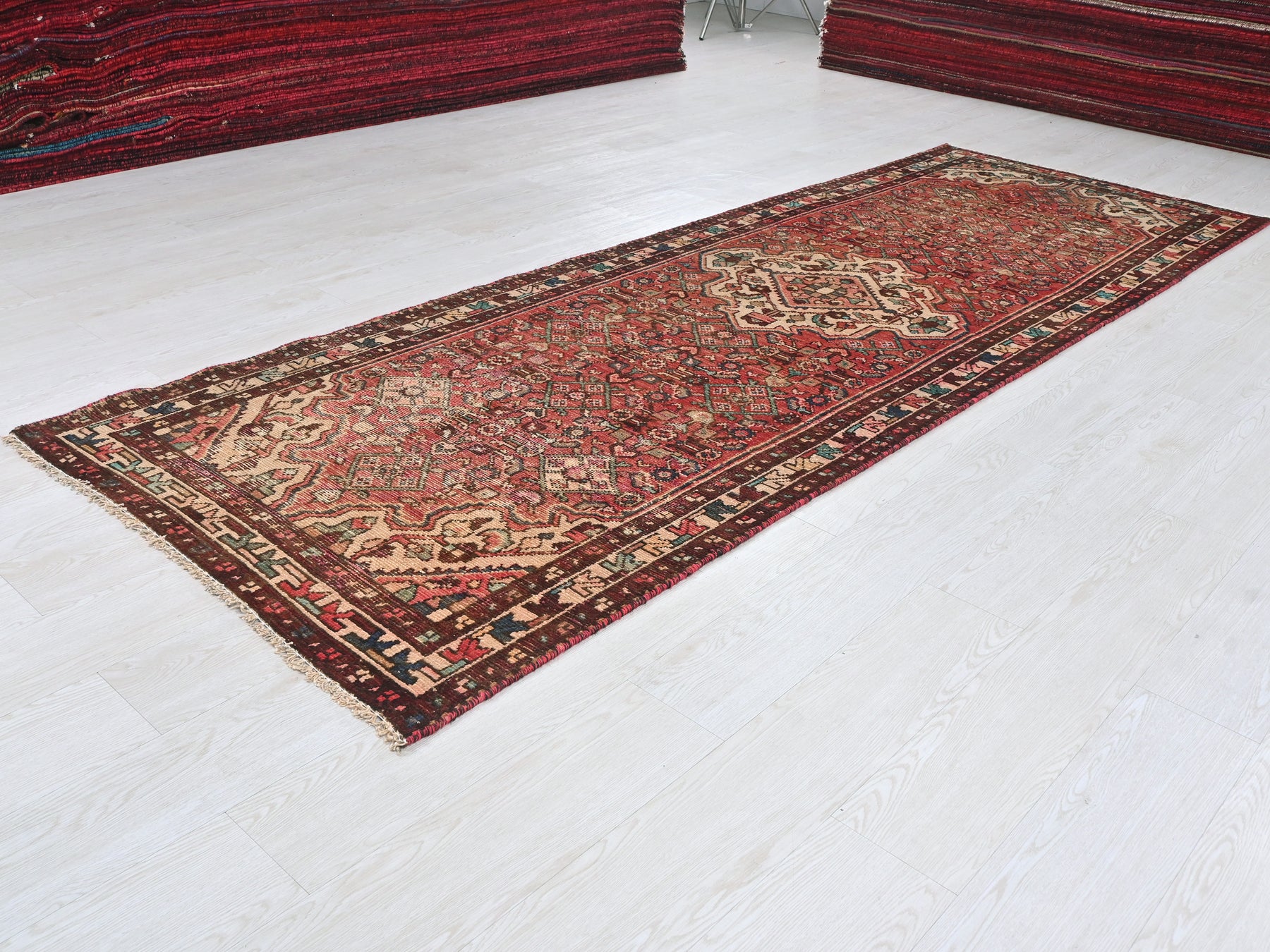 This is a hand-knotted, one-of-a-kind vintage rug. Due to the nature of this piece, there may be slight imperfections in its wear, shape, dimensions, and color. All of our rugs are professionally cleaned and repaired.
