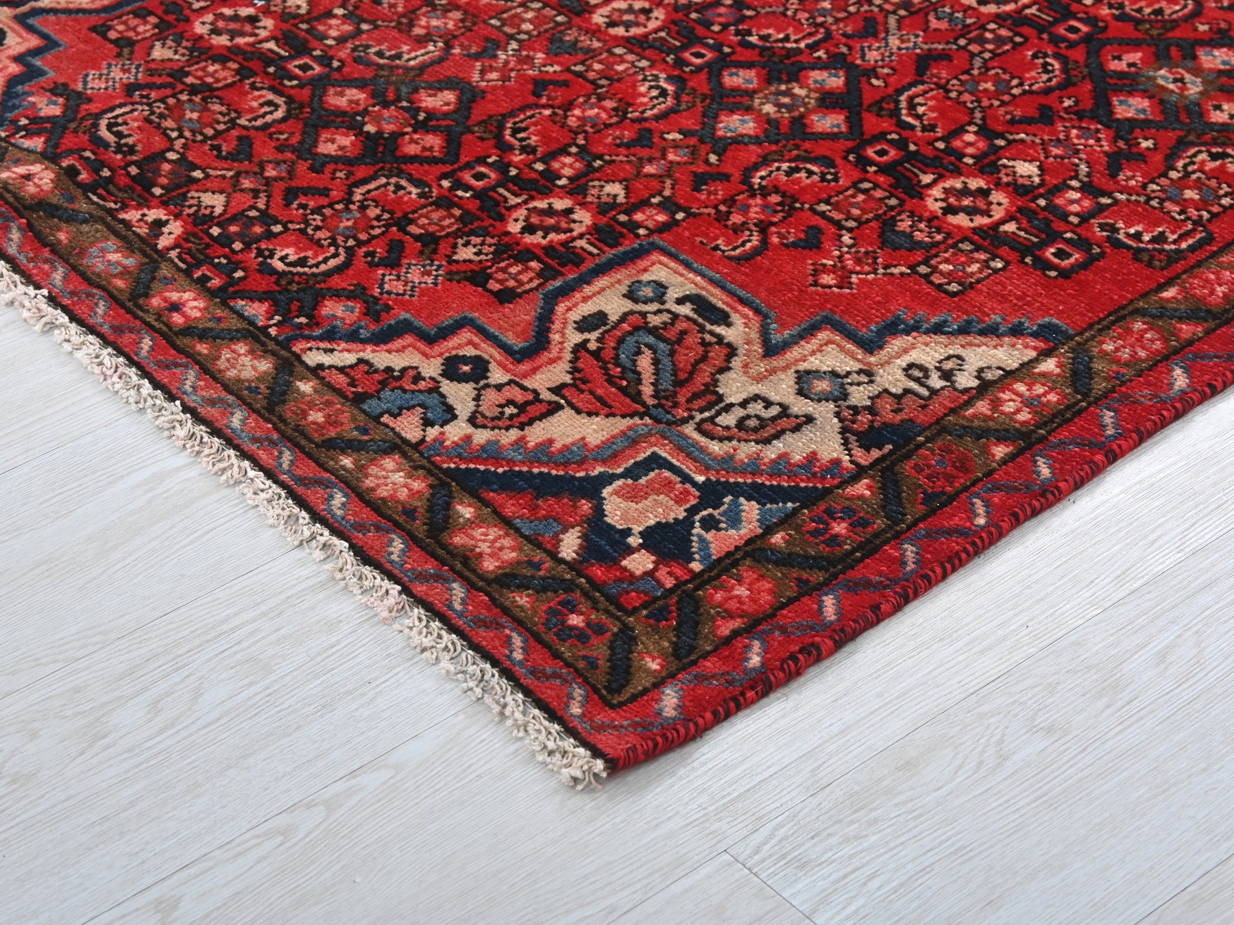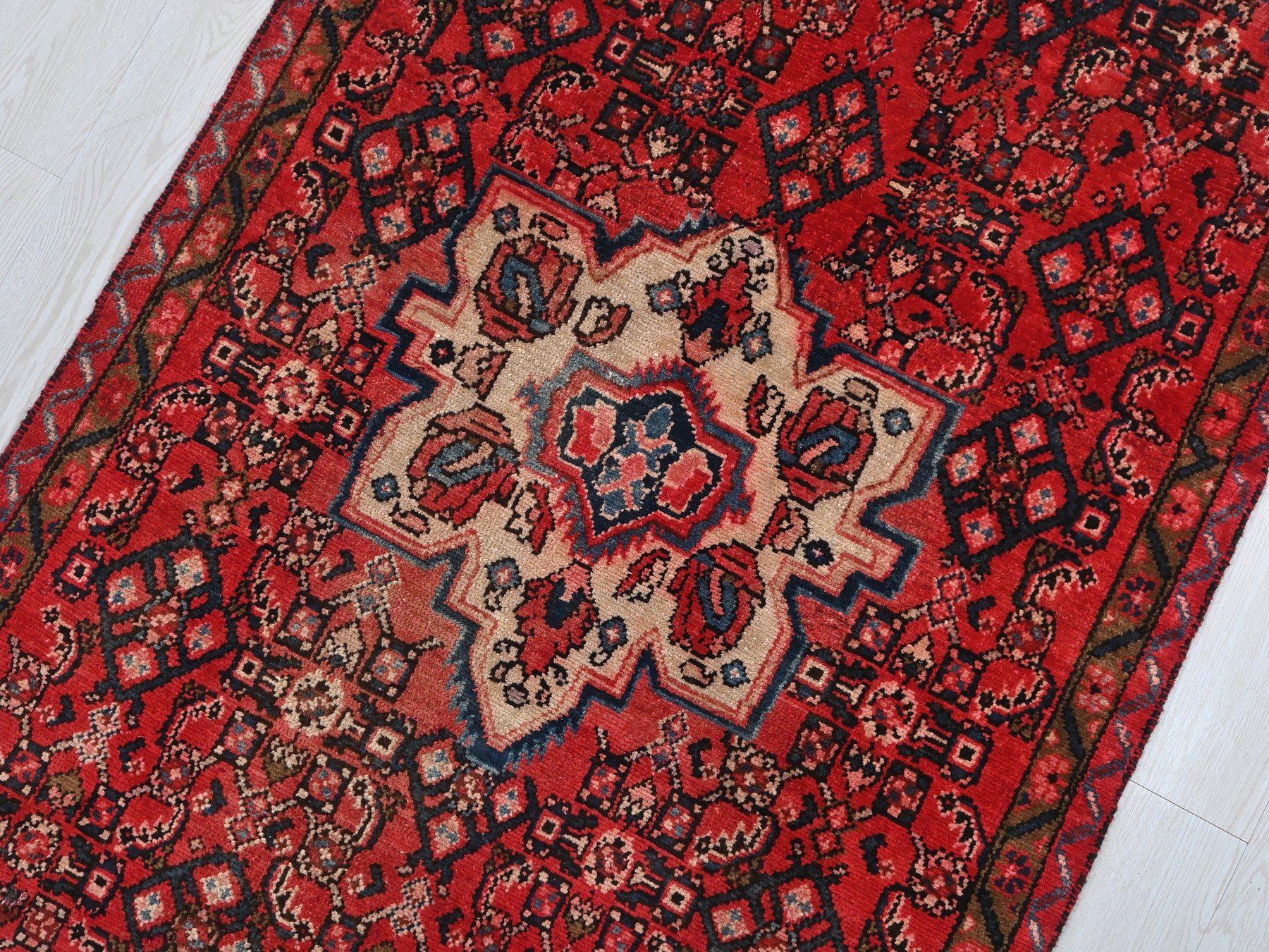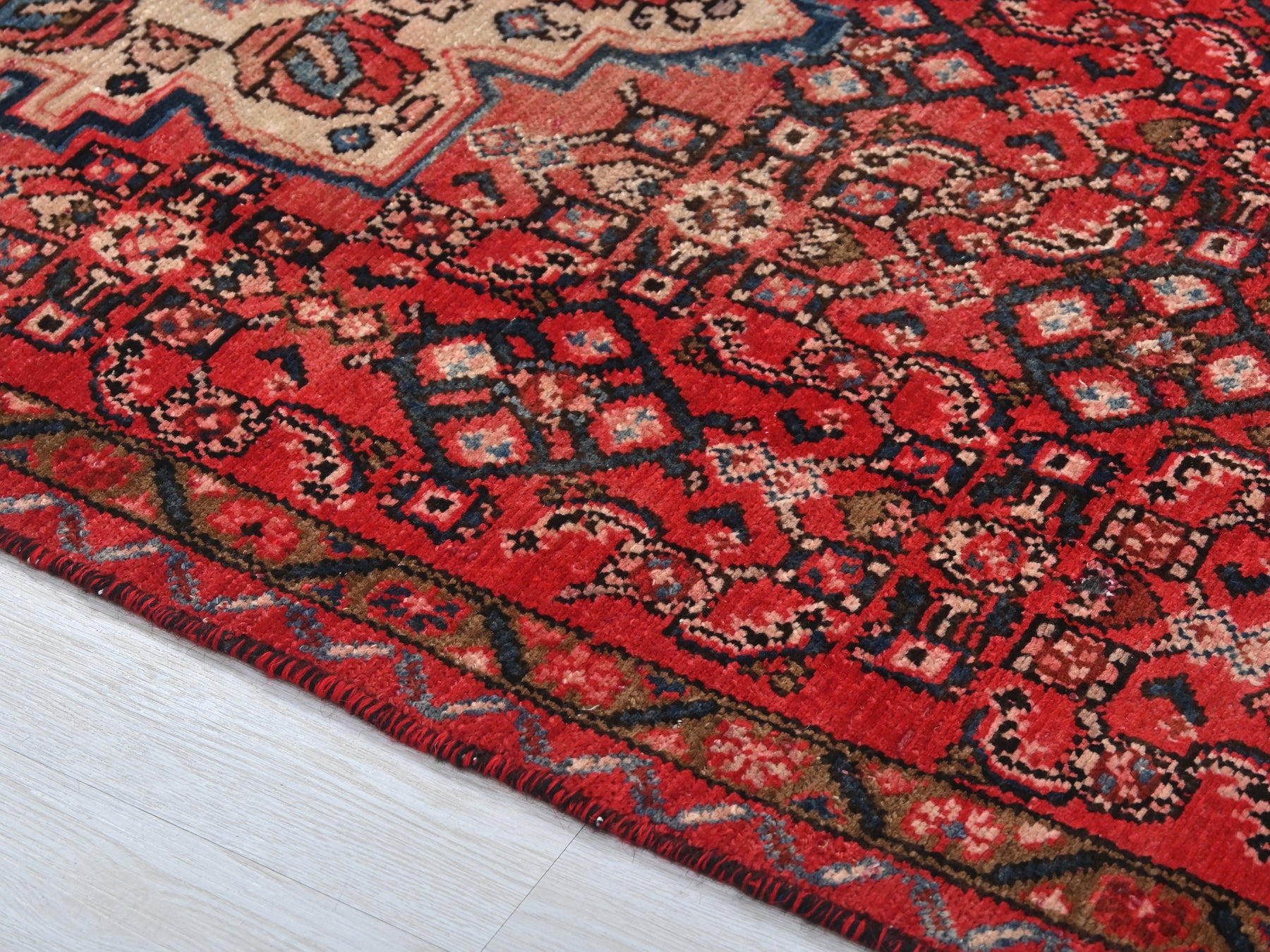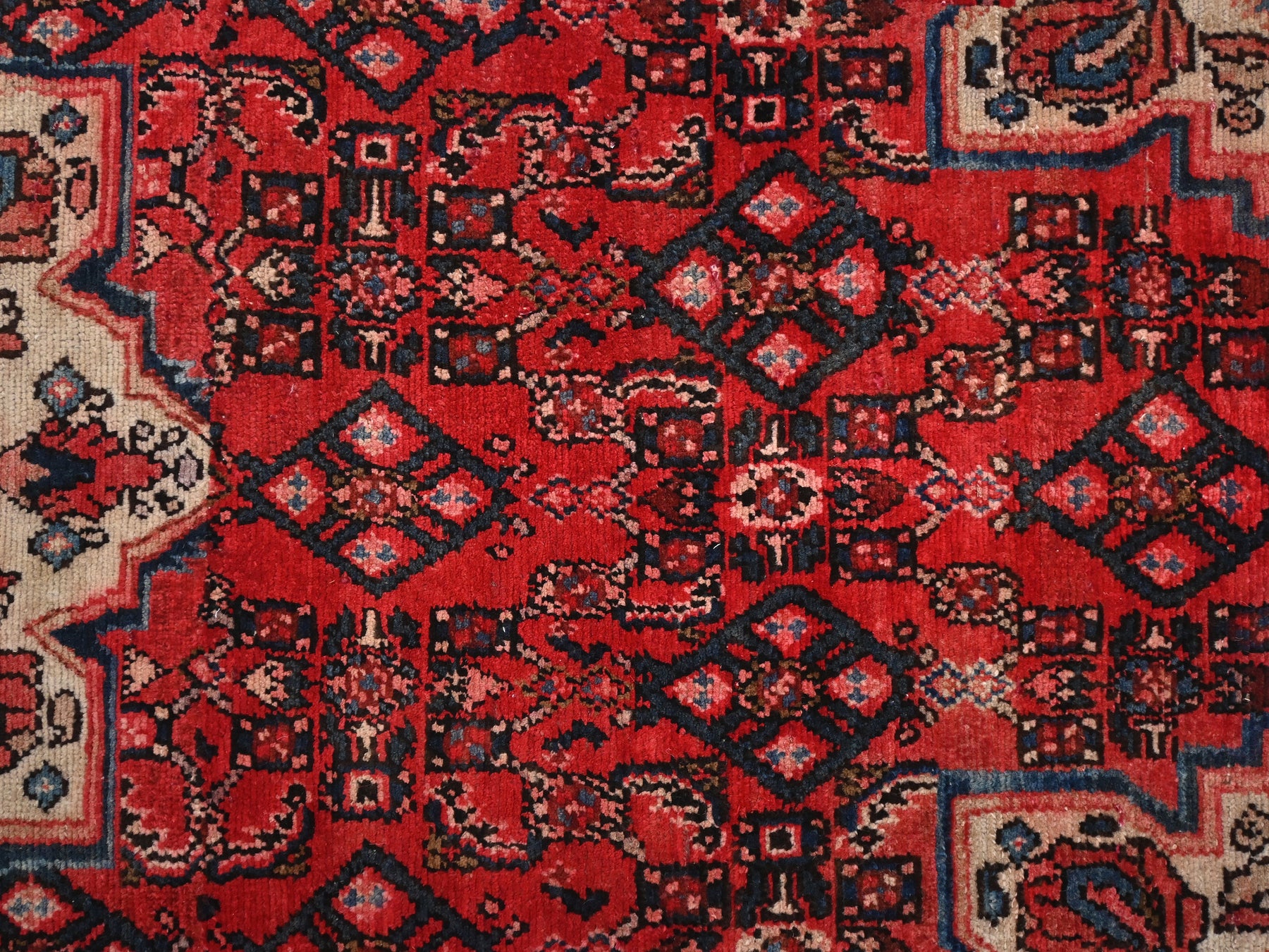 This is a hand-knotted, one-of-a-kind vintage rug. Due to the nature of this piece, there may be slight imperfections in its wear, shape, dimensions, and color. All of our rugs are professionally cleaned and repaired.