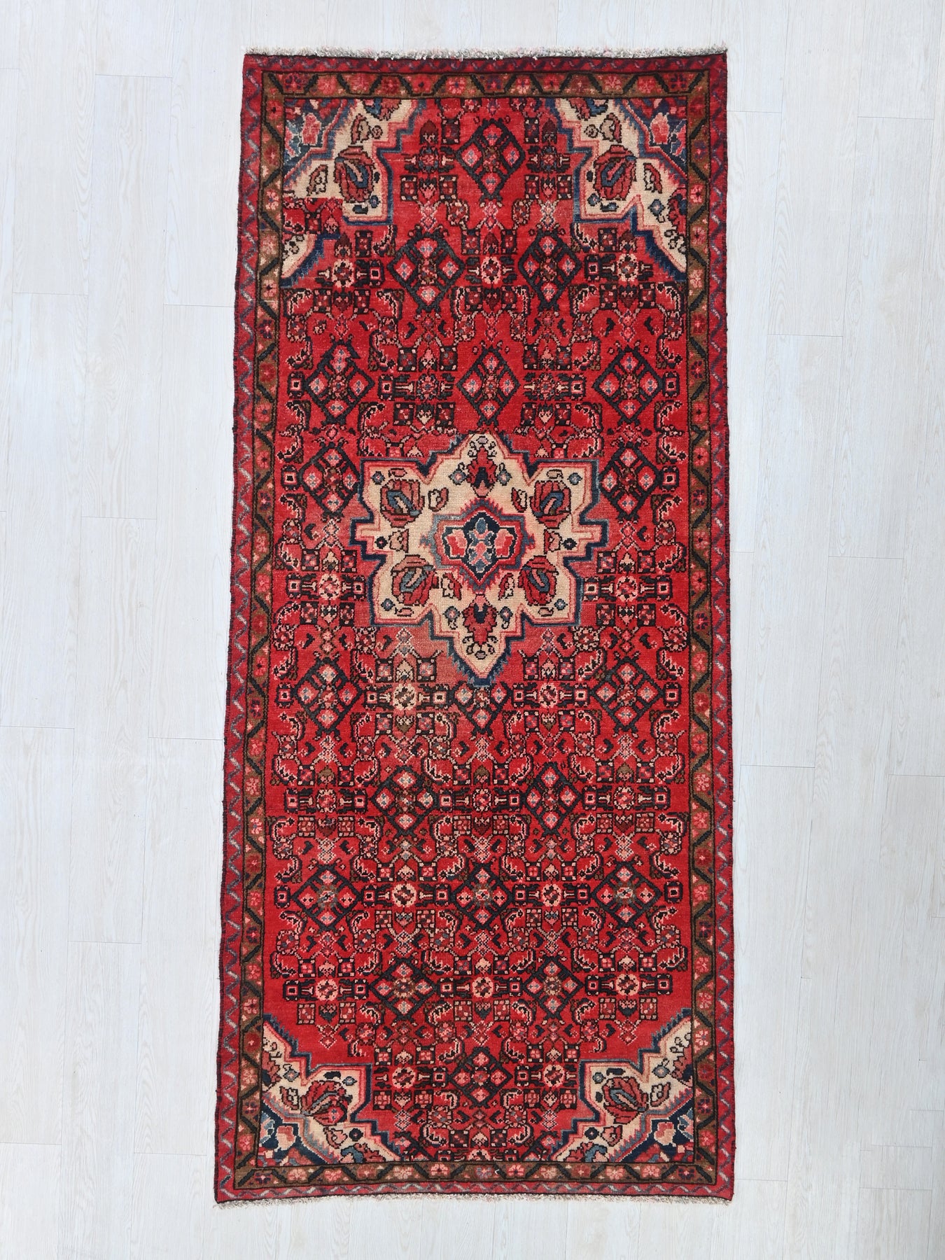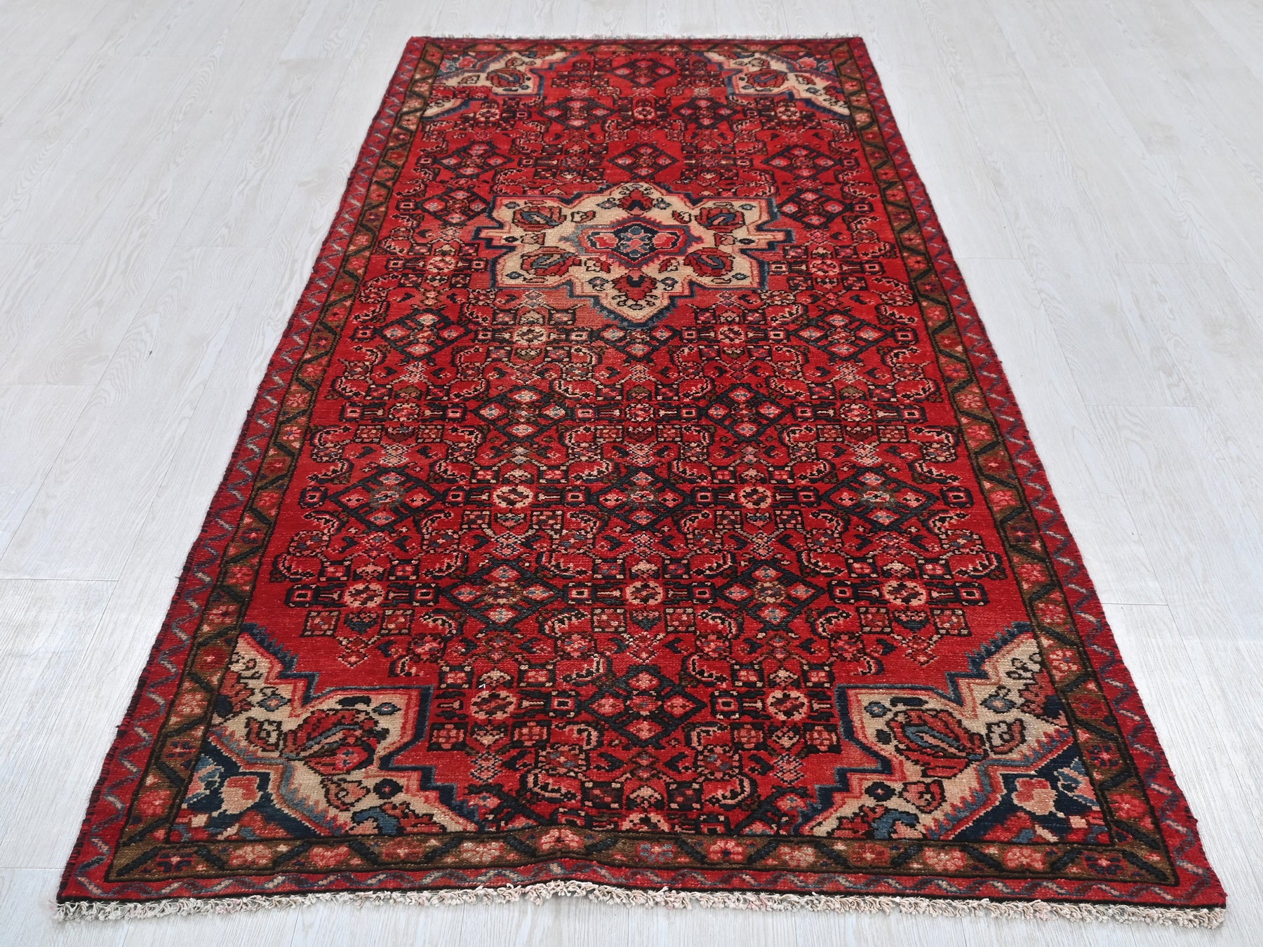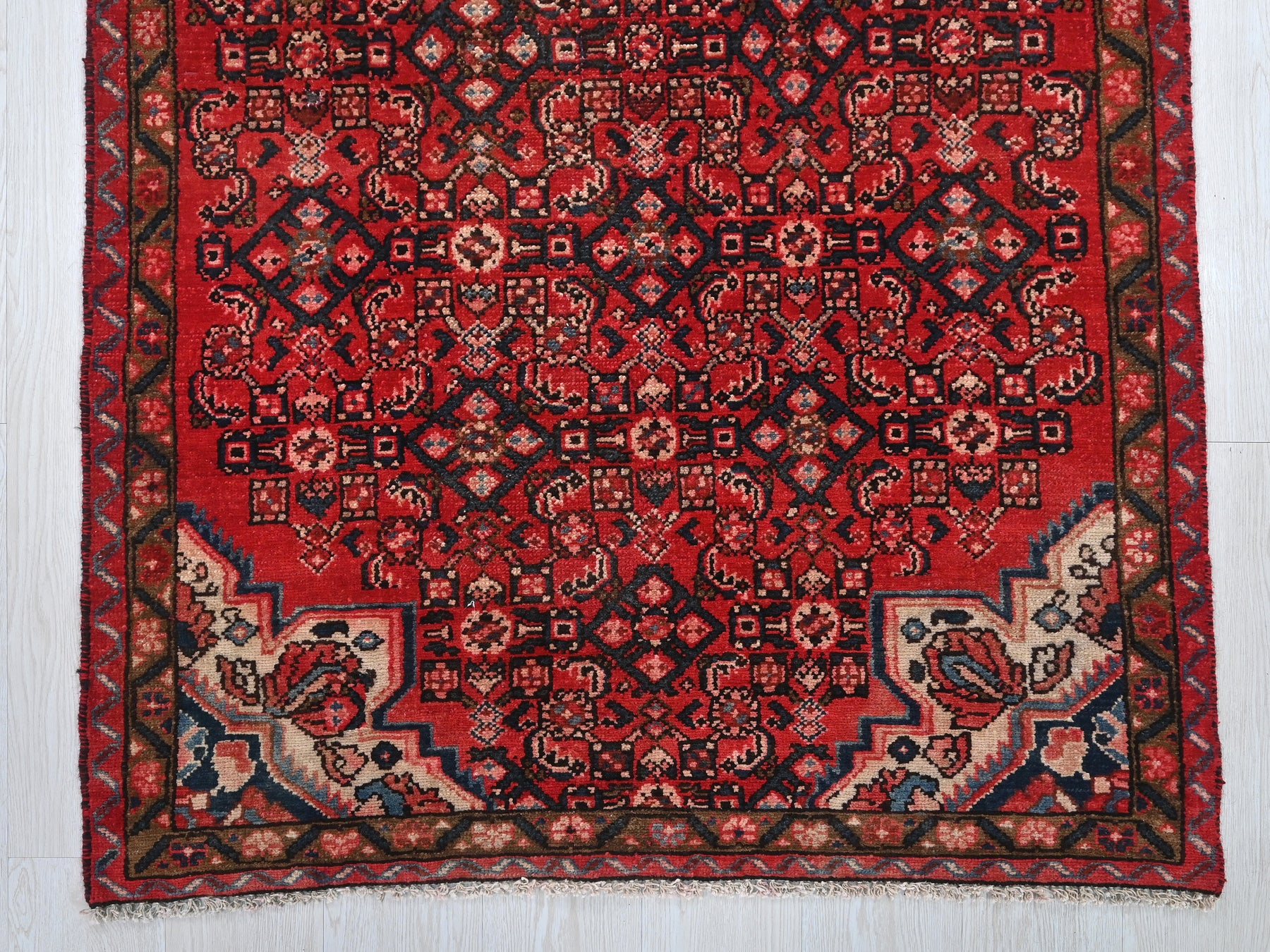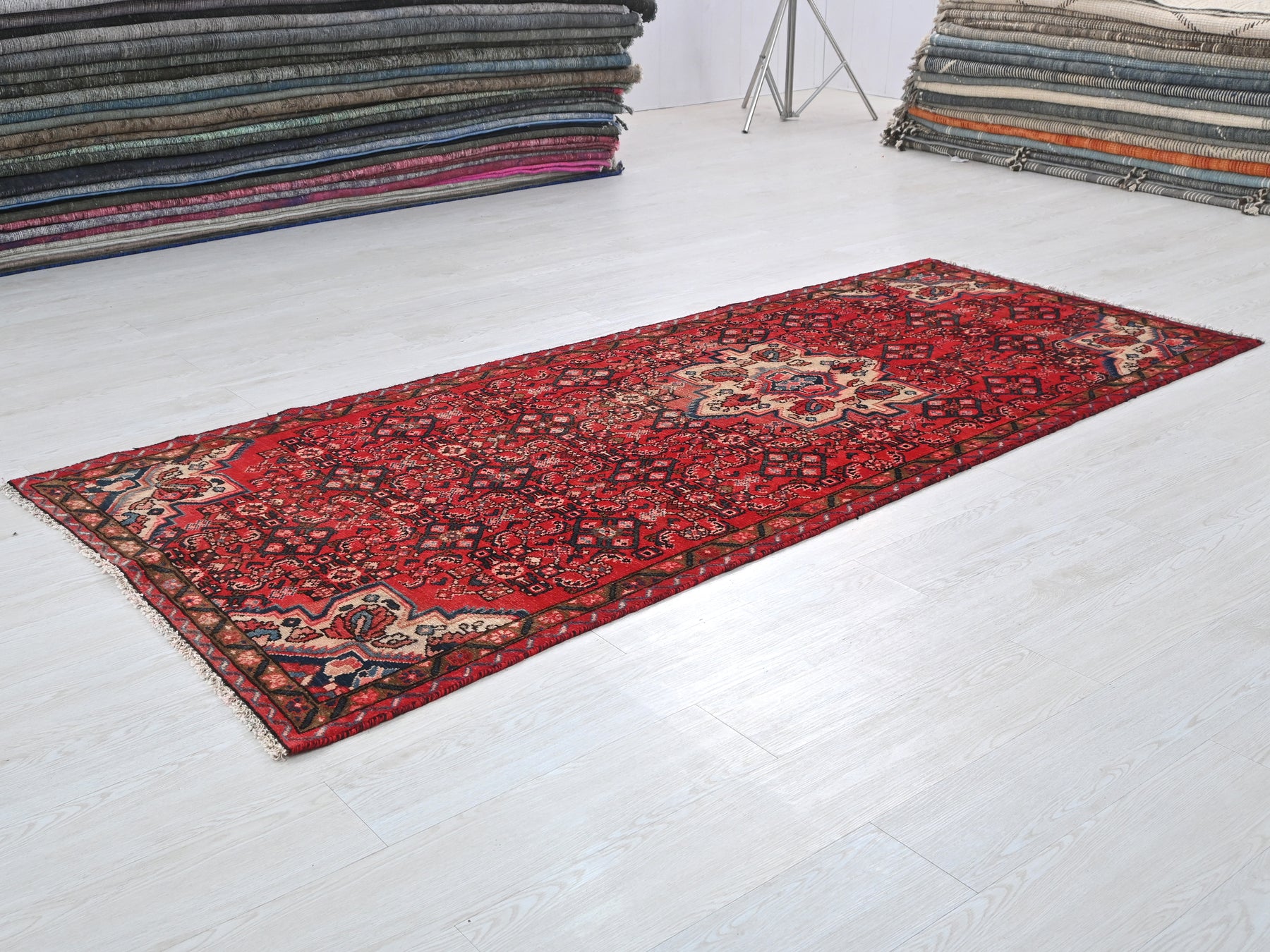This is a hand-knotted, one-of-a-kind vintage rug. Due to the nature of this piece, there may be slight imperfections in its wear, shape, dimensions, and color. All of our rugs are professionally cleaned and repaired.