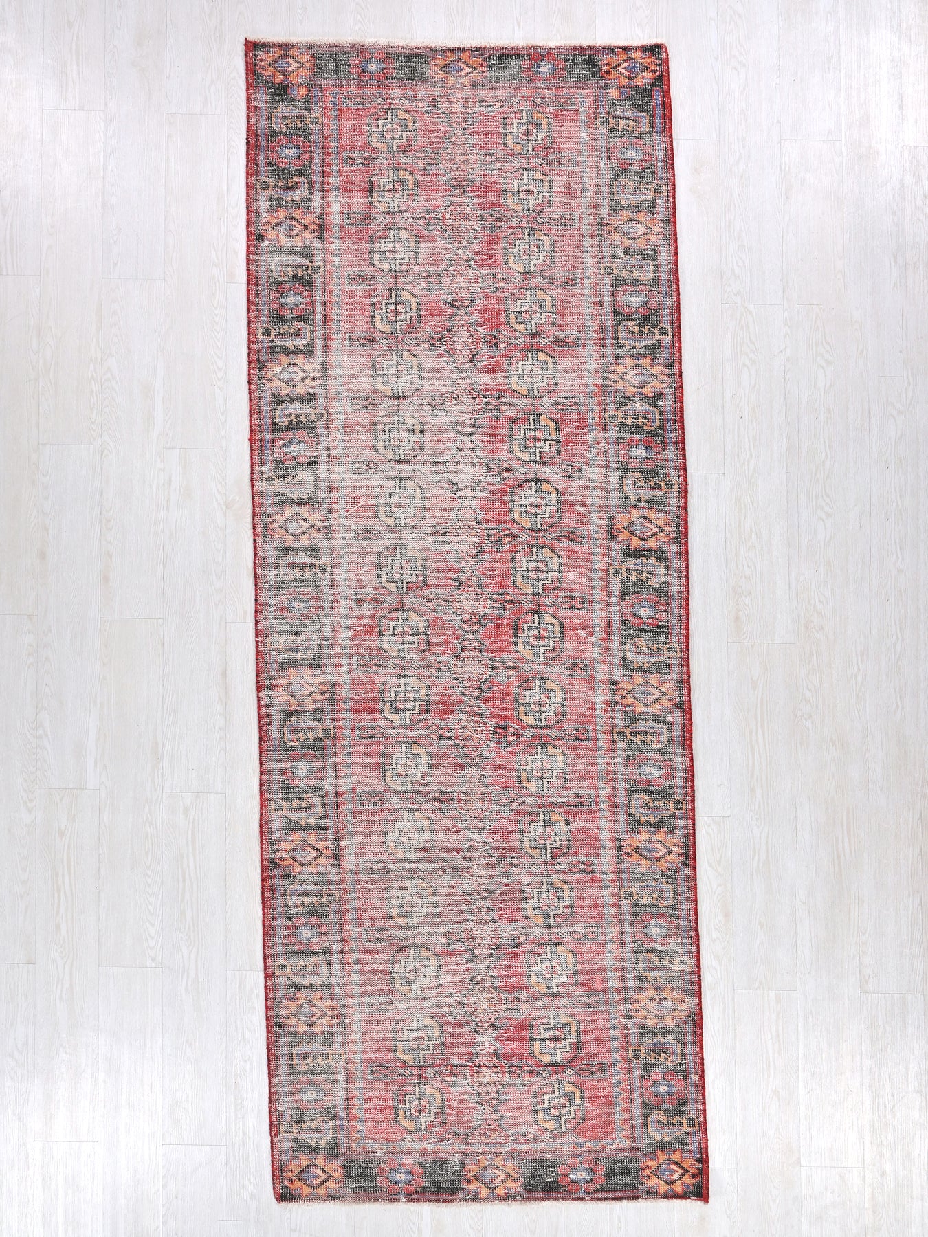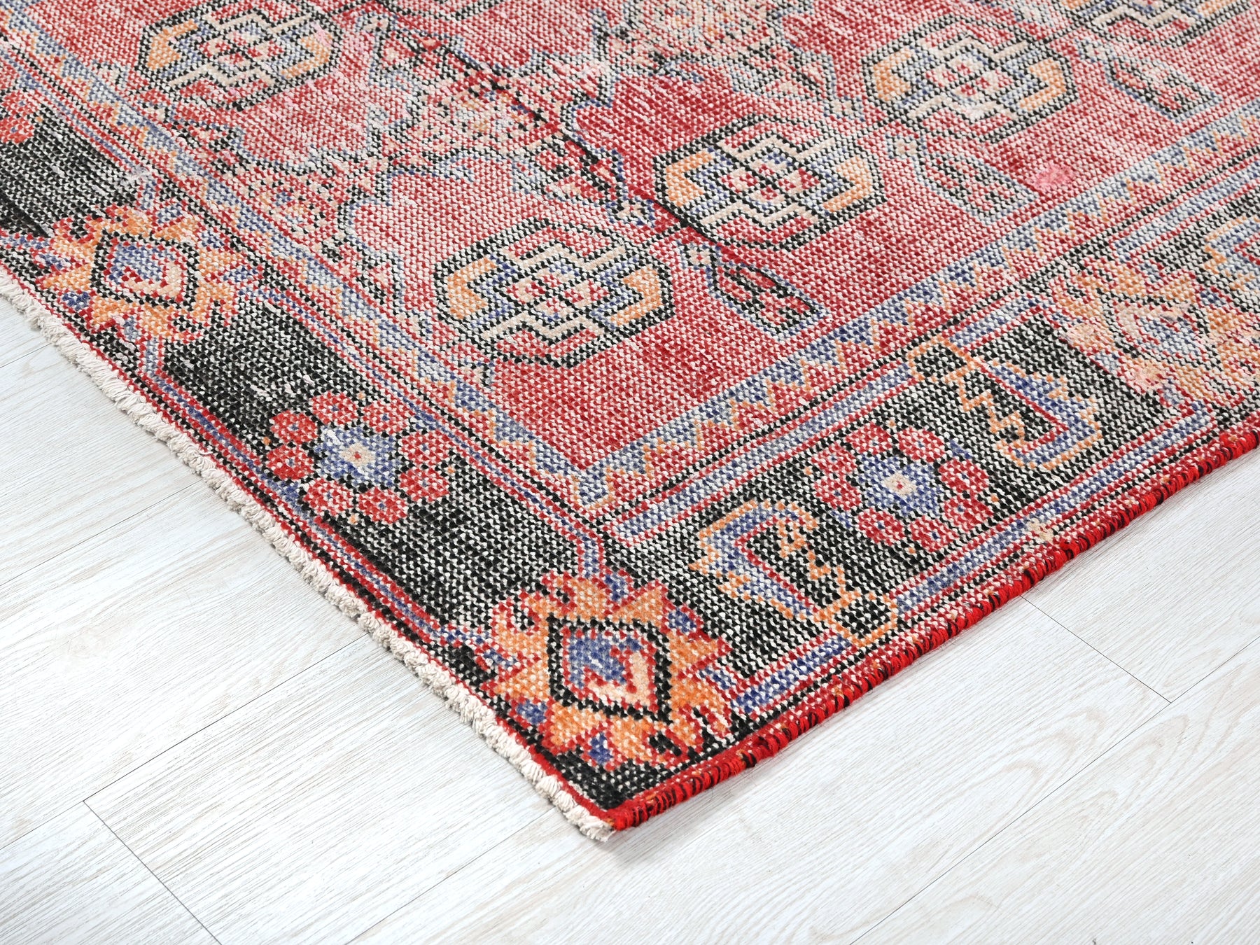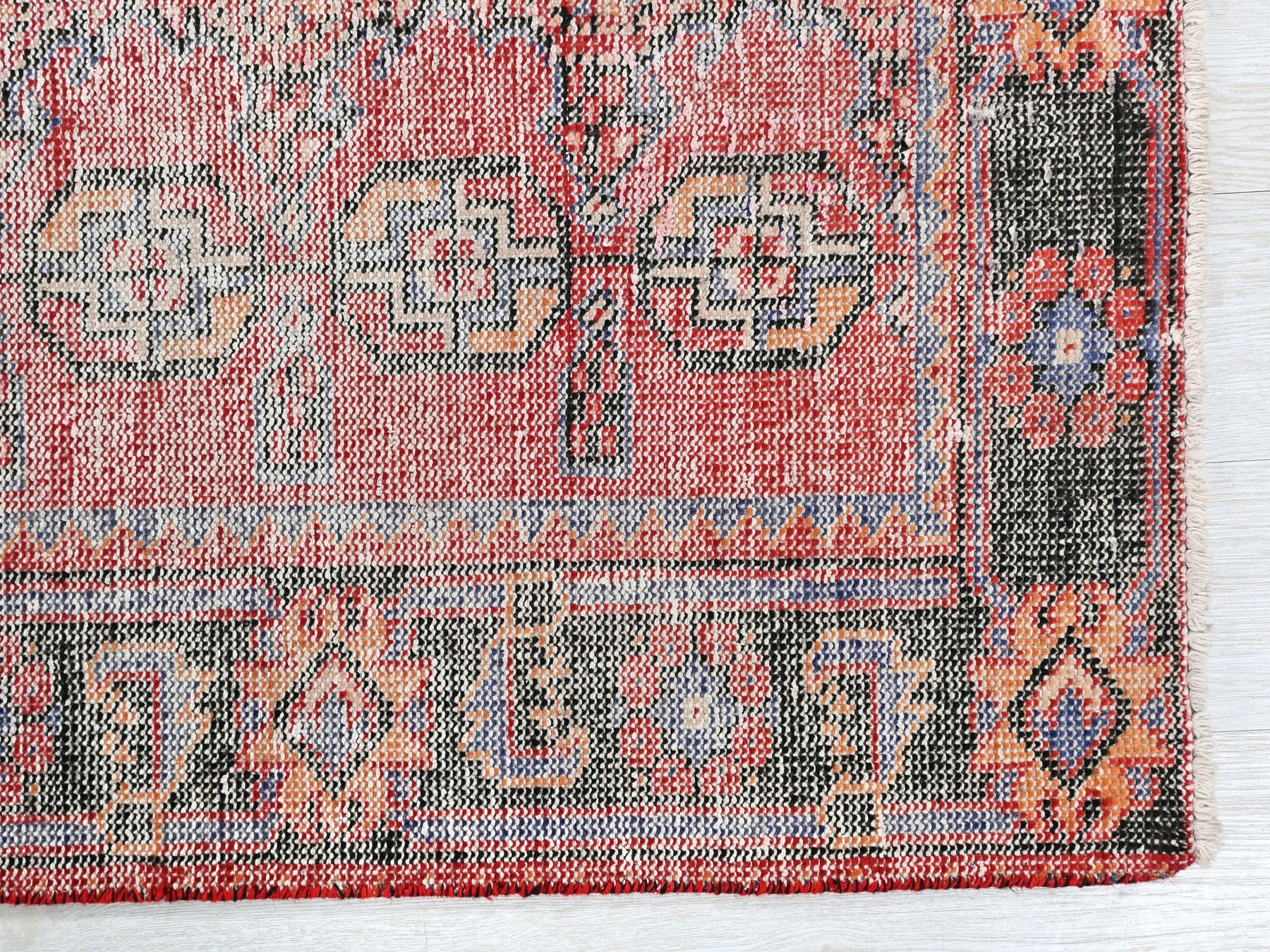 This is a hand-knotted, one-of-a-kind vintage rug. Due to the nature of this piece, there may be slight imperfections in its wear, shape, dimensions, and color. All of our rugs are professionally cleaned and repaired.