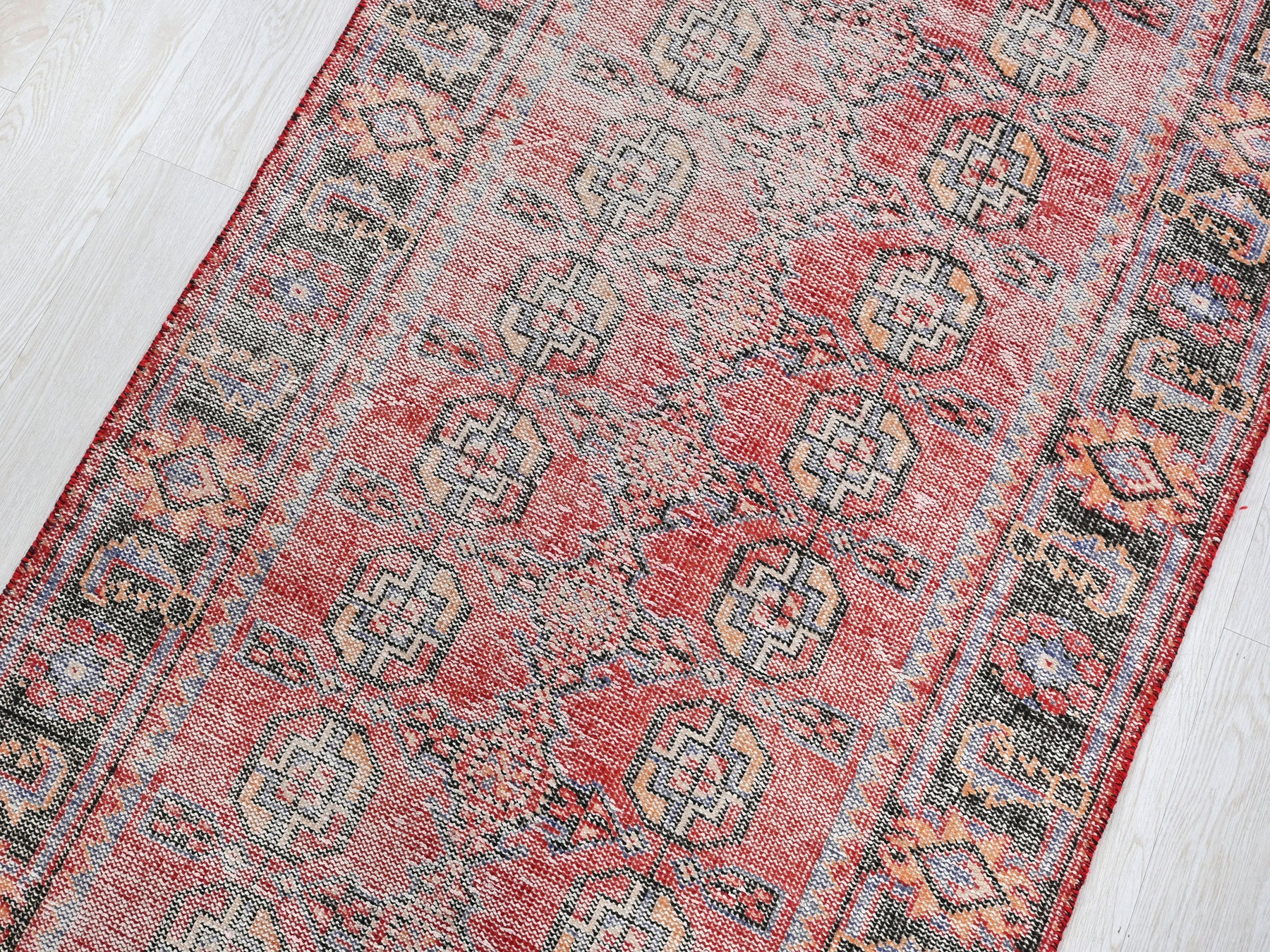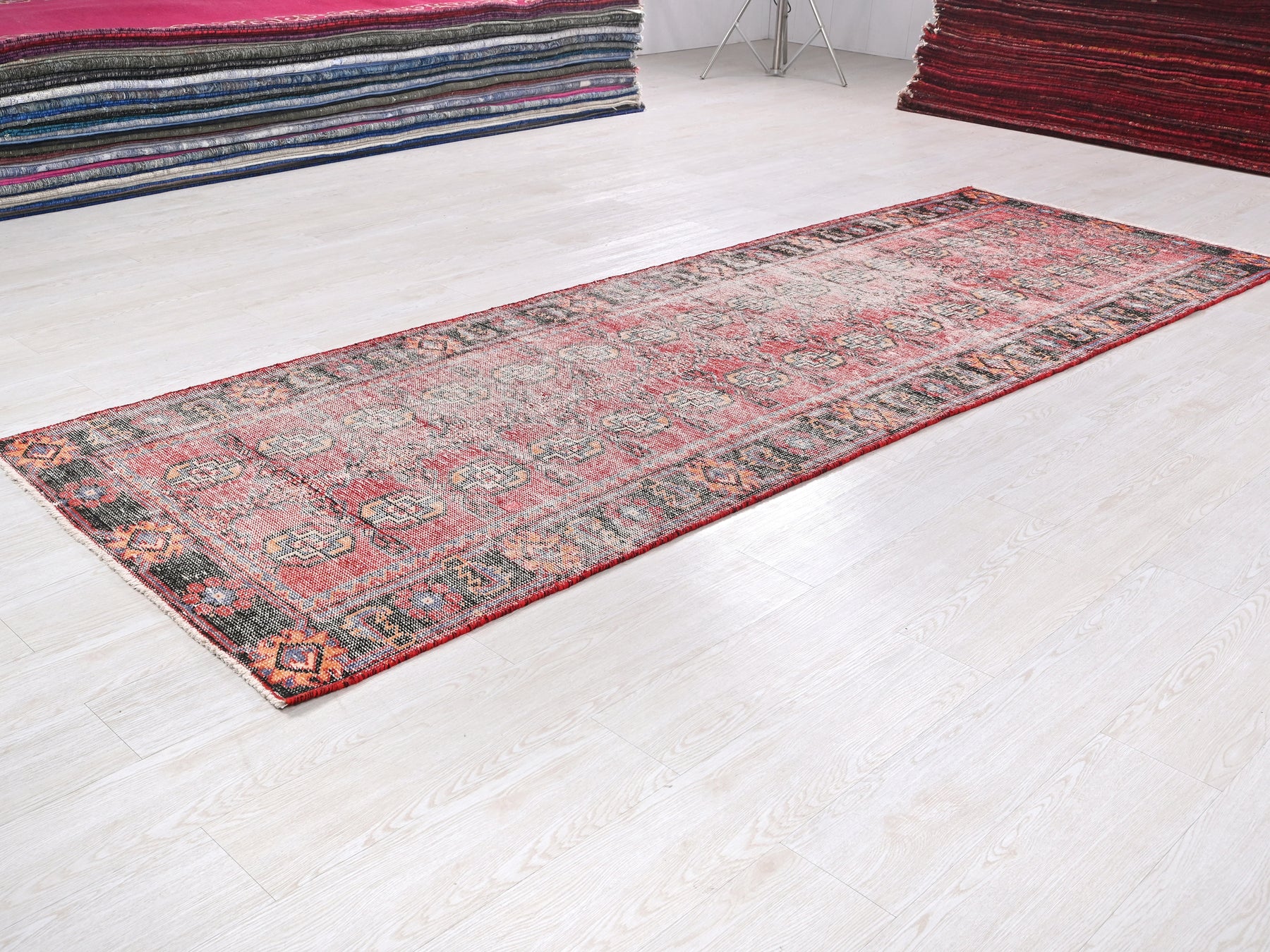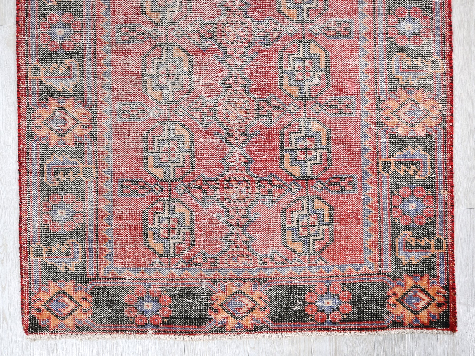 This is a hand-knotted, one-of-a-kind vintage rug. Due to the nature of this piece, there may be slight imperfections in its wear, shape, dimensions, and color. All of our rugs are professionally cleaned and repaired.