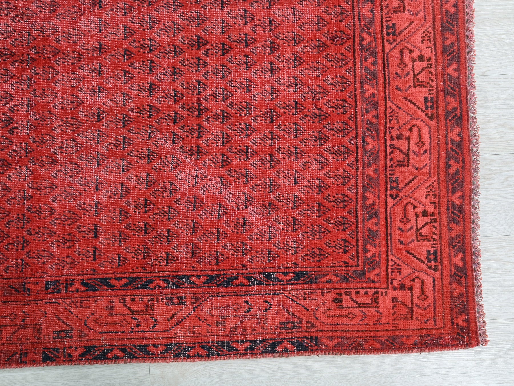This is a hand-knotted, one-of-a-kind vintage rug. Due to the nature of this piece, there may be slight imperfections in its wear, shape, dimensions, and color. All of our rugs are professionally cleaned and repaired.