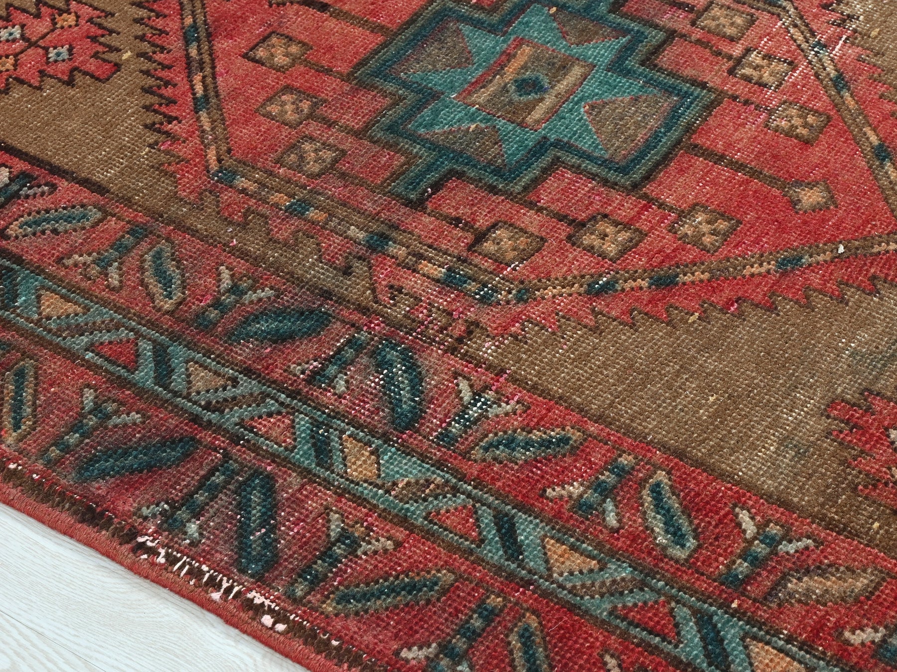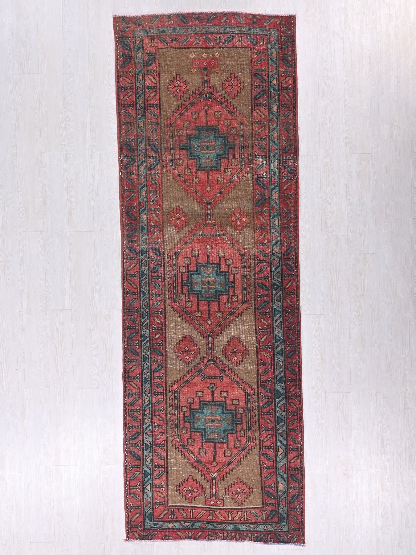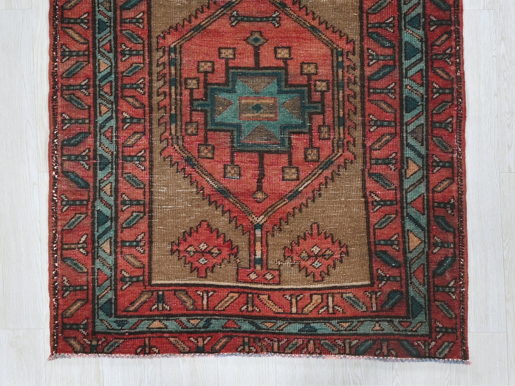 This is a hand-knotted, one-of-a-kind vintage rug. Due to the nature of this piece, there may be slight imperfections in its wear, shape, dimensions, and color. All of our rugs are professionally cleaned and repaired.