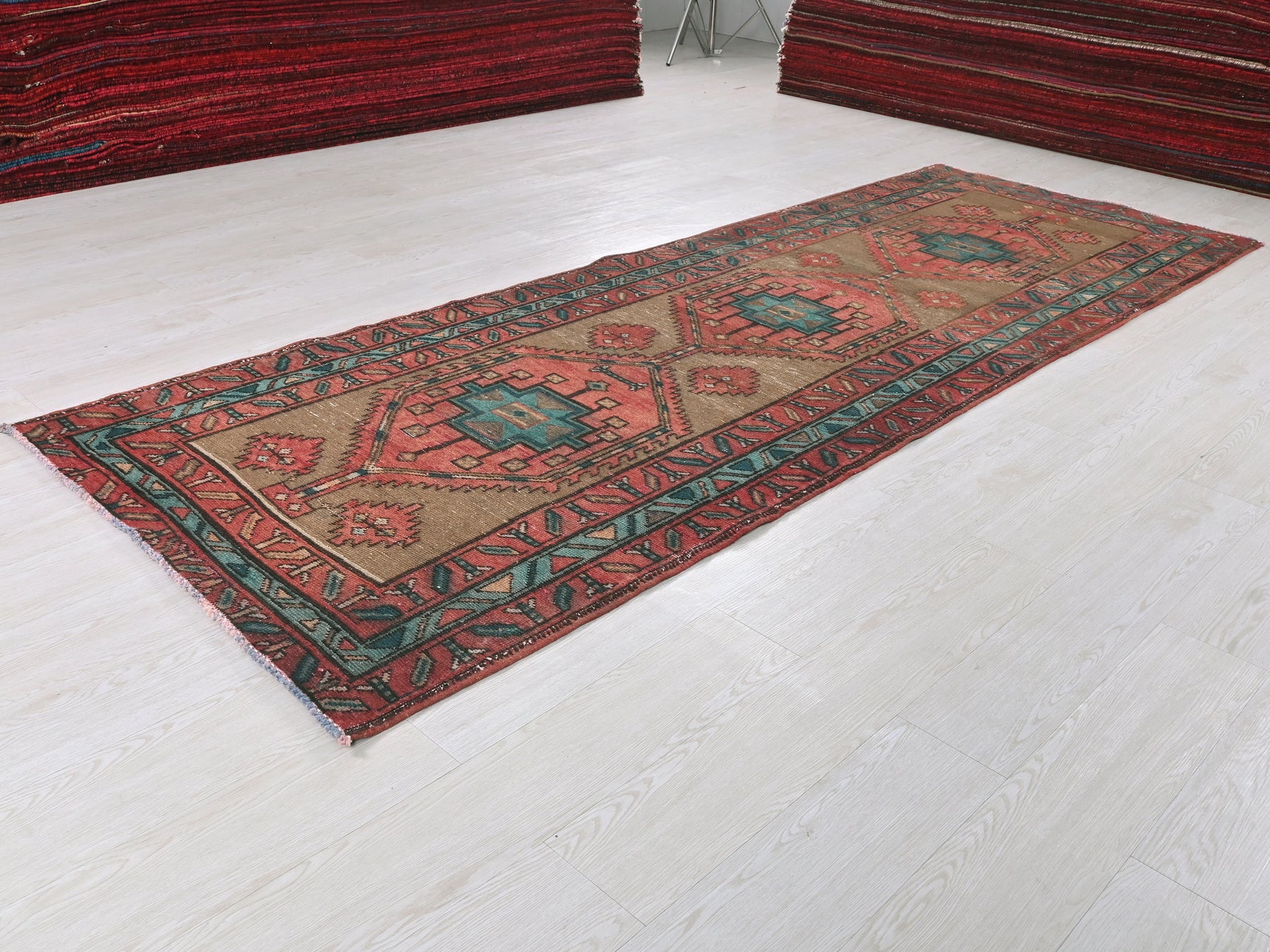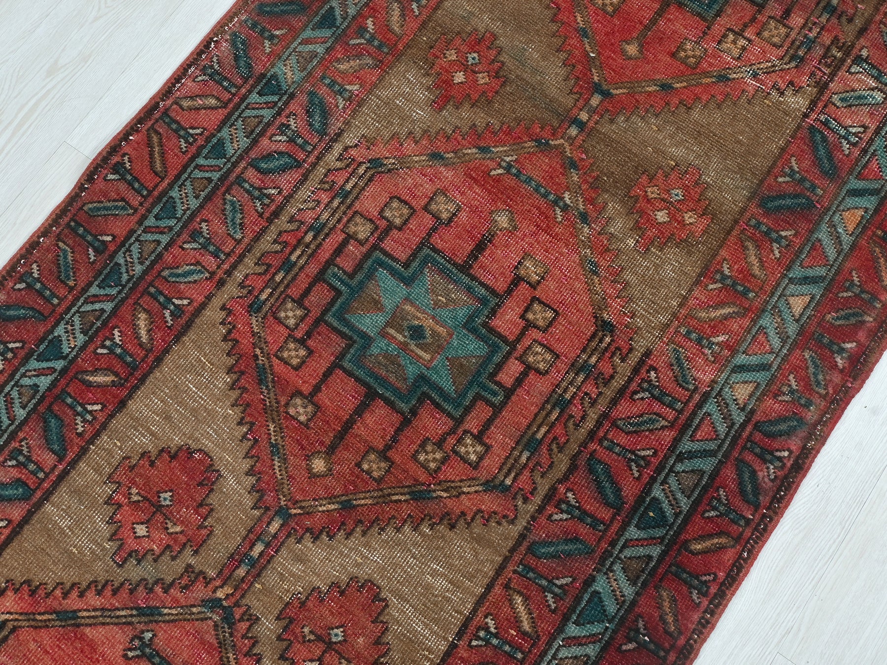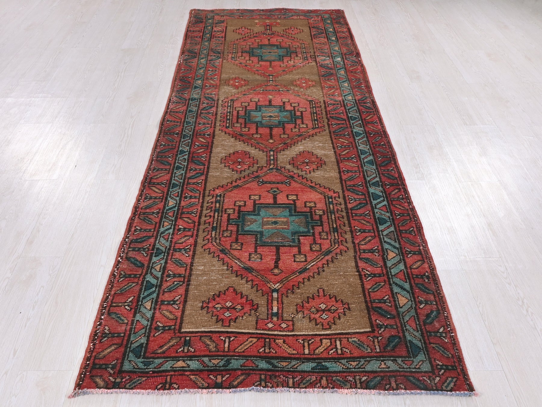 This is a hand-knotted, one-of-a-kind vintage rug. Due to the nature of this piece, there may be slight imperfections in its wear, shape, dimensions, and color. All of our rugs are professionally cleaned and repaired.