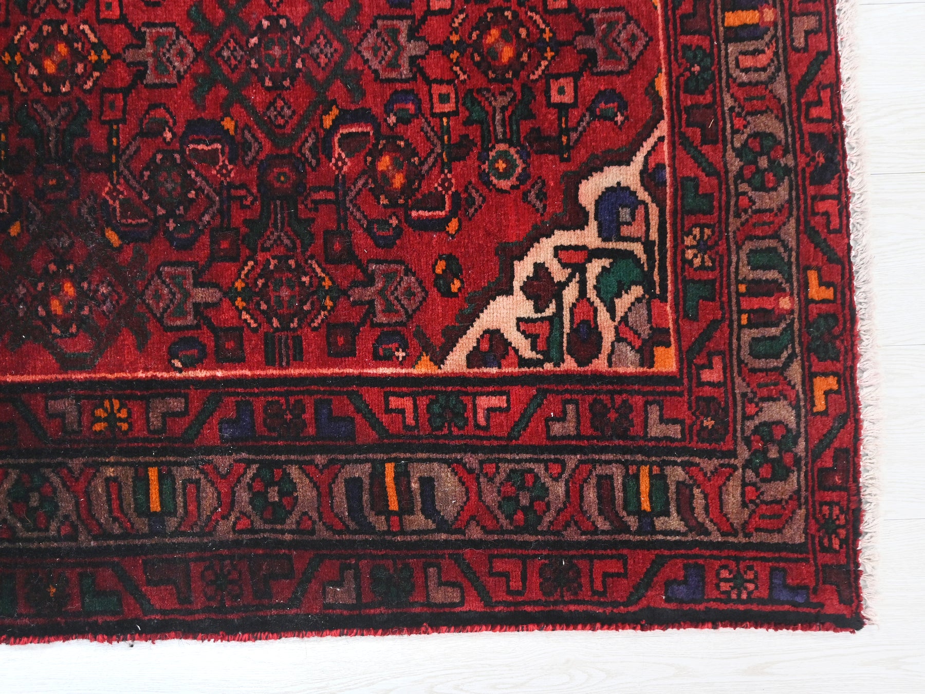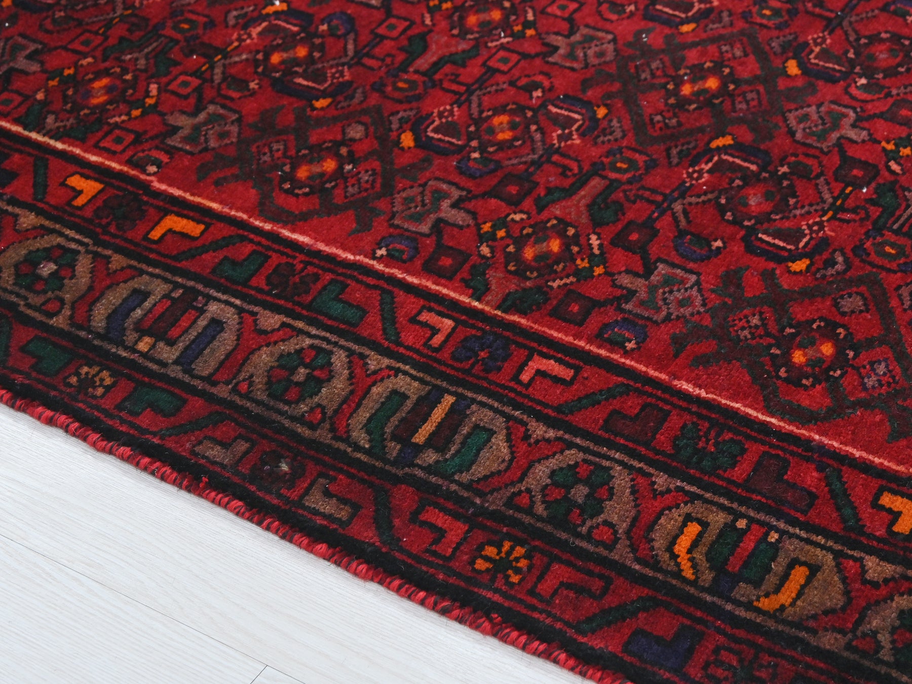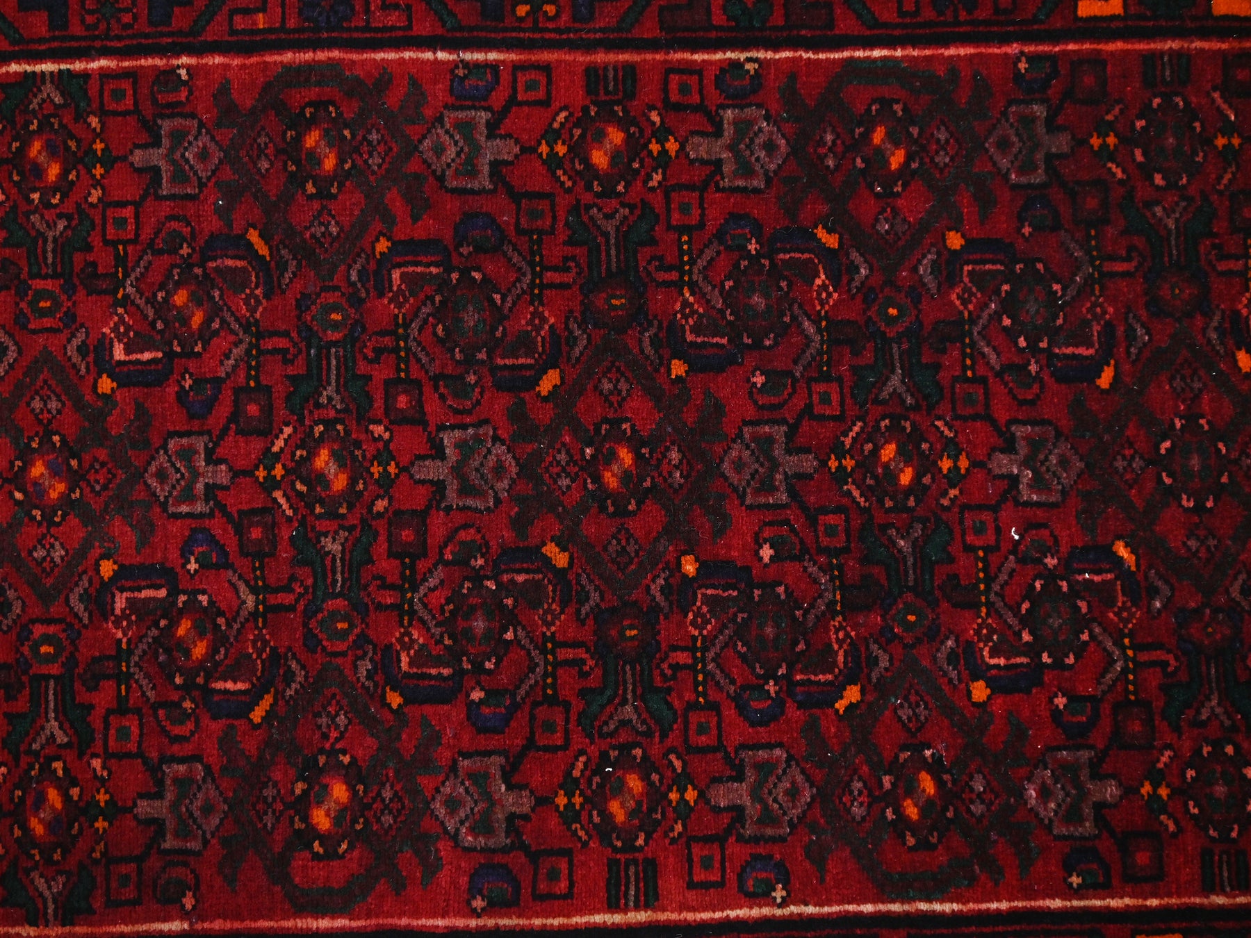 This is a hand-knotted, one-of-a-kind vintage rug. Due to the nature of this piece, there may be slight imperfections in its wear, shape, dimensions, and color. All of our rugs are professionally cleaned and repaired.