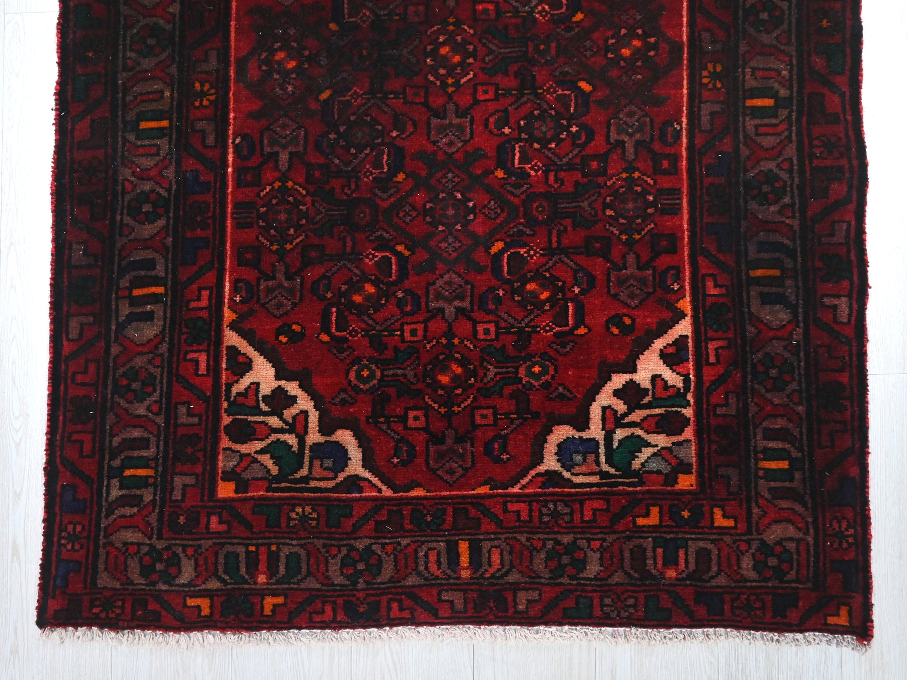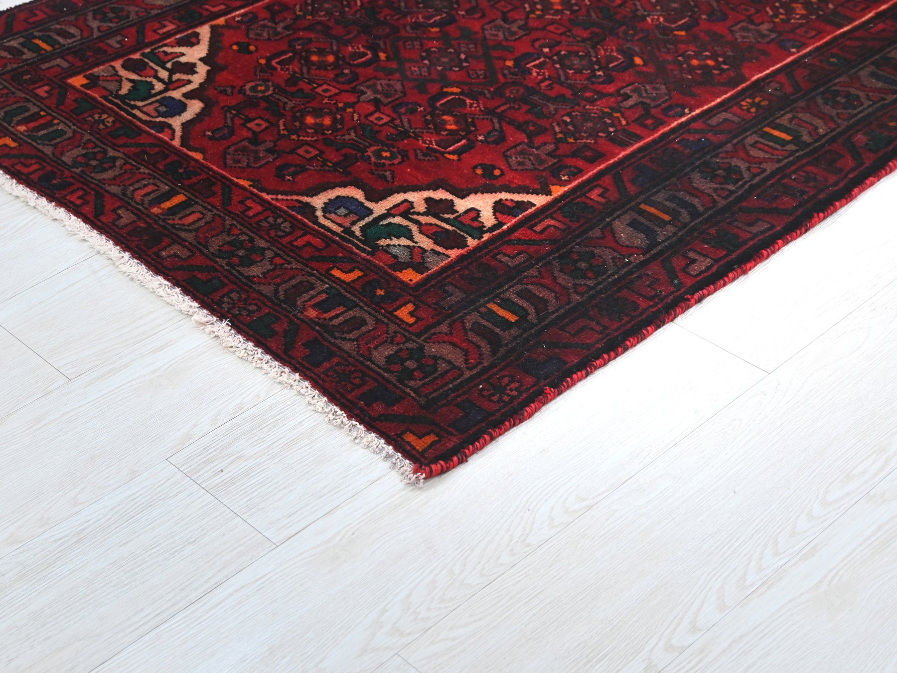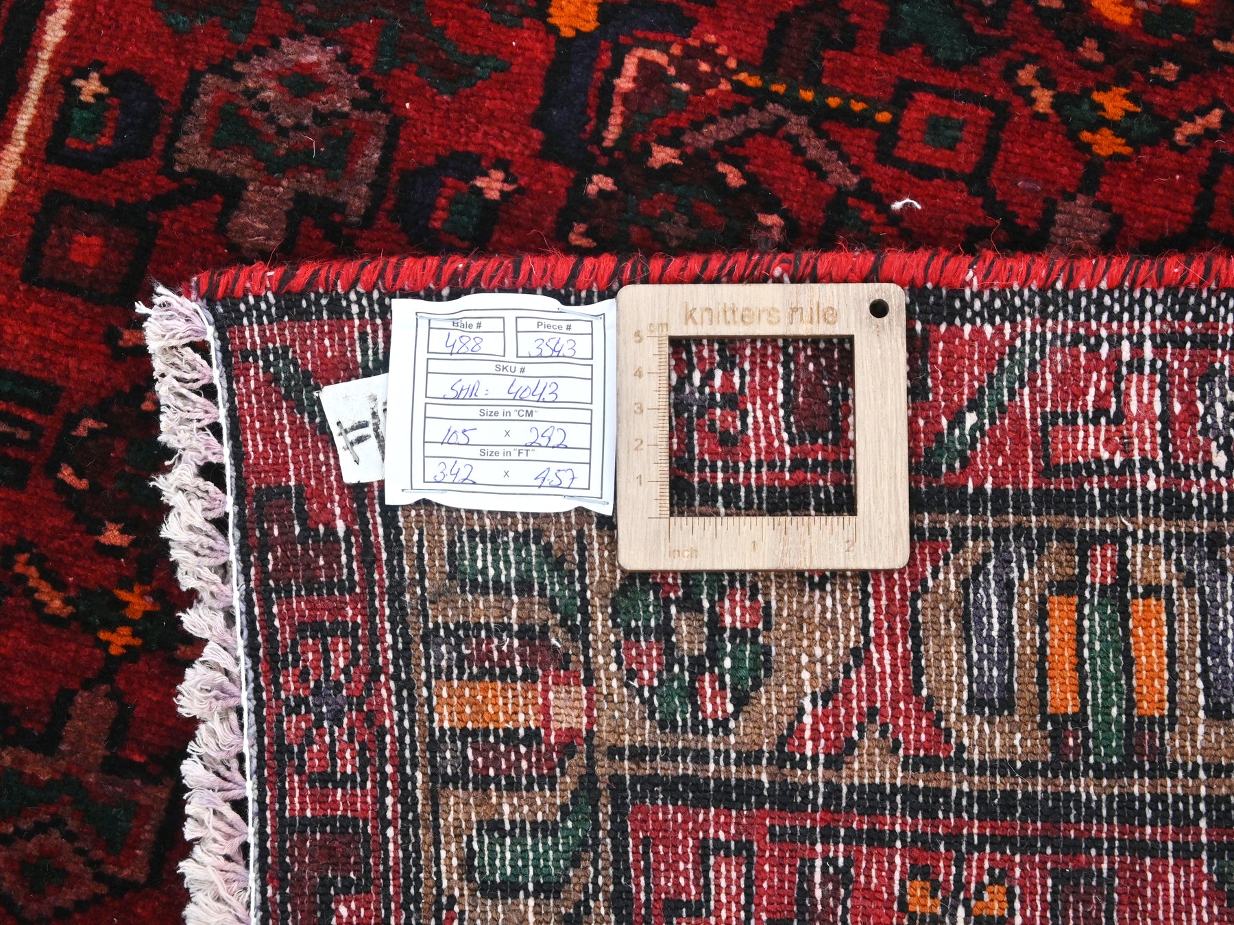This is a hand-knotted, one-of-a-kind vintage rug. Due to the nature of this piece, there may be slight imperfections in its wear, shape, dimensions, and color. All of our rugs are professionally cleaned and repaired.