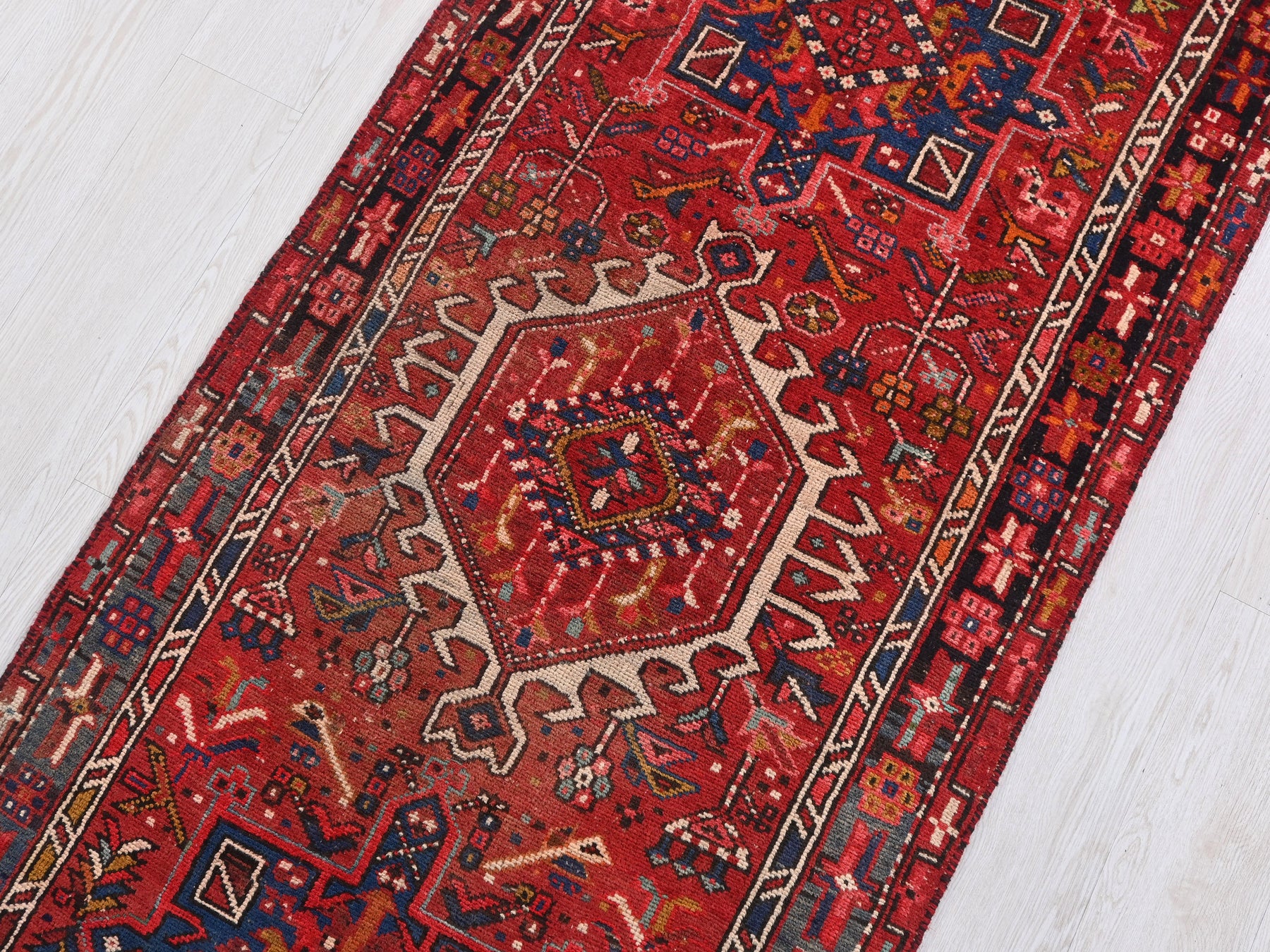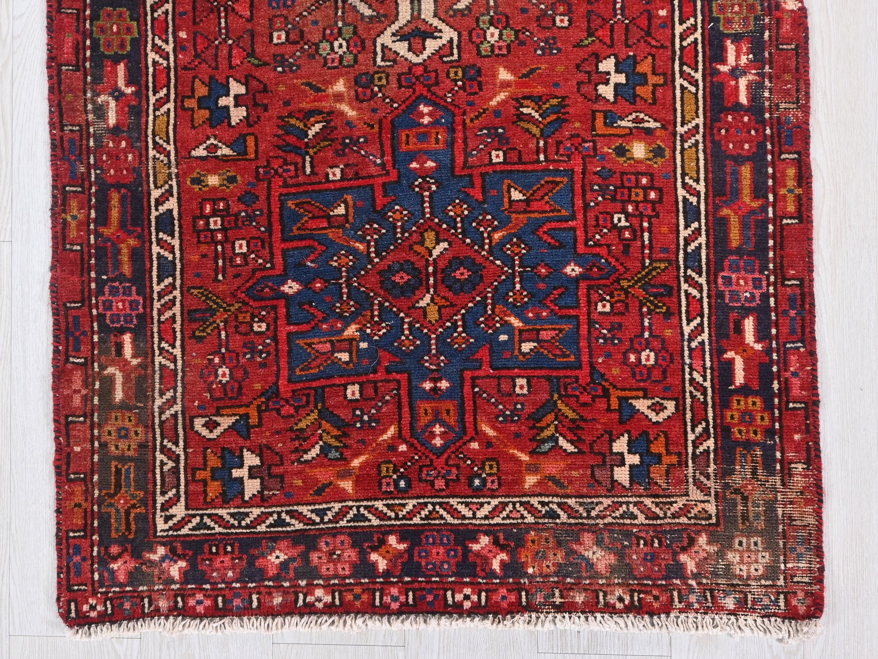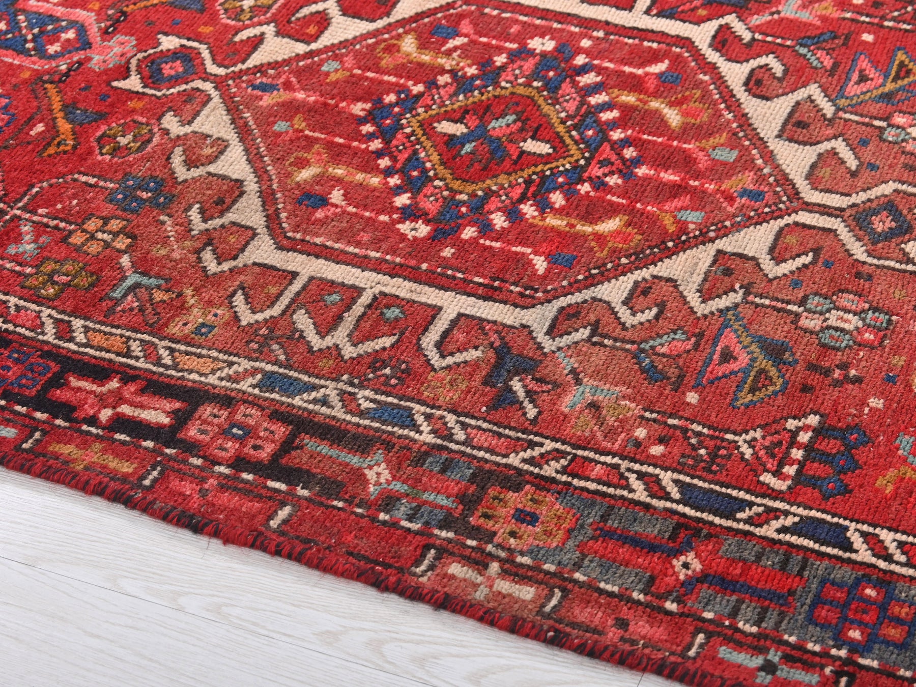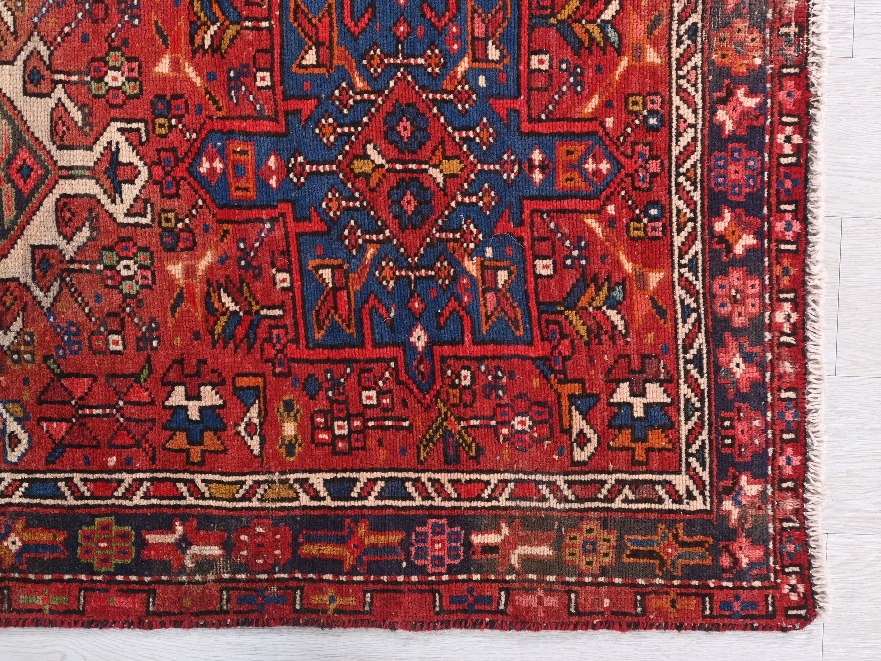 This is a hand-knotted, one-of-a-kind vintage rug. Due to the nature of this piece, there may be slight imperfections in its wear, shape, dimensions, and color. All of our rugs are professionally cleaned and repaired.