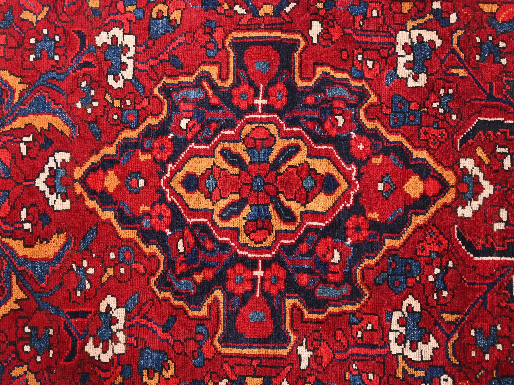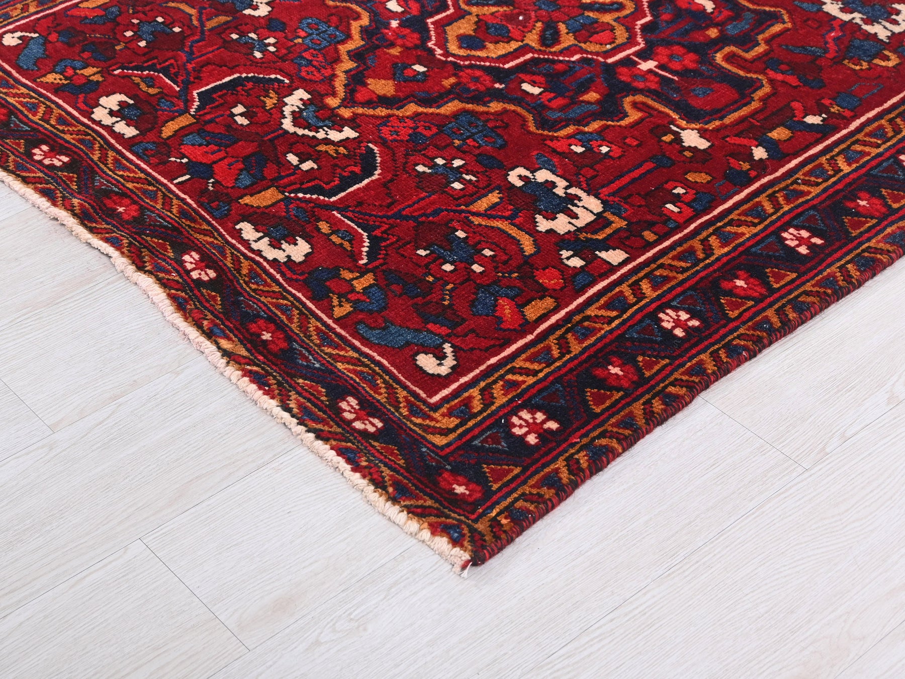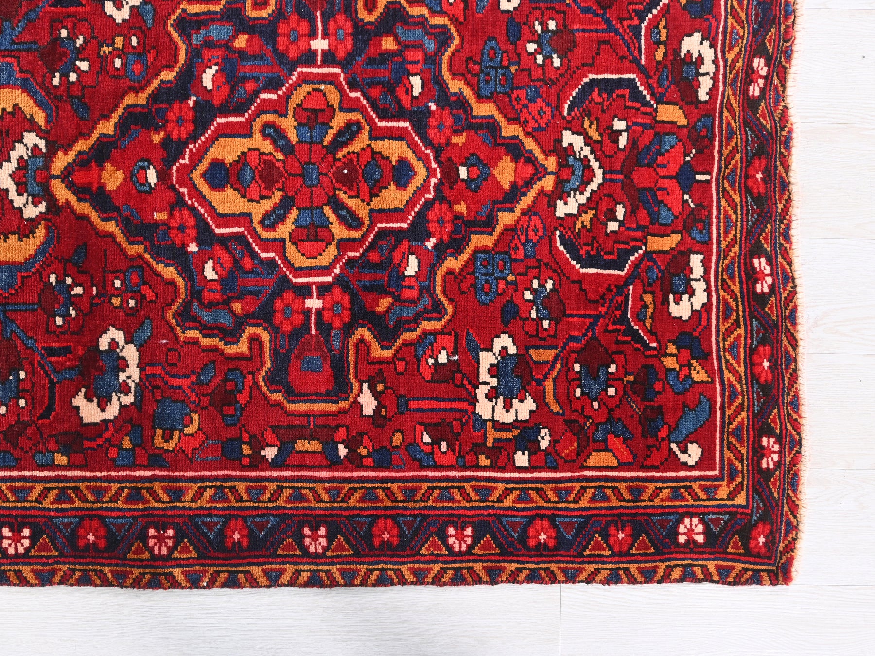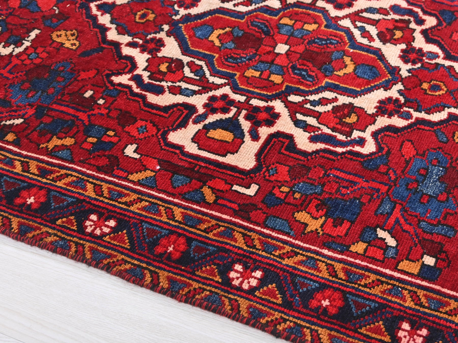 This is a hand-knotted, one-of-a-kind vintage rug. Due to the nature of this piece, there may be slight imperfections in its wear, shape, dimensions, and color. All of our rugs are professionally cleaned and repaired.