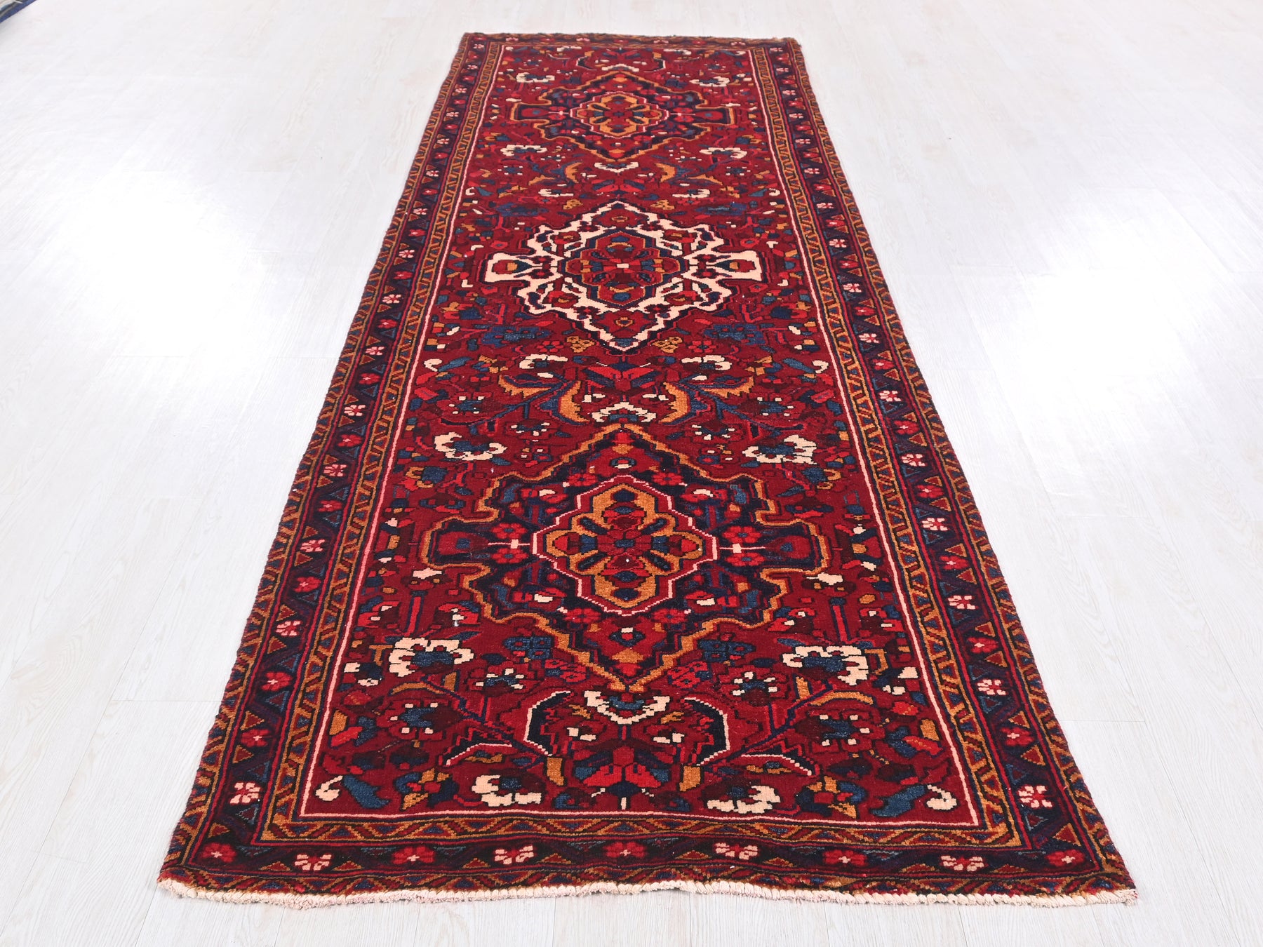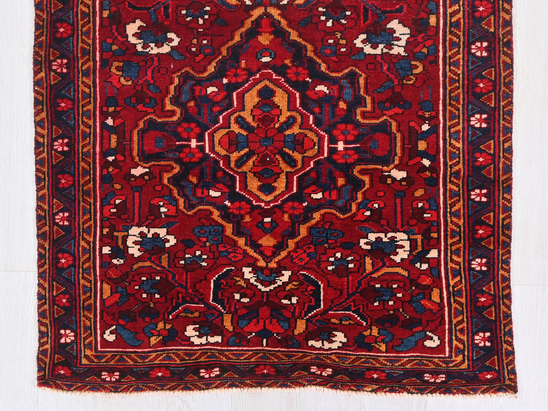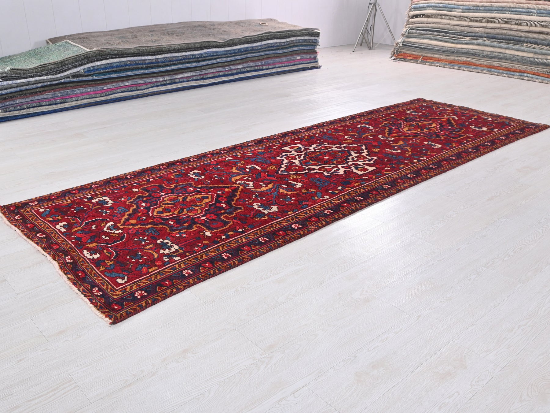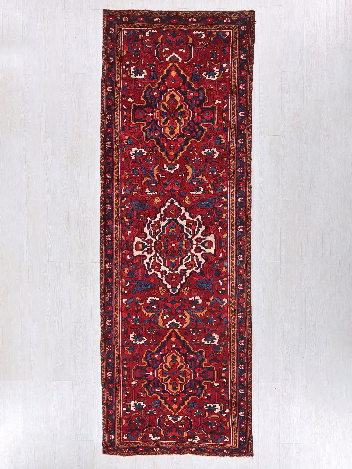 This is a hand-knotted, one-of-a-kind vintage rug. Due to the nature of this piece, there may be slight imperfections in its wear, shape, dimensions, and color. All of our rugs are professionally cleaned and repaired.