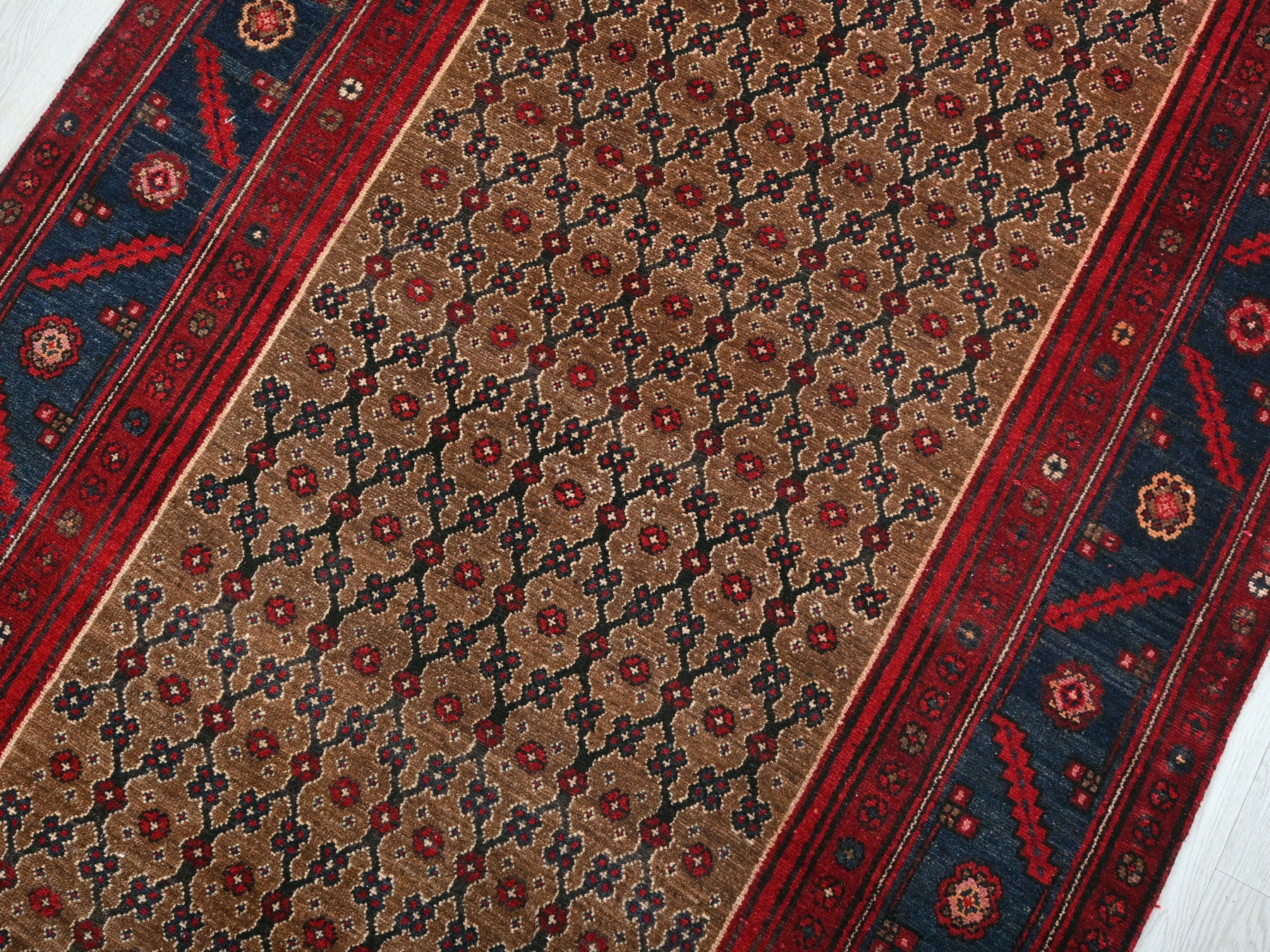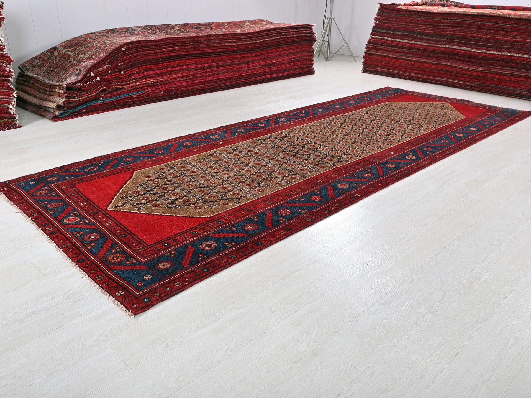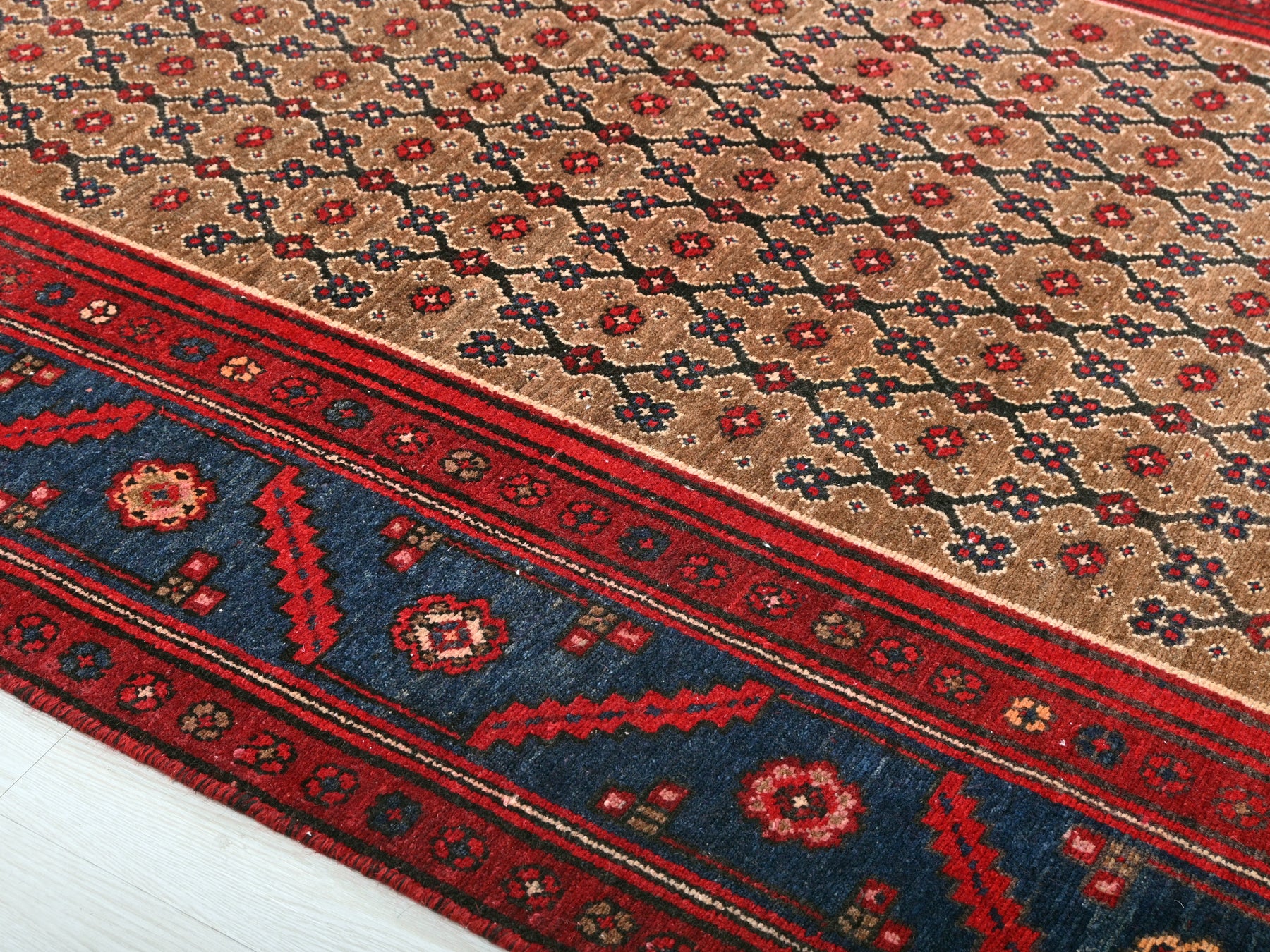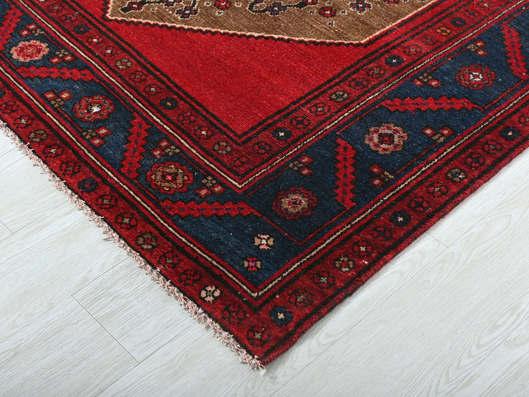 This is a hand-knotted, one-of-a-kind vintage rug. Due to the nature of this piece, there may be slight imperfections in its wear, shape, dimensions, and color. All of our rugs are professionally cleaned and repaired.