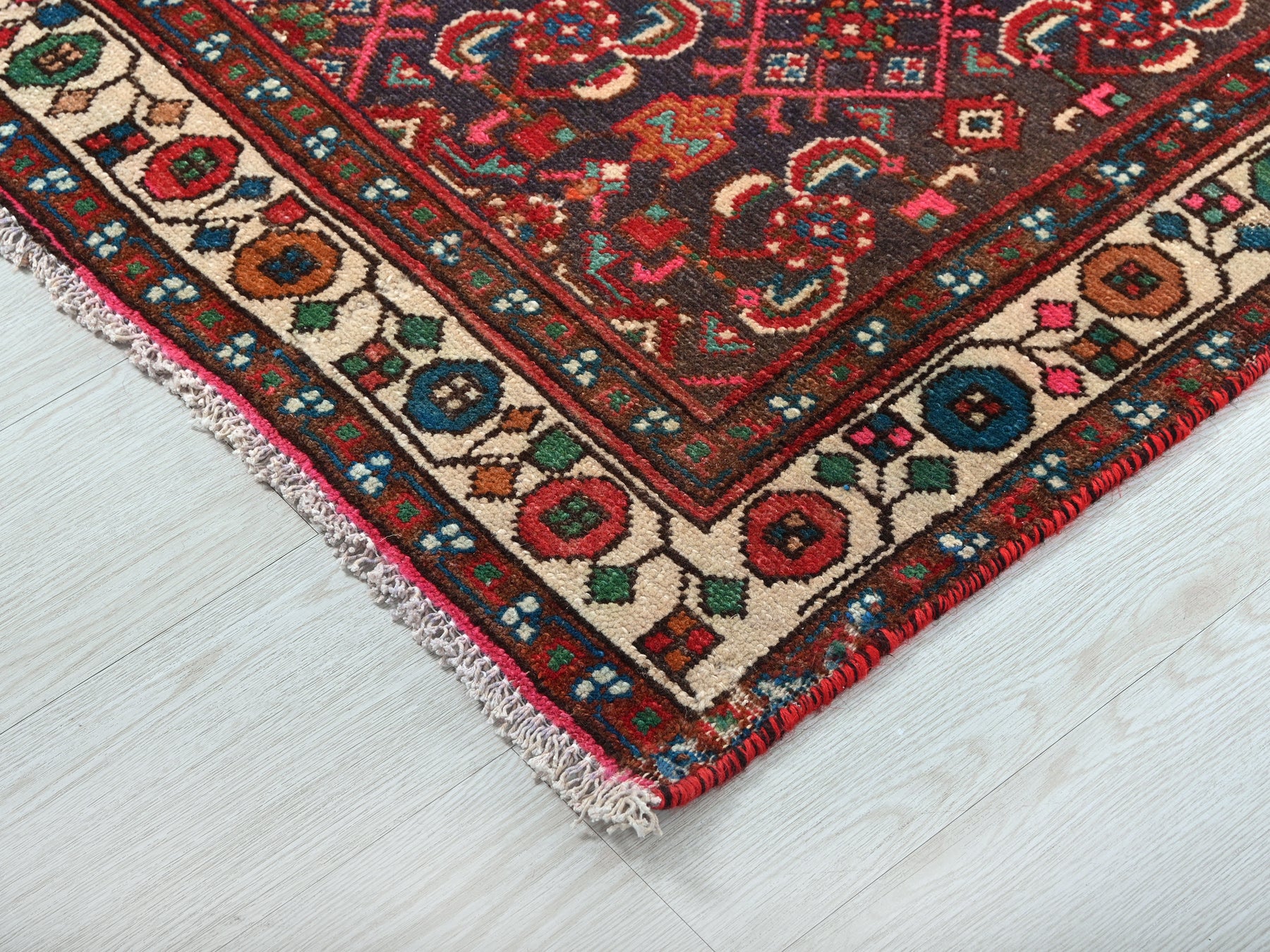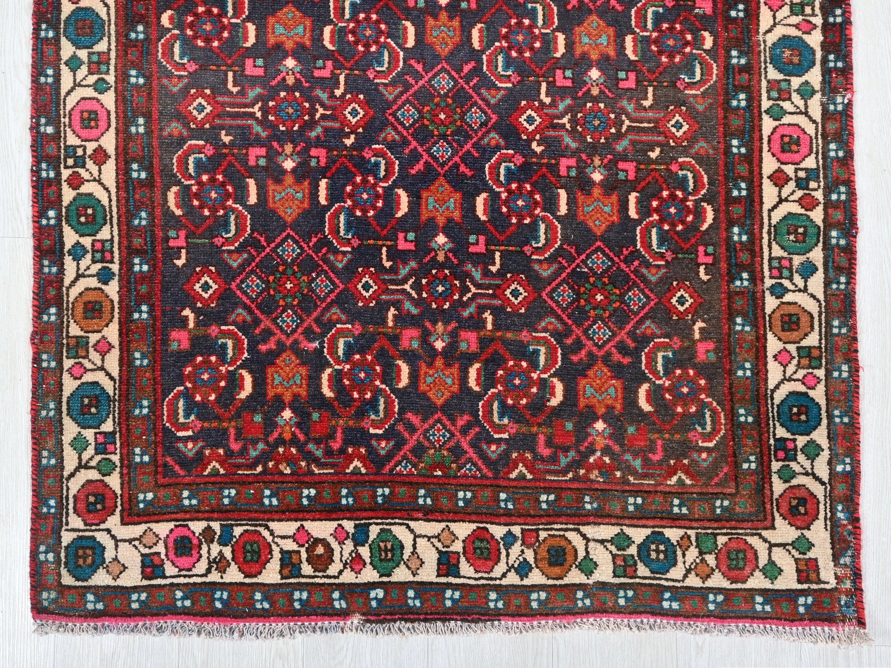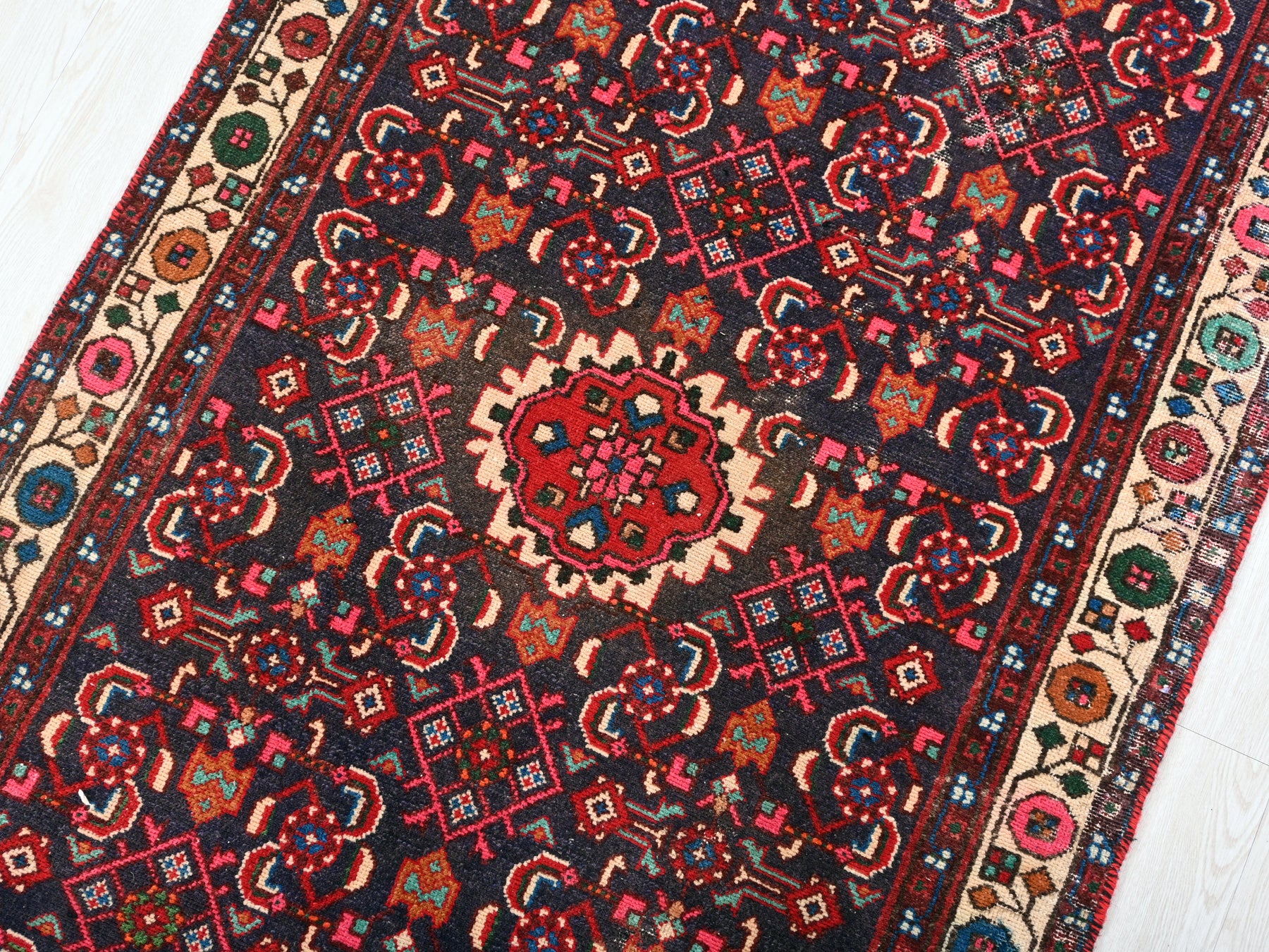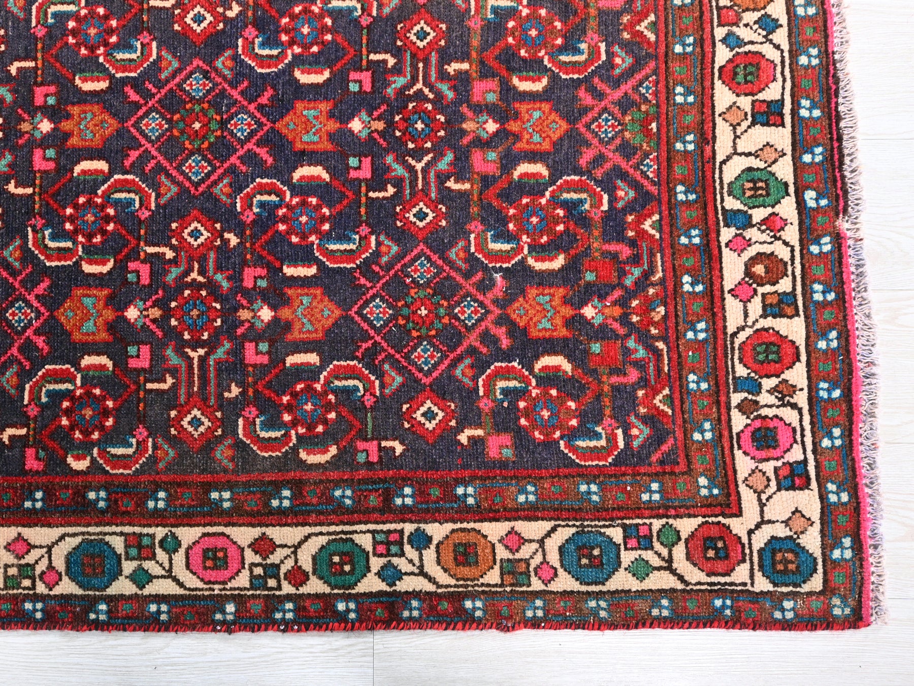 This is a hand-knotted, one-of-a-kind vintage rug. Due to the nature of this piece, there may be slight imperfections in its wear, shape, dimensions, and color. All of our rugs are professionally cleaned and repaired.