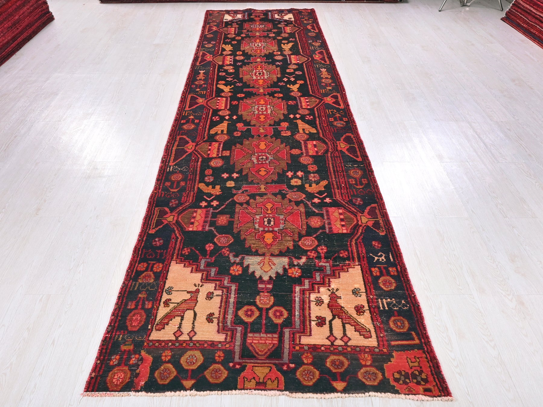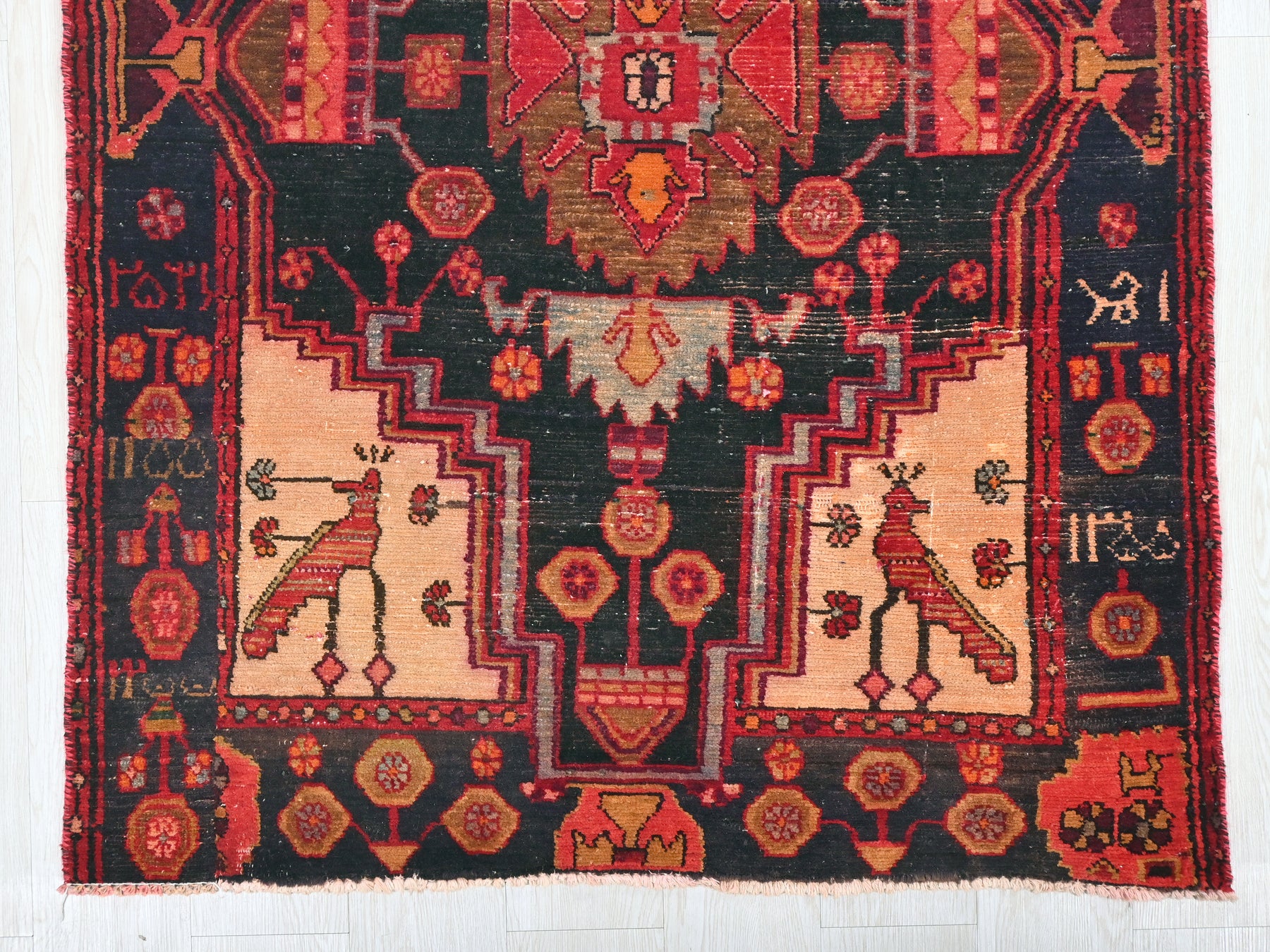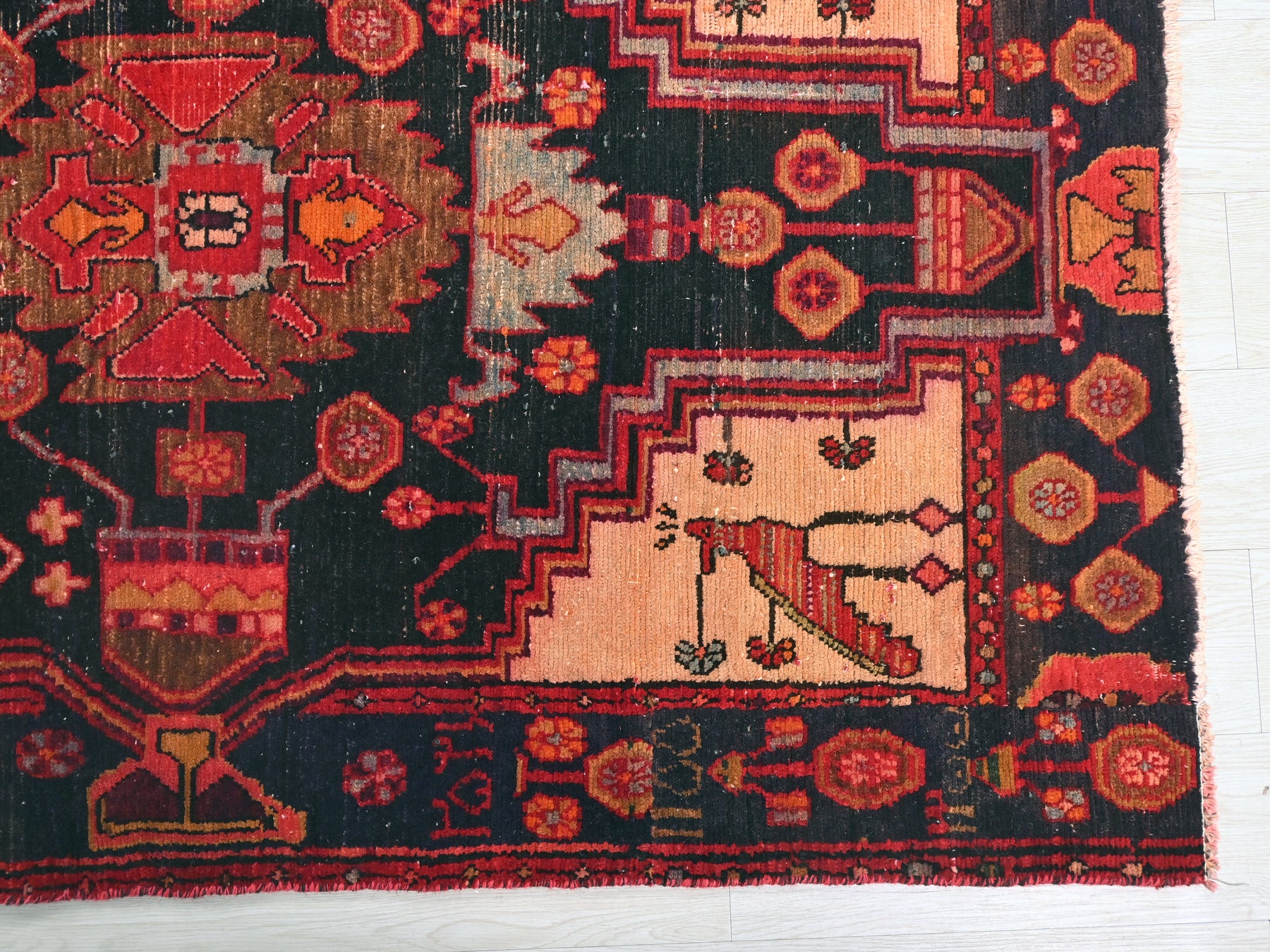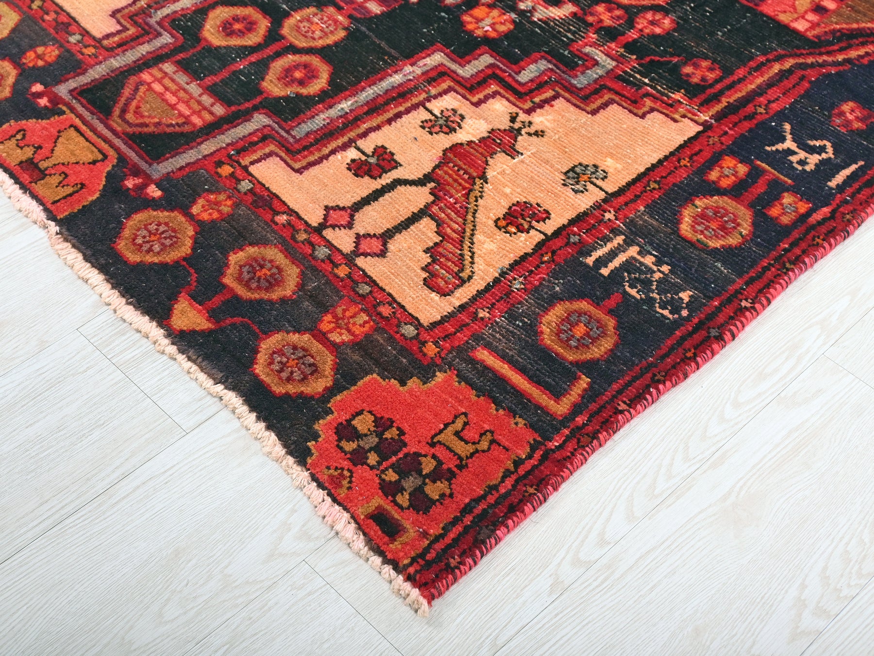 This is a hand-knotted, one-of-a-kind vintage rug. Due to the nature of this piece, there may be slight imperfections in its wear, shape, dimensions, and color. All of our rugs are professionally cleaned and repaired.