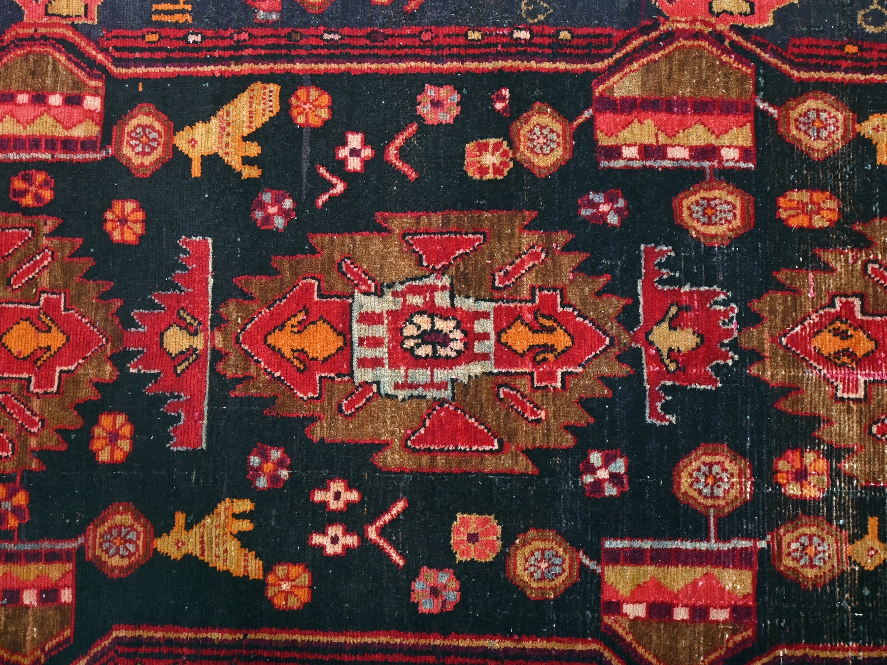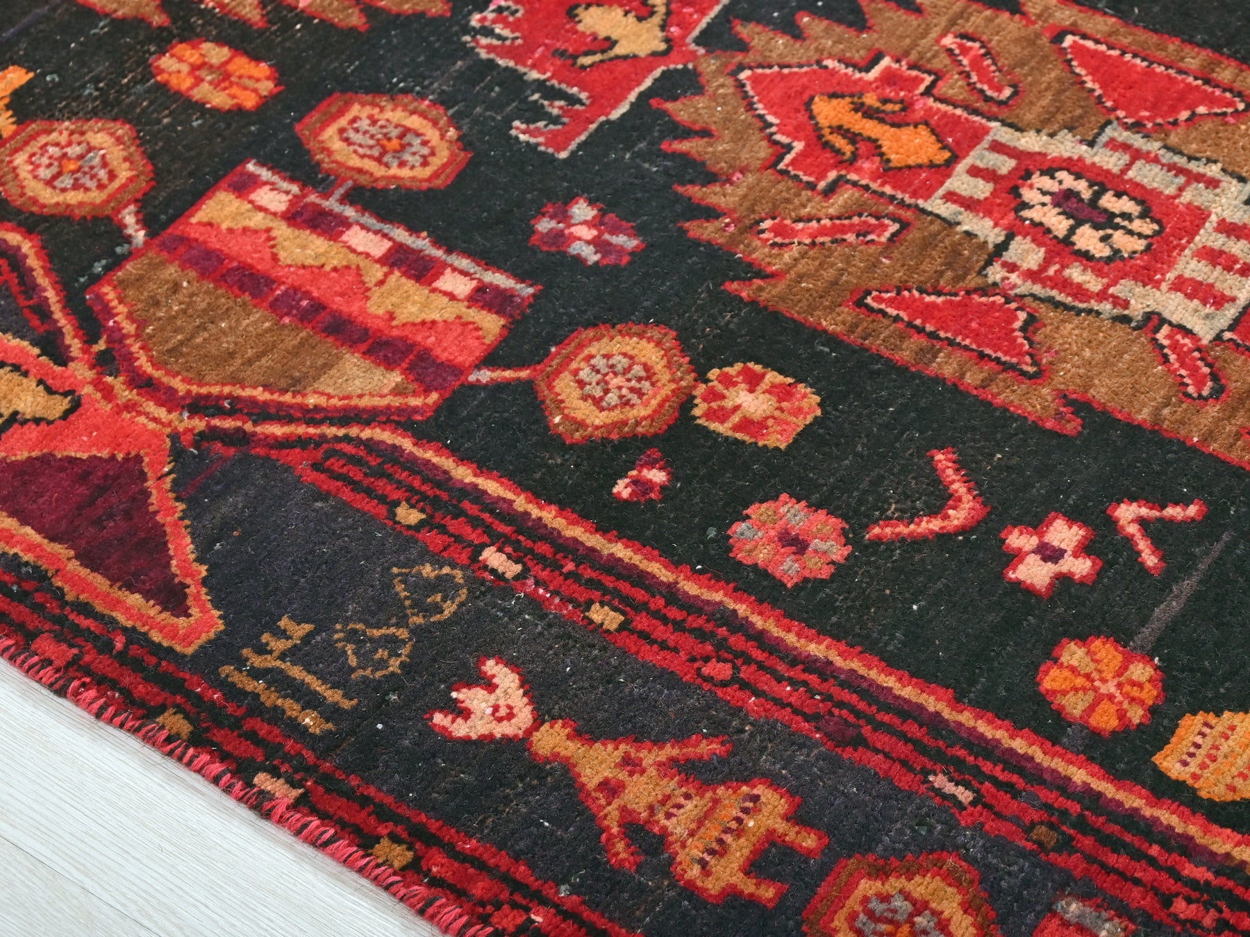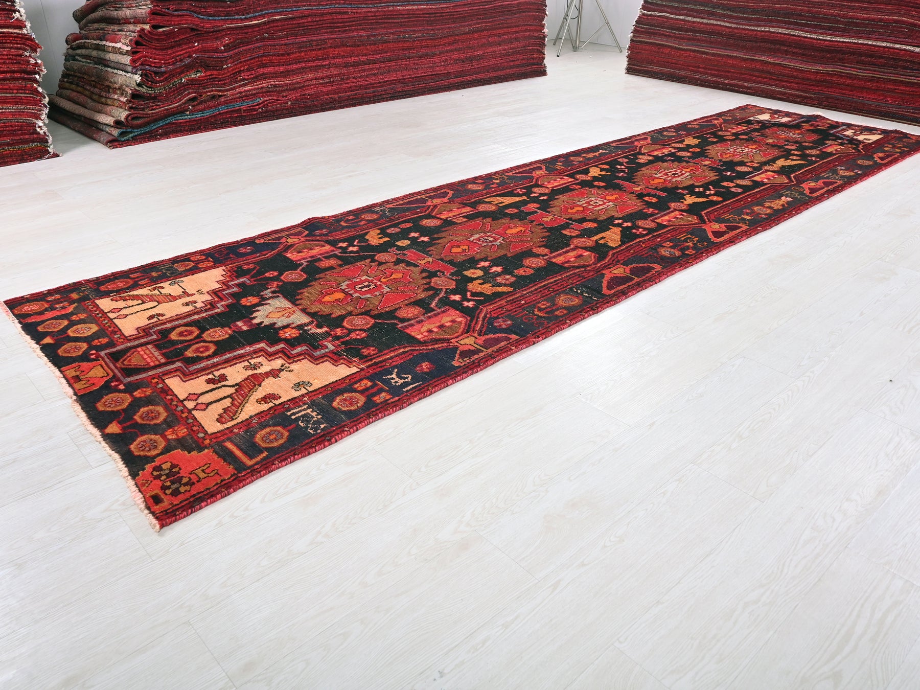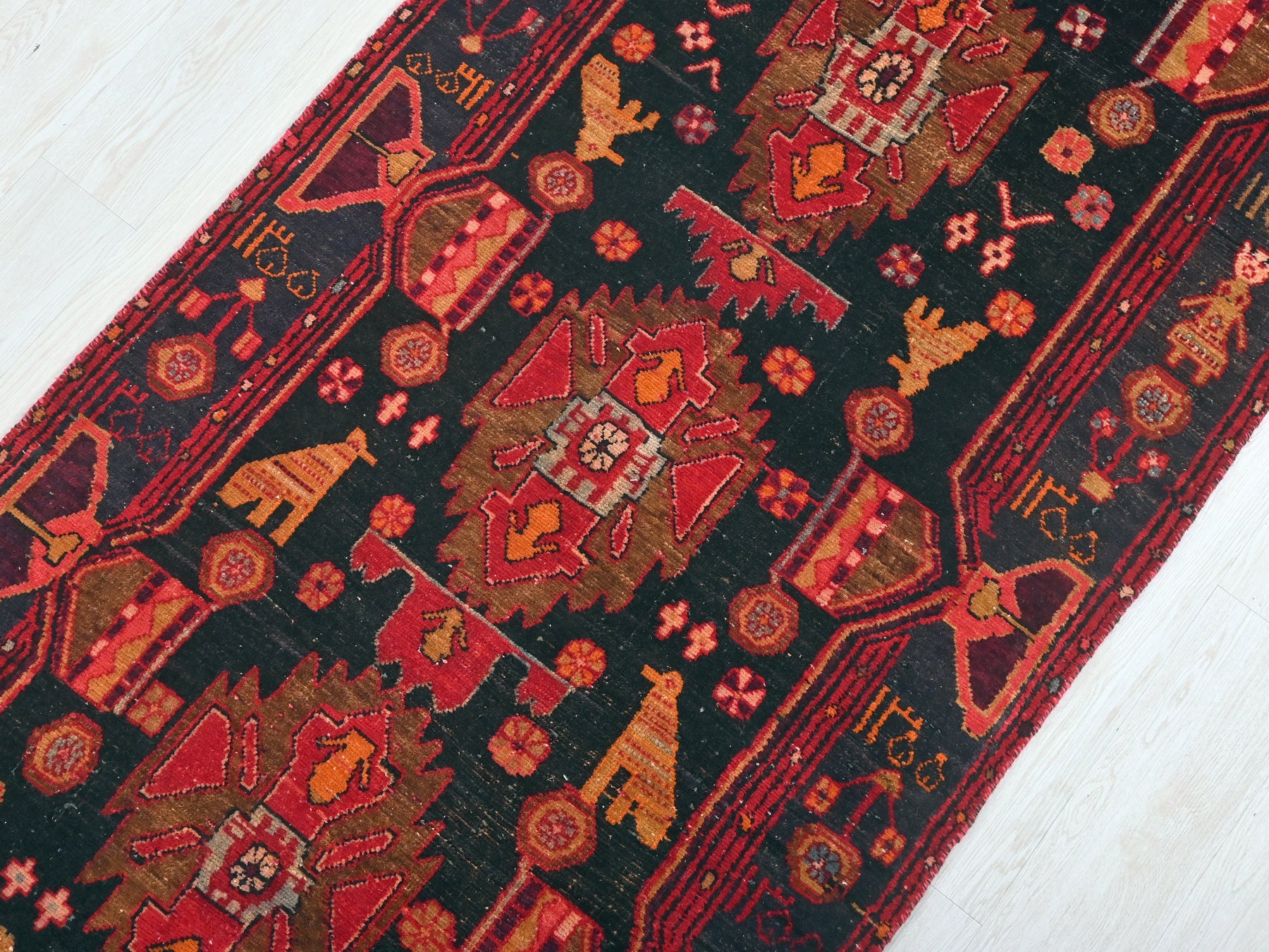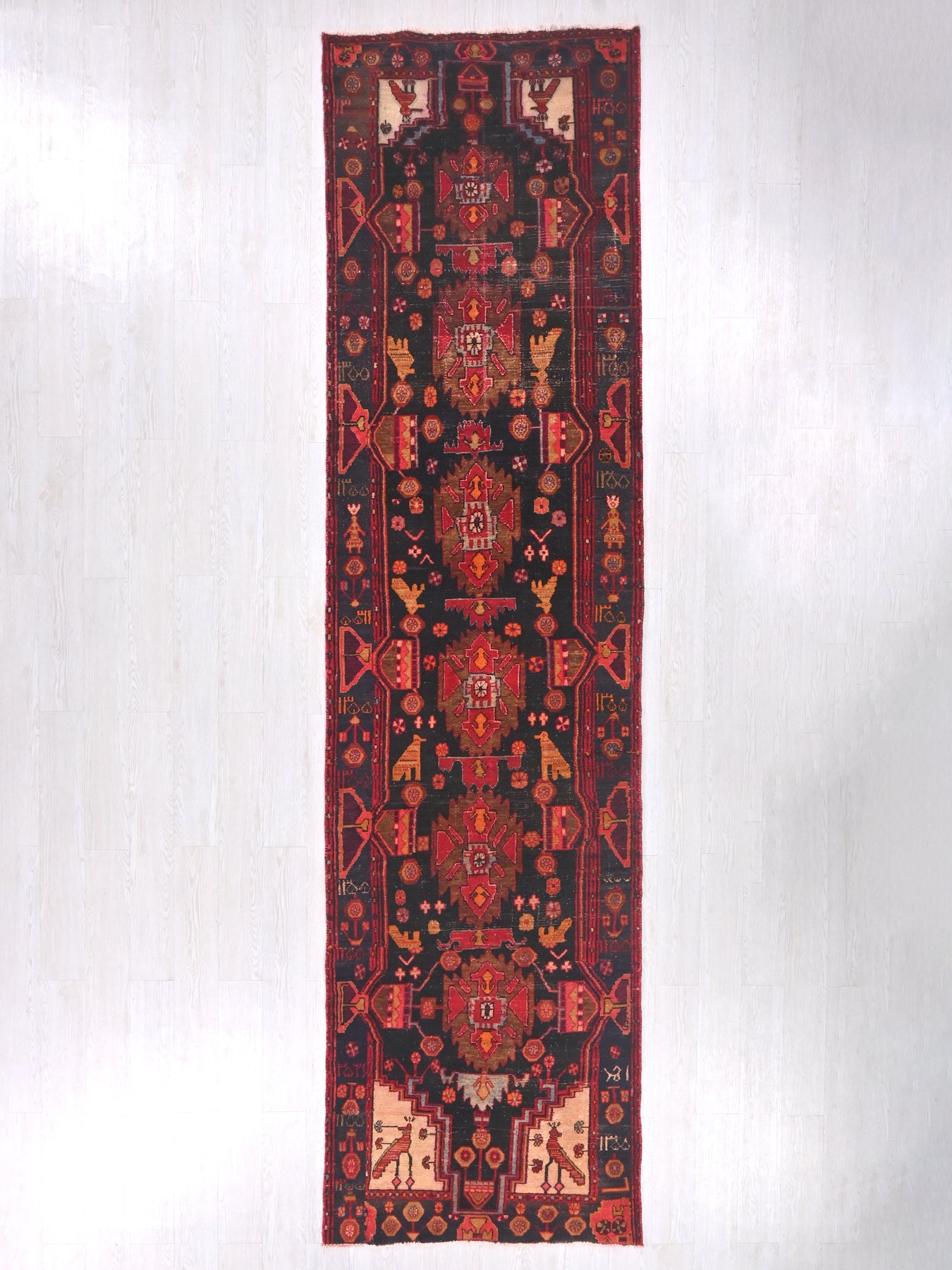 This is a hand-knotted, one-of-a-kind vintage rug. Due to the nature of this piece, there may be slight imperfections in its wear, shape, dimensions, and color. All of our rugs are professionally cleaned and repaired.