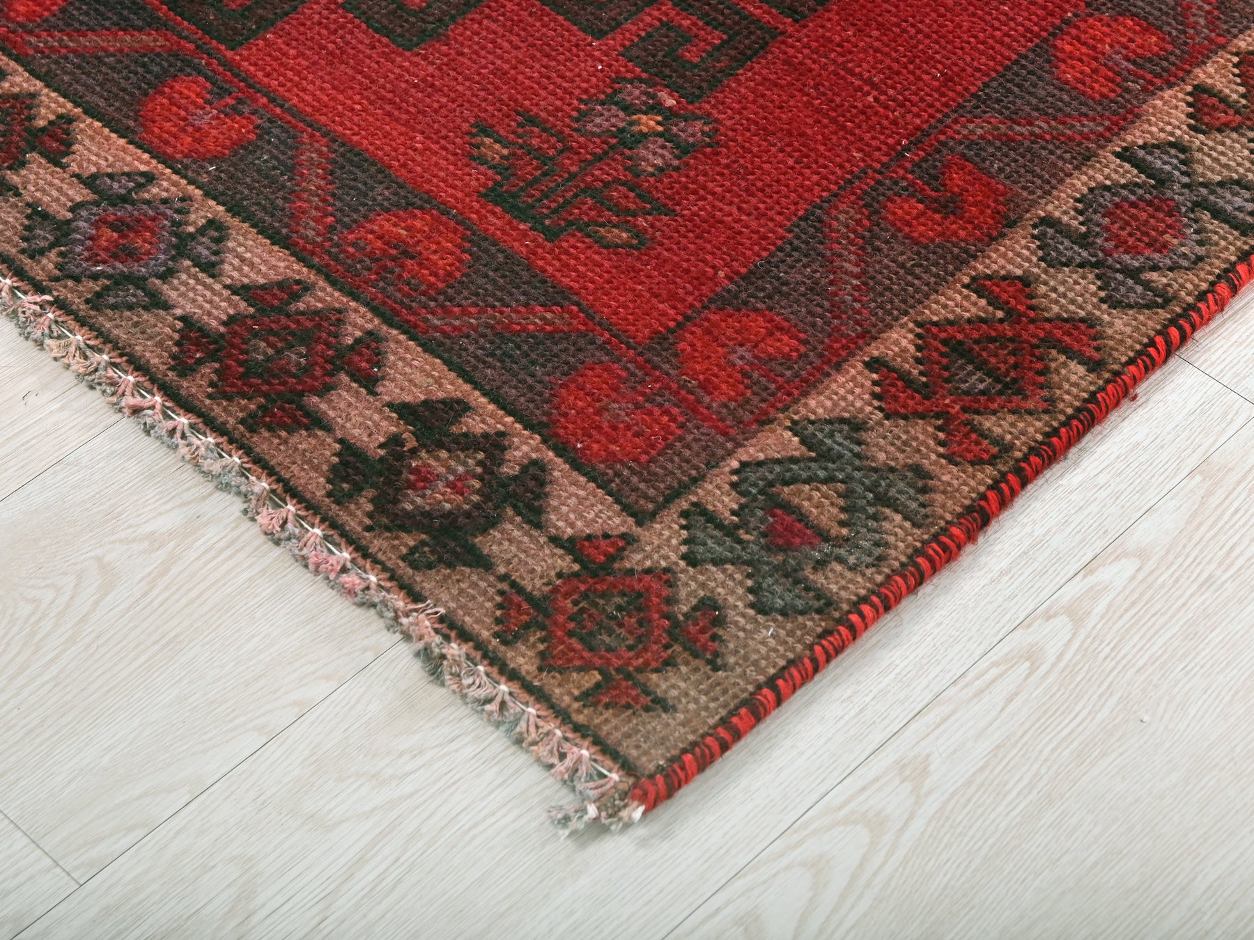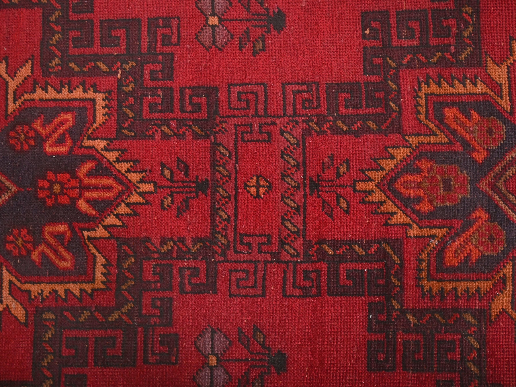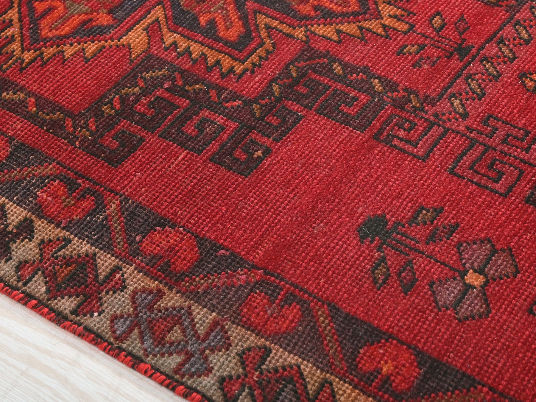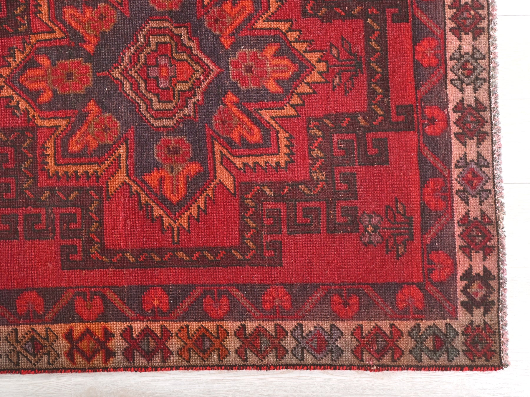 This is a hand-knotted, one-of-a-kind vintage rug. Due to the nature of this piece, there may be slight imperfections in its wear, shape, dimensions, and color. All of our rugs are professionally cleaned and repaired.