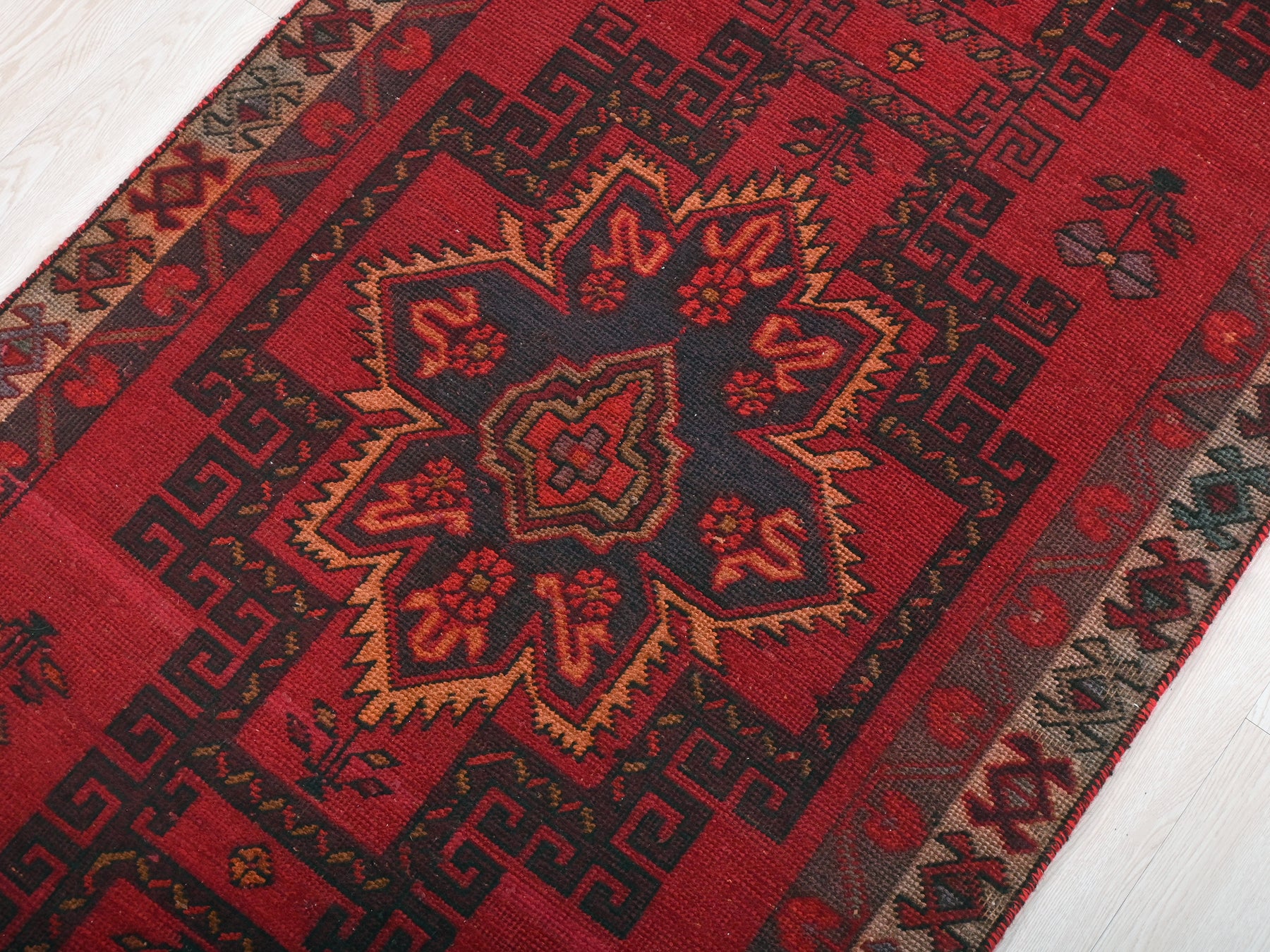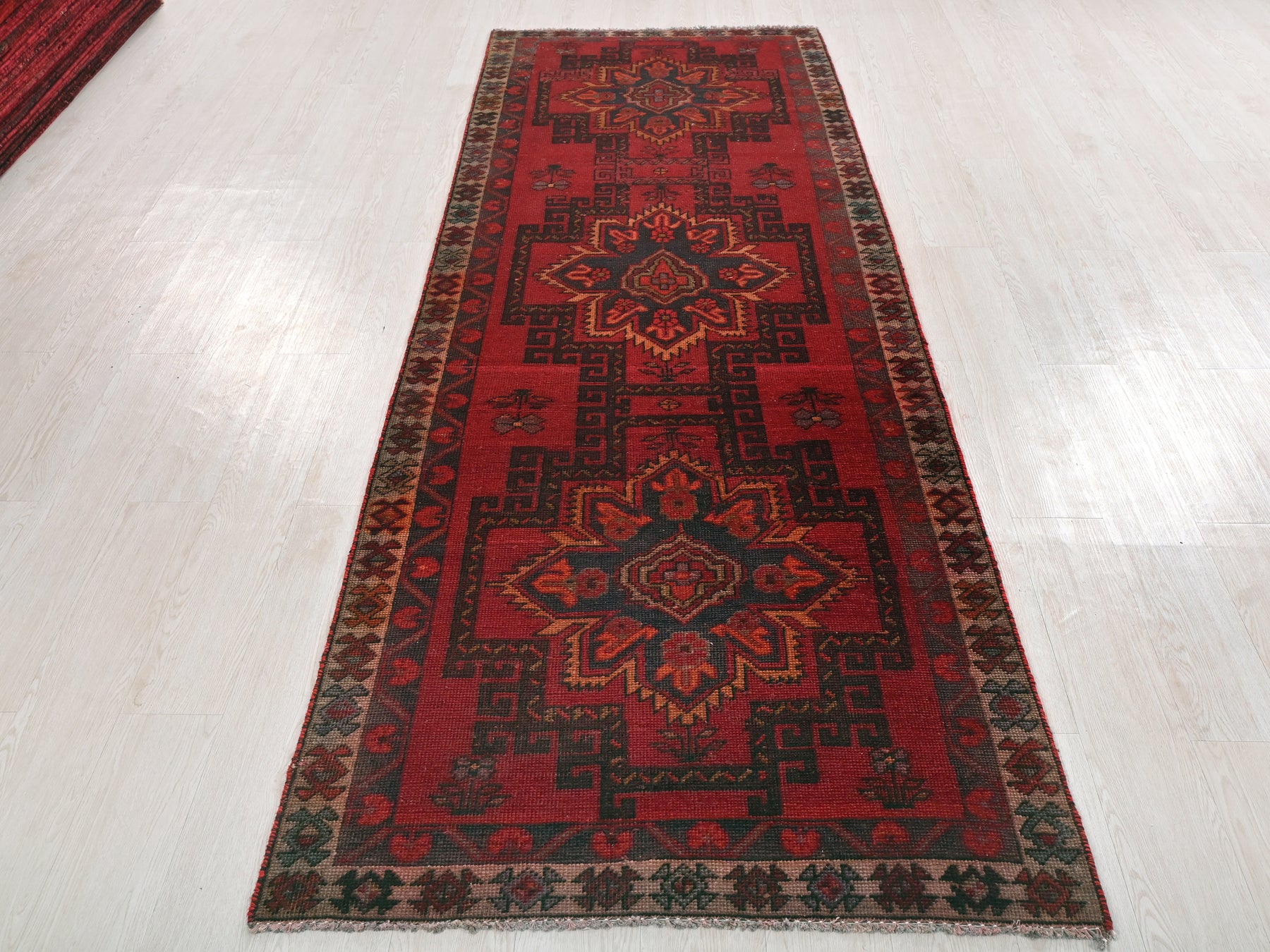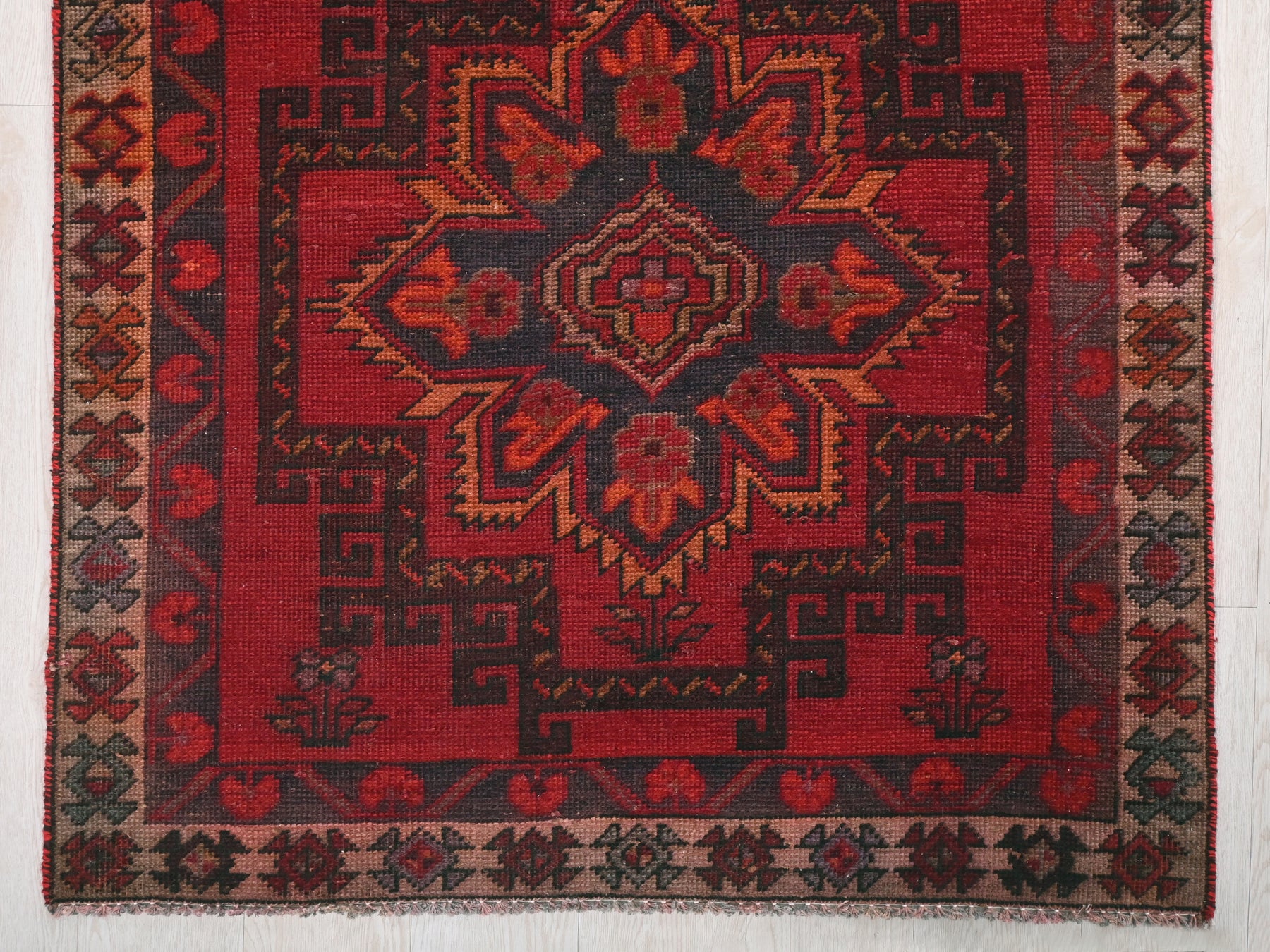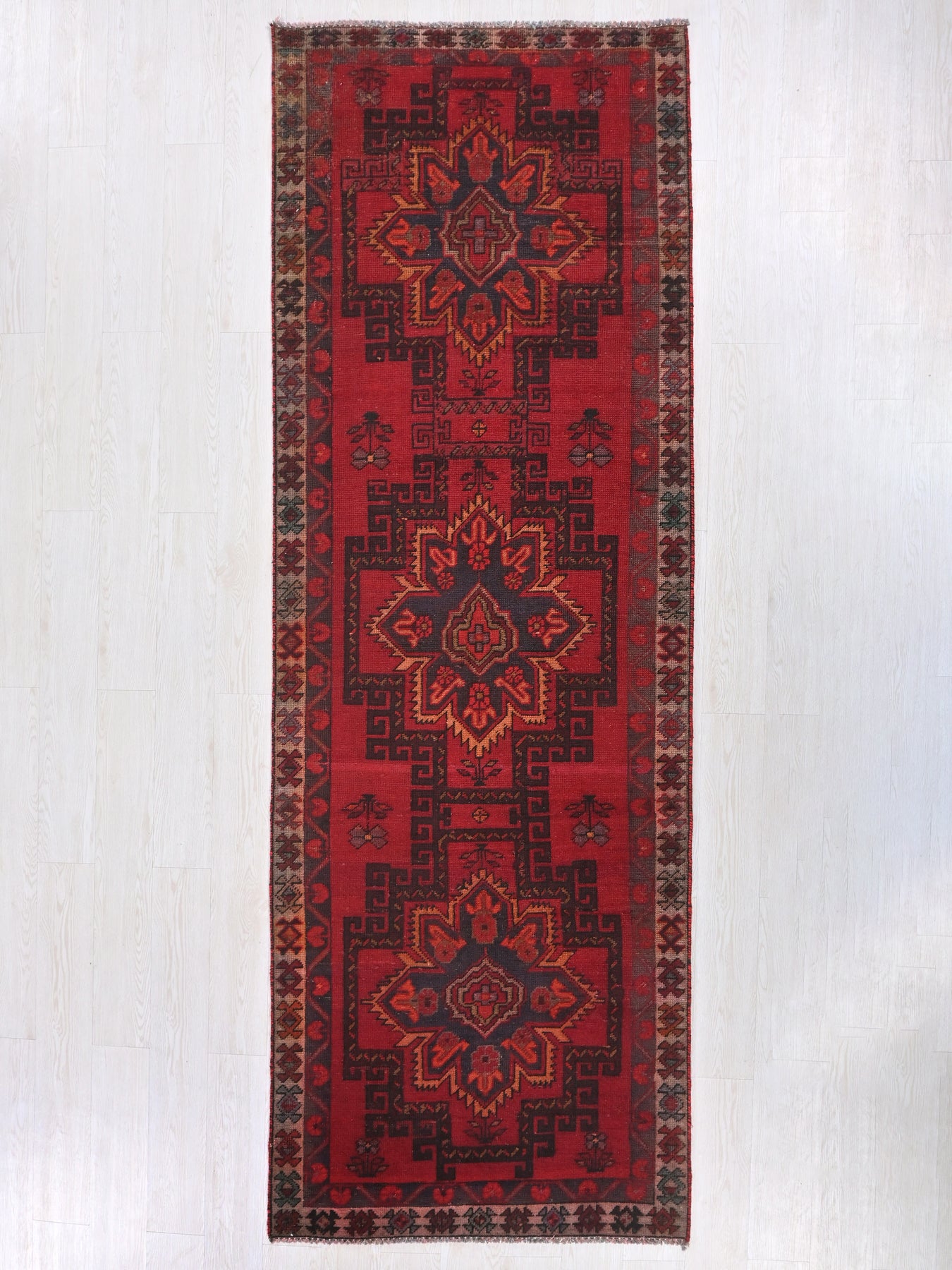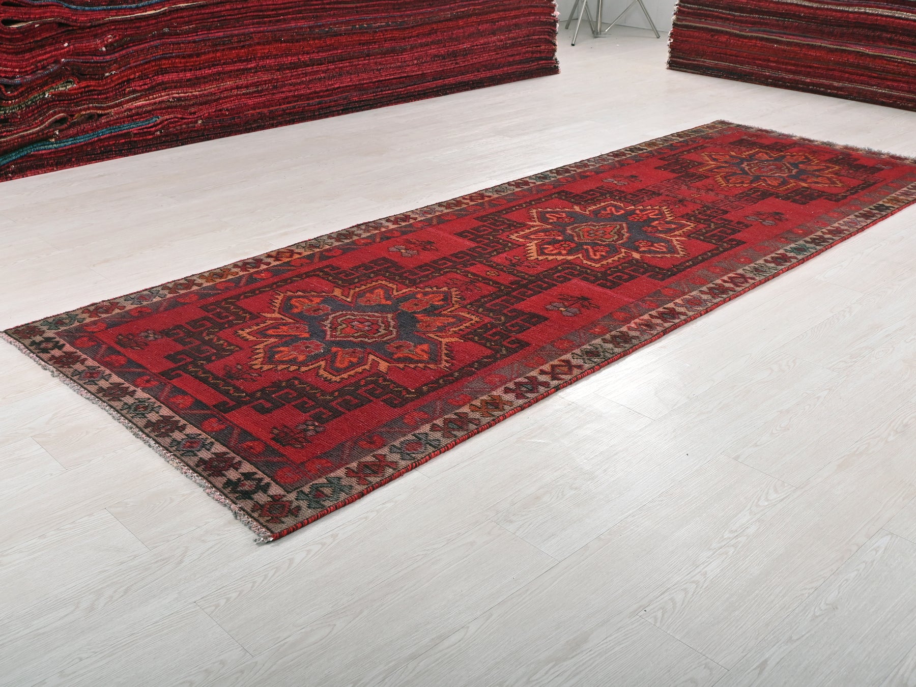 This is a hand-knotted, one-of-a-kind vintage rug. Due to the nature of this piece, there may be slight imperfections in its wear, shape, dimensions, and color. All of our rugs are professionally cleaned and repaired.