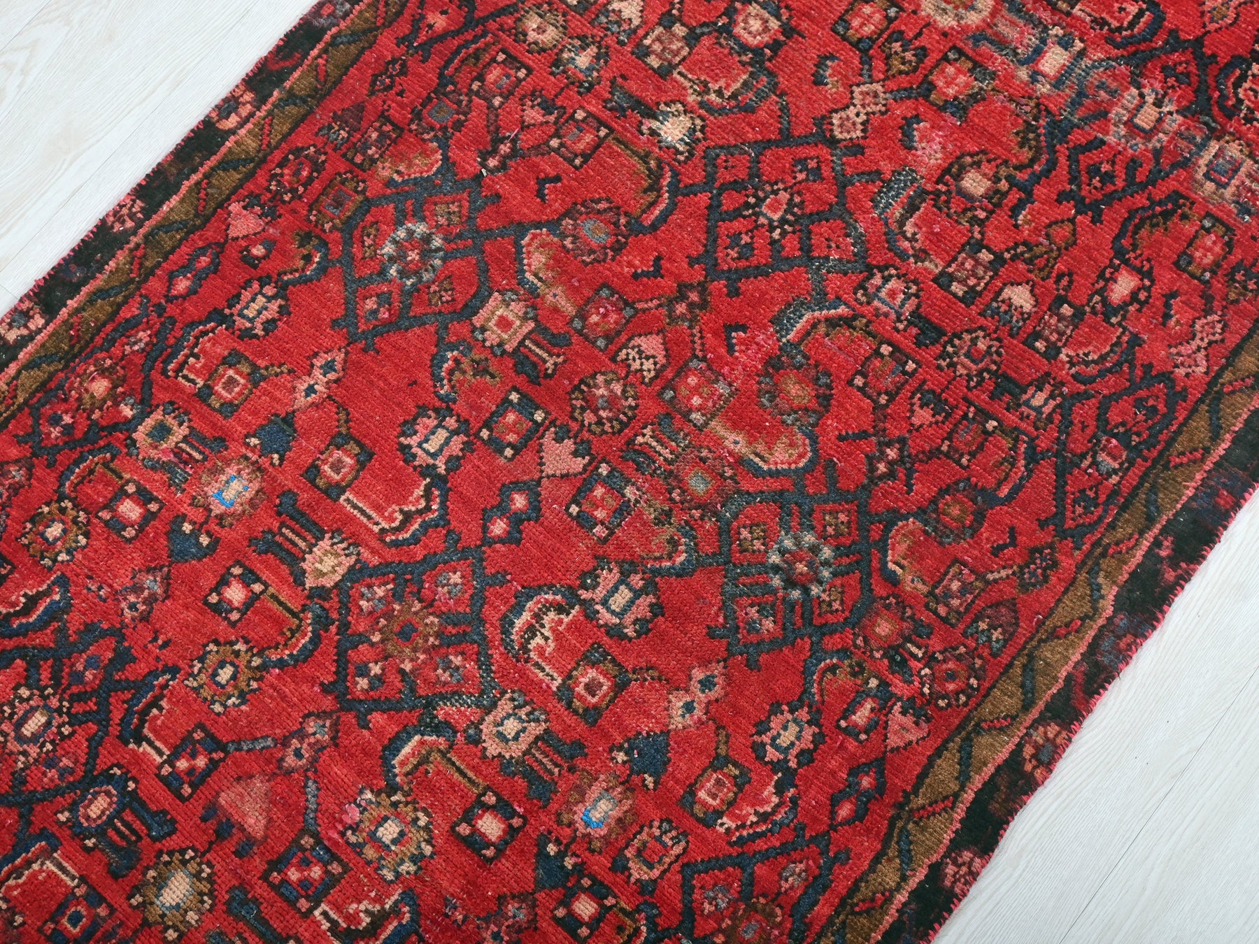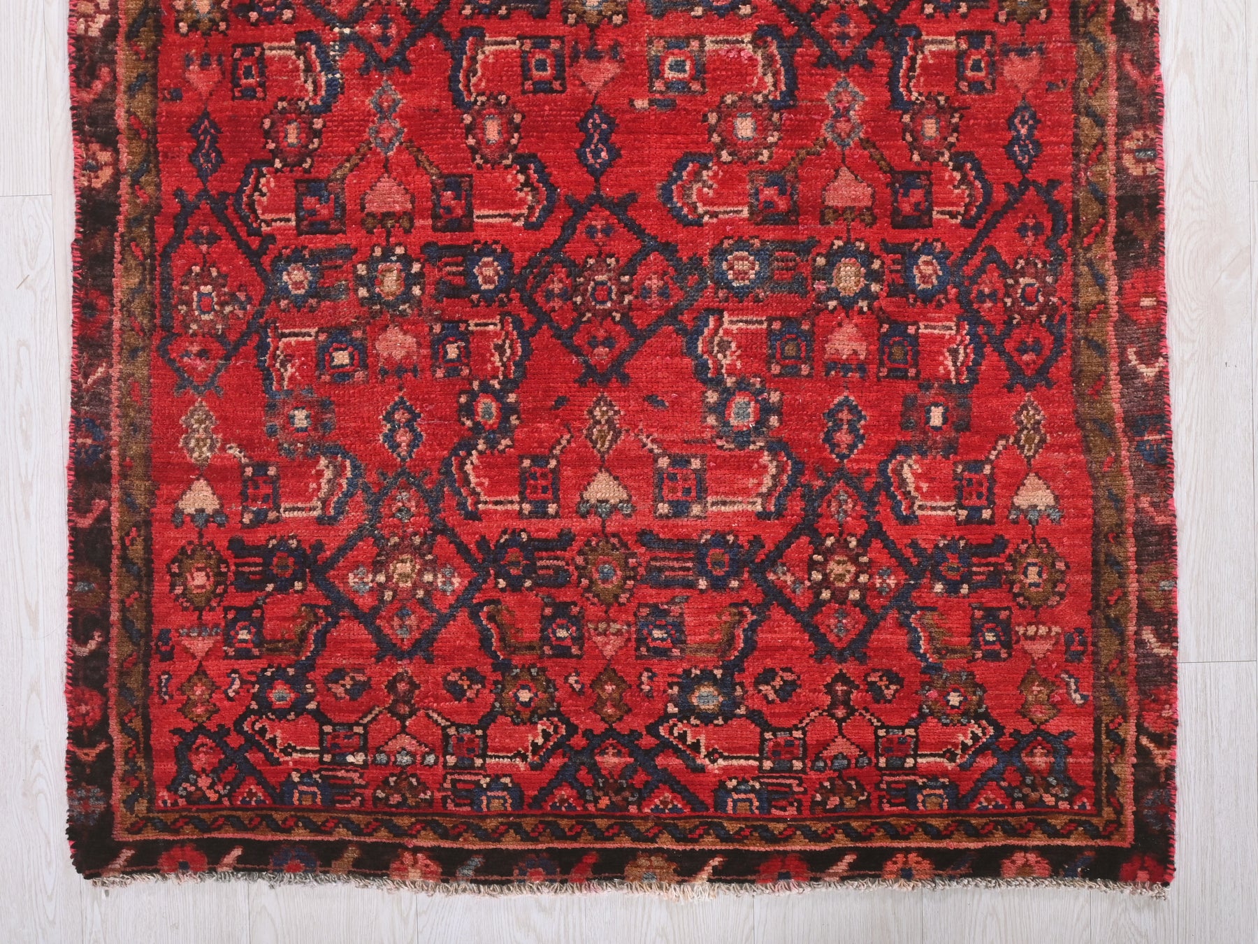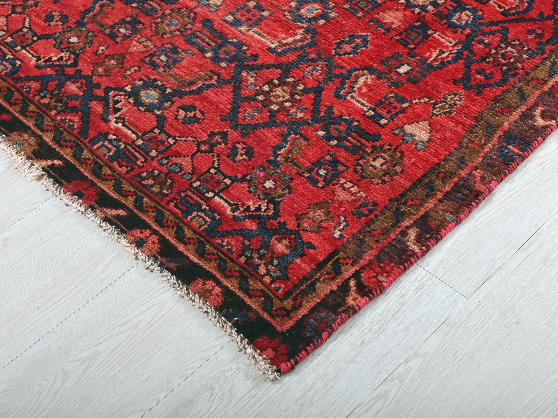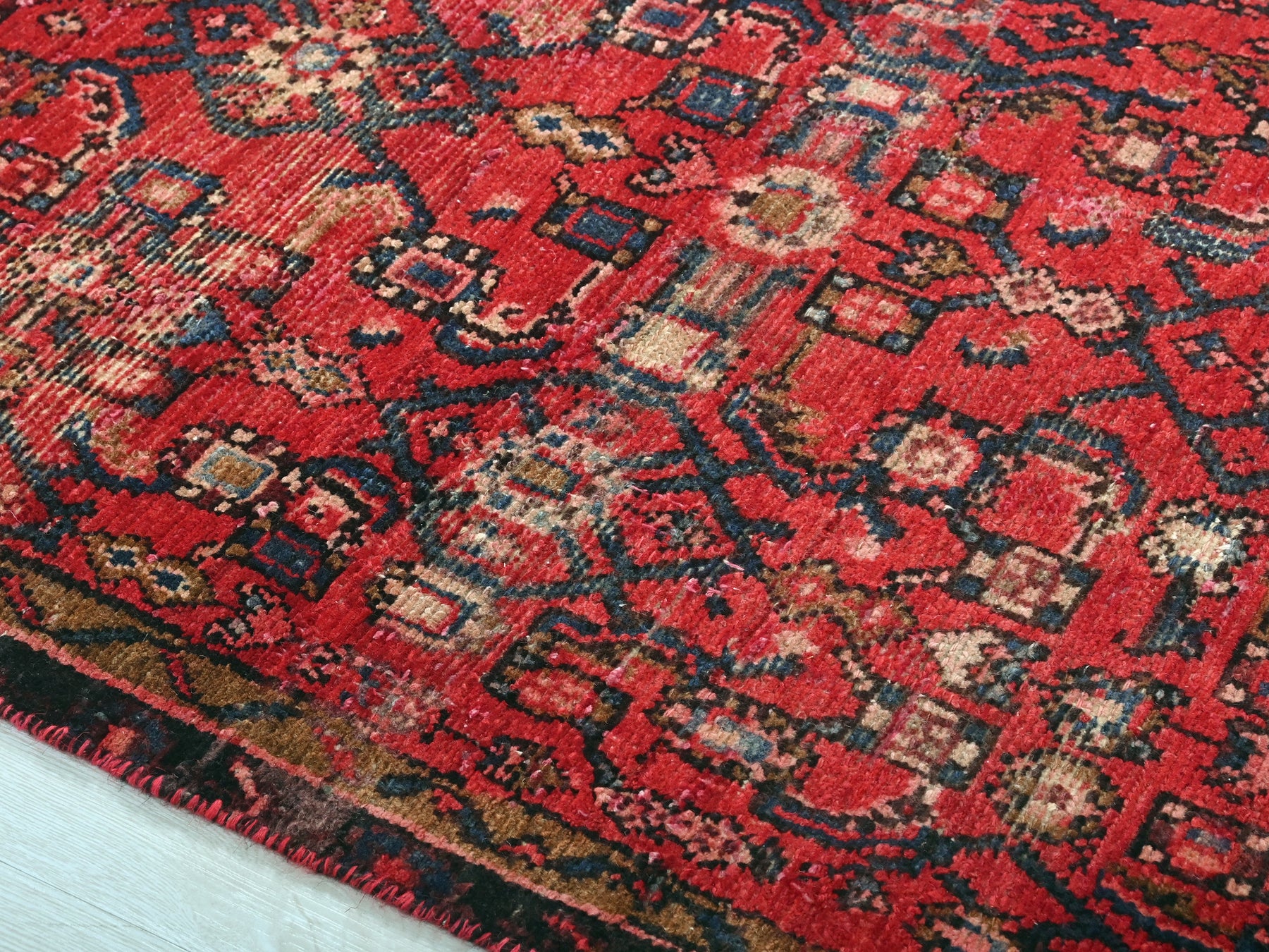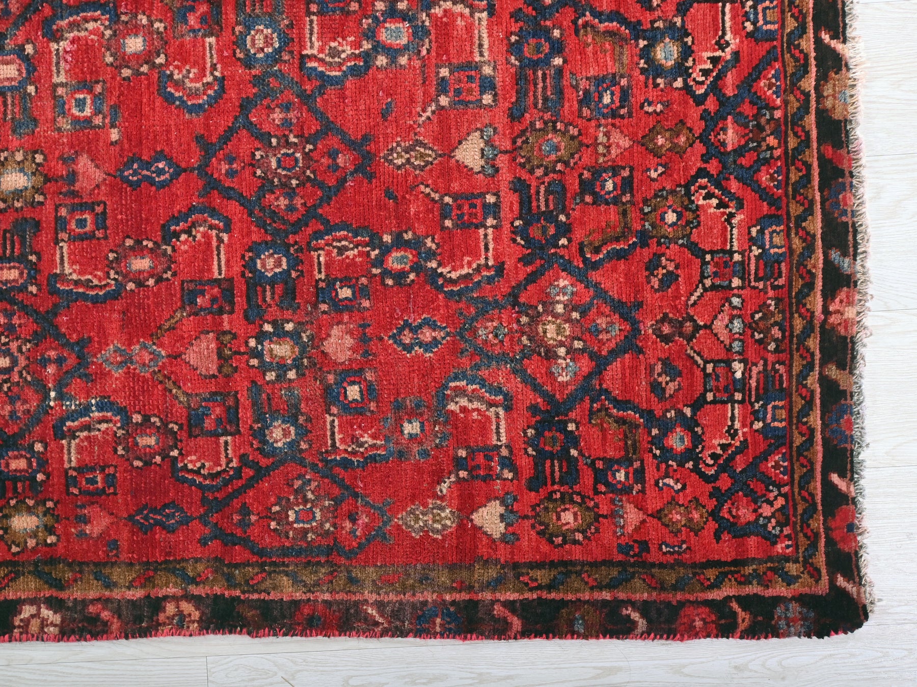 This is a hand-knotted, one-of-a-kind vintage rug. Due to the nature of this piece, there may be slight imperfections in its wear, shape, dimensions, and color. All of our rugs are professionally cleaned and repaired.