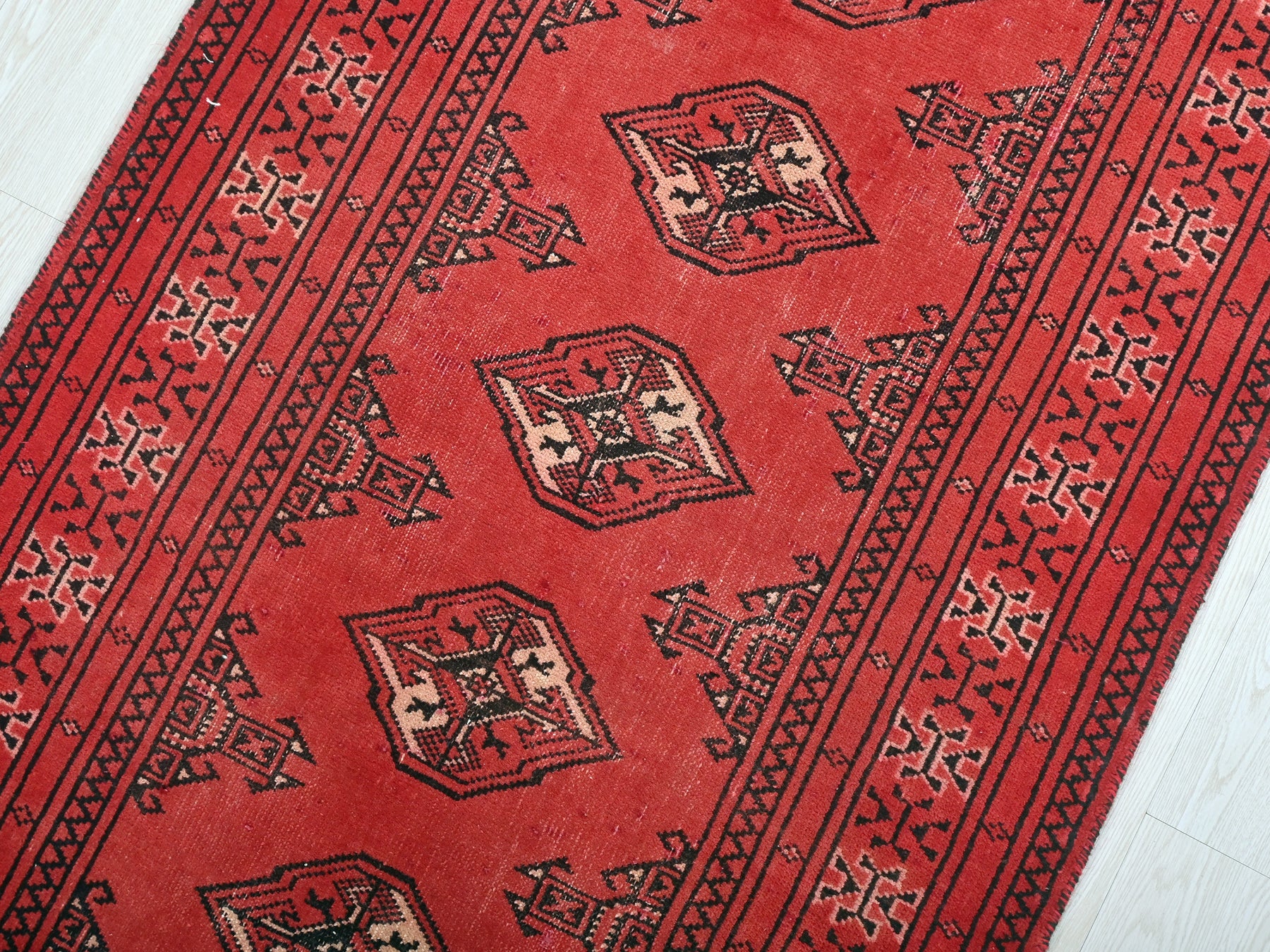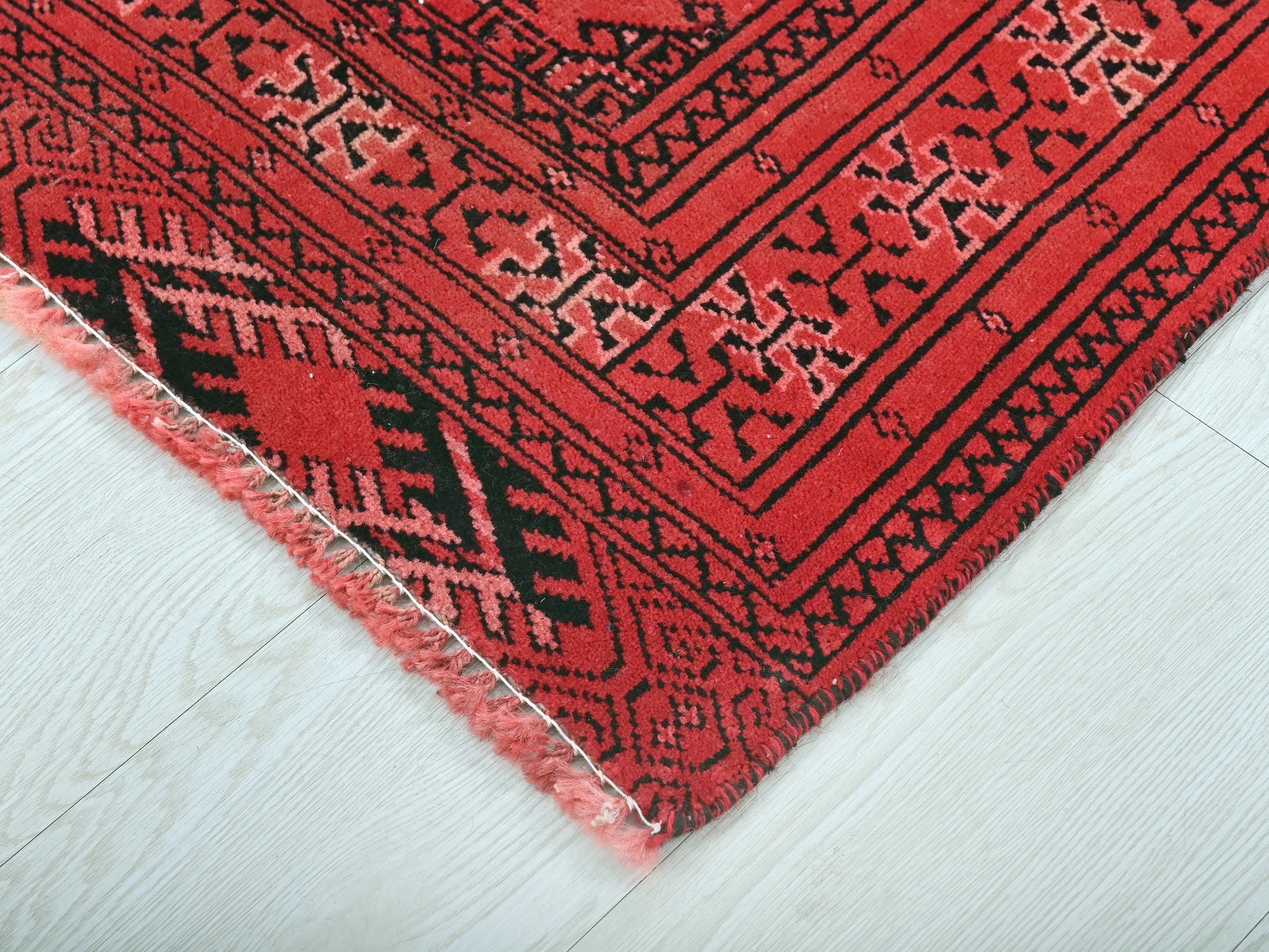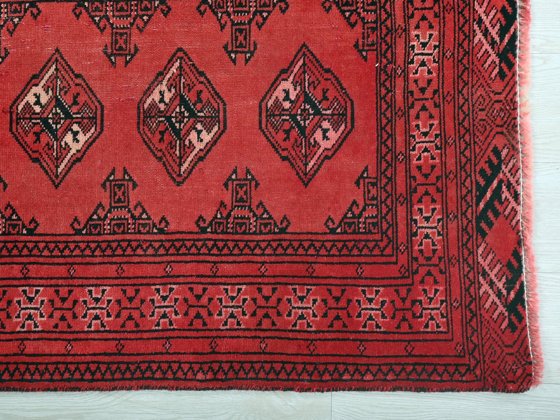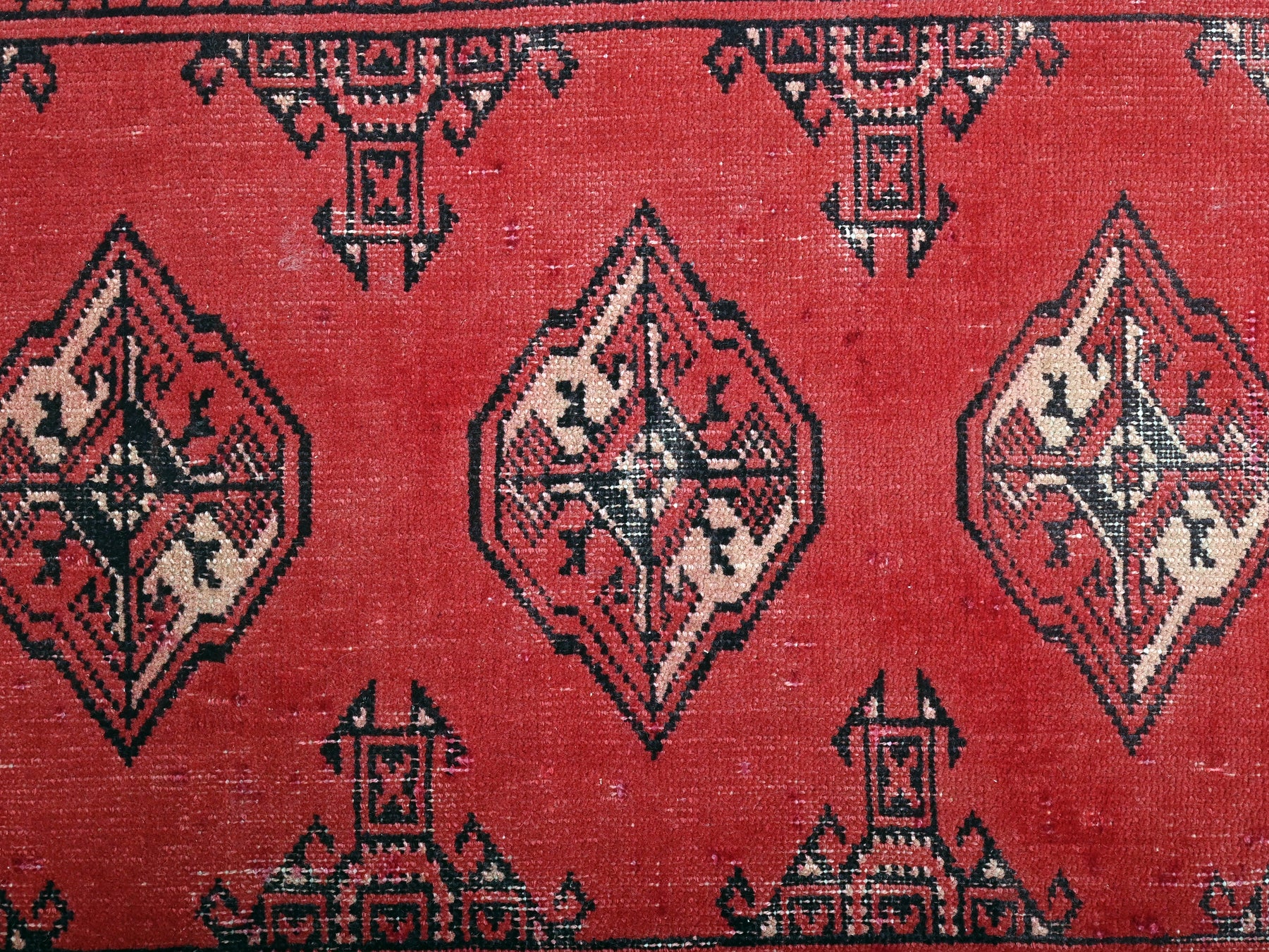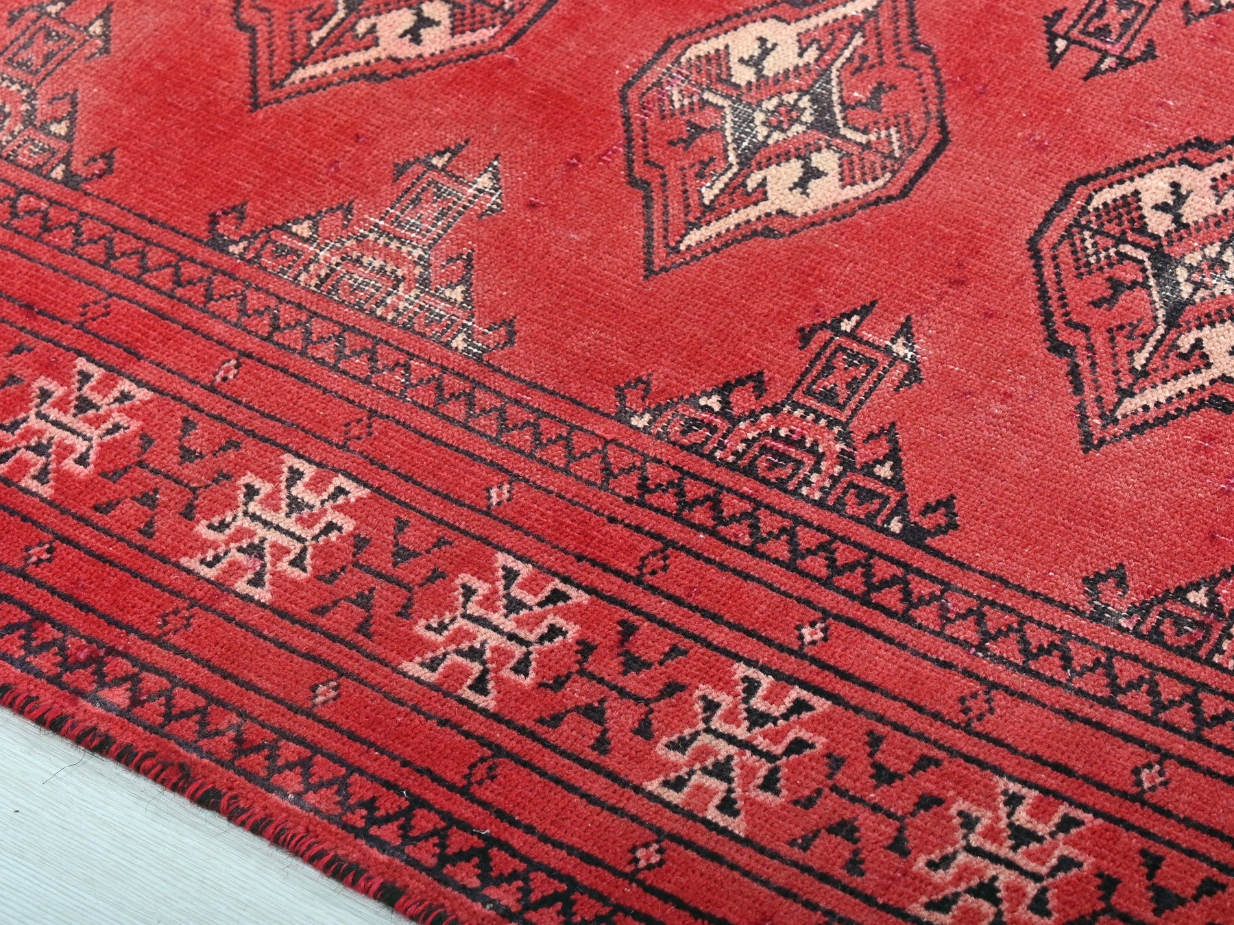 This is a hand-knotted, one-of-a-kind vintage rug. Due to the nature of this piece, there may be slight imperfections in its wear, shape, dimensions, and color. All of our rugs are professionally cleaned and repaired.