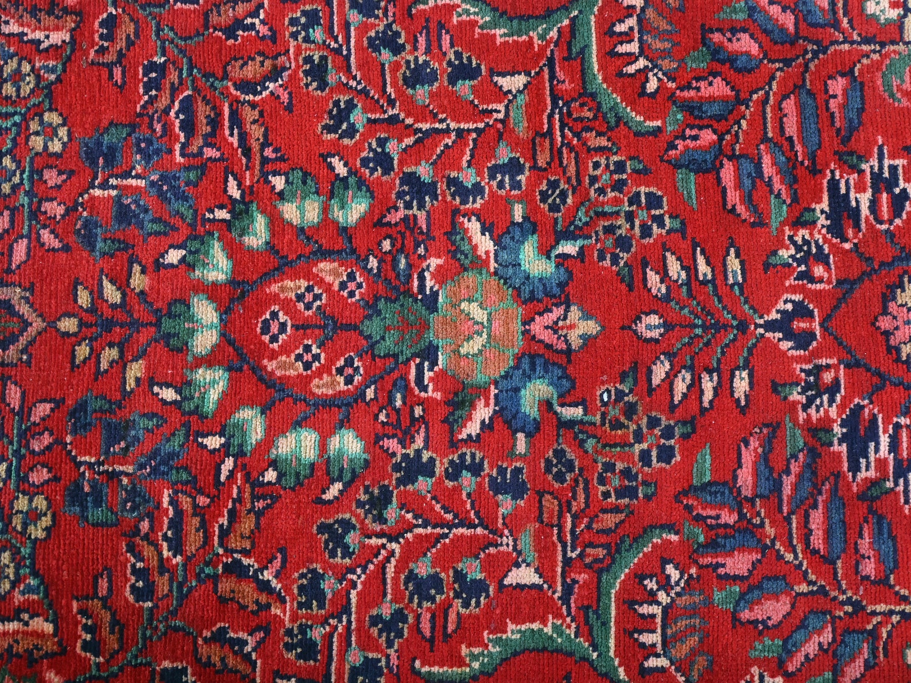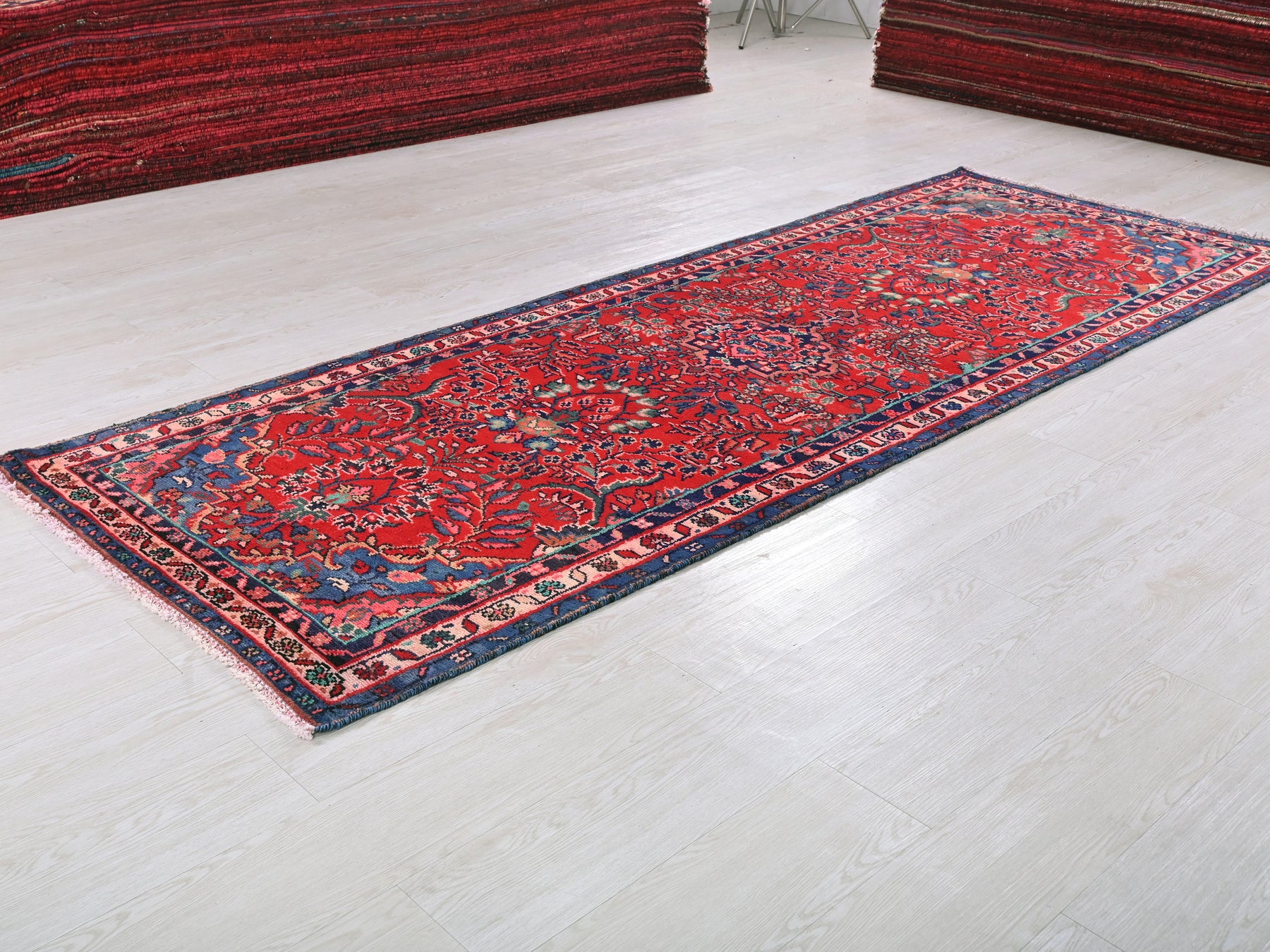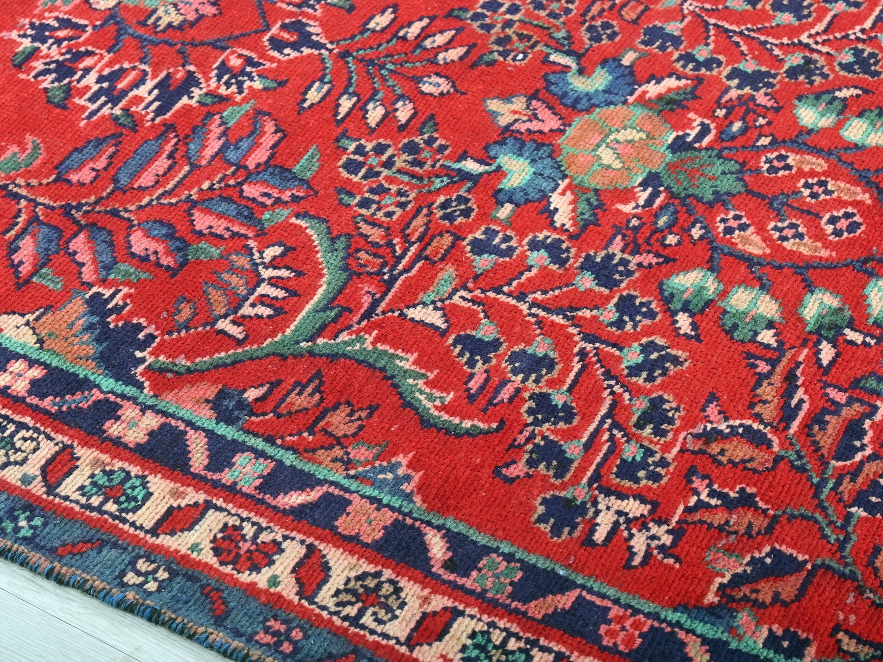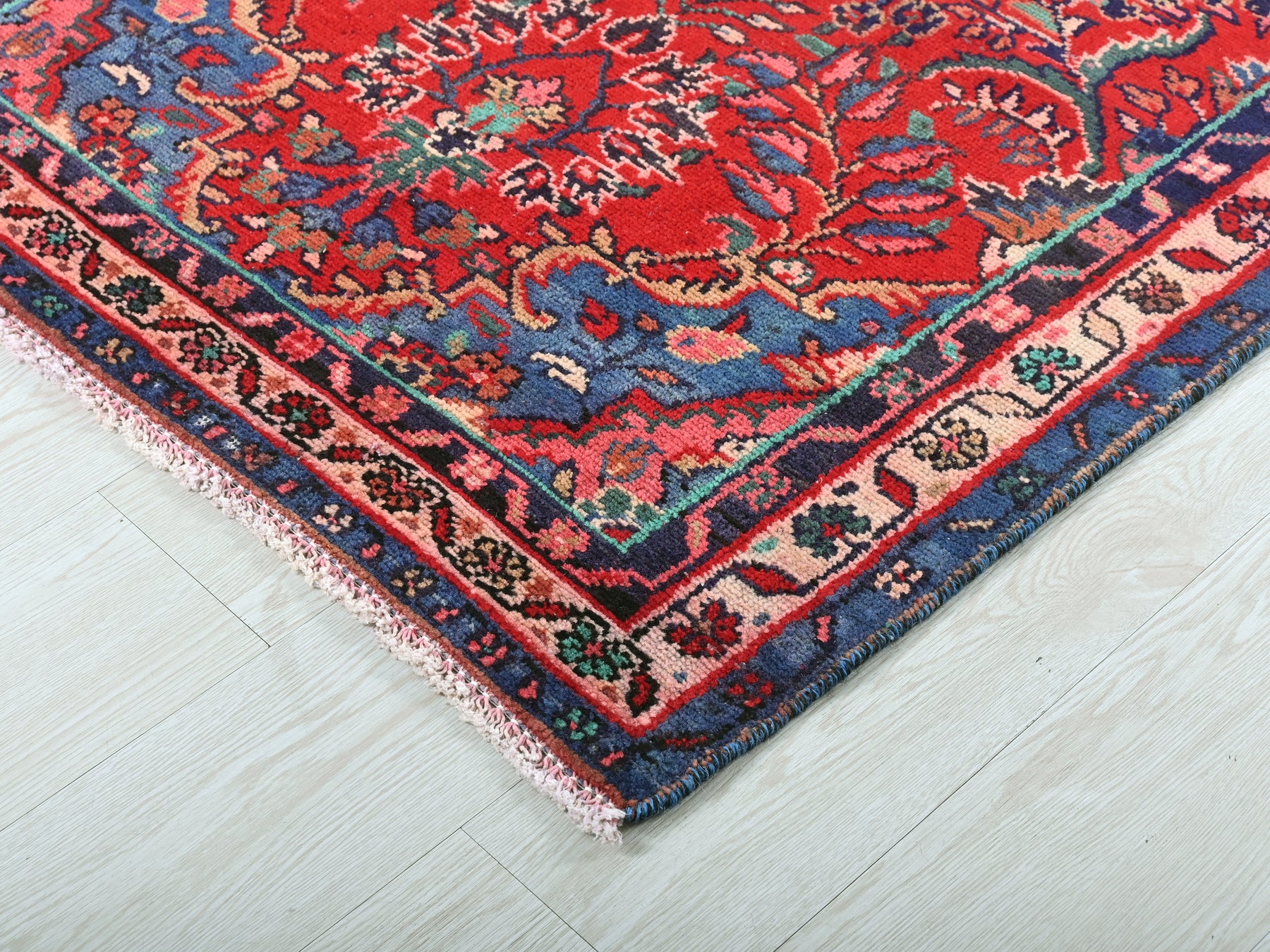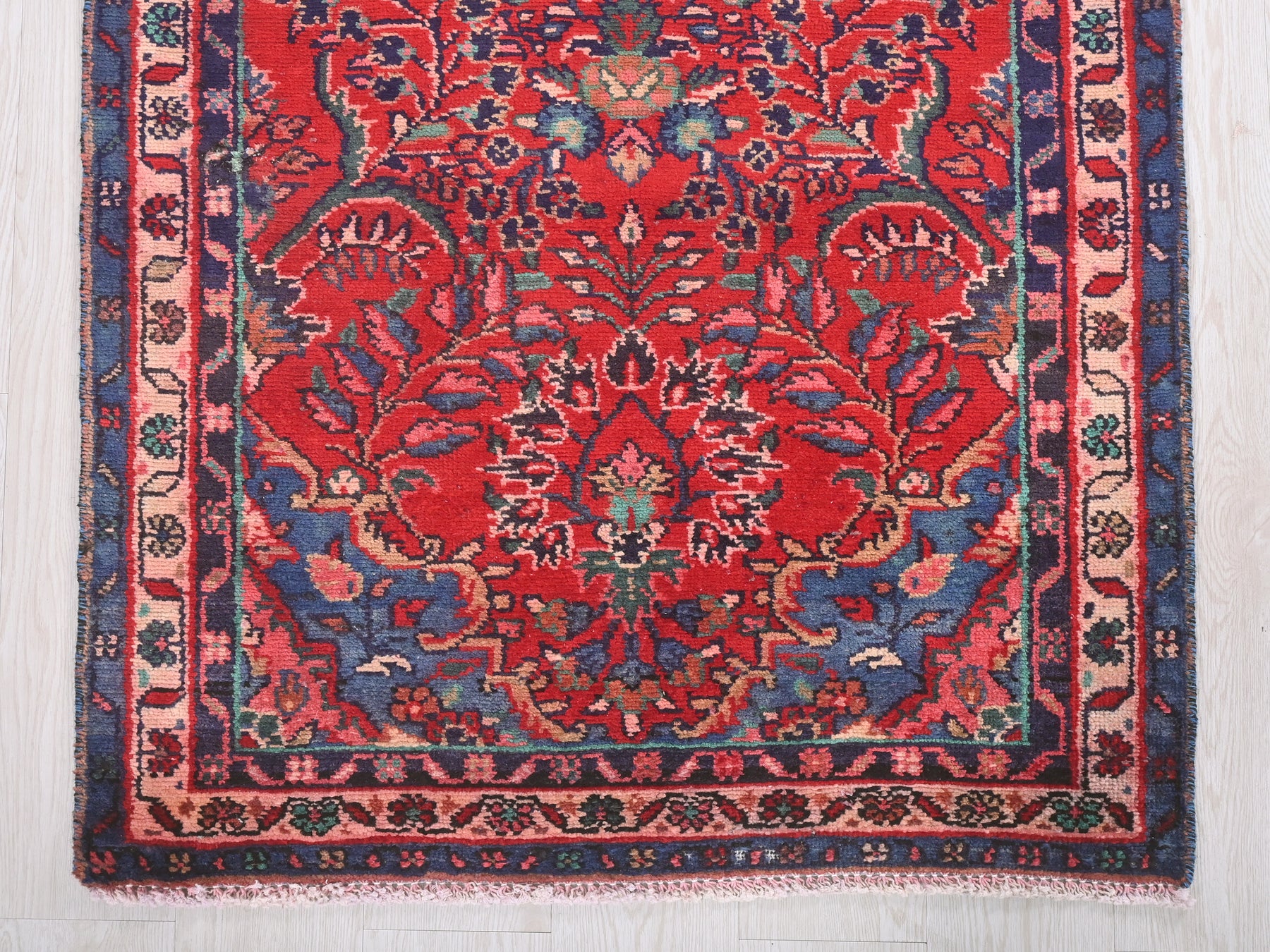 This is a hand-knotted, one-of-a-kind vintage rug. Due to the nature of this piece, there may be slight imperfections in its wear, shape, dimensions, and color. All of our rugs are professionally cleaned and repaired.