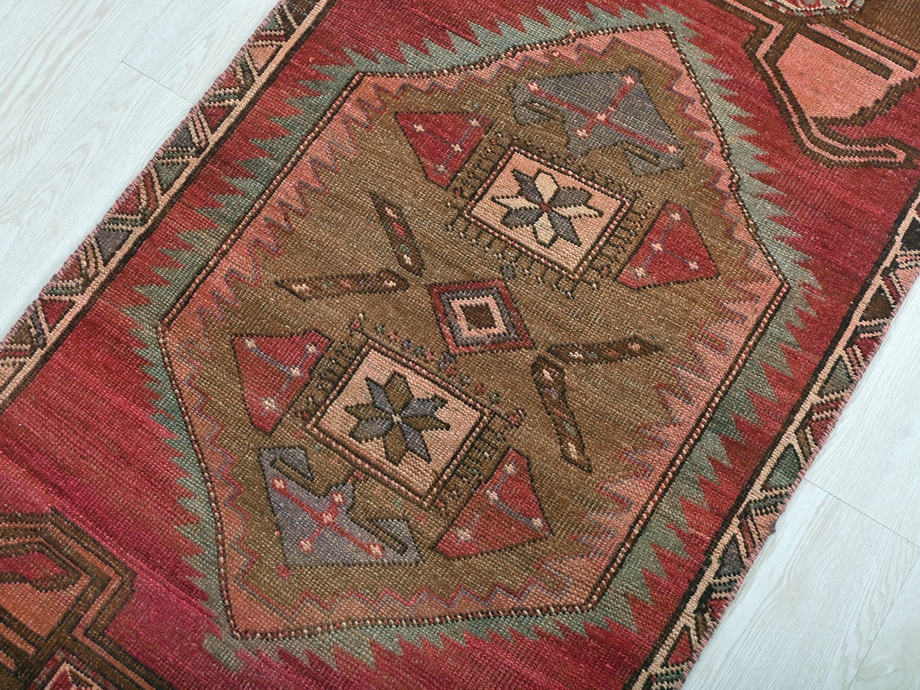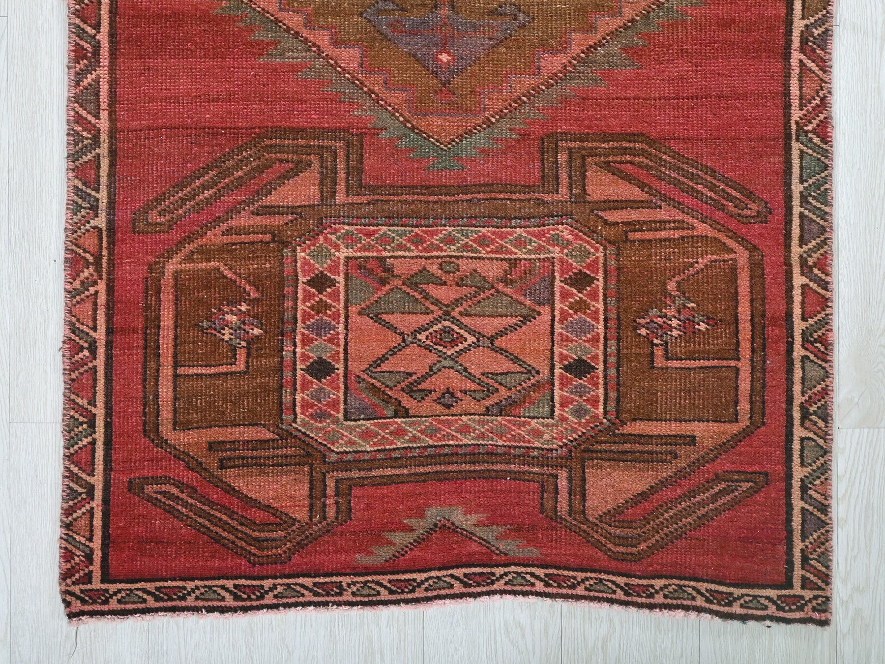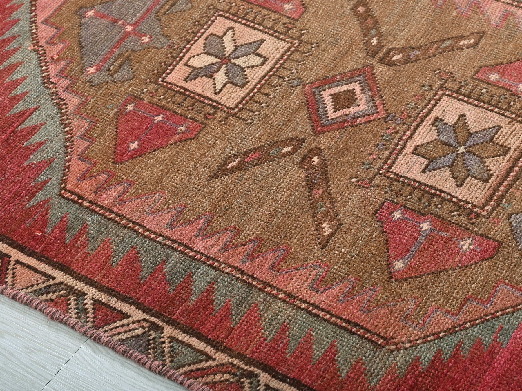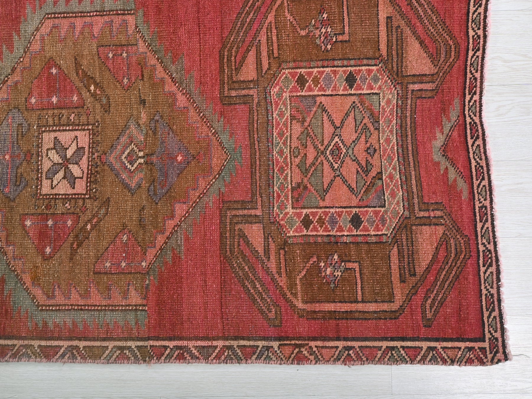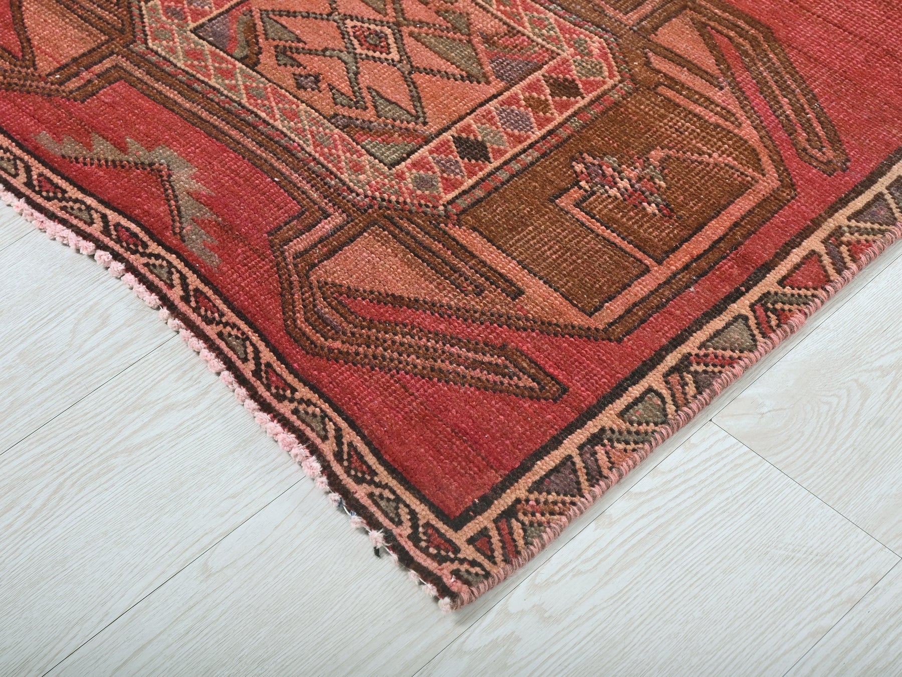 This is a hand-knotted, one-of-a-kind vintage rug. Due to the nature of this piece, there may be slight imperfections in its wear, shape, dimensions, and color. All of our rugs are professionally cleaned and repaired.