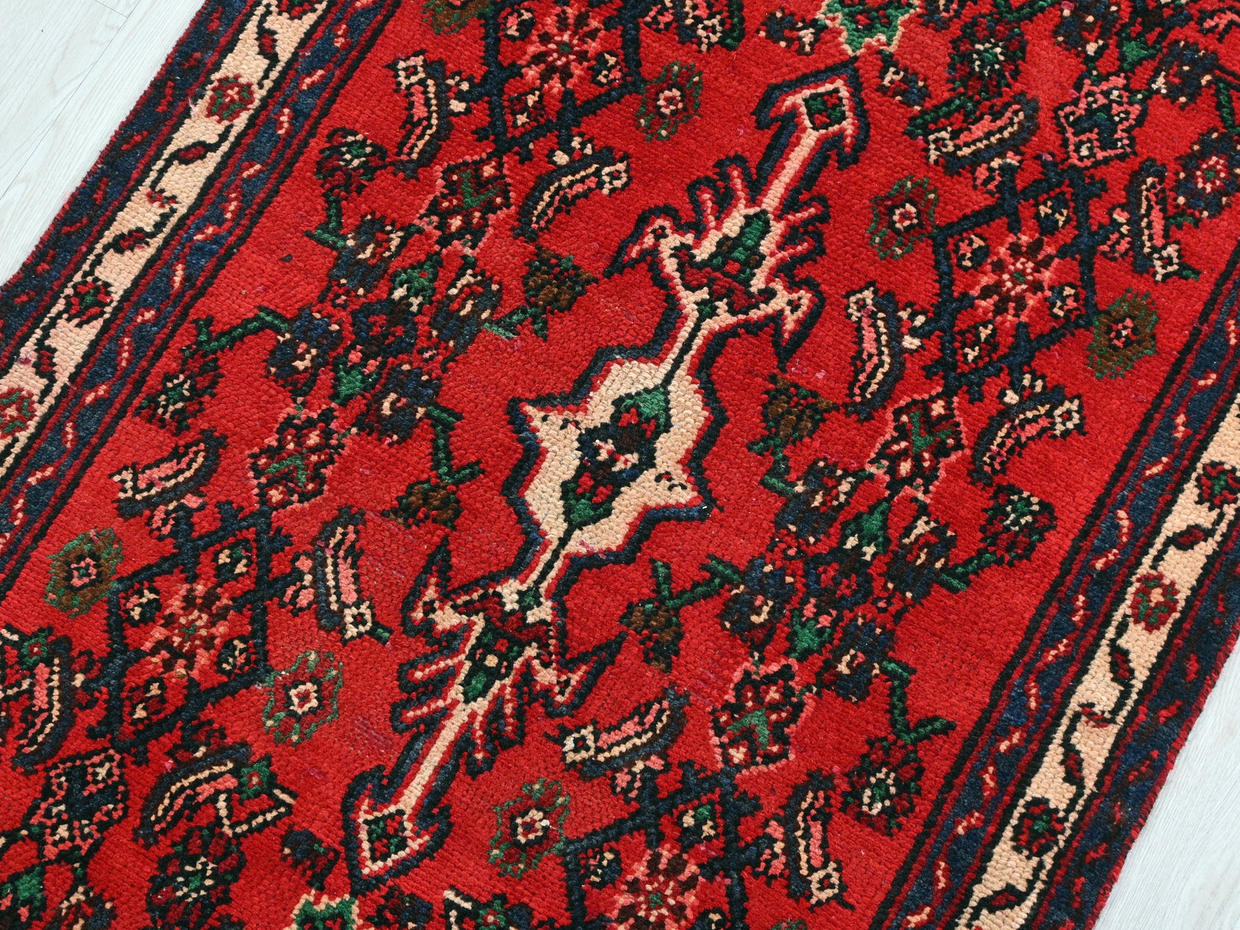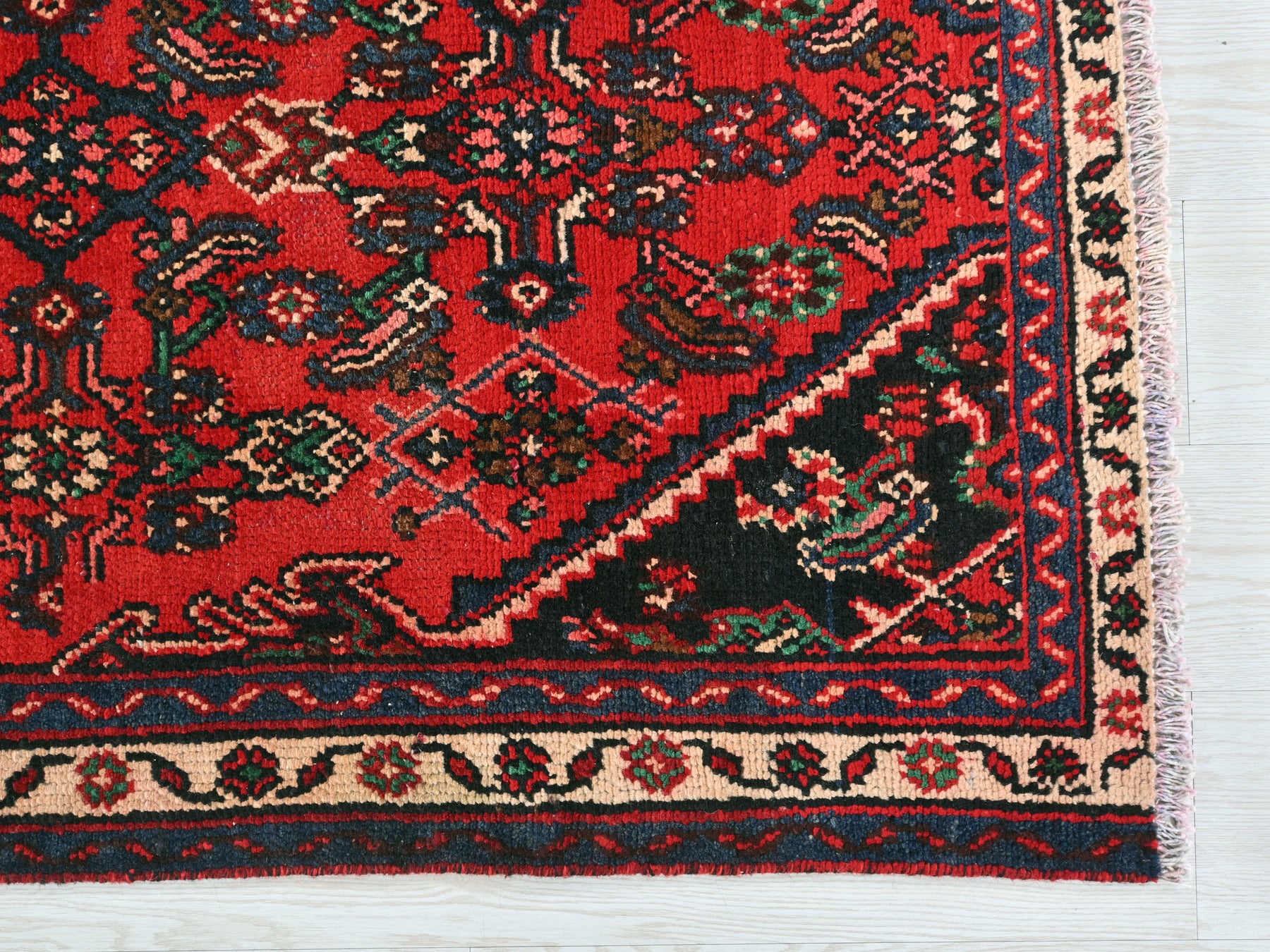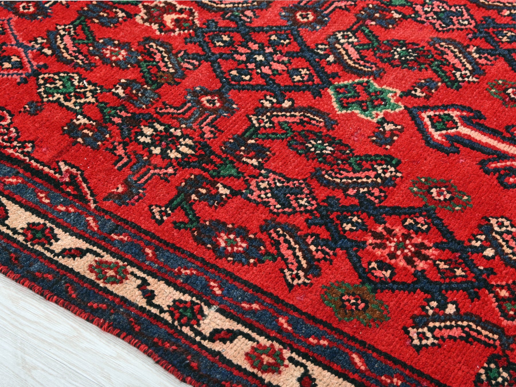 This is a hand-knotted, one-of-a-kind vintage rug. Due to the nature of this piece, there may be slight imperfections in its wear, shape, dimensions, and color. All of our rugs are professionally cleaned and repaired.