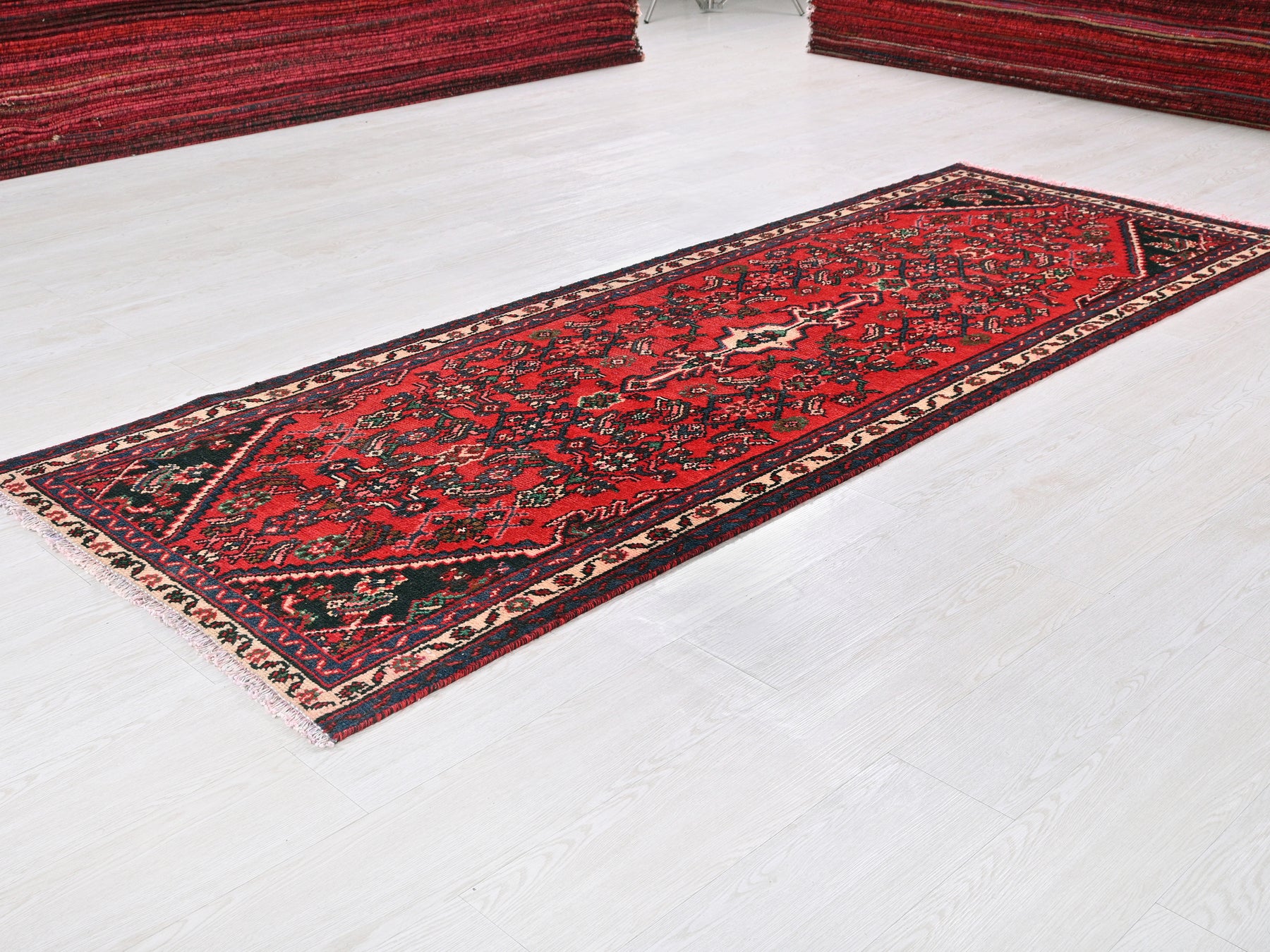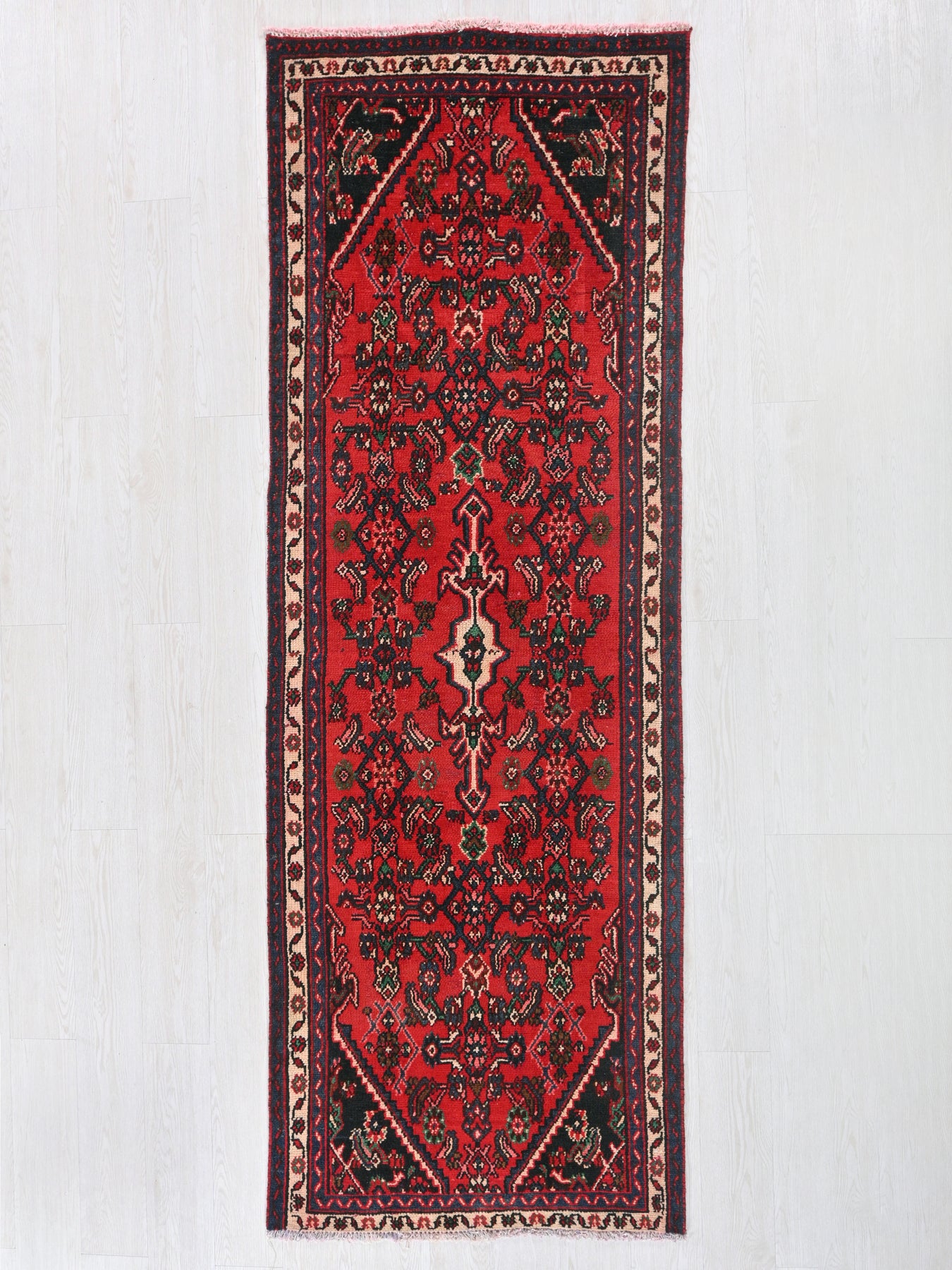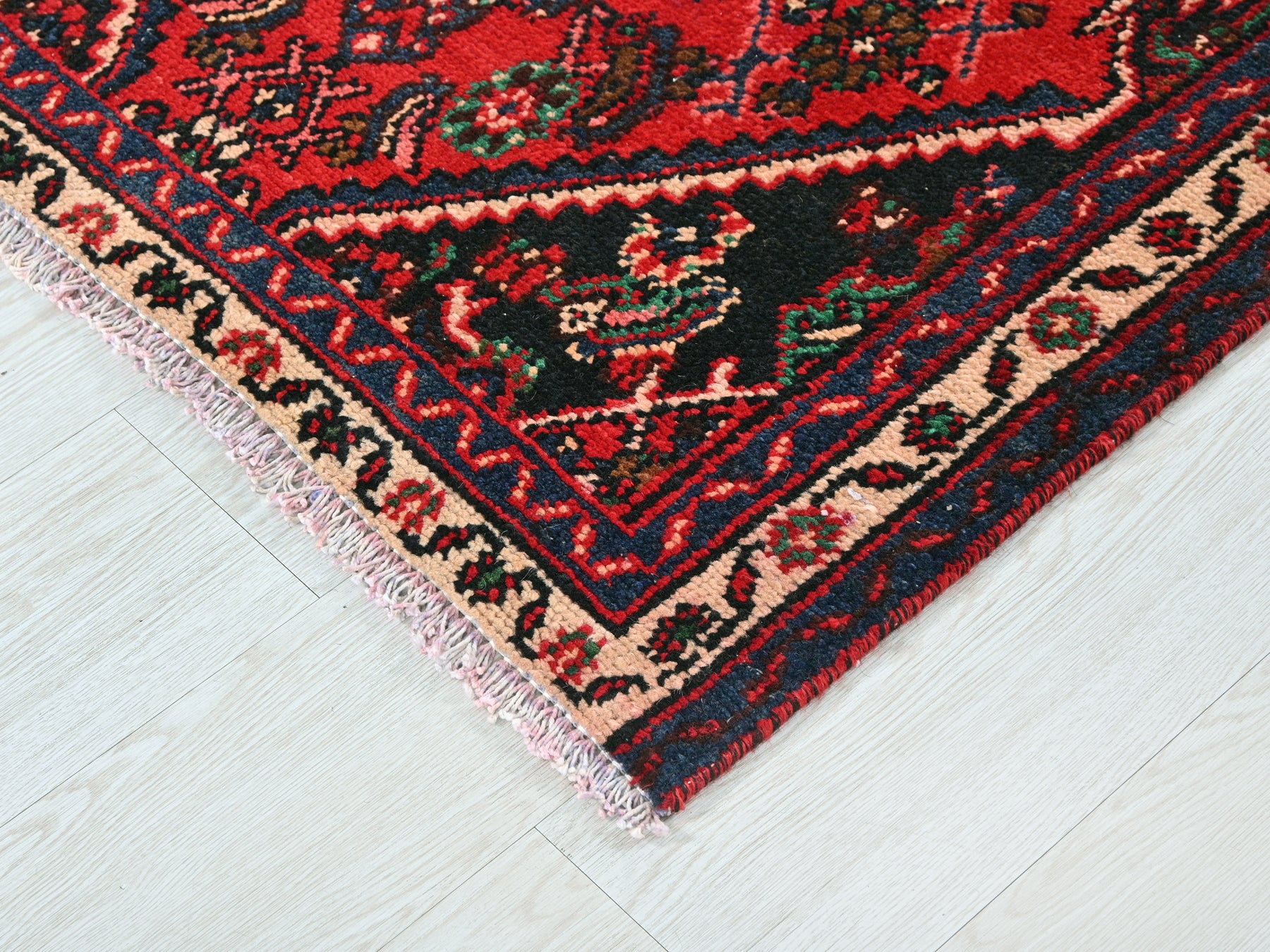 This is a hand-knotted, one-of-a-kind vintage rug. Due to the nature of this piece, there may be slight imperfections in its wear, shape, dimensions, and color. All of our rugs are professionally cleaned and repaired.