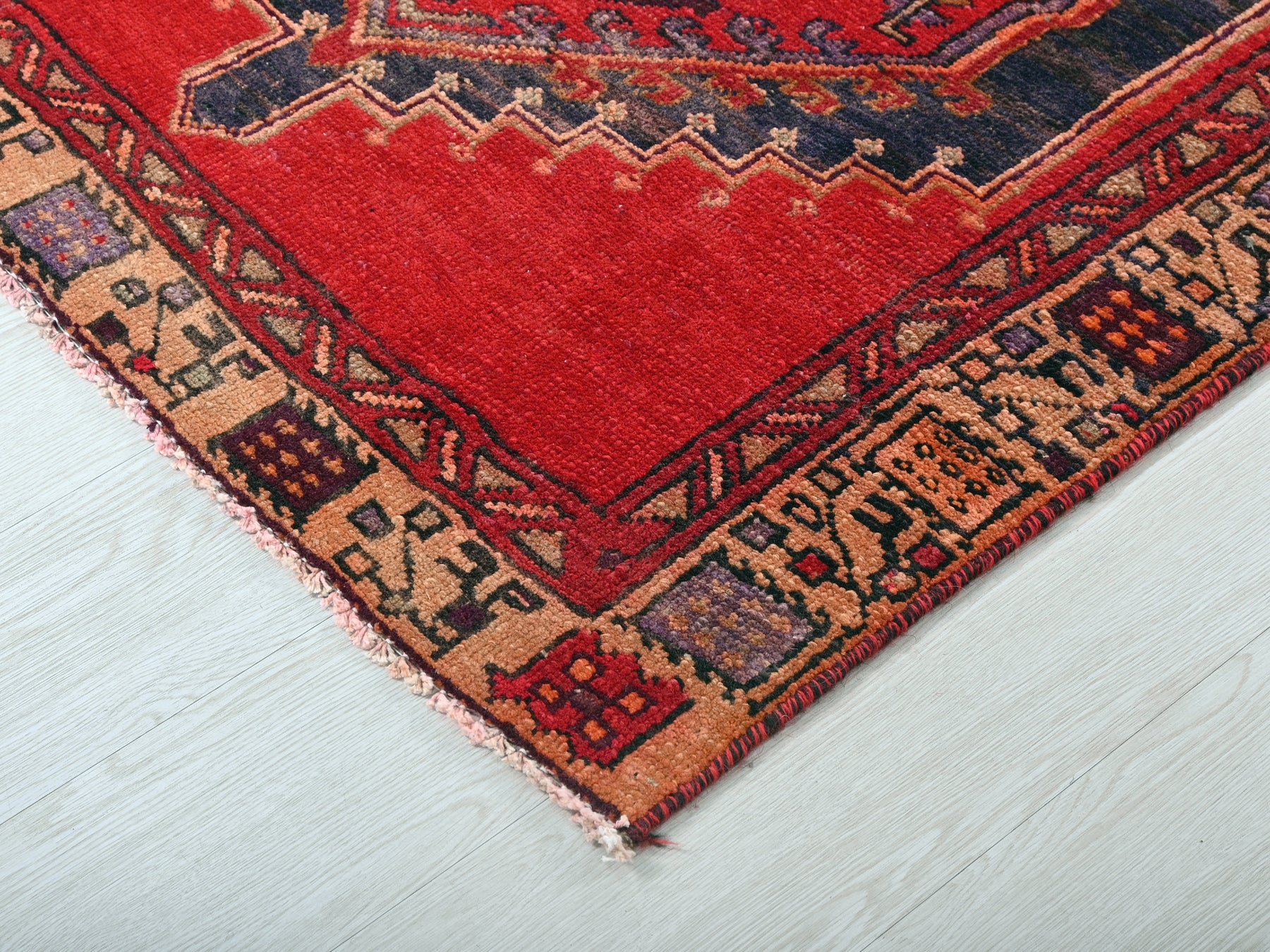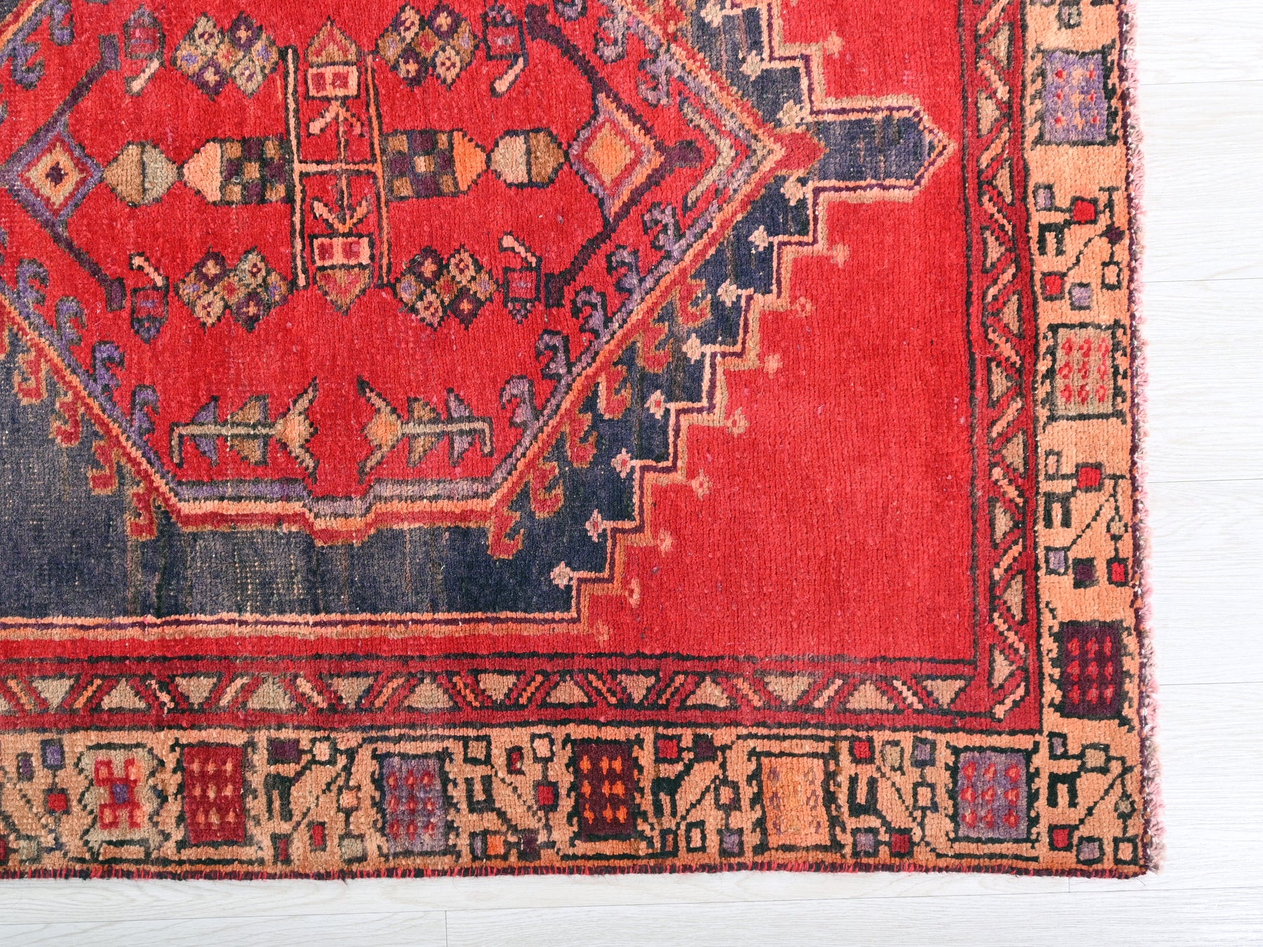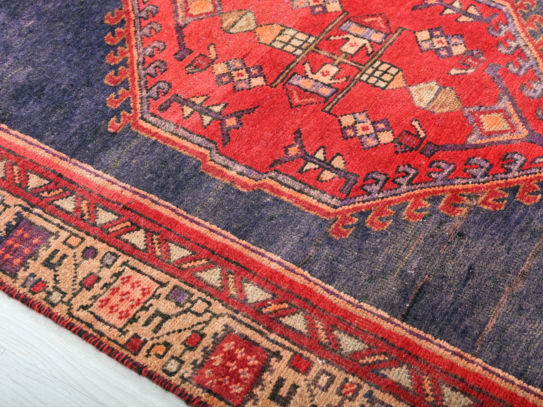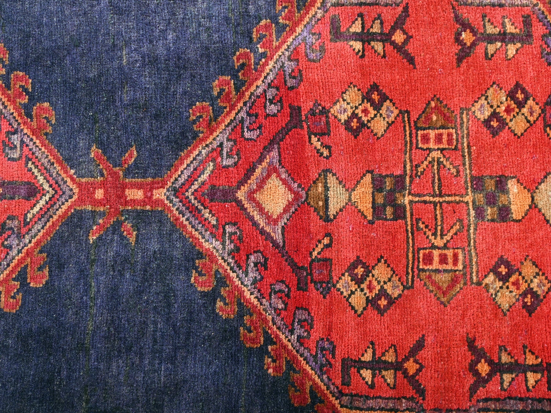 This is a hand-knotted, one-of-a-kind vintage rug. Due to the nature of this piece, there may be slight imperfections in its wear, shape, dimensions, and color. All of our rugs are professionally cleaned and repaired.
