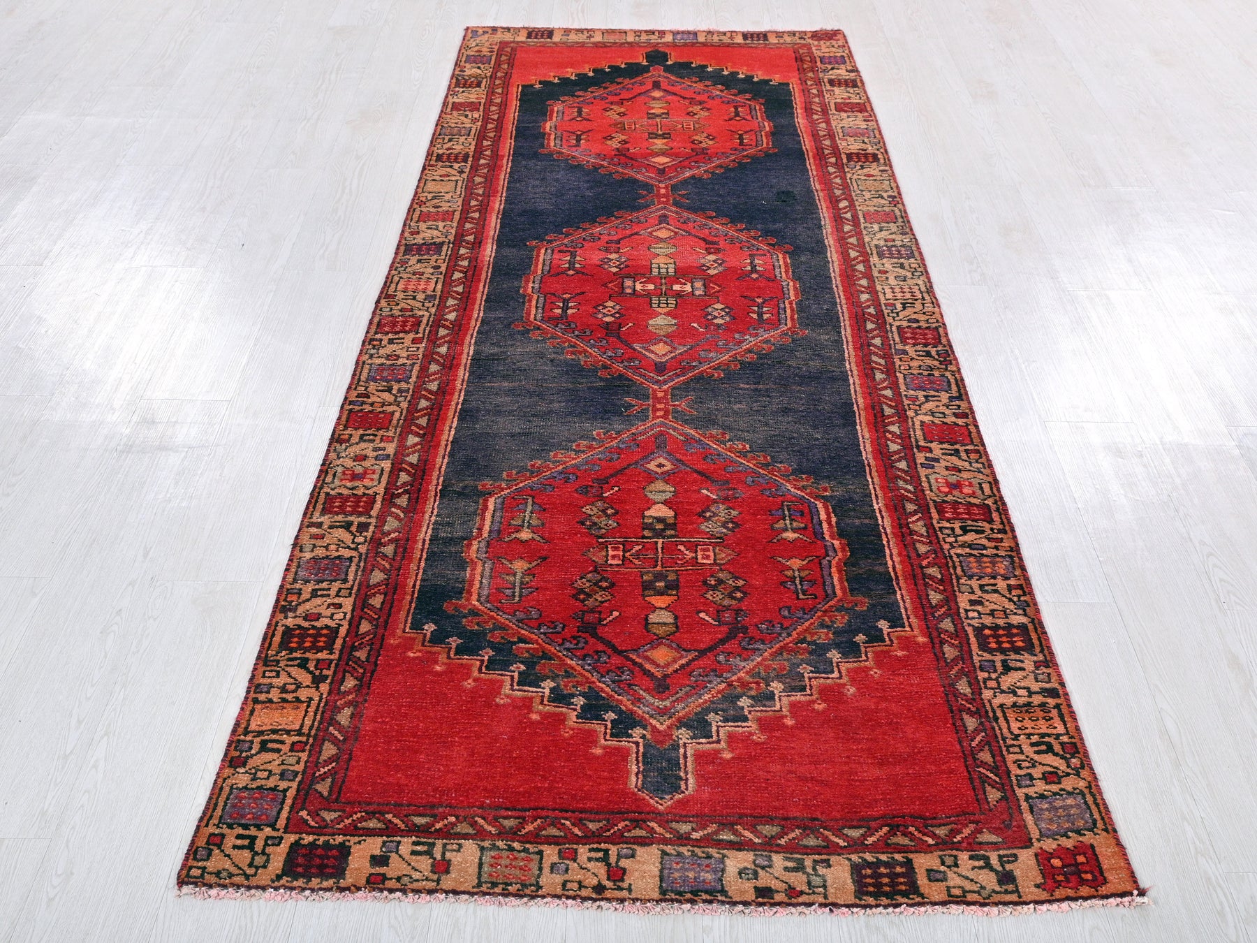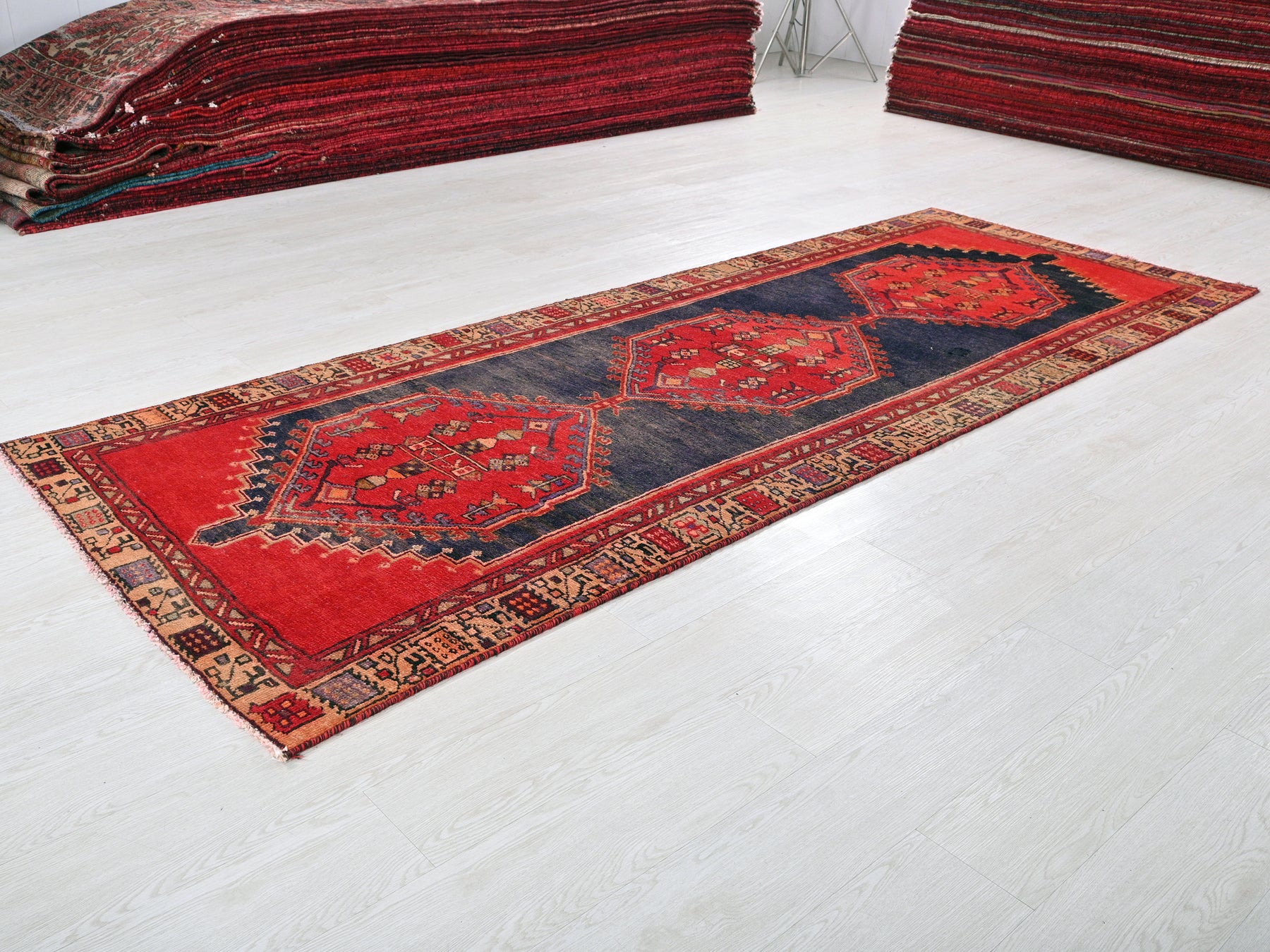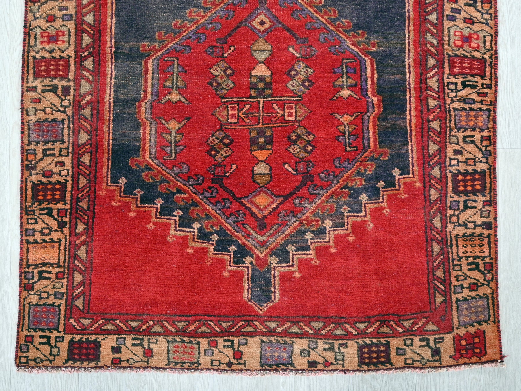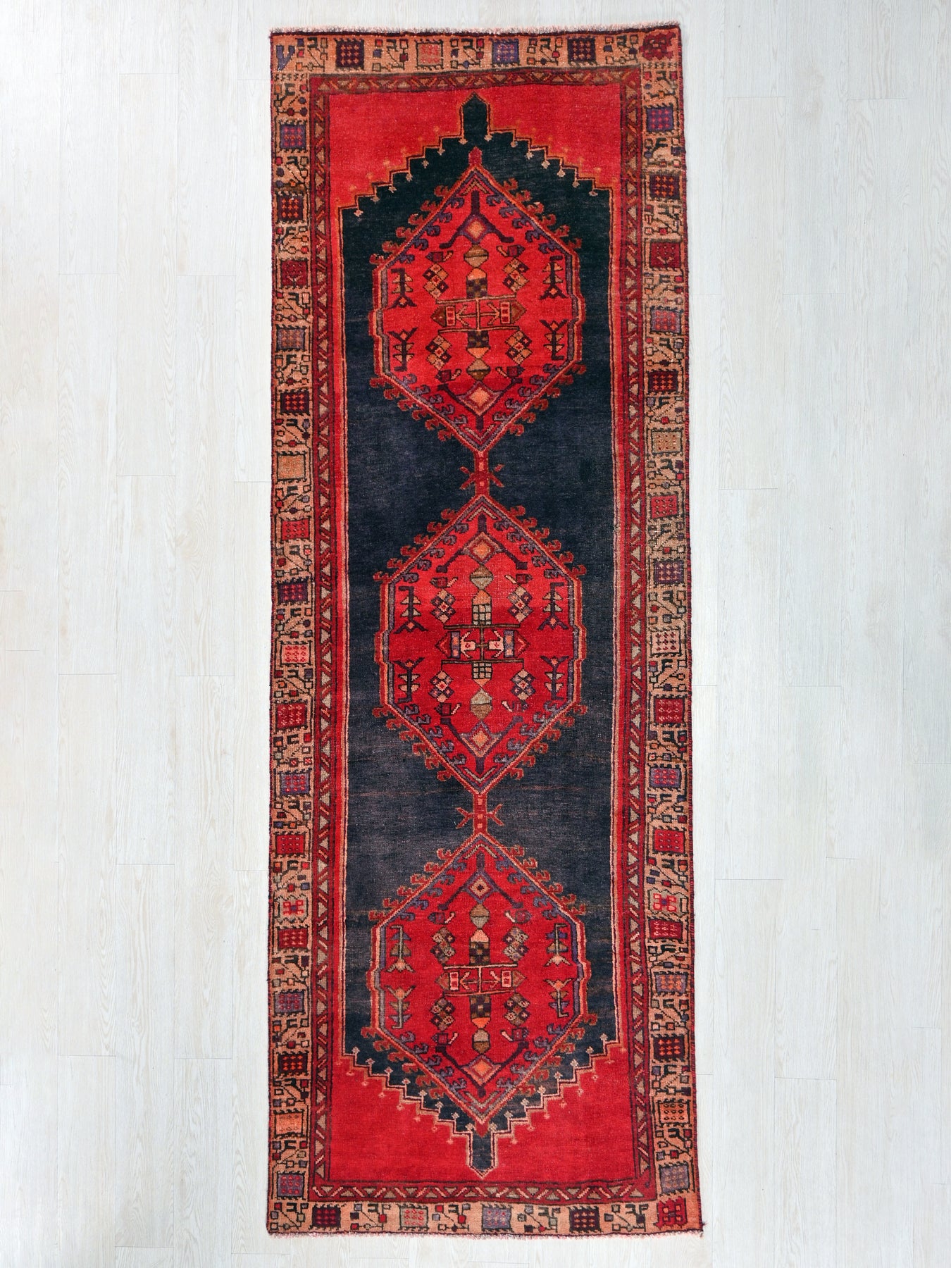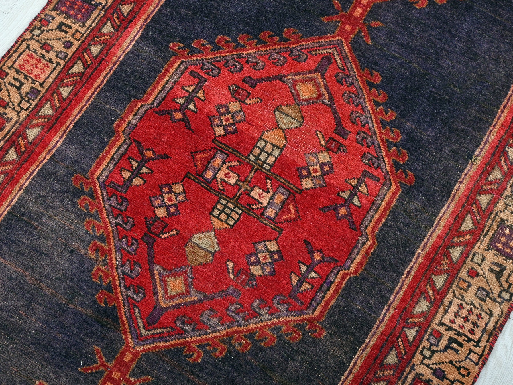 This is a hand-knotted, one-of-a-kind vintage rug. Due to the nature of this piece, there may be slight imperfections in its wear, shape, dimensions, and color. All of our rugs are professionally cleaned and repaired.